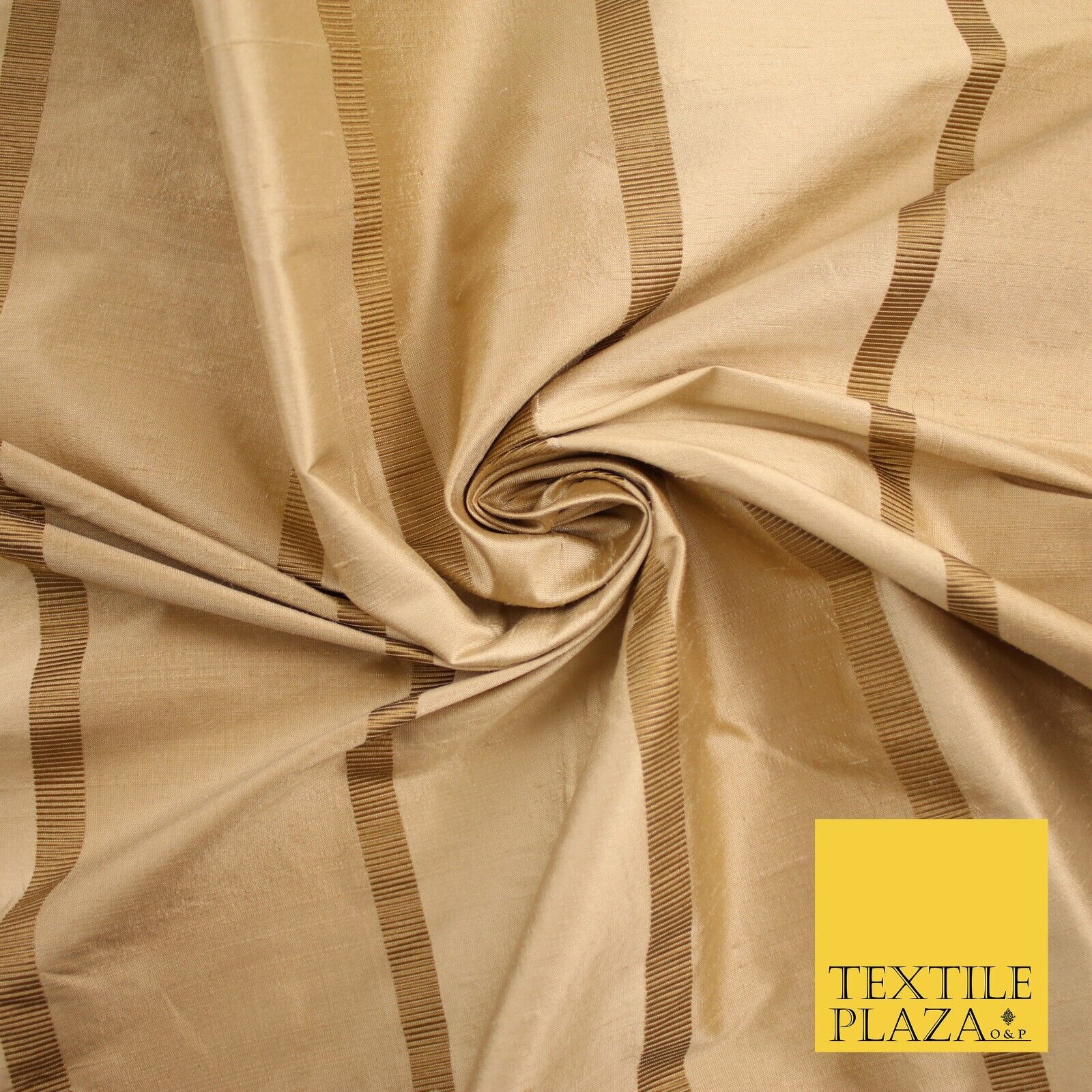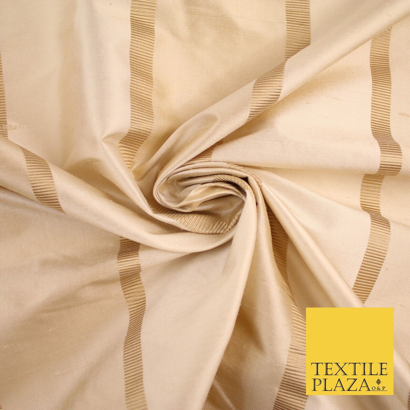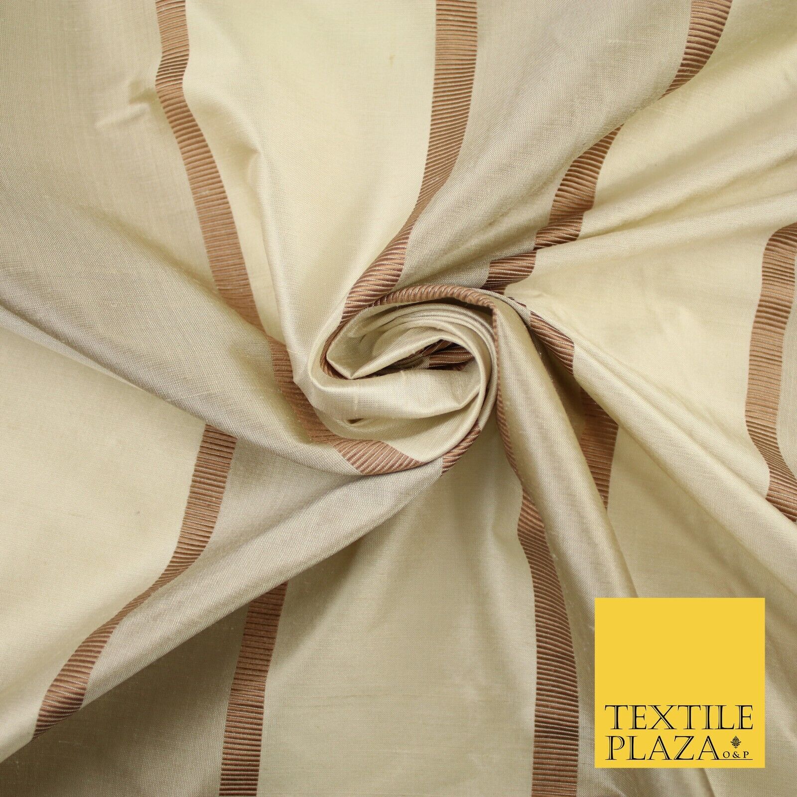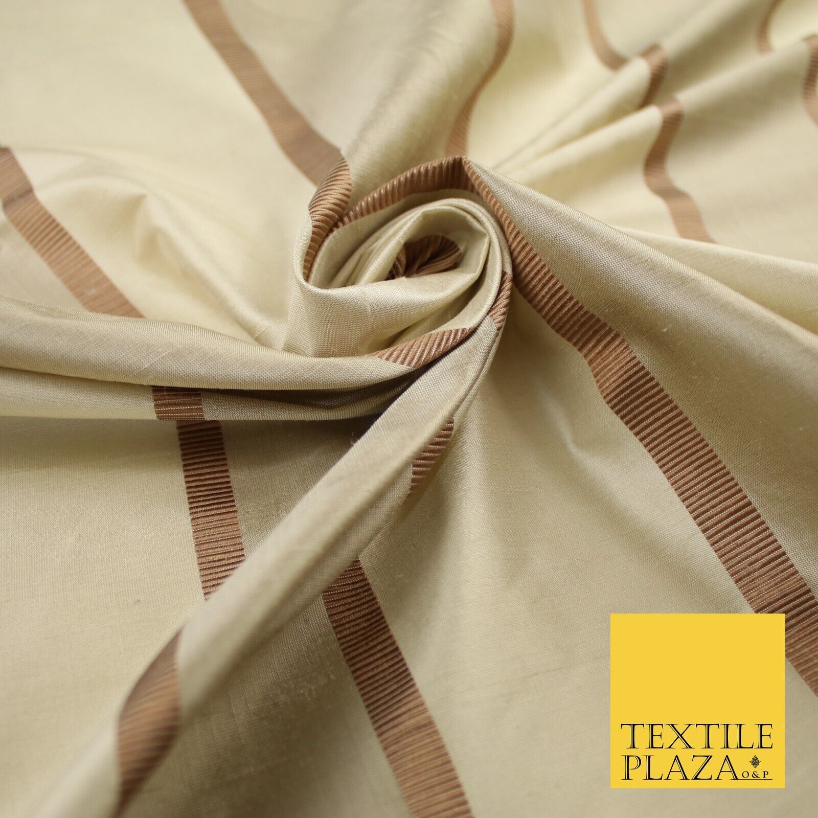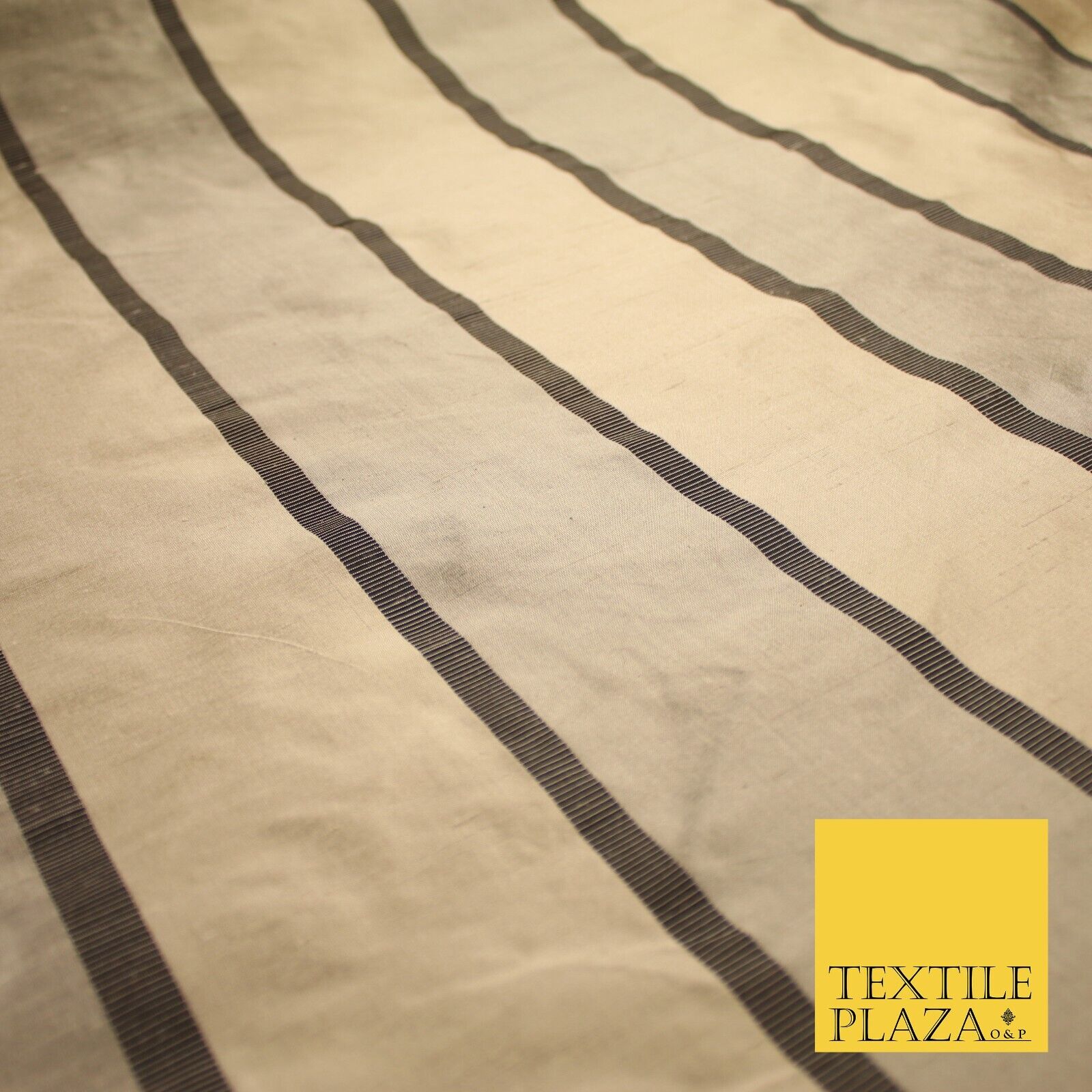 10 COLOURS - Fryetts Luxury Textured Vertical Line Striped 100% PURE SILK Fabric