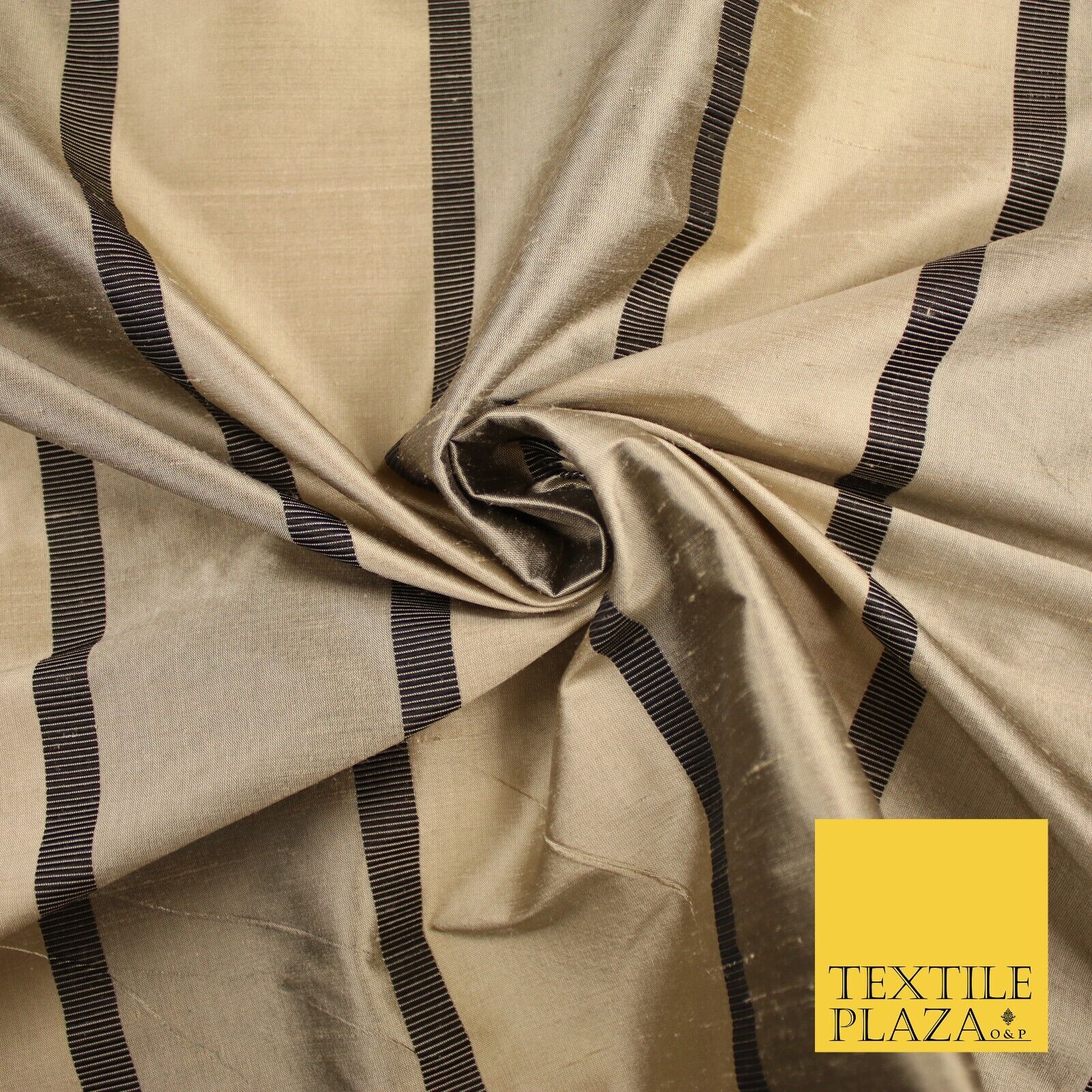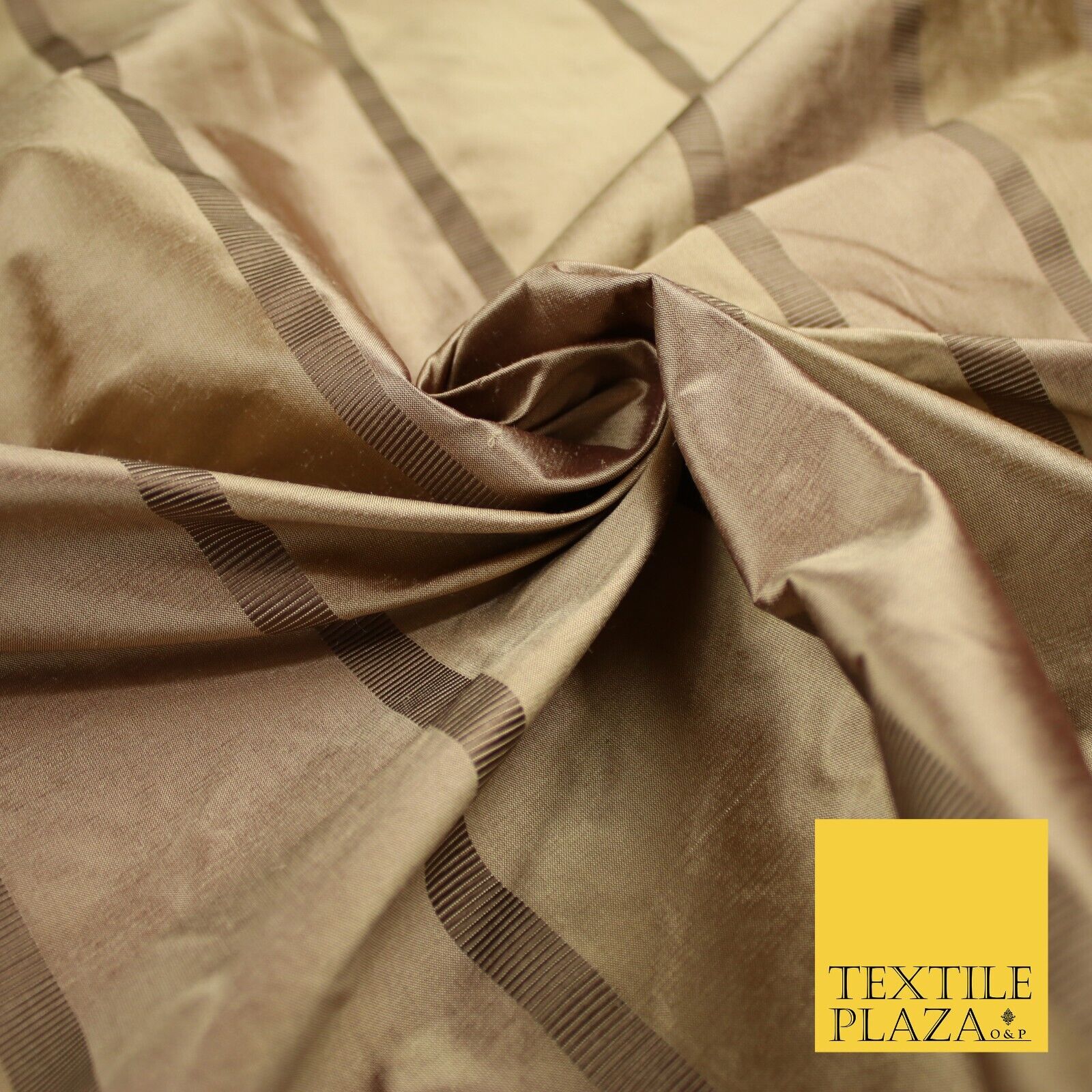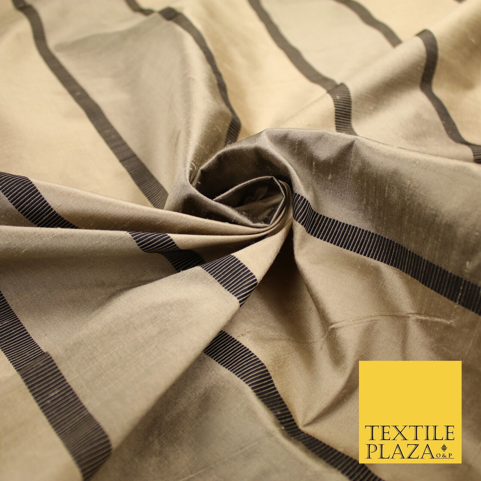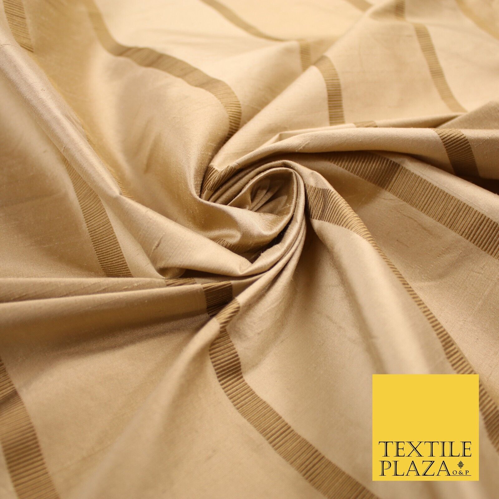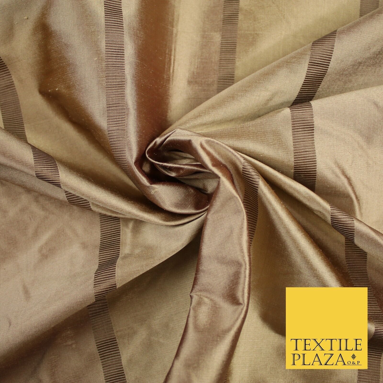 10 COLOURS - Fryetts Luxury Textured Vertical Line Striped 100% PURE SILK Fabric