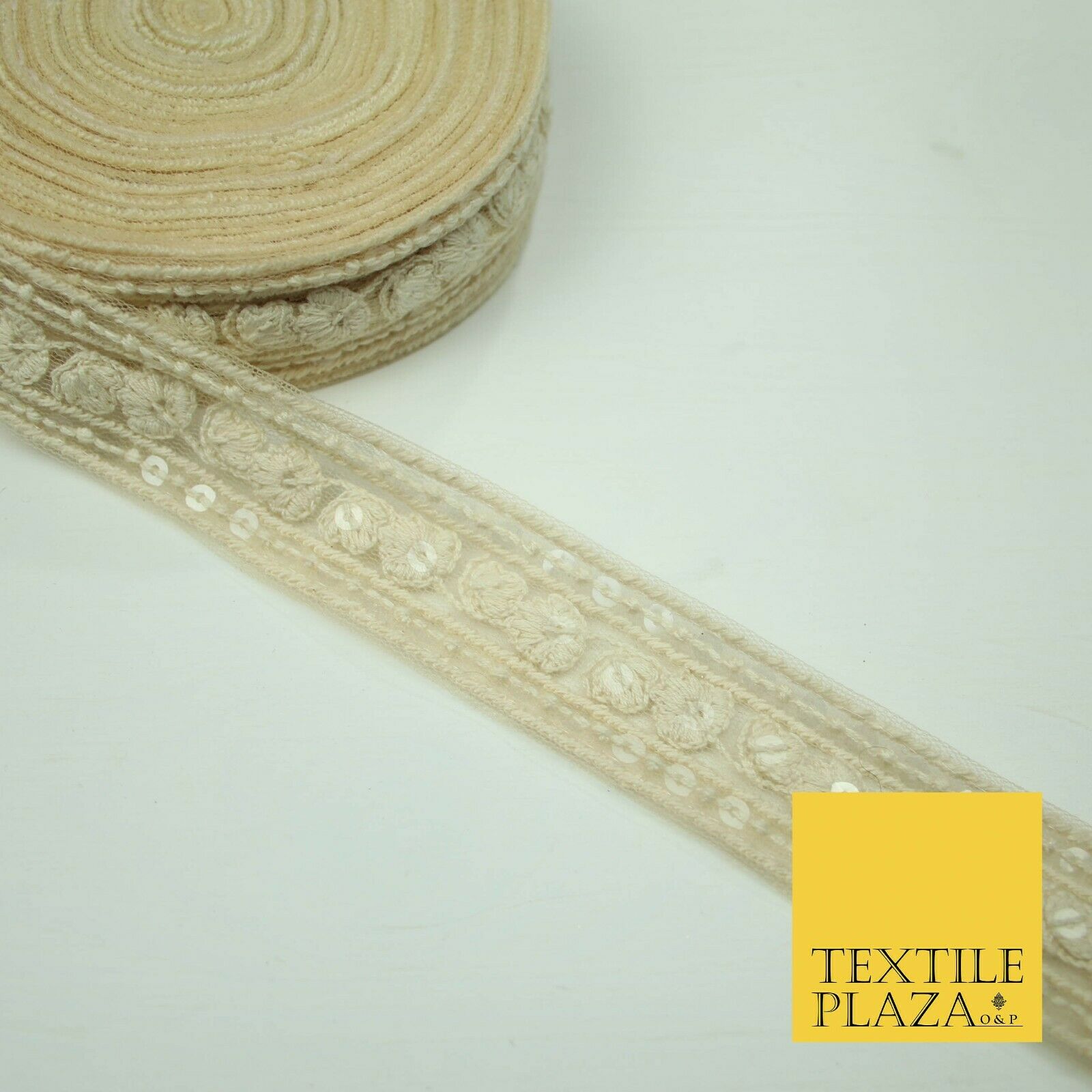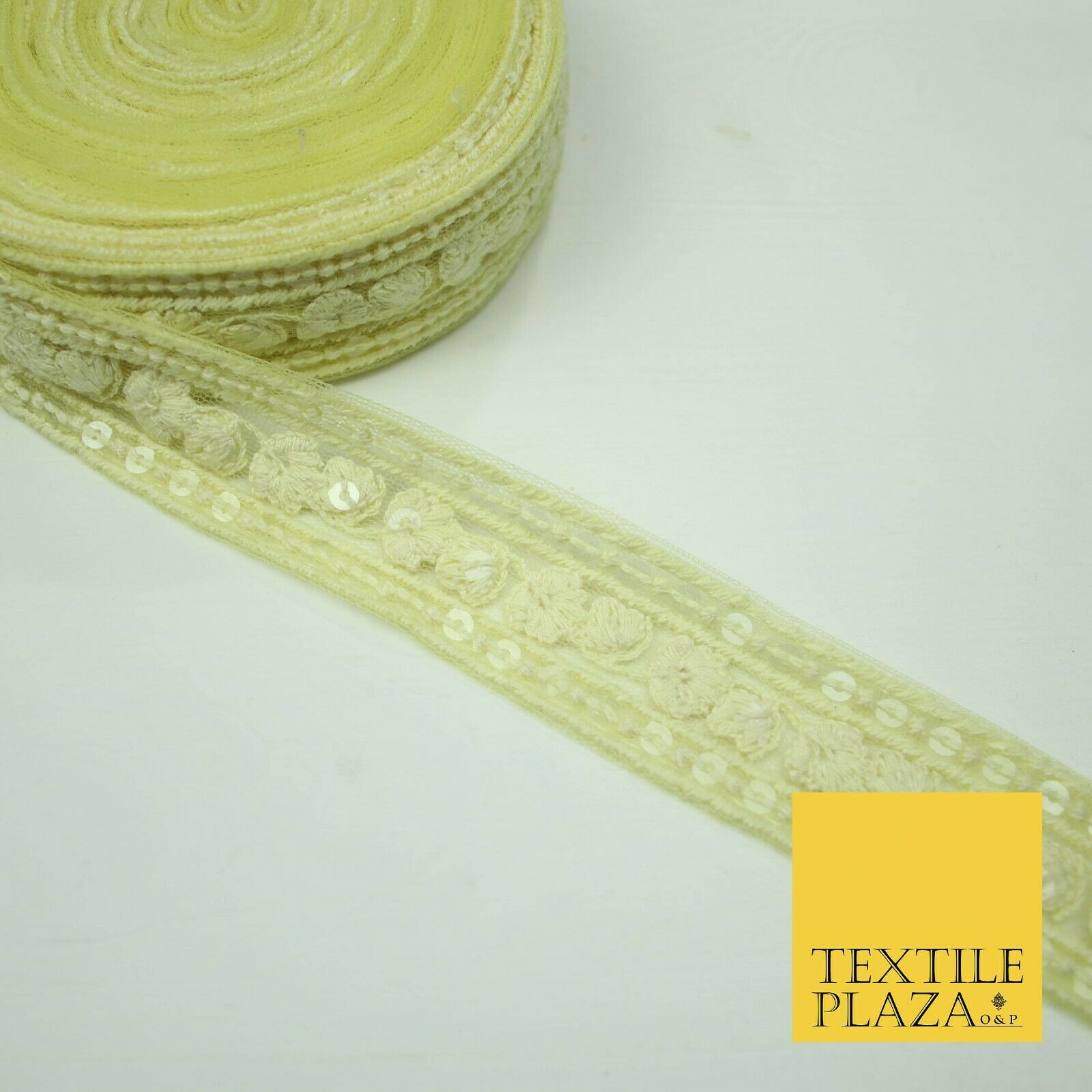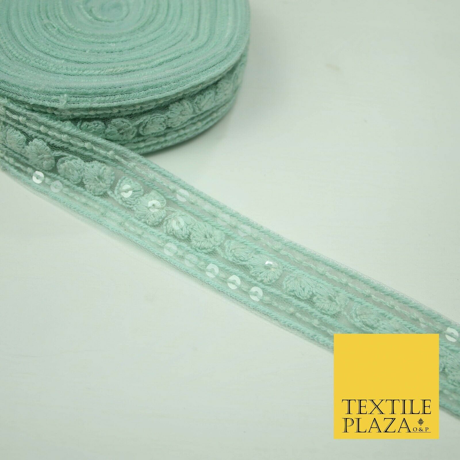10 PASTEL COLOURS Soft Thread Floral Sequin Ribbon Trim Border Lace - Per Metre