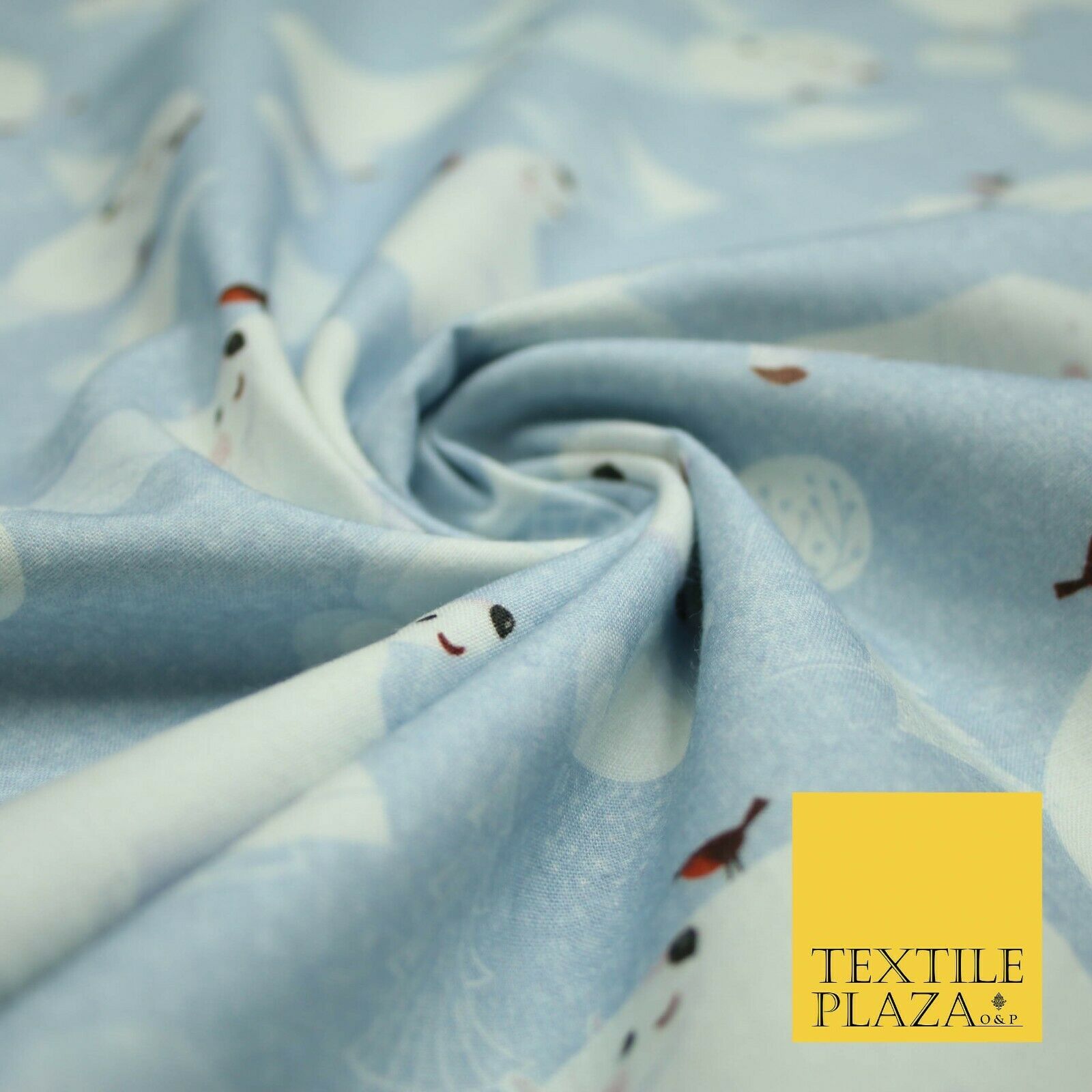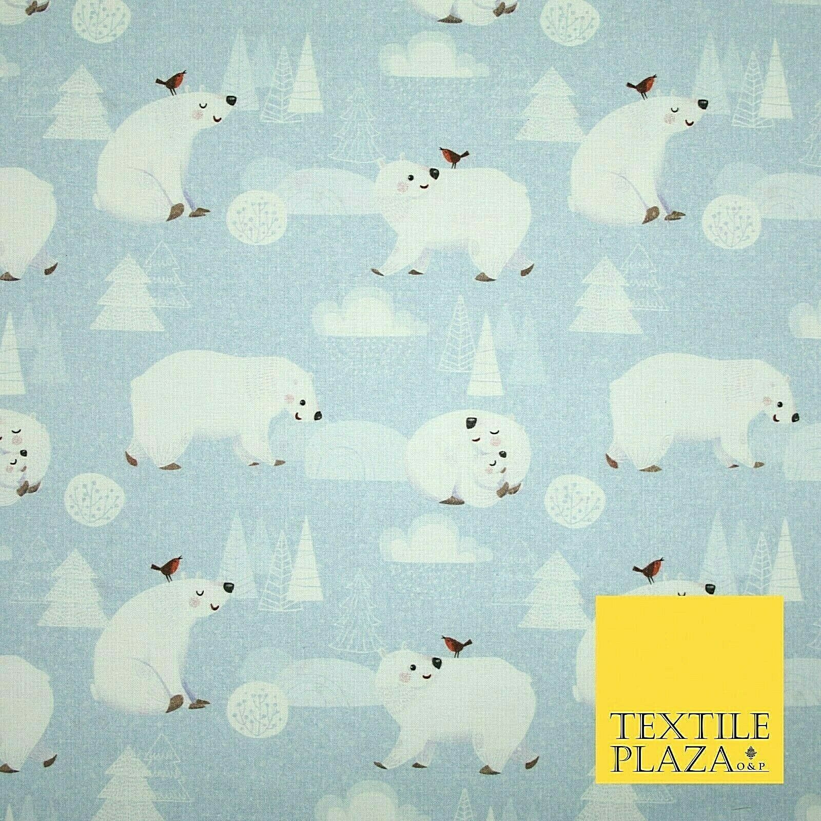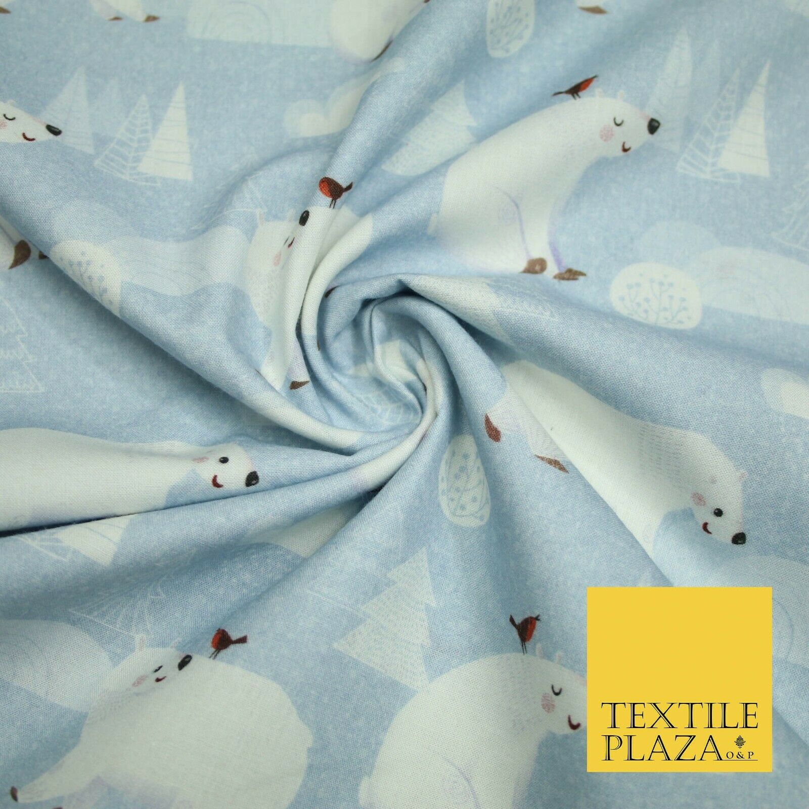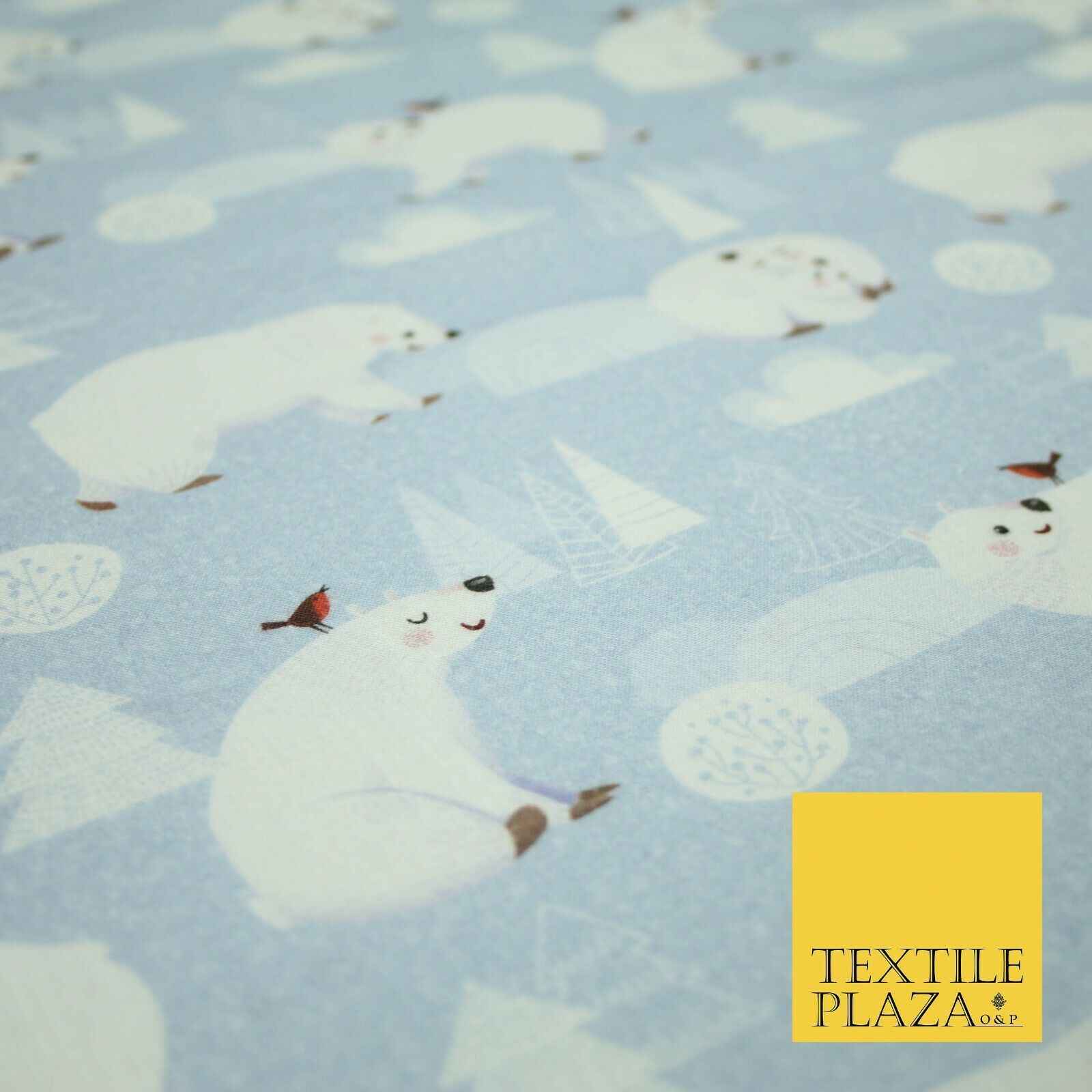 100% Cotton Polar Bear Robin Festive Christmas Winter Printed Fabric 58" 4967