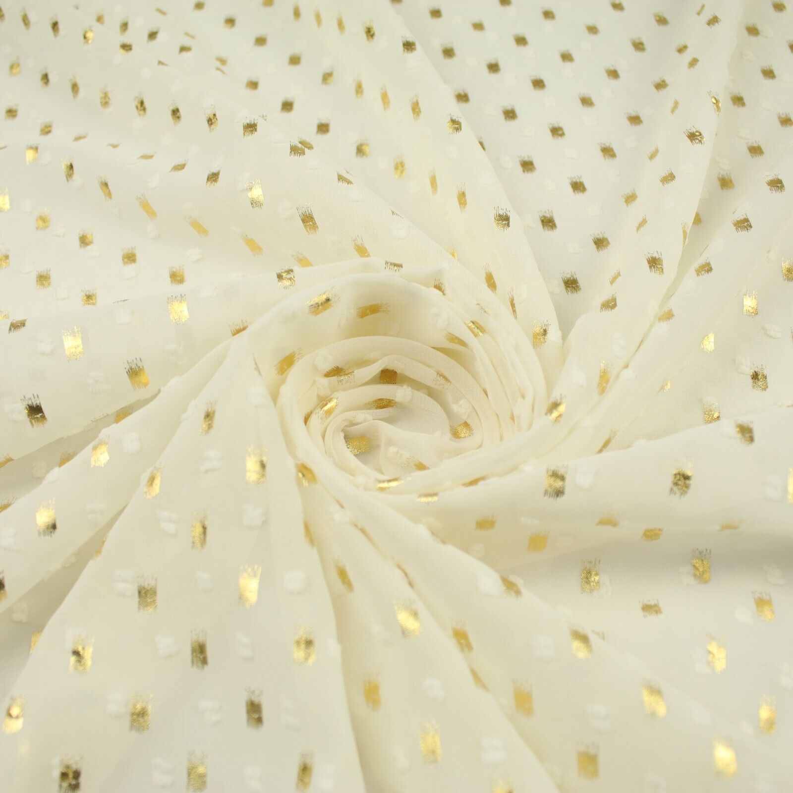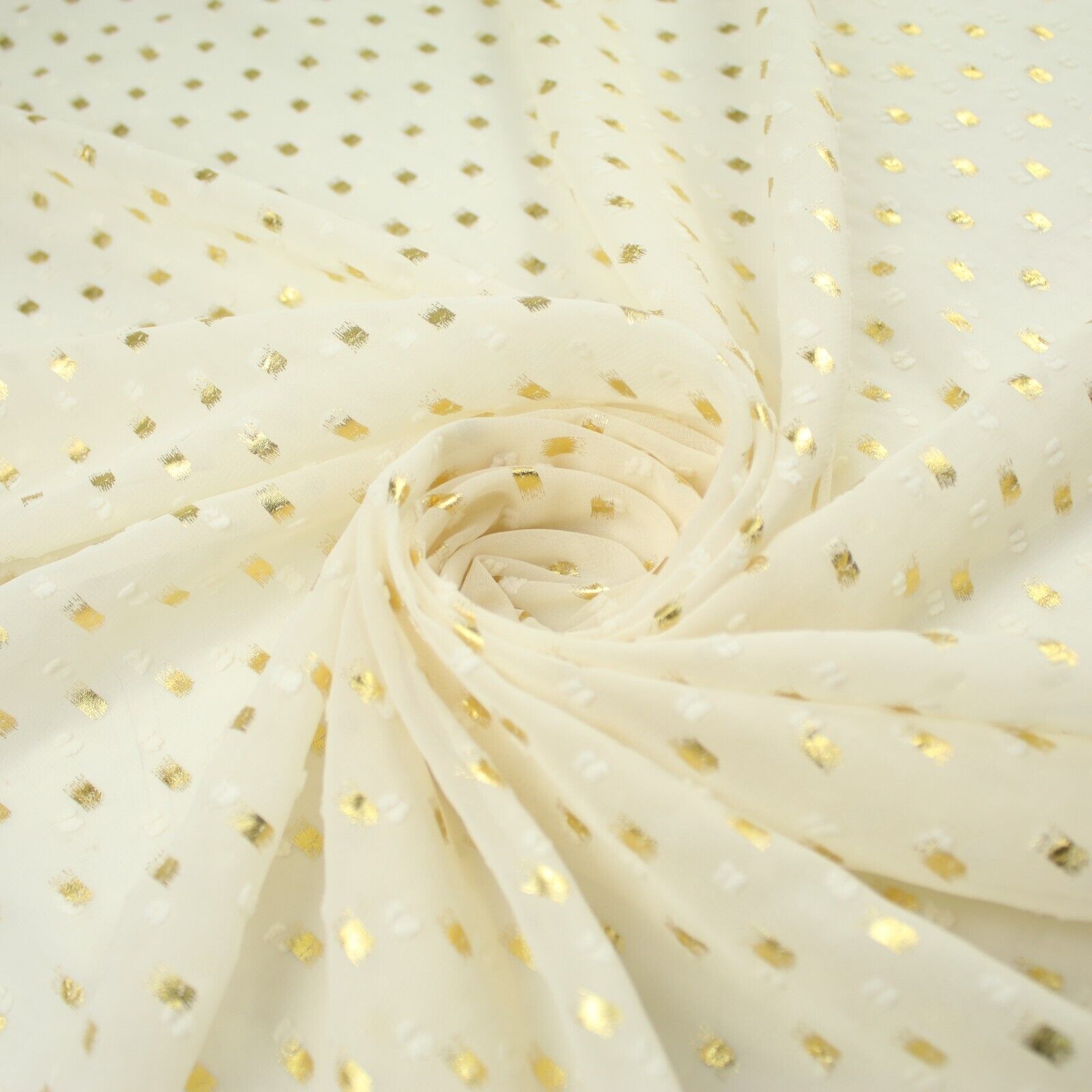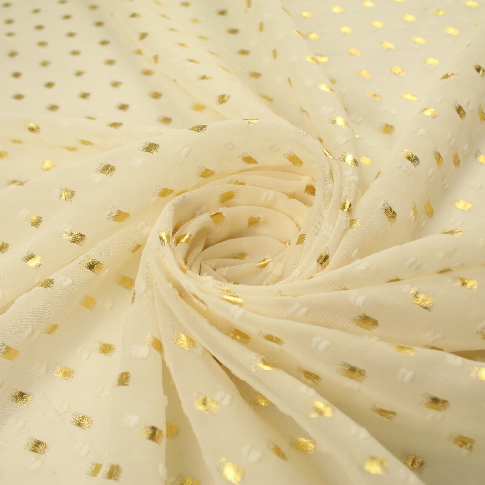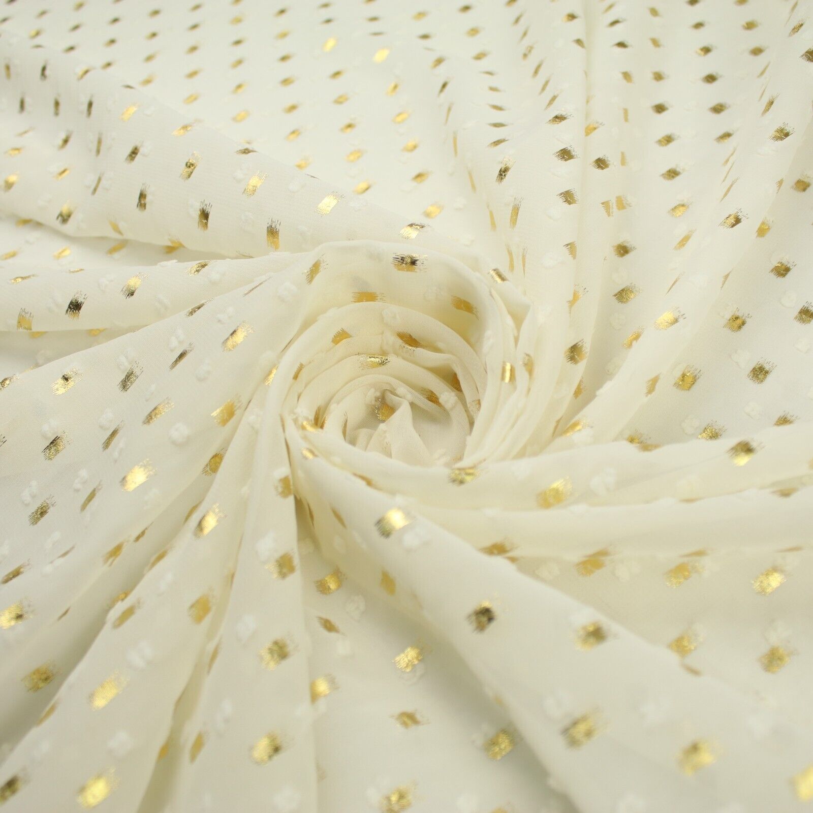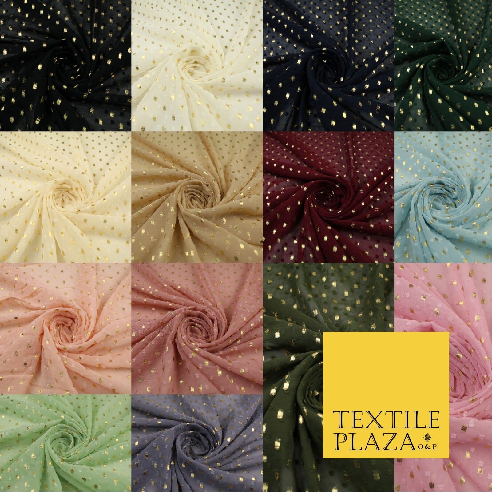 14 COLOURS - Swiss Knot Gold Foil Dot Dobby Sheer Georgette Chiffon Fabric 58"