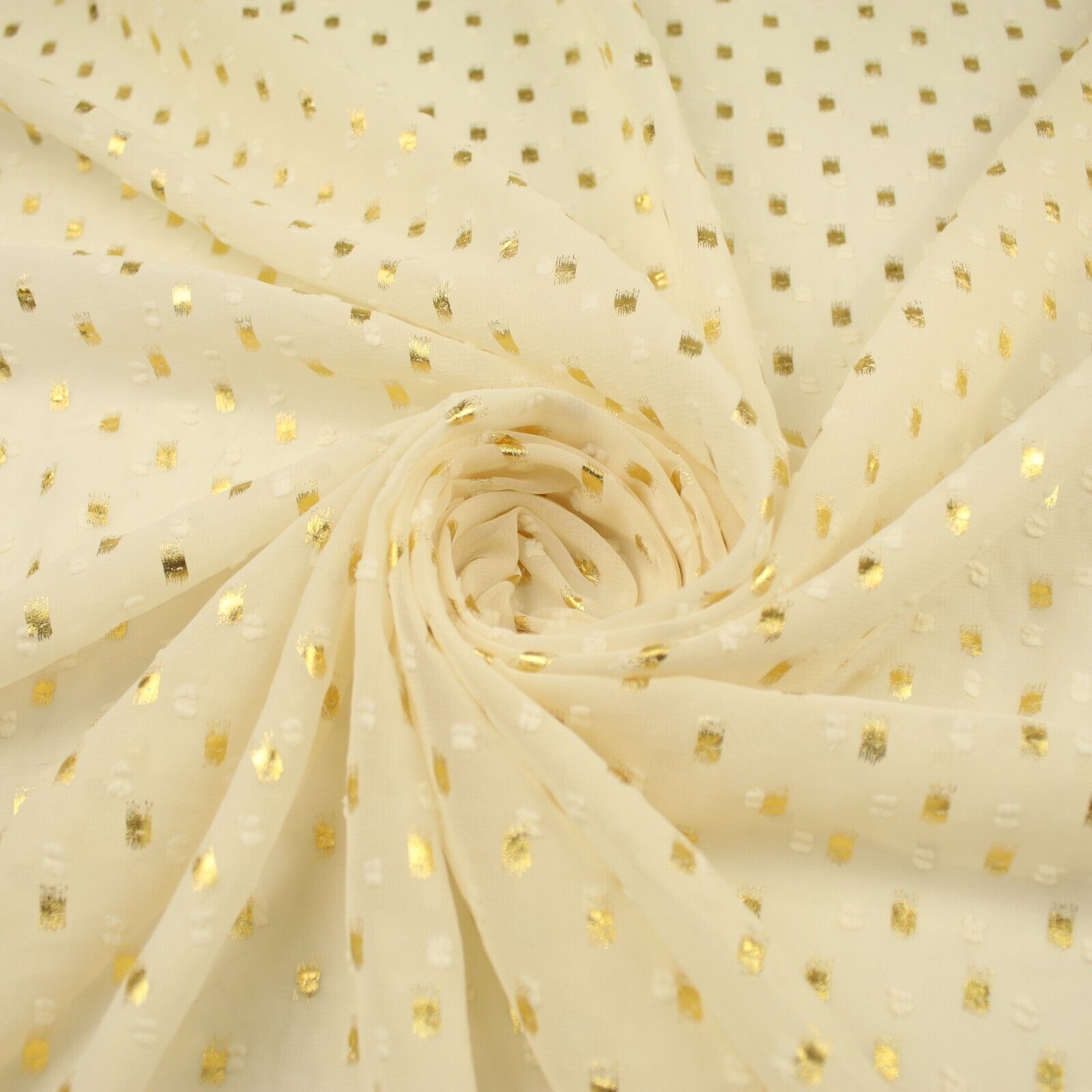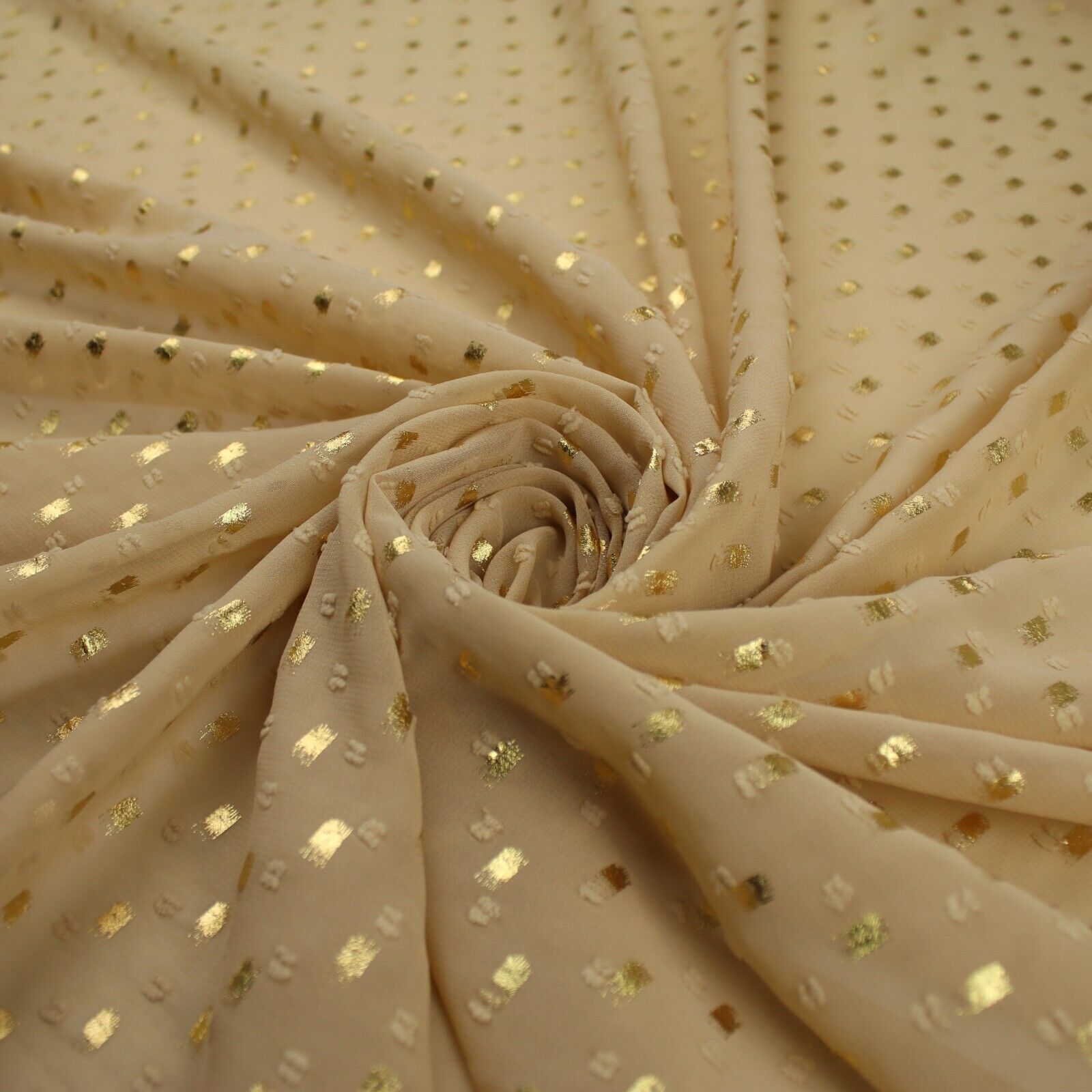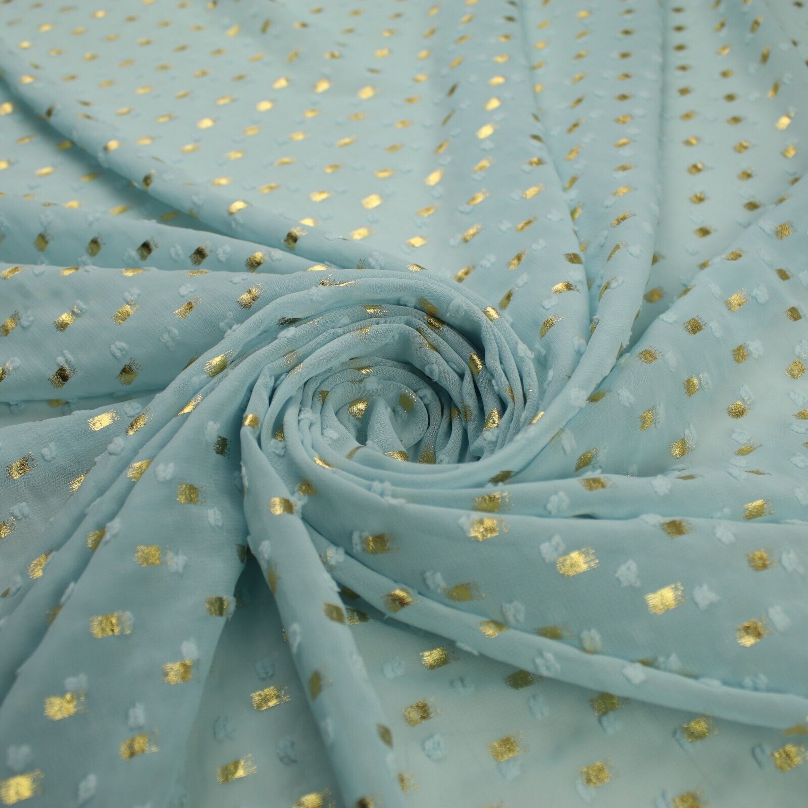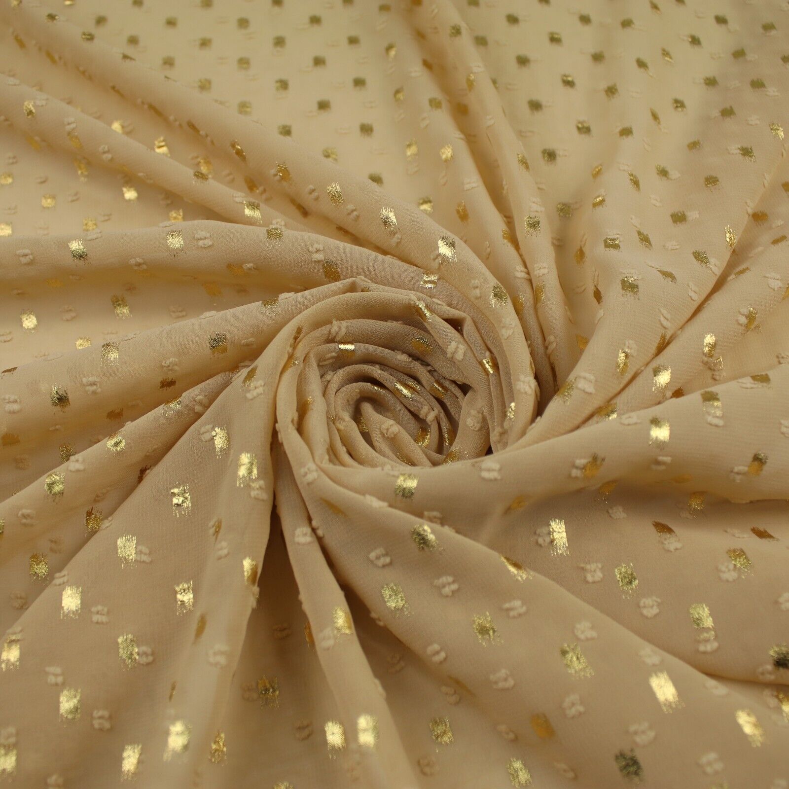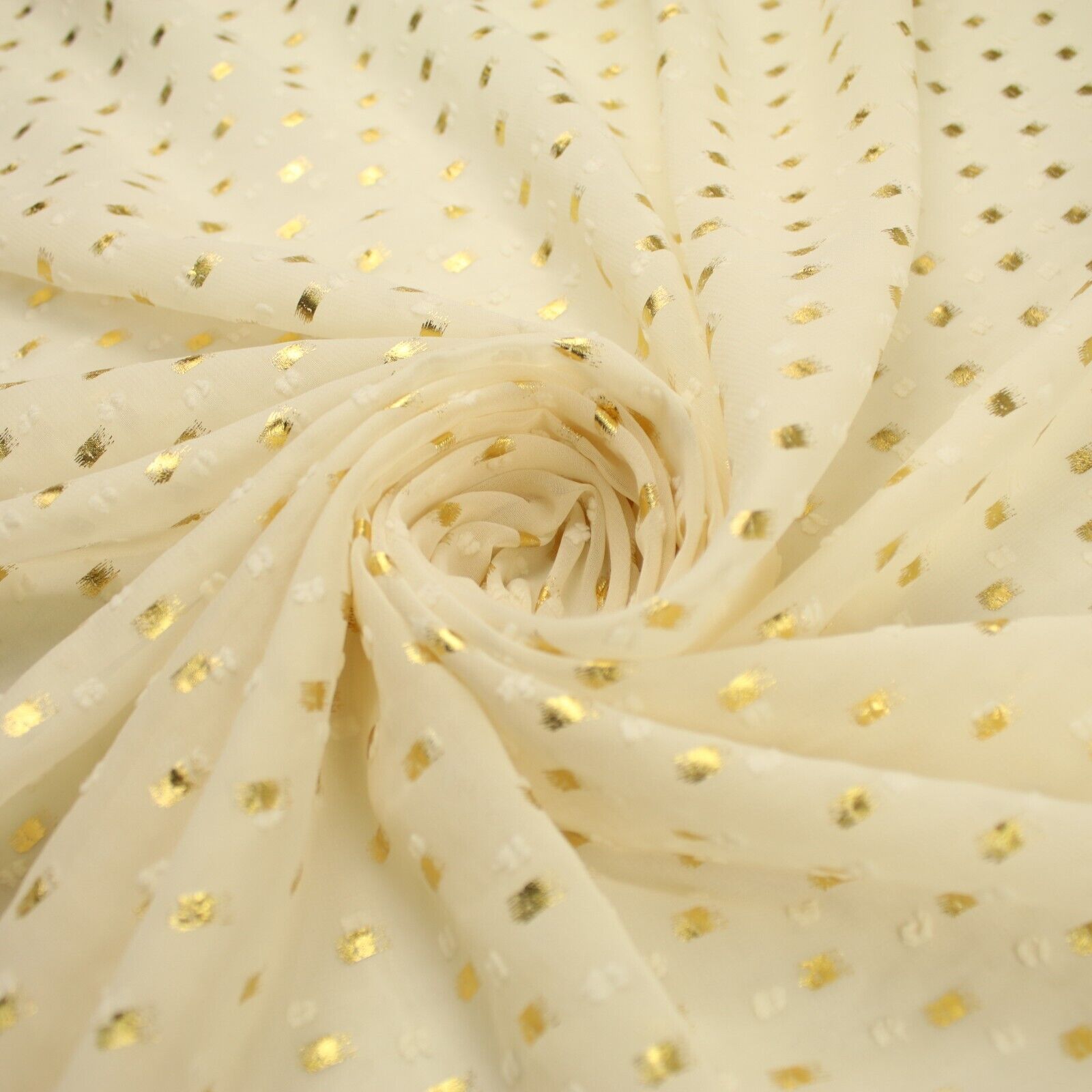 14 COLOURS - Swiss Knot Gold Foil Dot Dobby Sheer Georgette Chiffon Fabric 58"