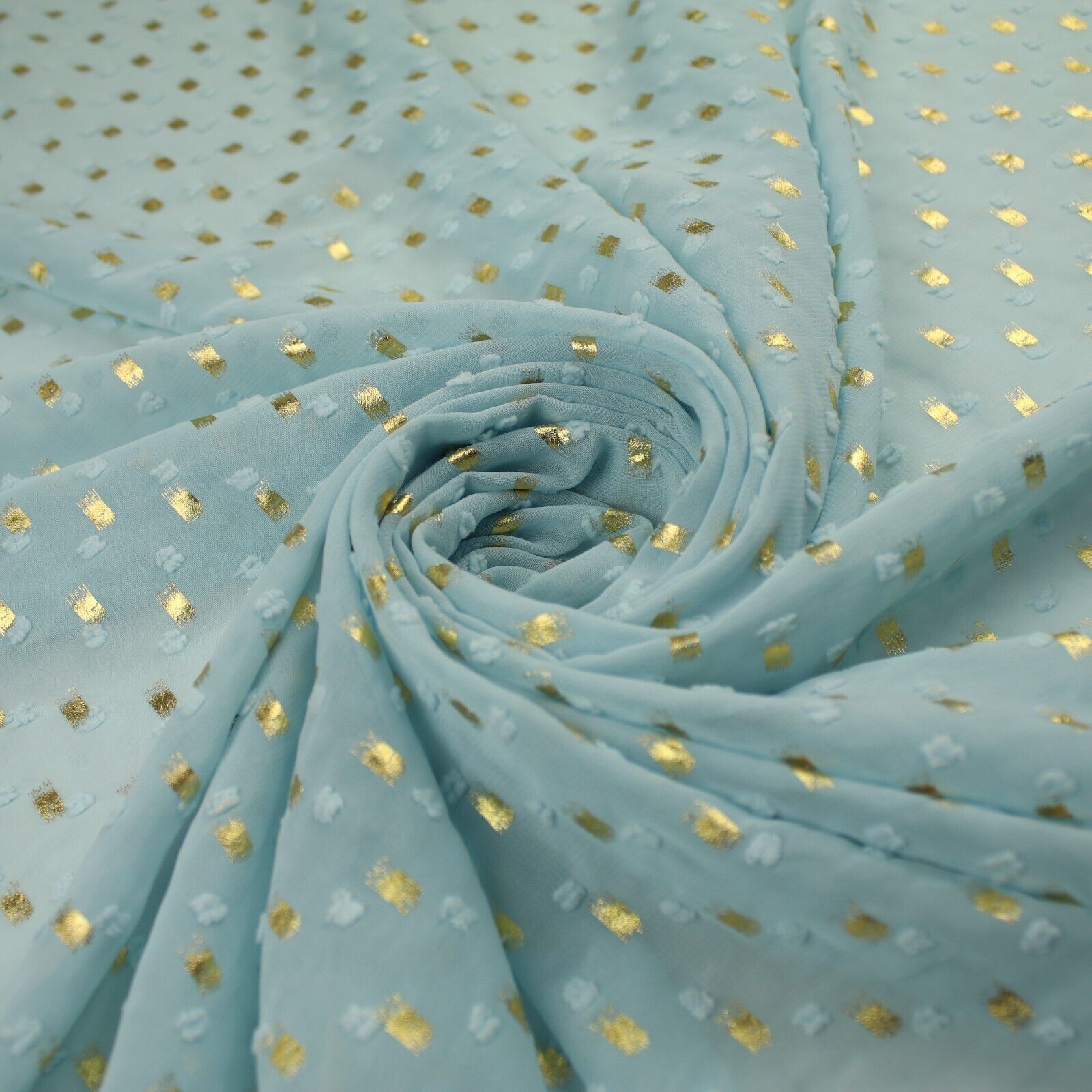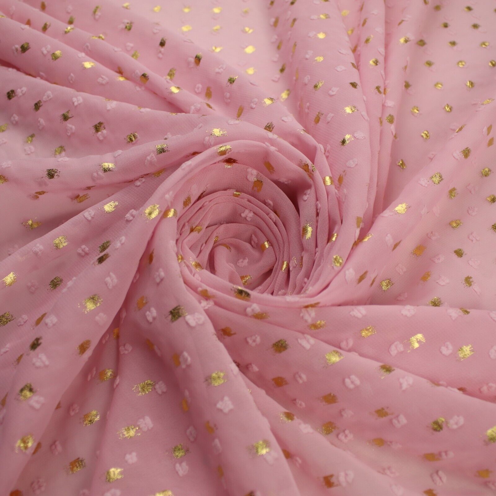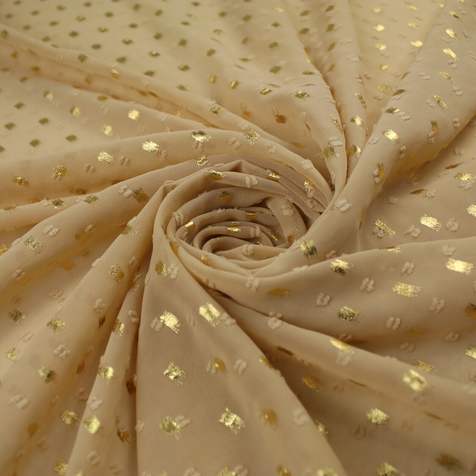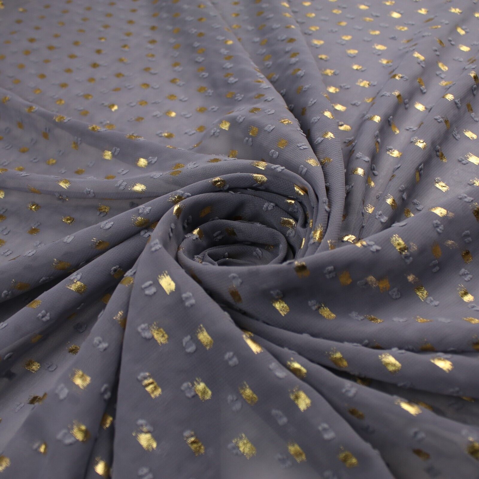 14 COLOURS - Swiss Knot Gold Foil Dot Dobby Sheer Georgette Chiffon Fabric 58"