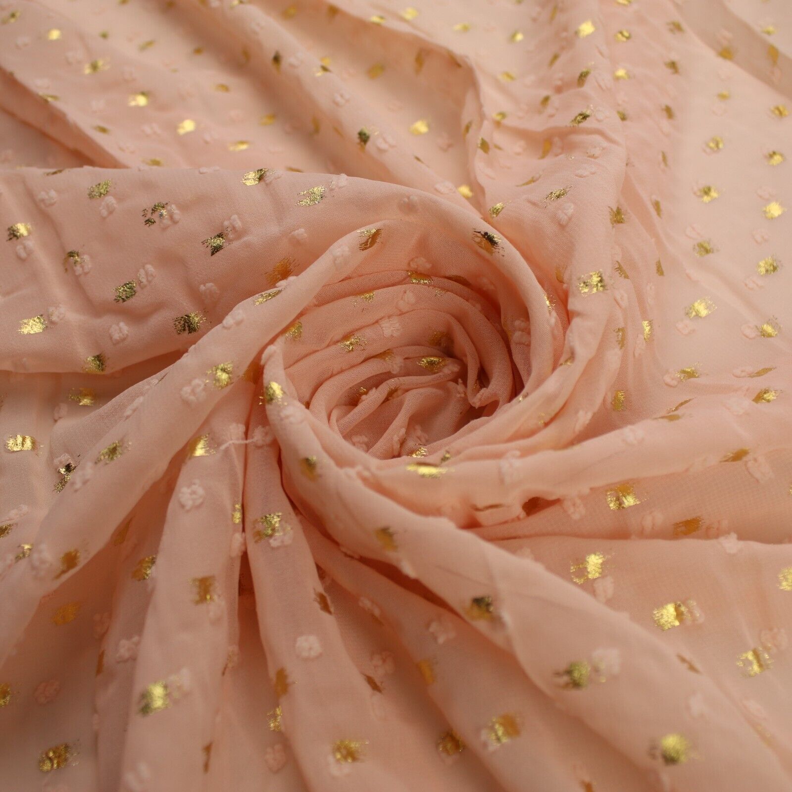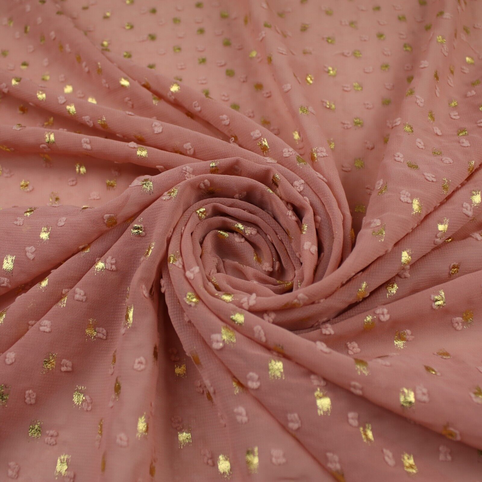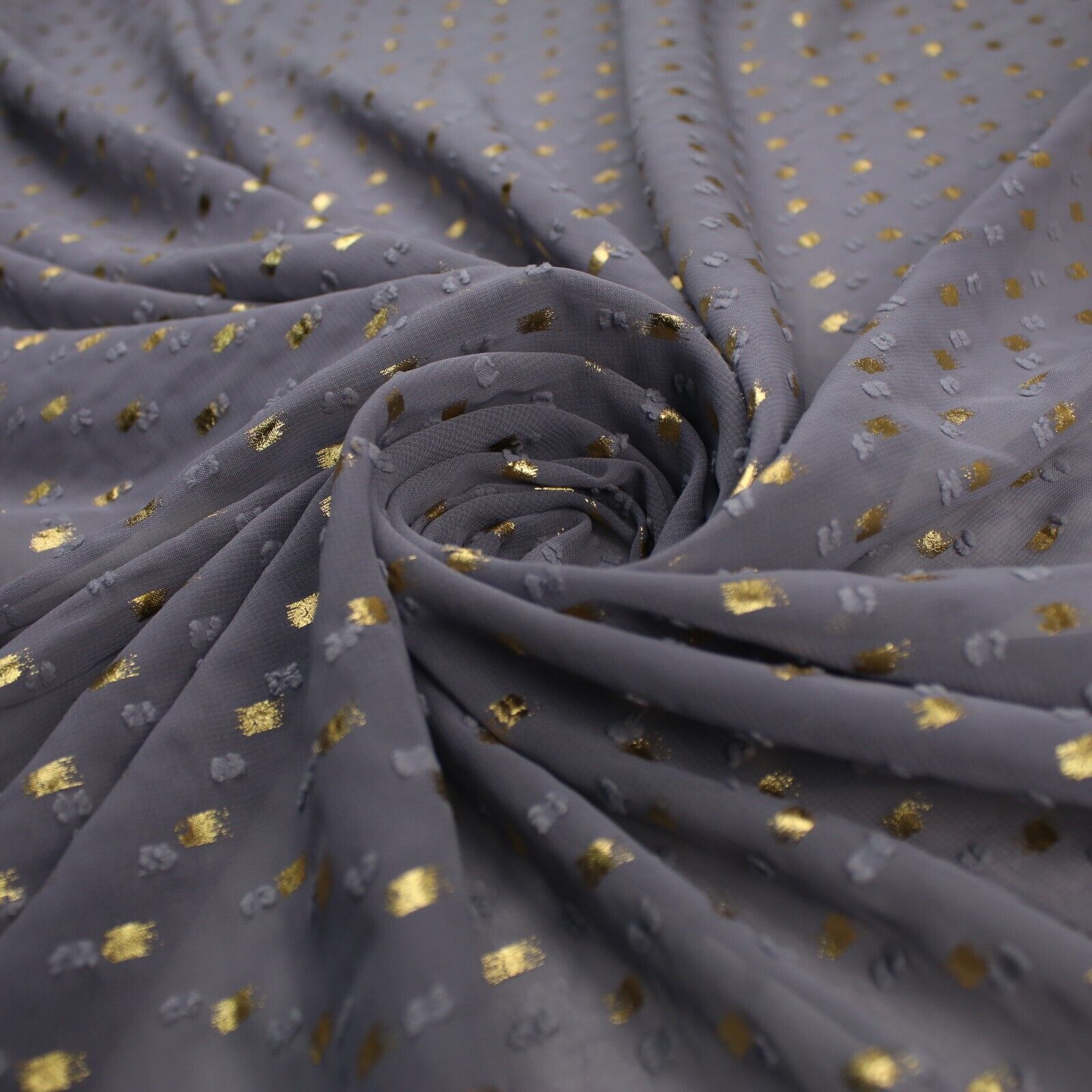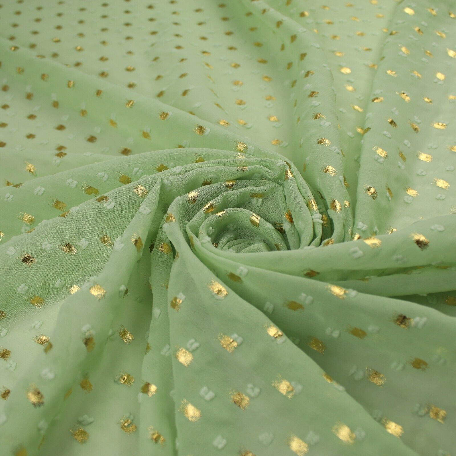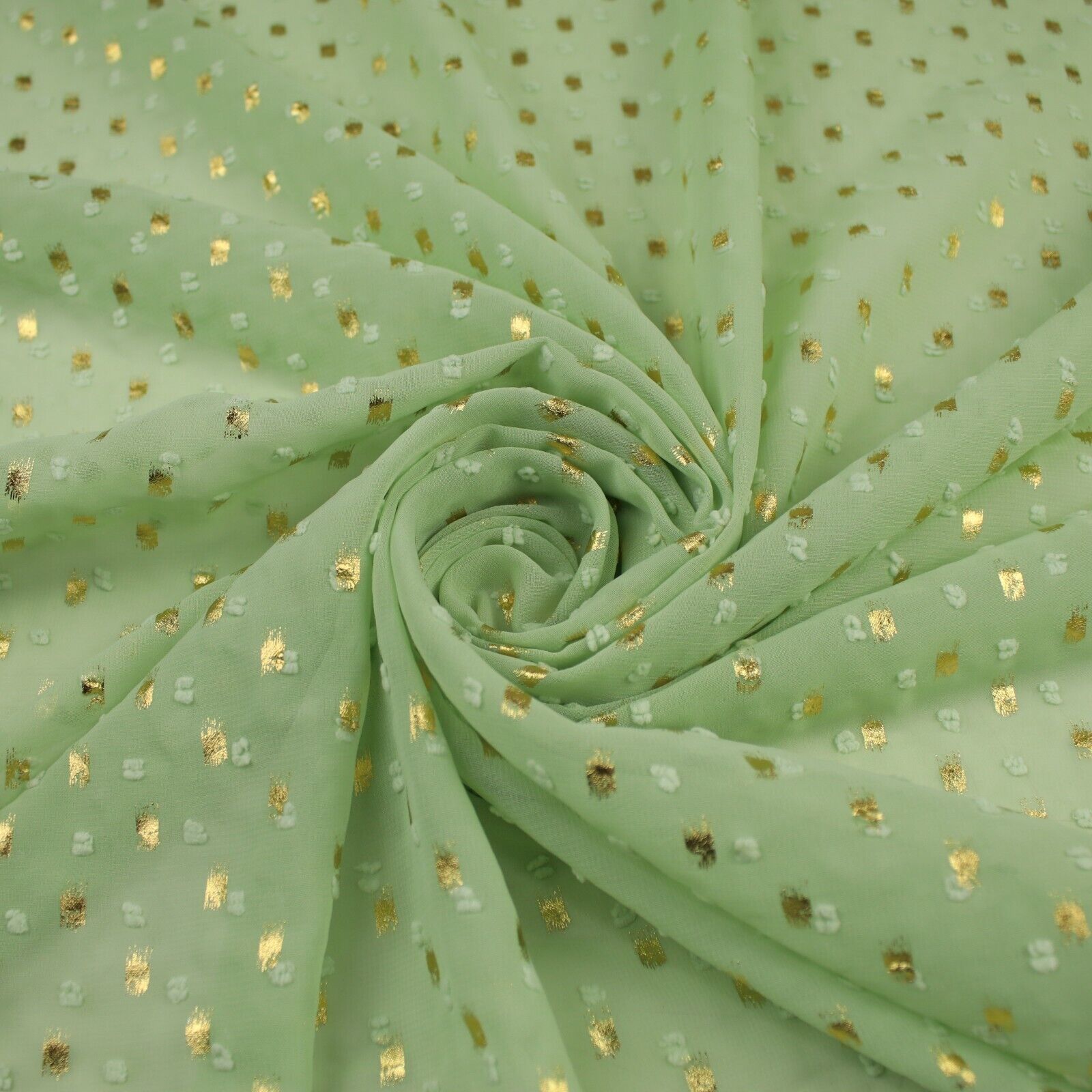 14 COLOURS - Swiss Knot Gold Foil Dot Dobby Sheer Georgette Chiffon Fabric 58"