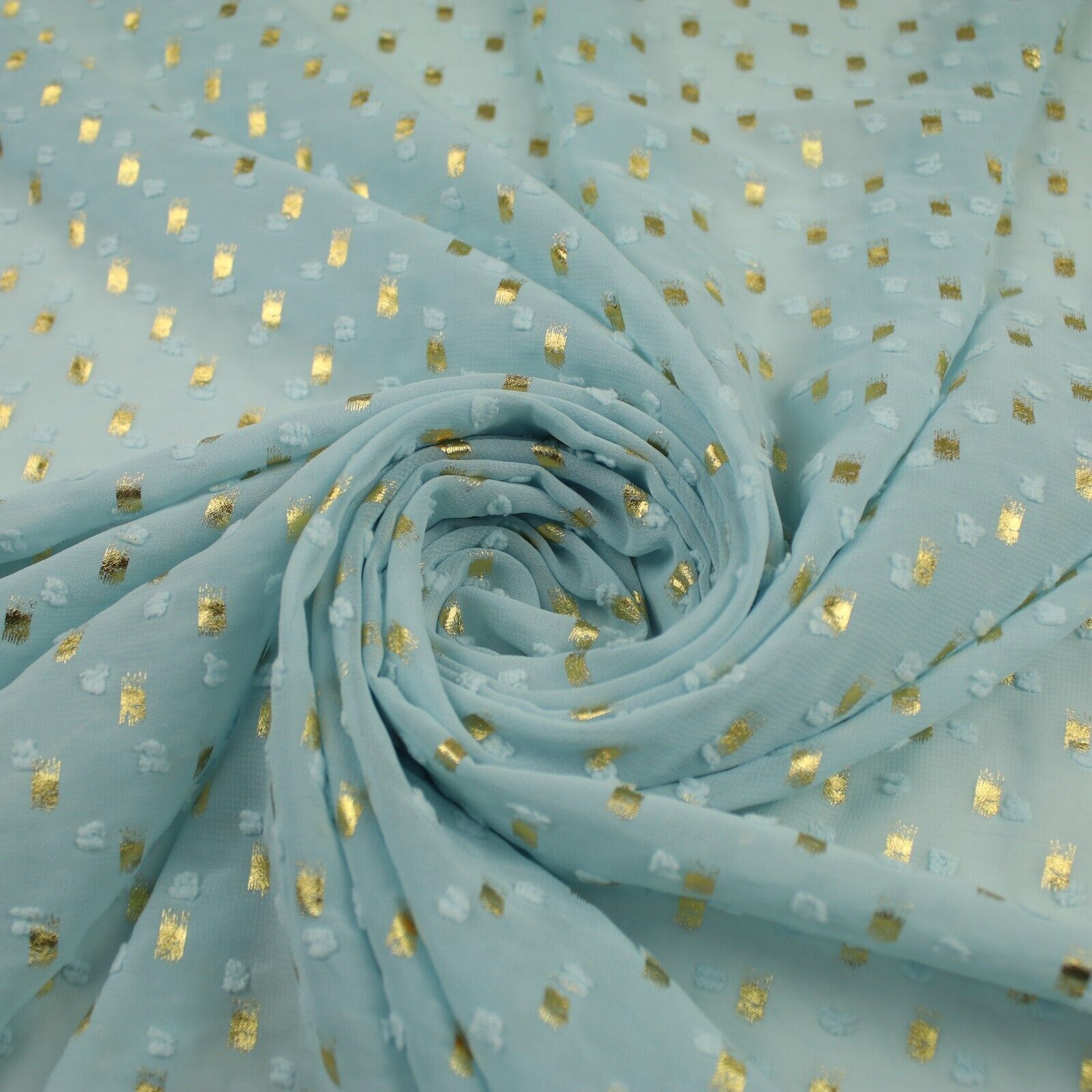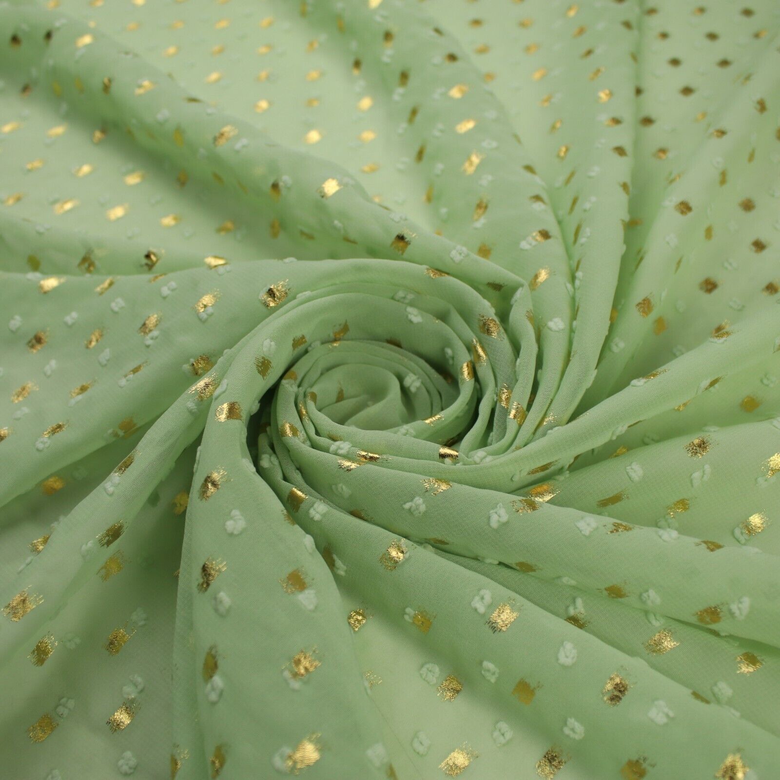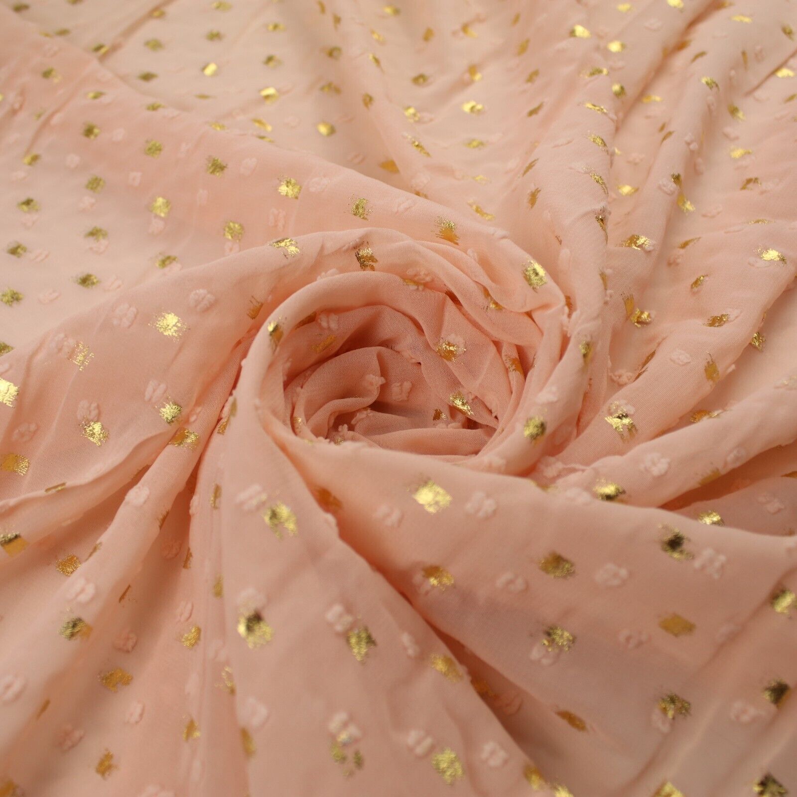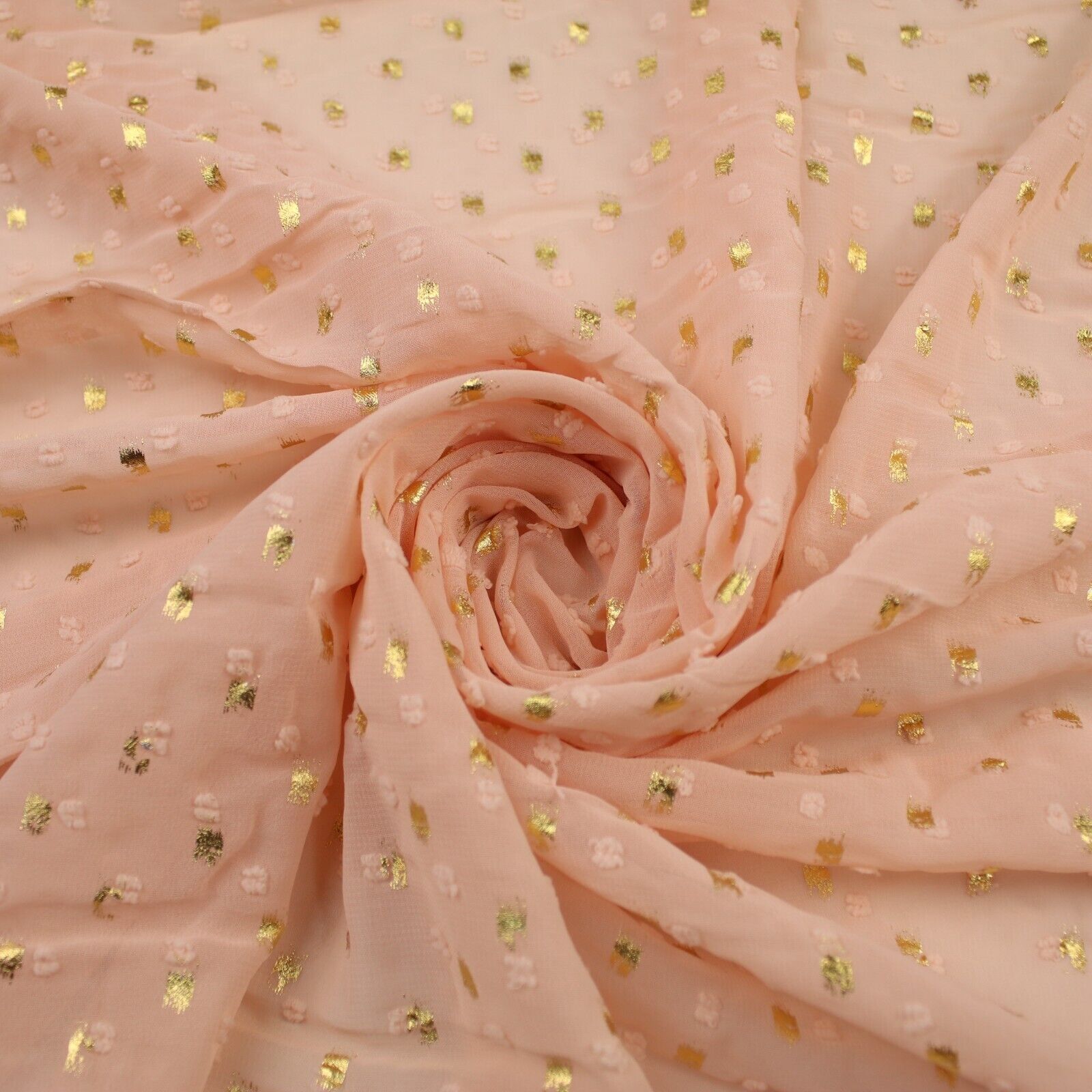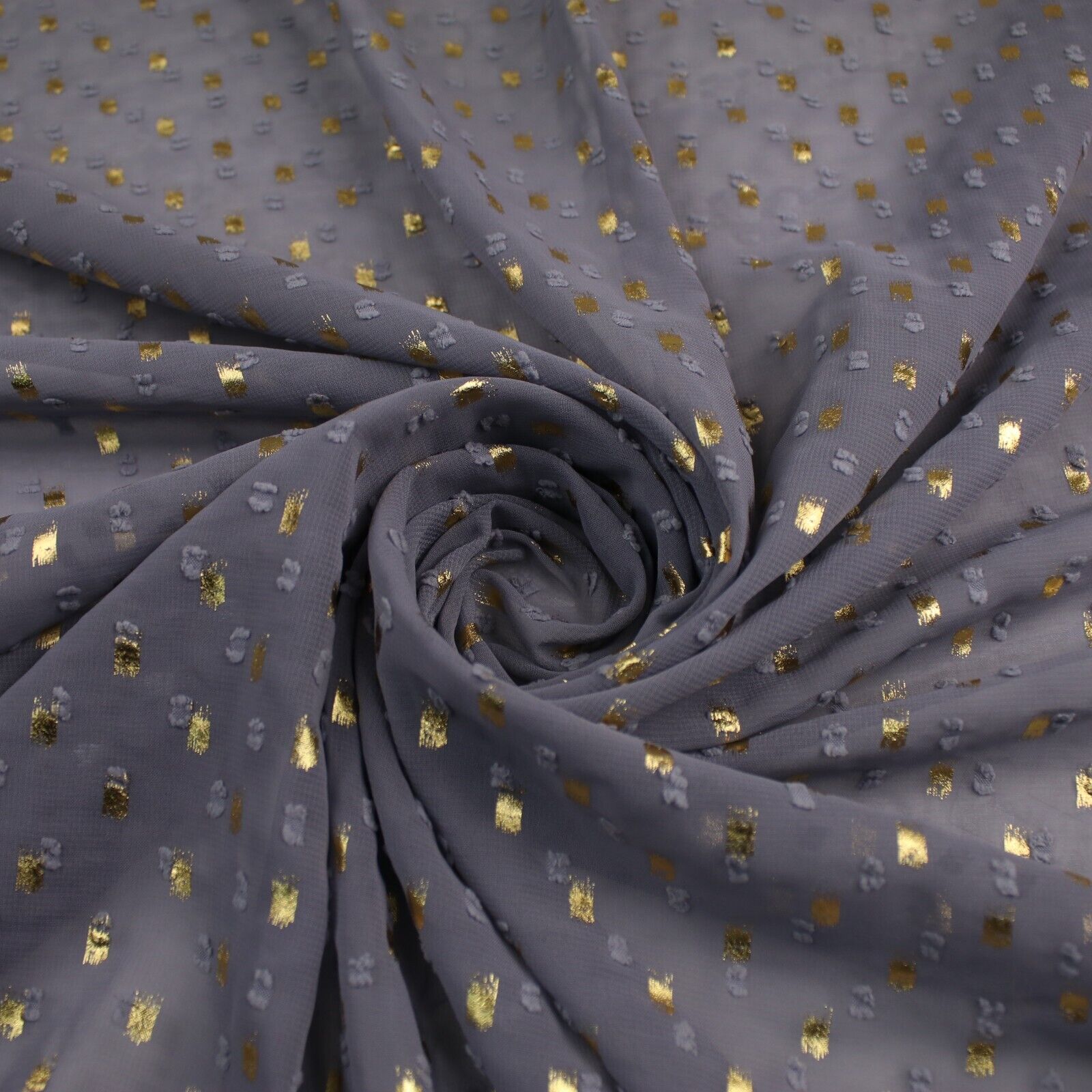 14 COLOURS - Swiss Knot Gold Foil Dot Dobby Sheer Georgette Chiffon Fabric 58"