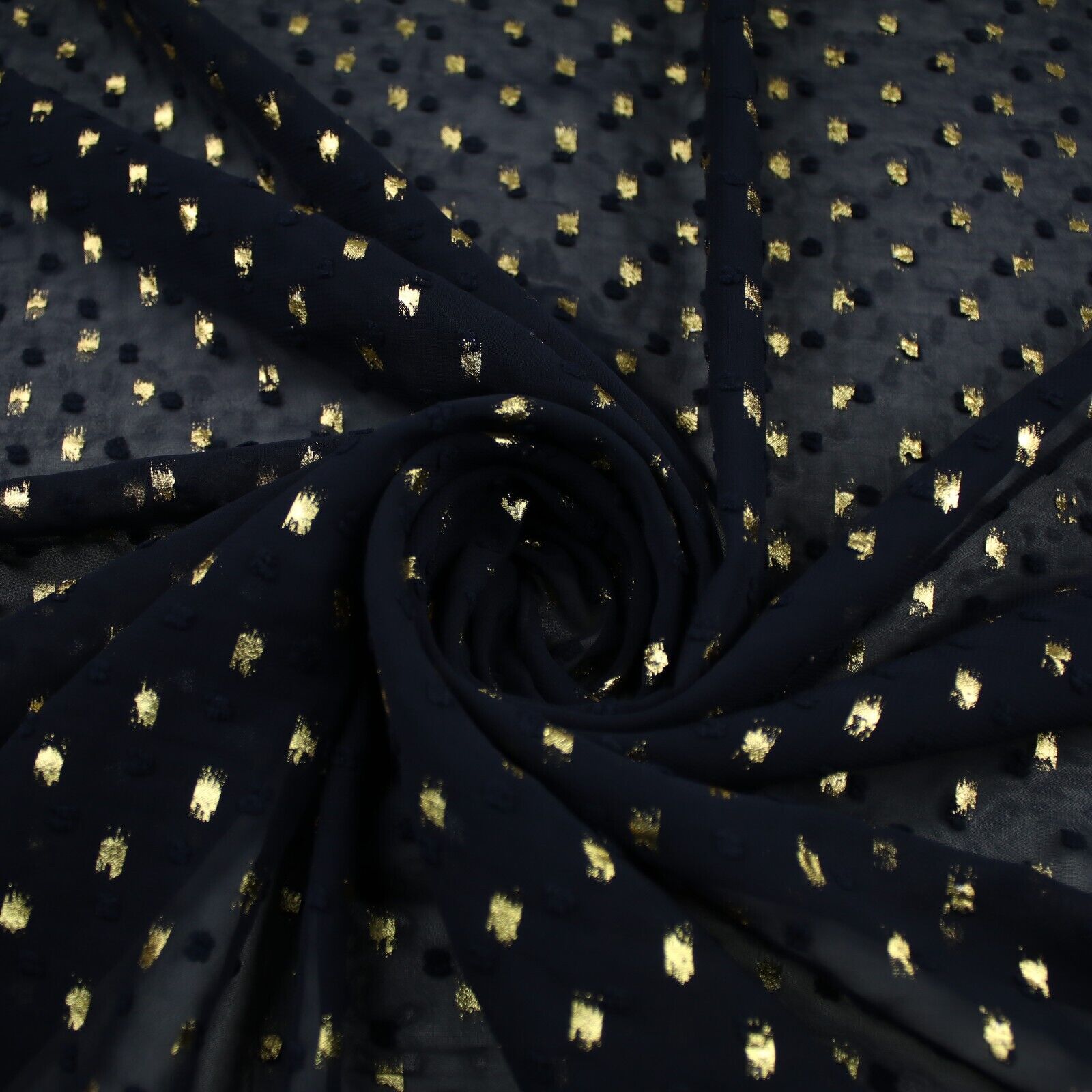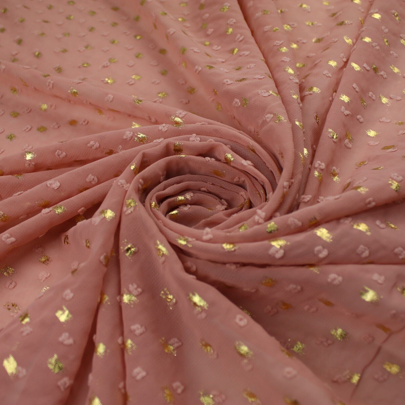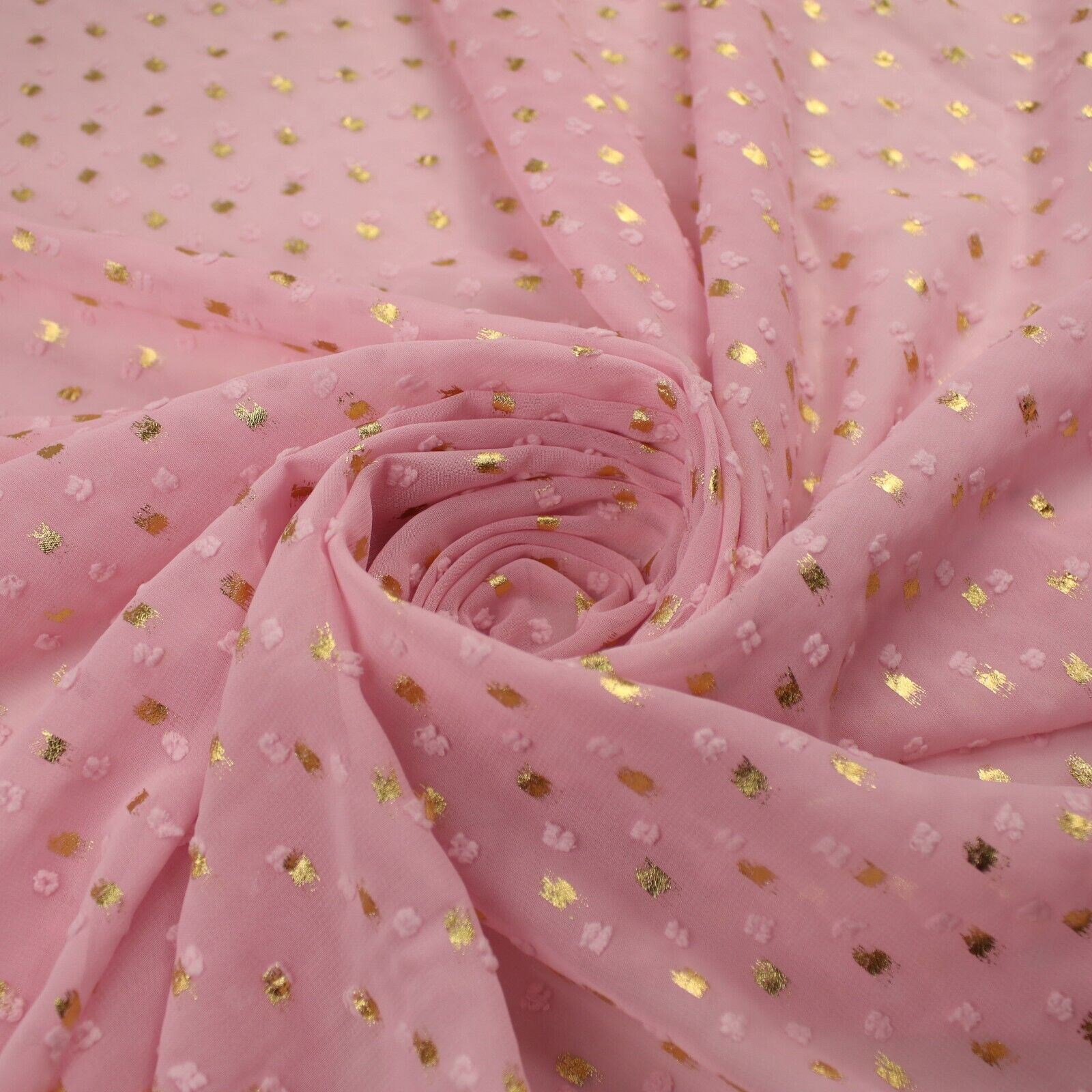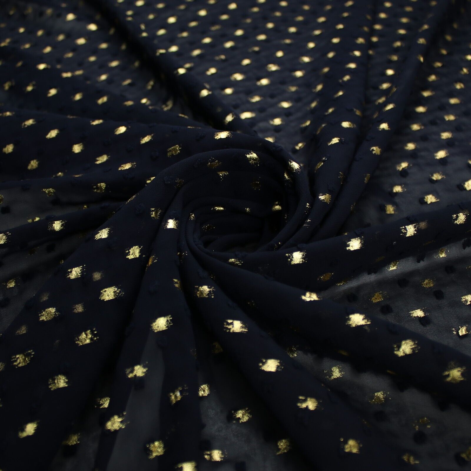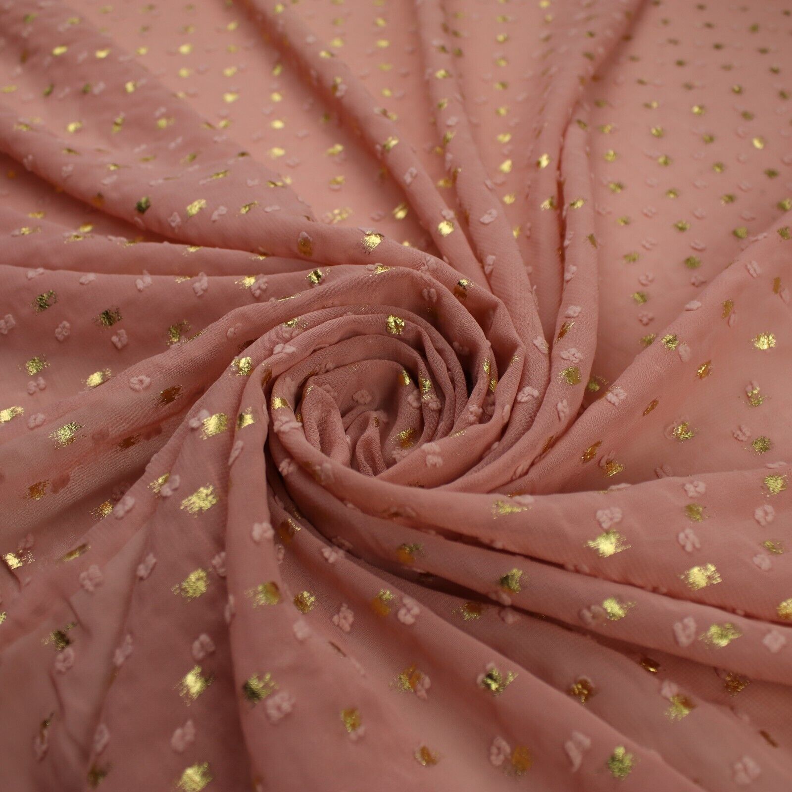 14 COLOURS - Swiss Knot Gold Foil Dot Dobby Sheer Georgette Chiffon Fabric 58"