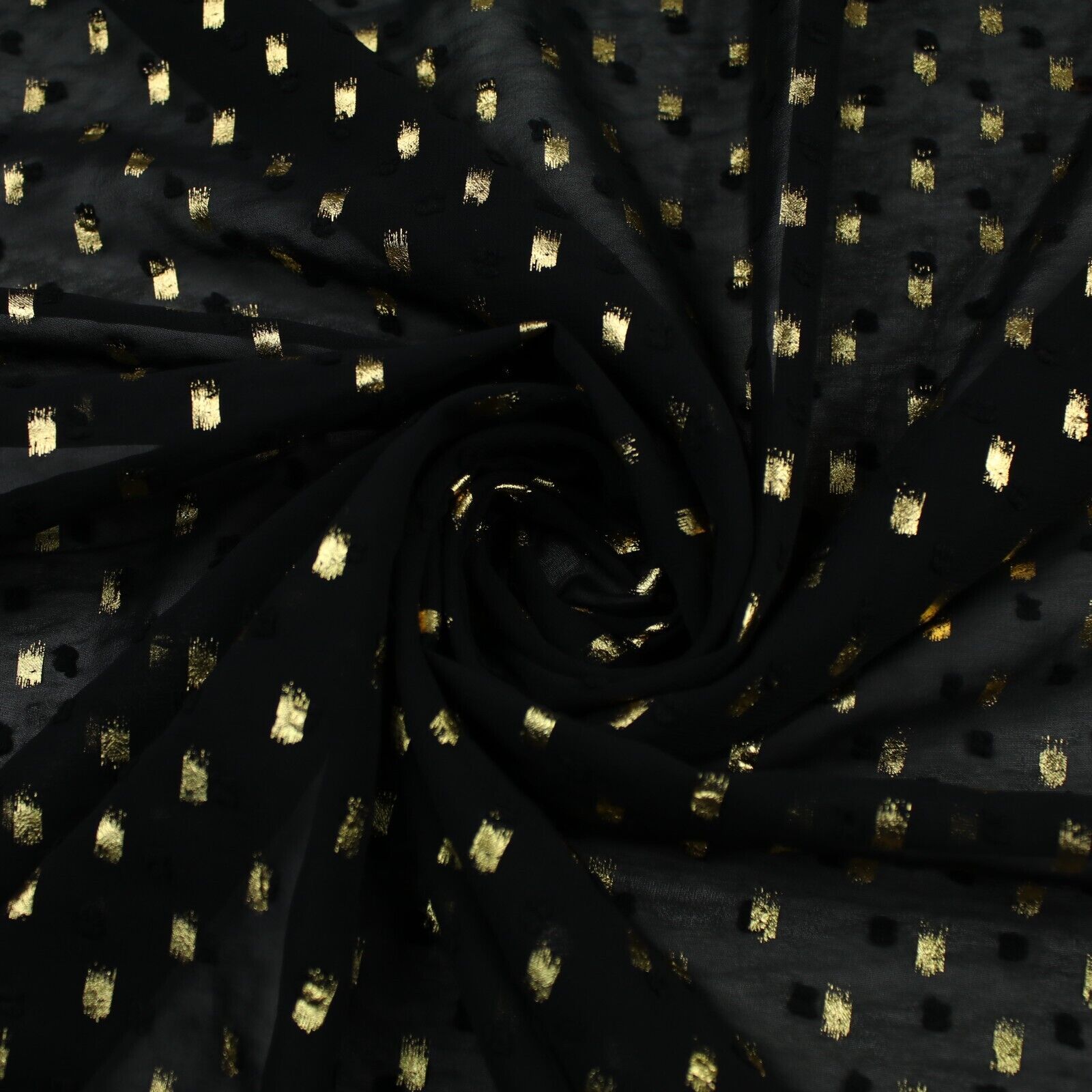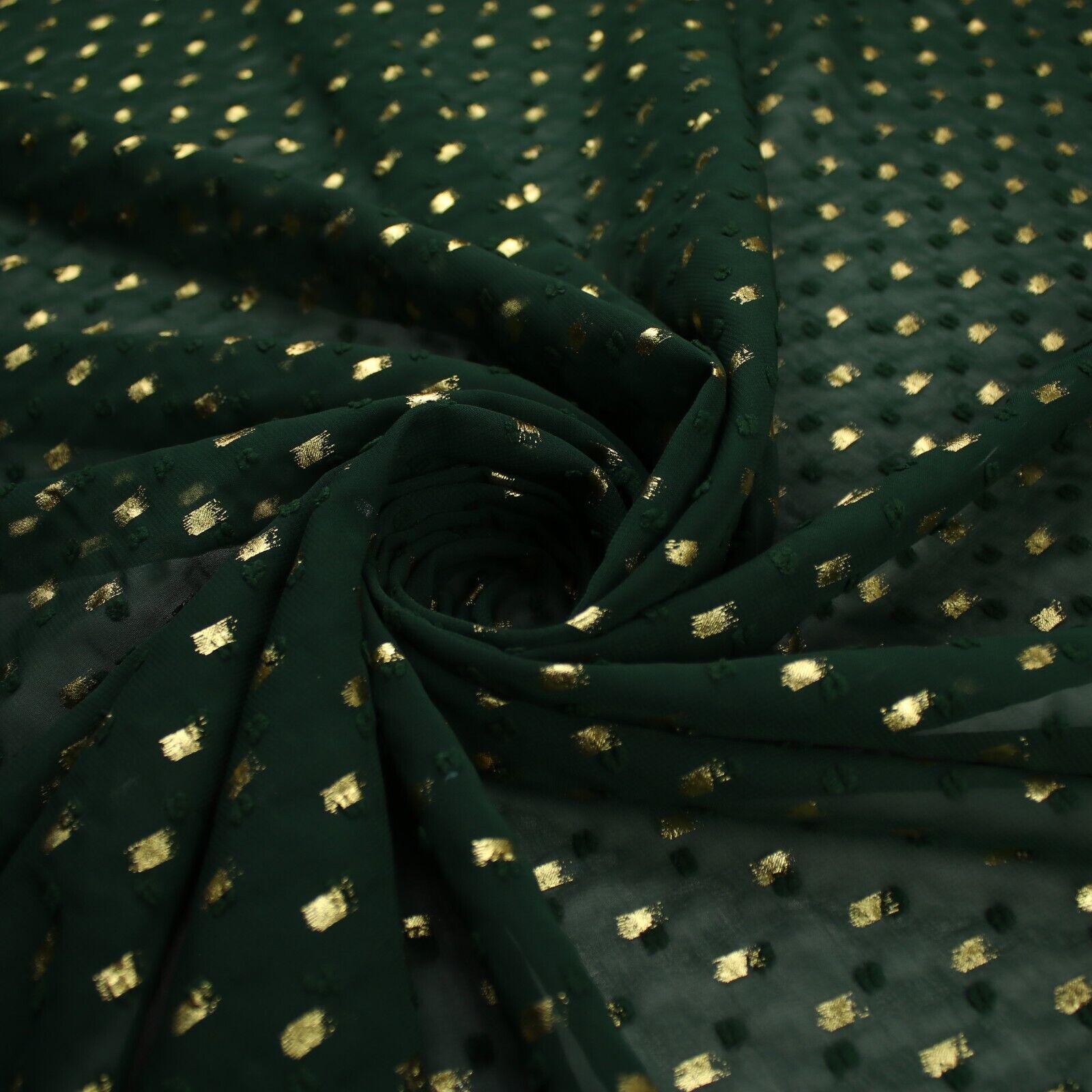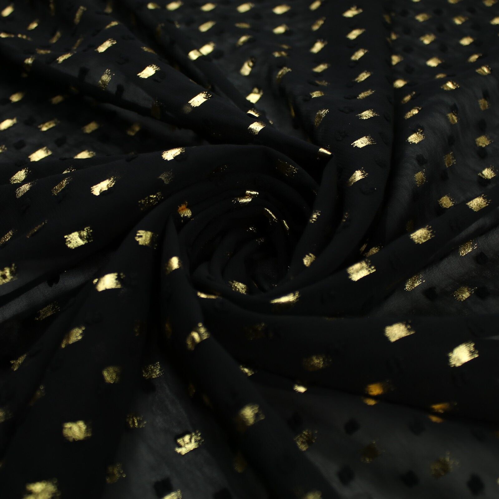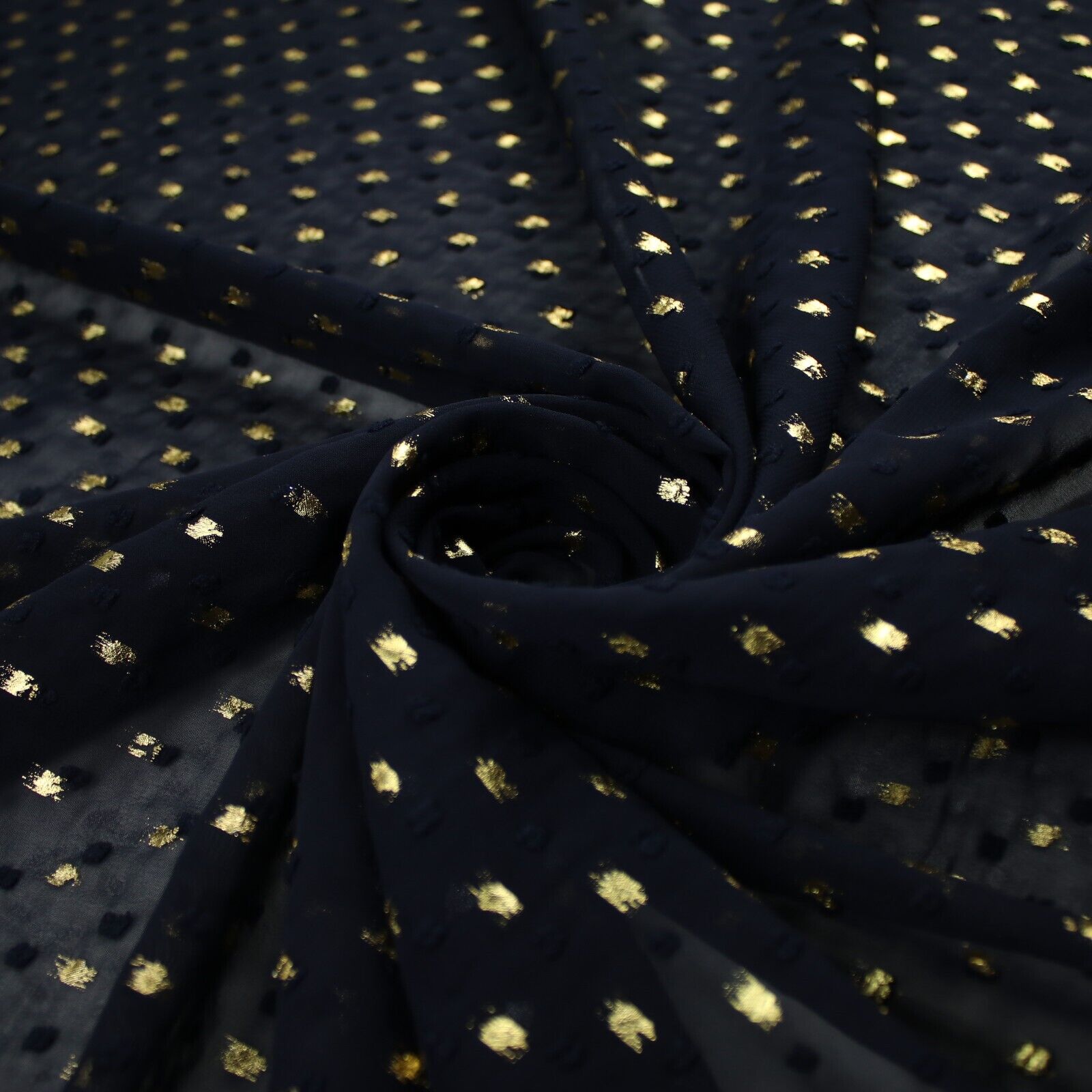 14 COLOURS - Swiss Knot Gold Foil Dot Dobby Sheer Georgette Chiffon Fabric 58"