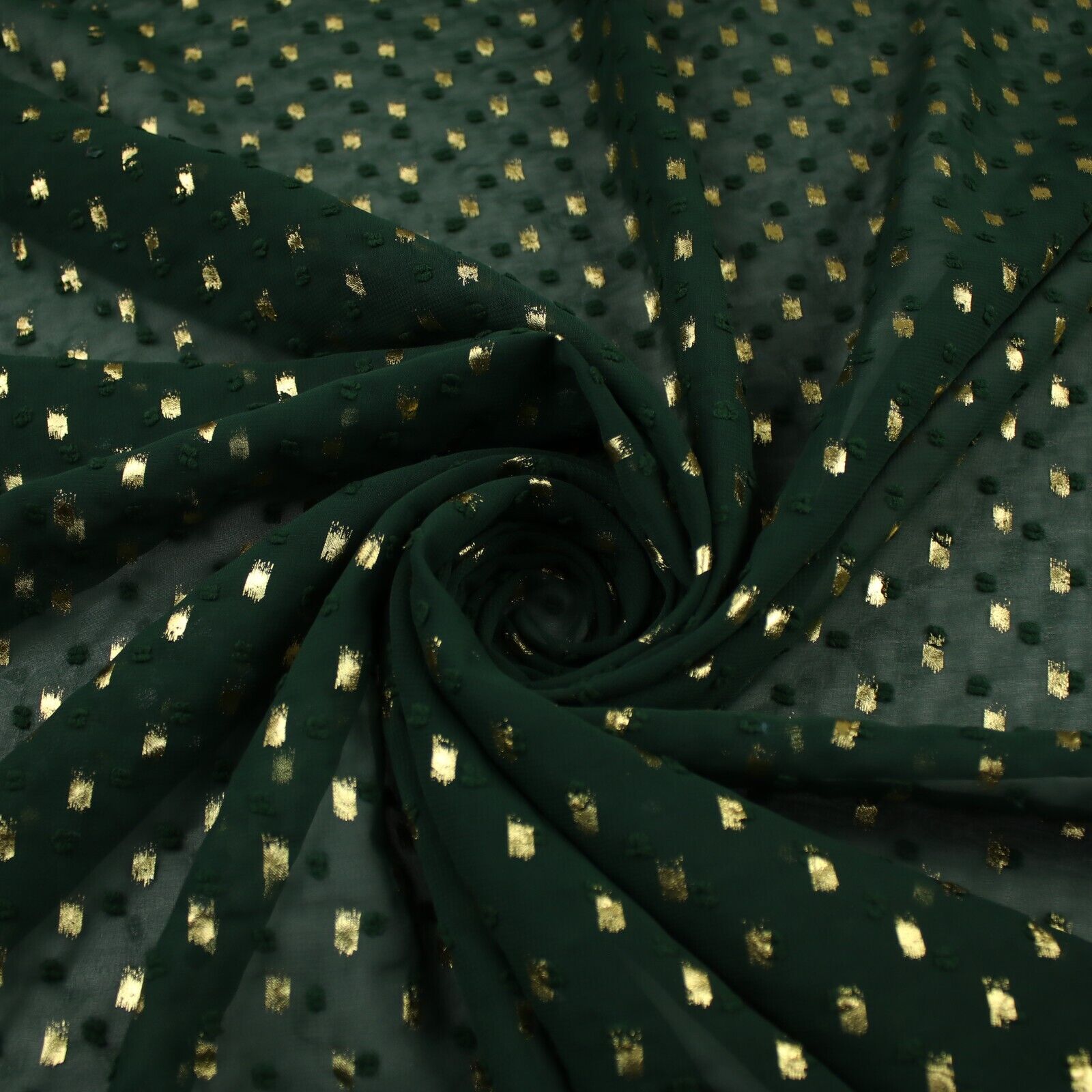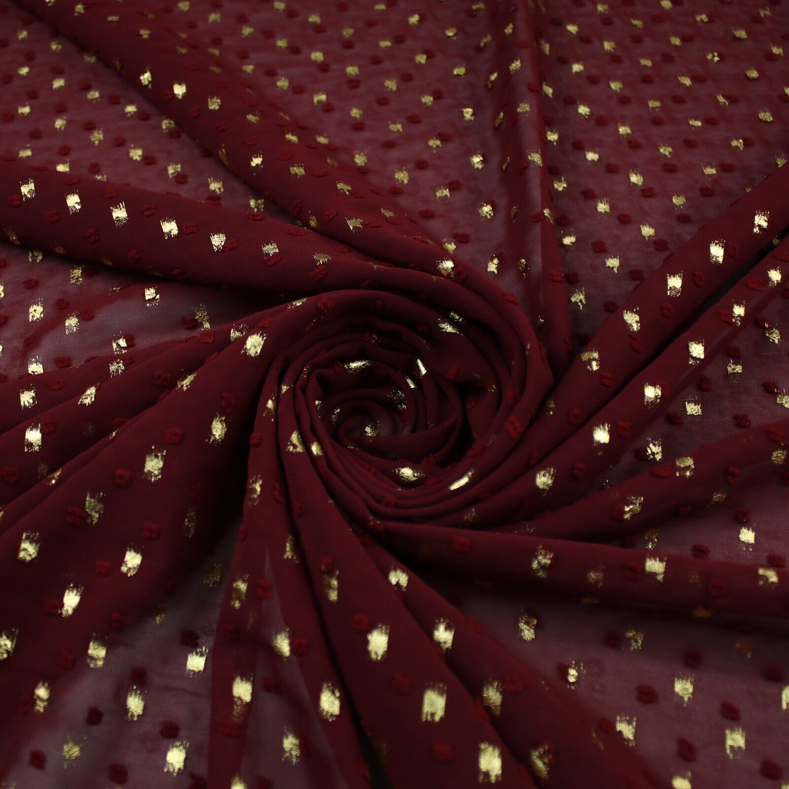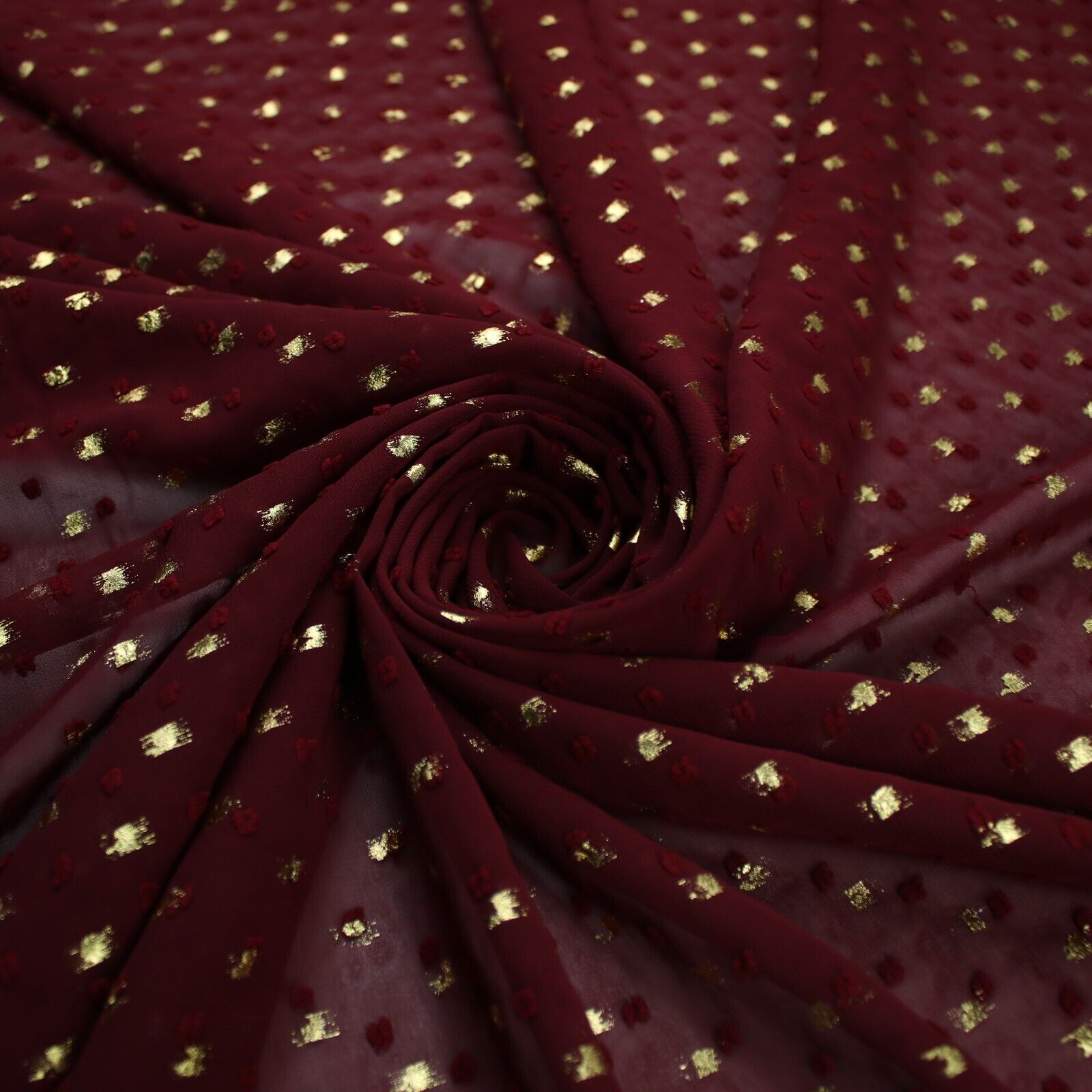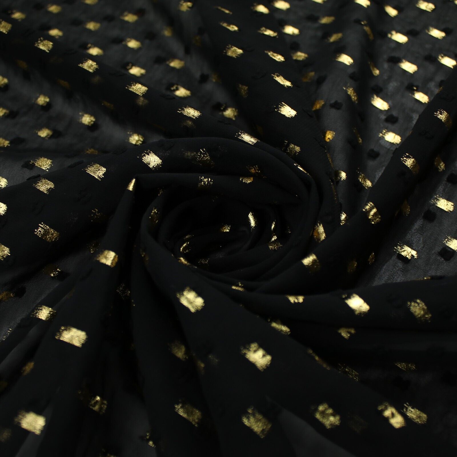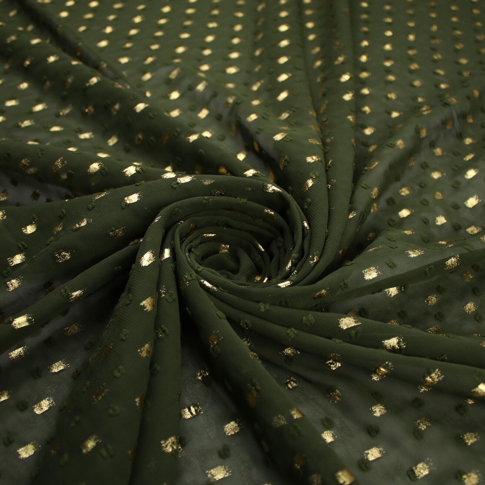 14 COLOURS - Swiss Knot Gold Foil Dot Dobby Sheer Georgette Chiffon Fabric 58"
