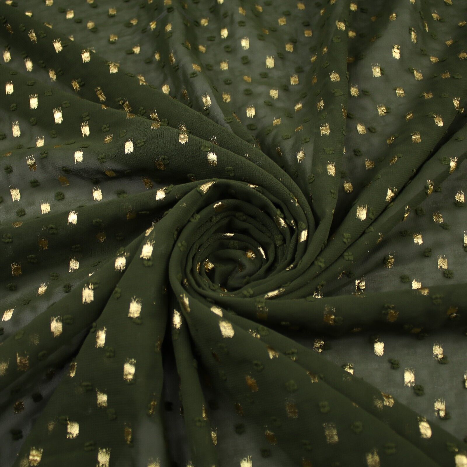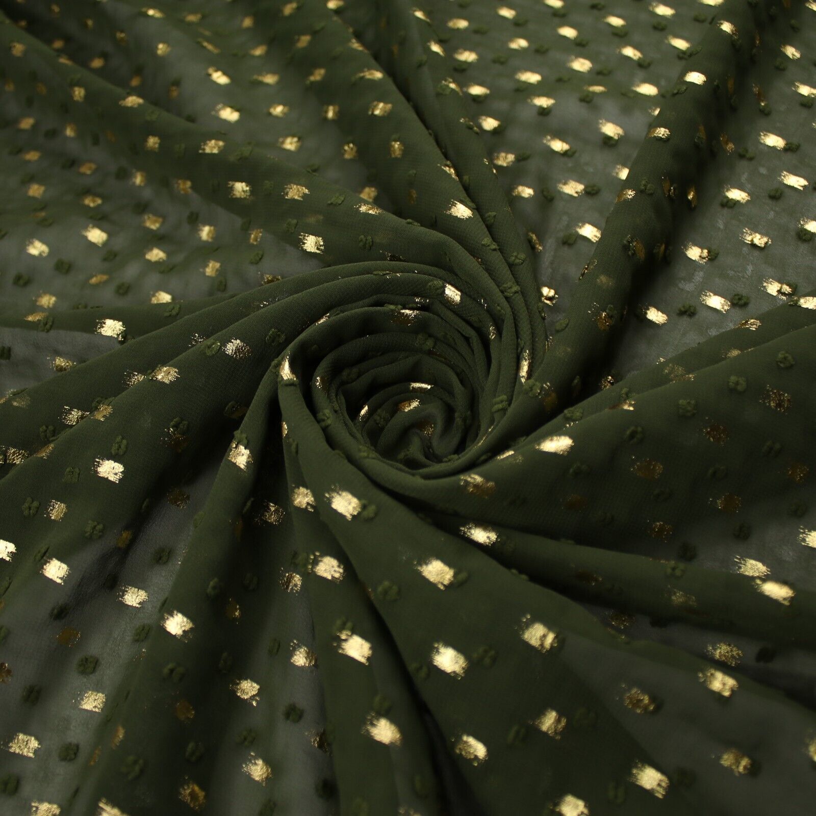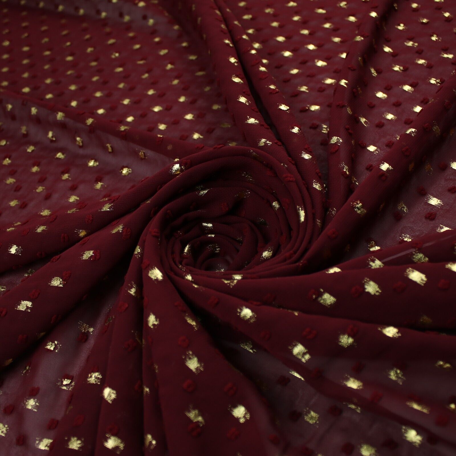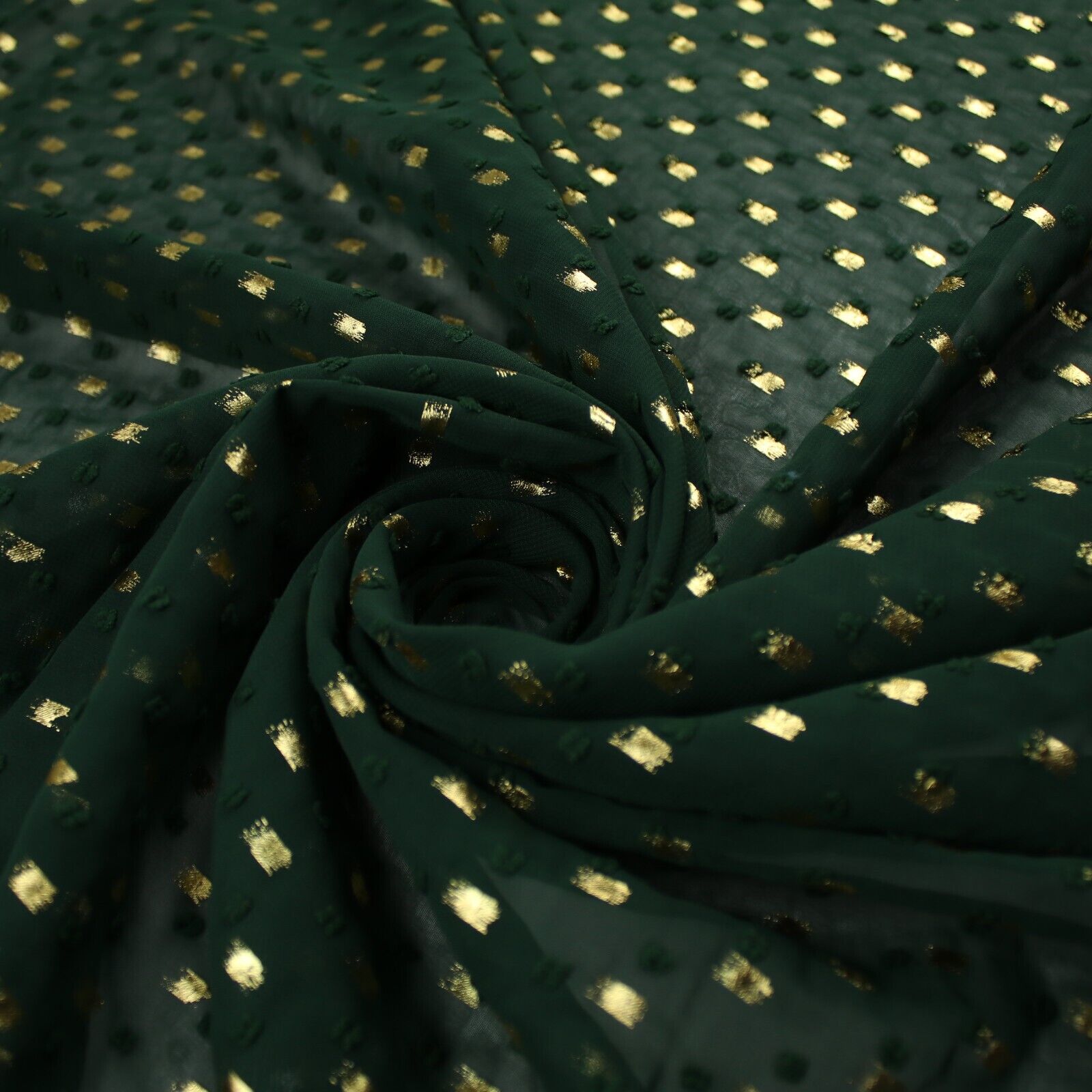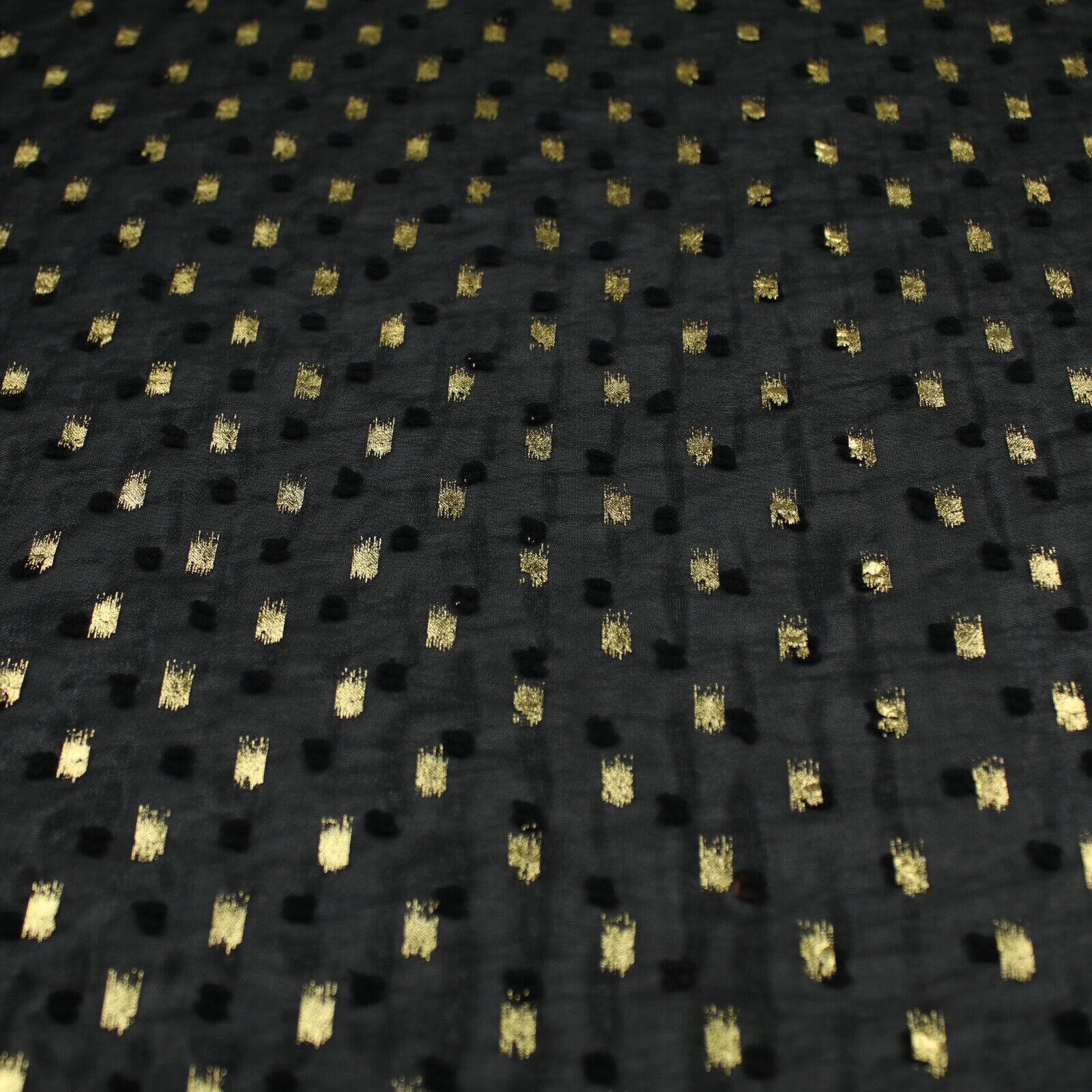 14 COLOURS - Swiss Knot Gold Foil Dot Dobby Sheer Georgette Chiffon Fabric 58"