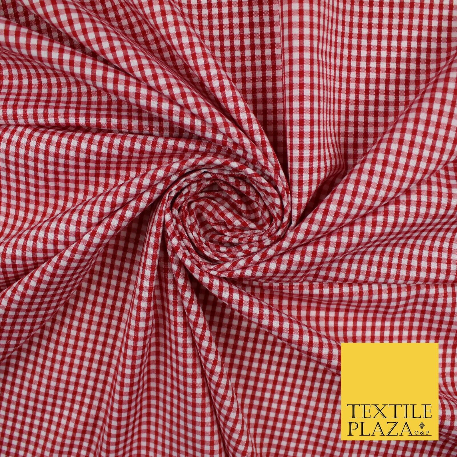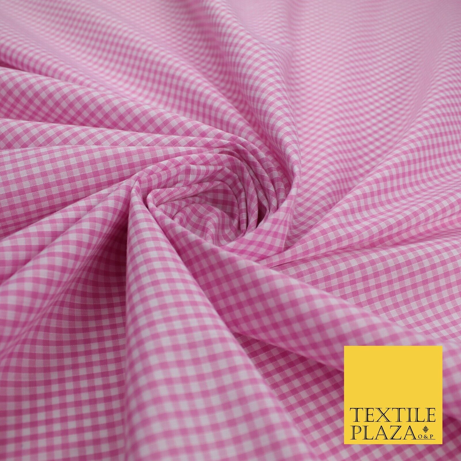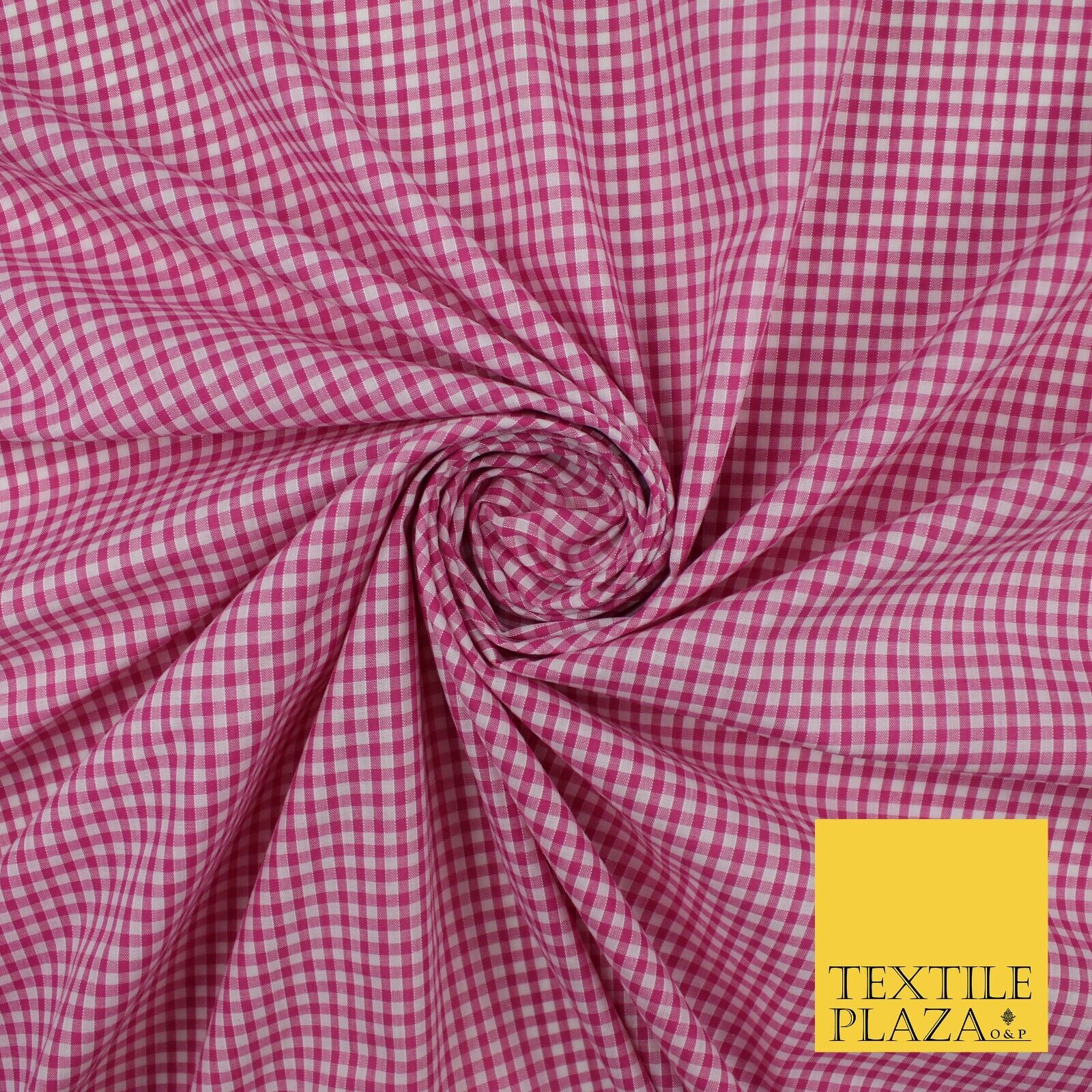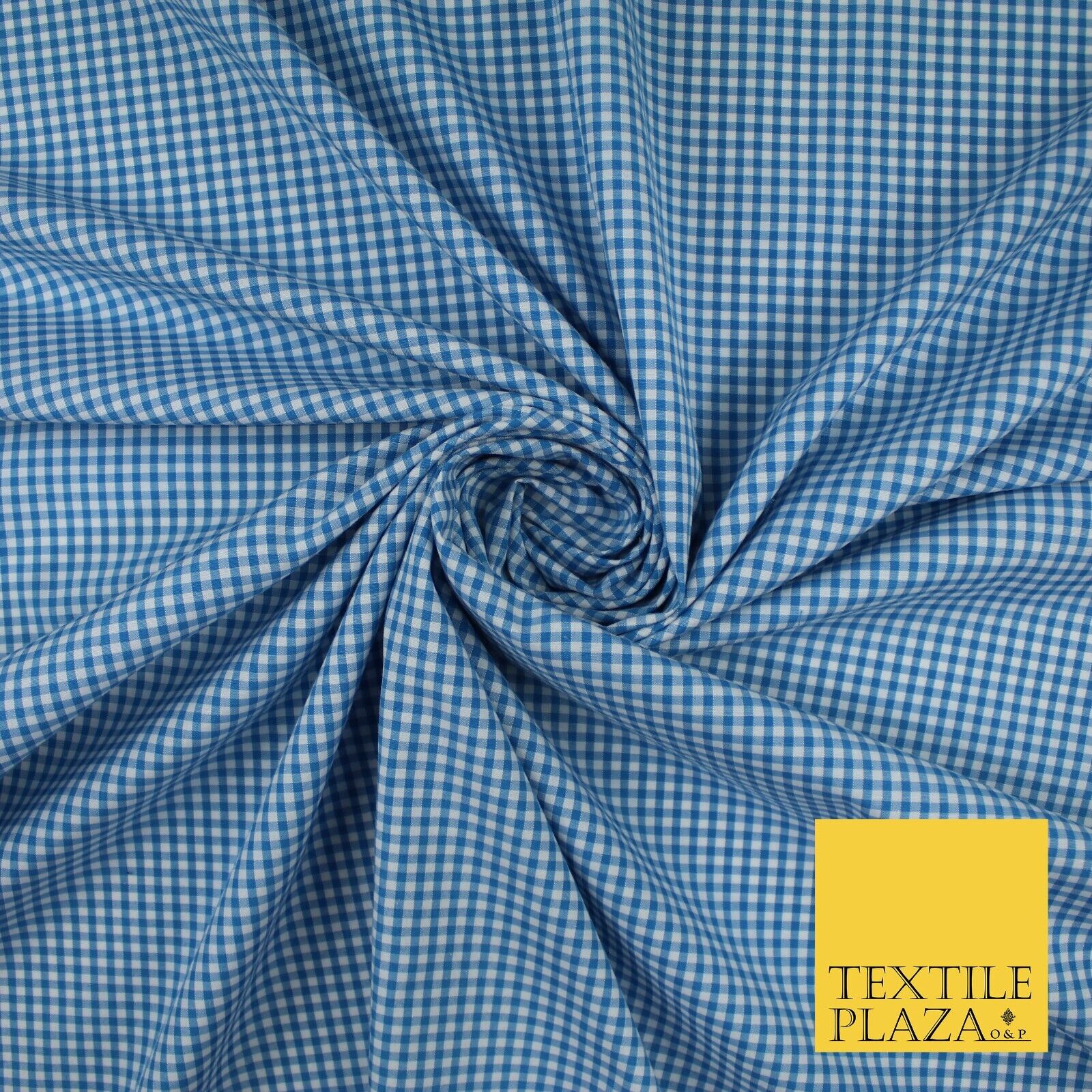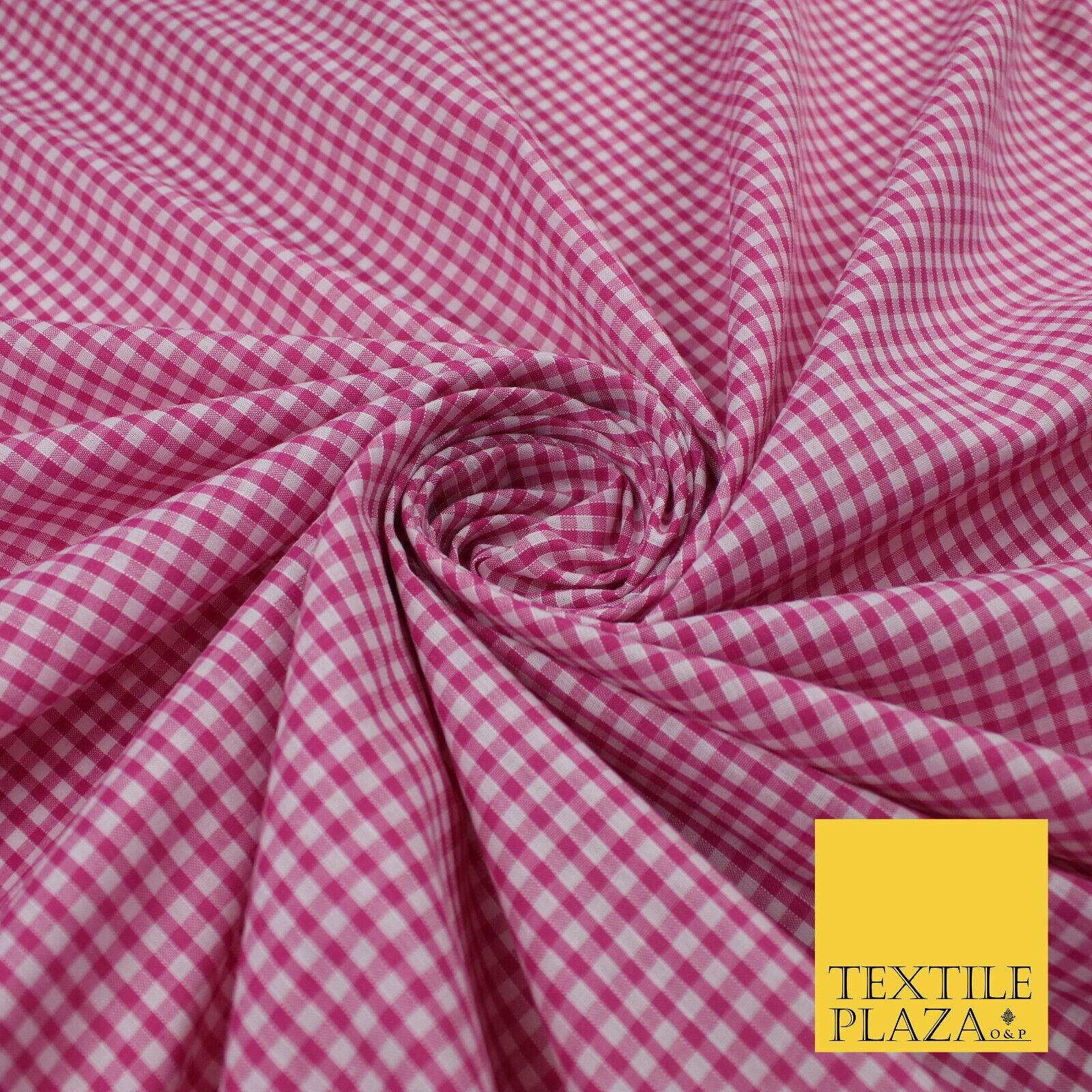 15 COLOURS - Small 1/8" Mini Gingham Square Check Polycotton Fabric Dress Craft