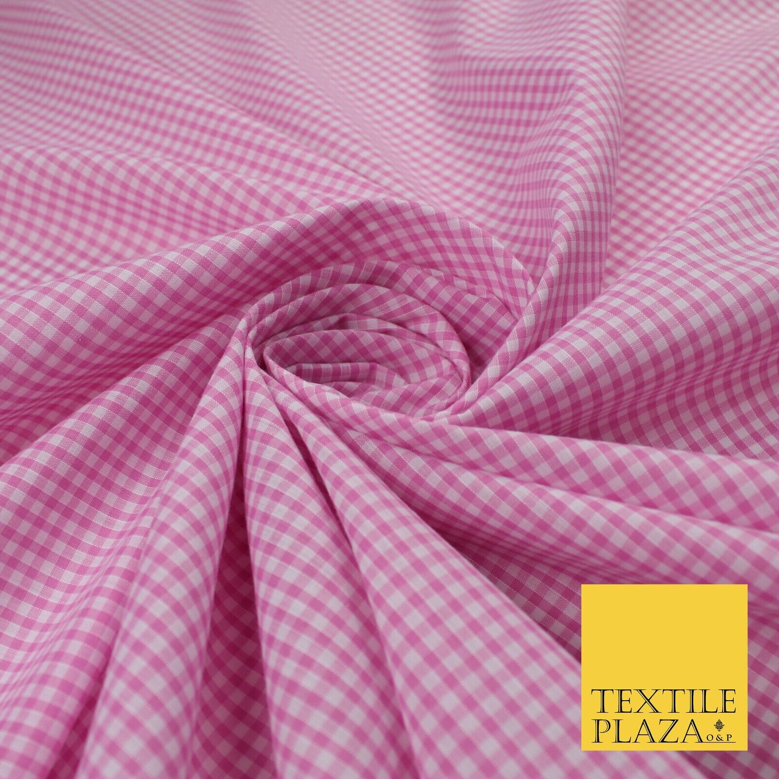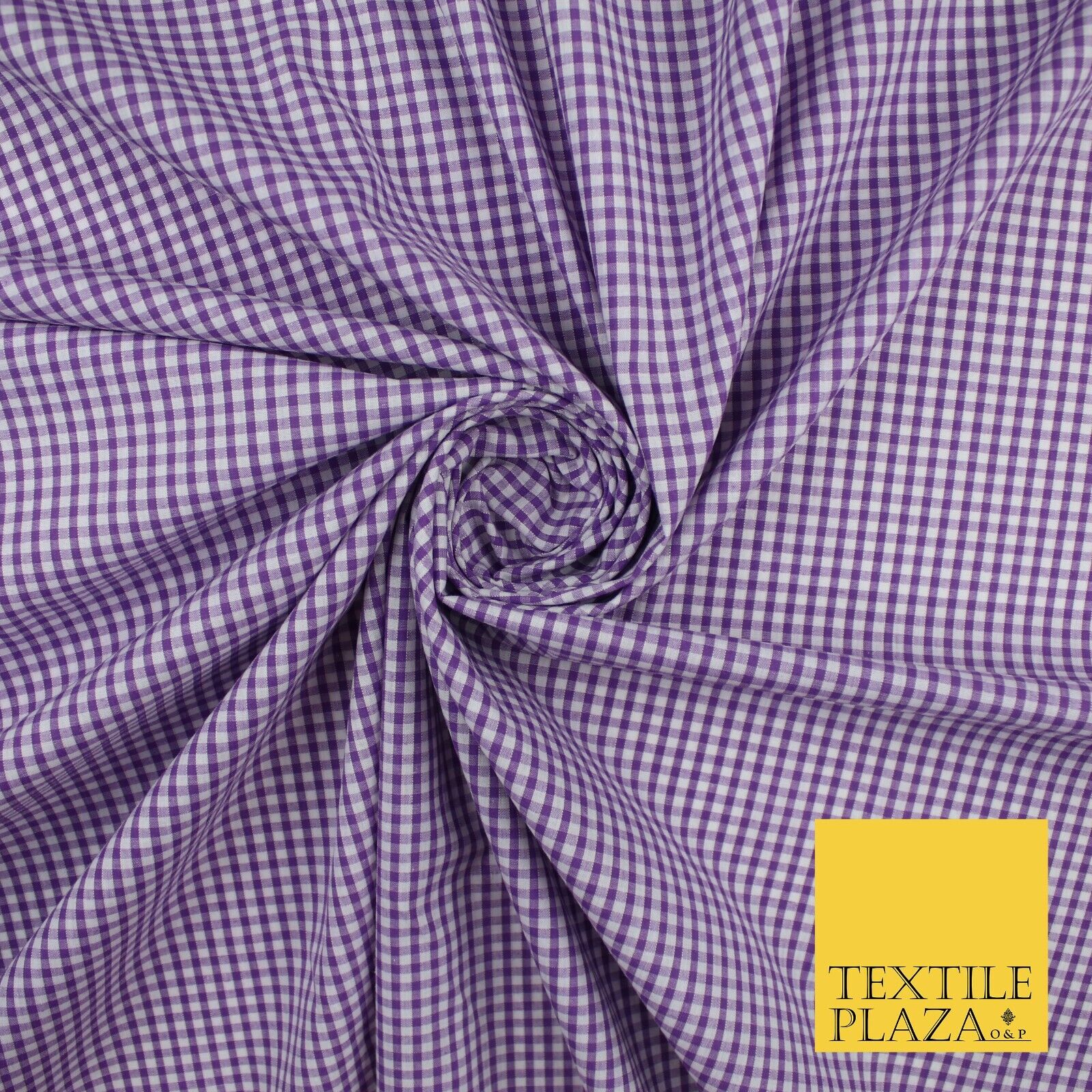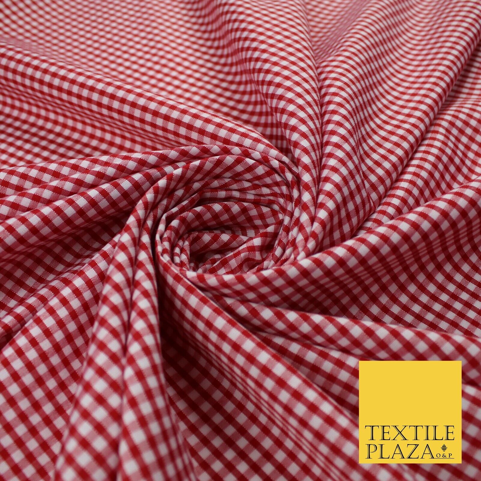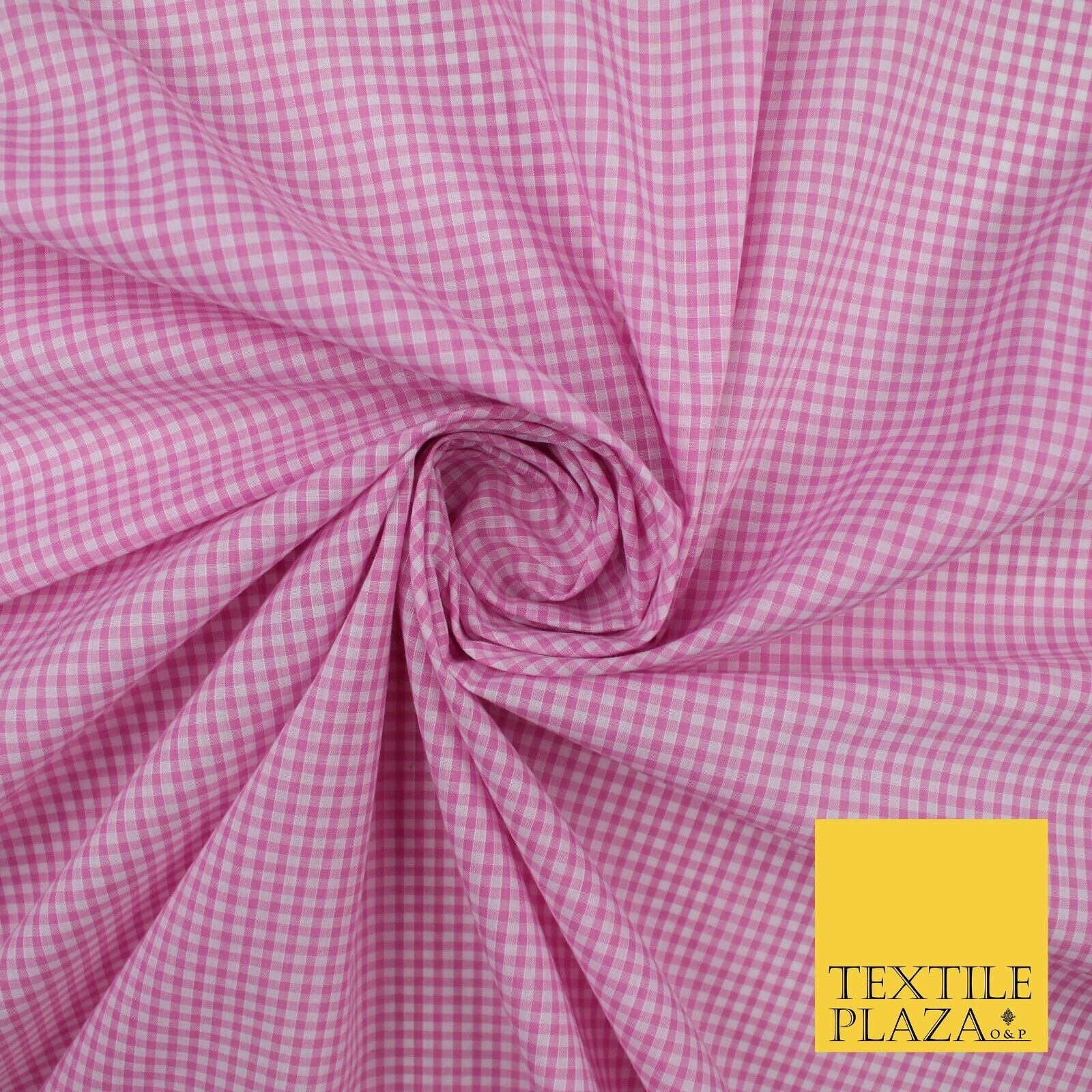 15 COLOURS - Small 1/8" Mini Gingham Square Check Polycotton Fabric Dress Craft