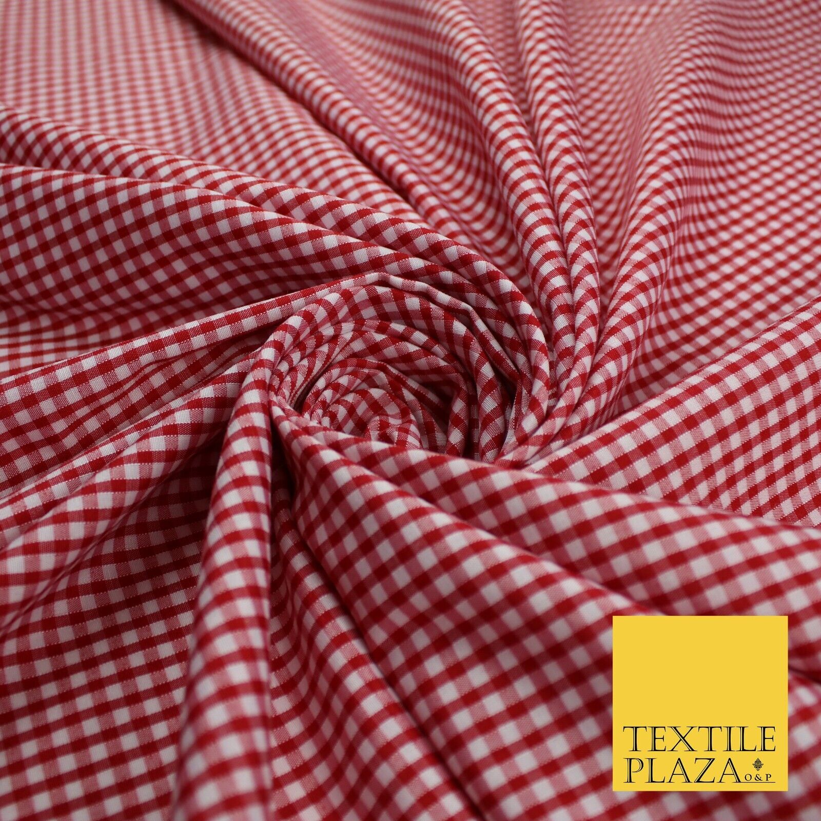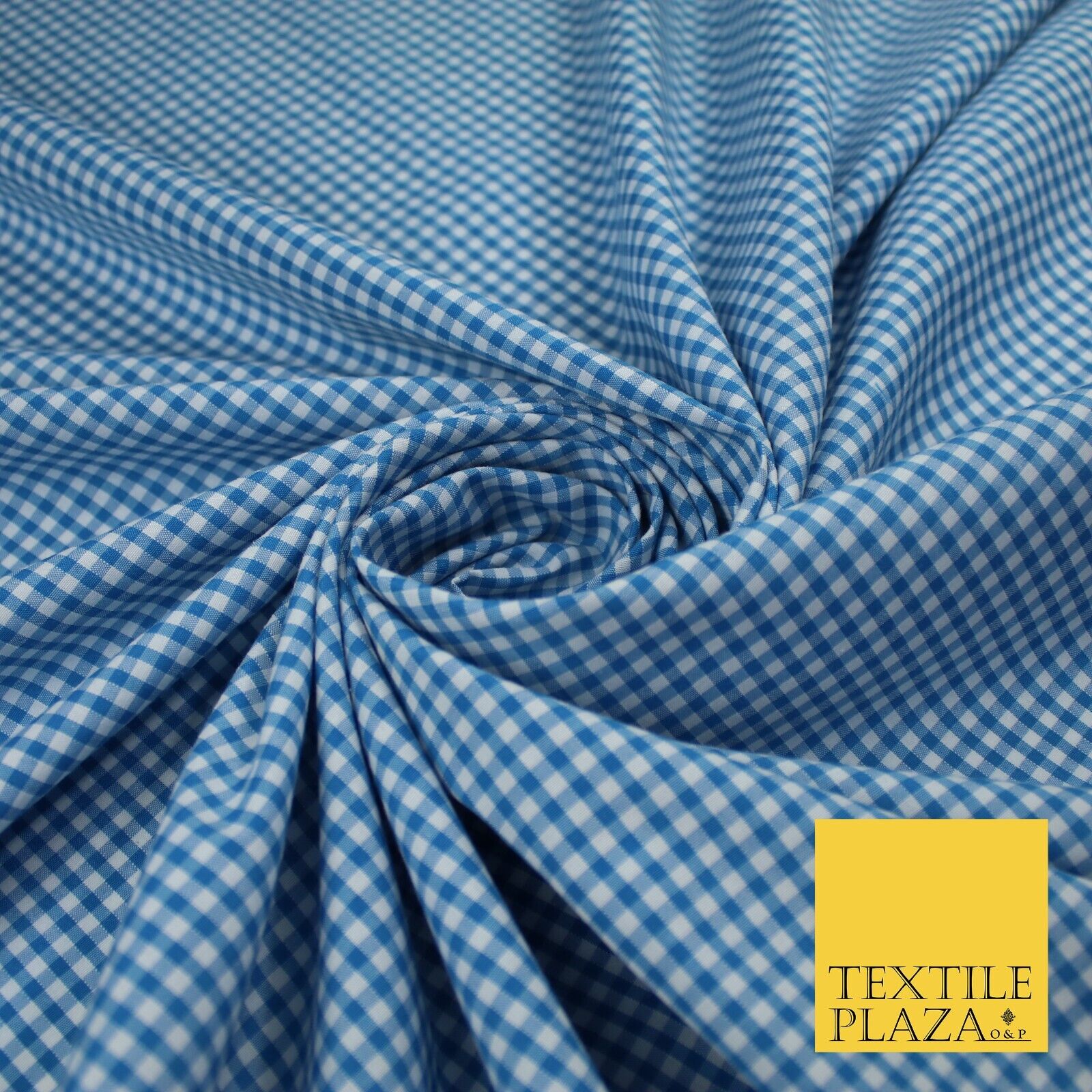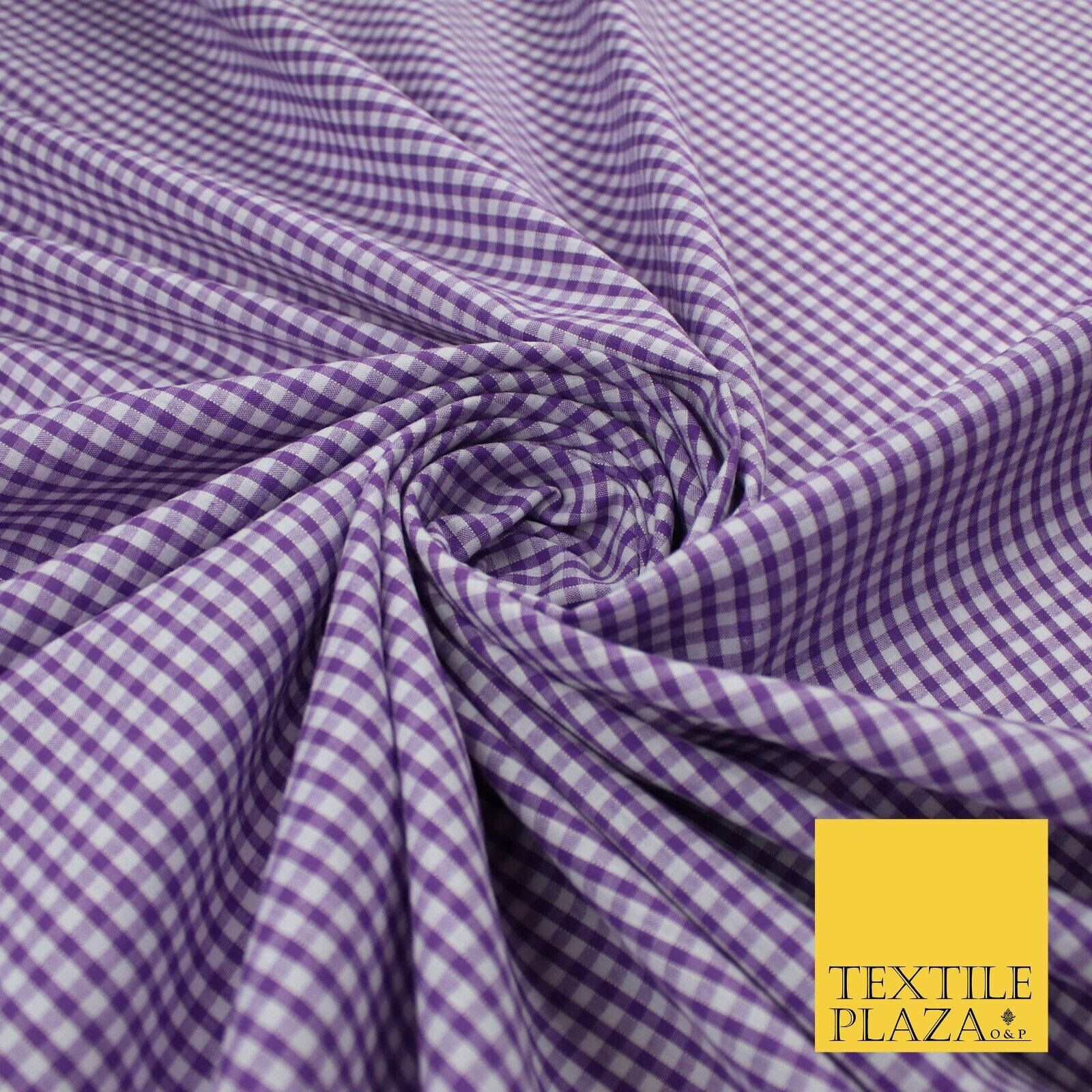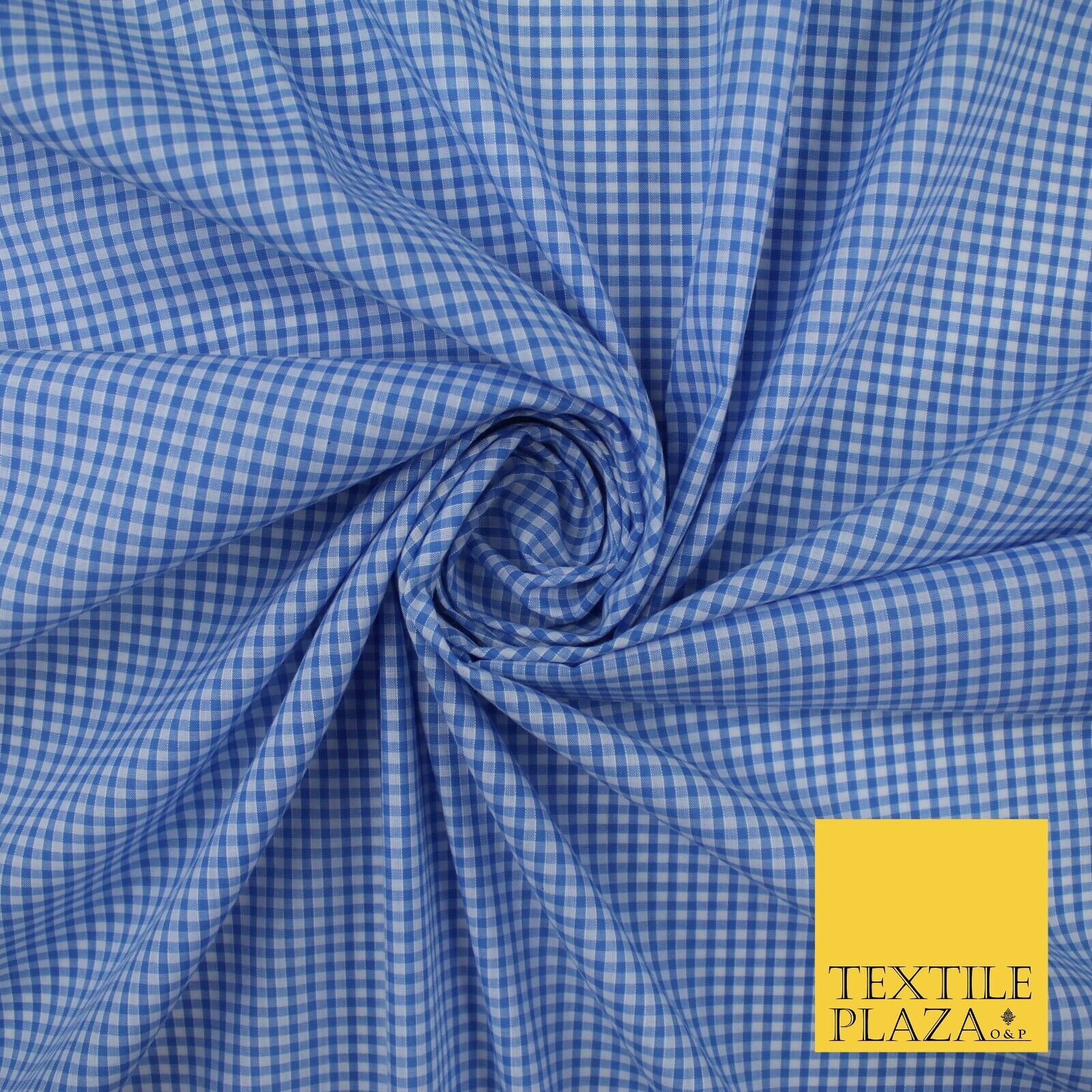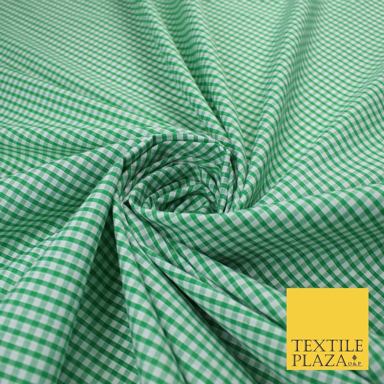 15 COLOURS - Small 1/8" Mini Gingham Square Check Polycotton Fabric Dress Craft