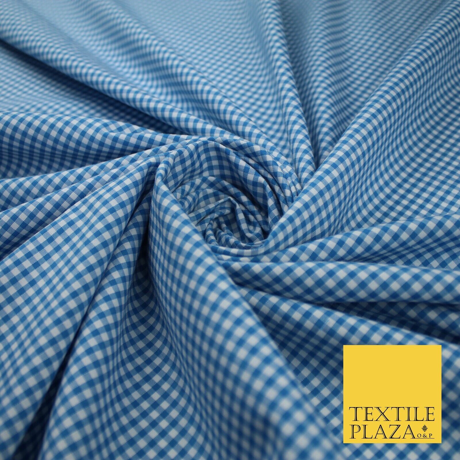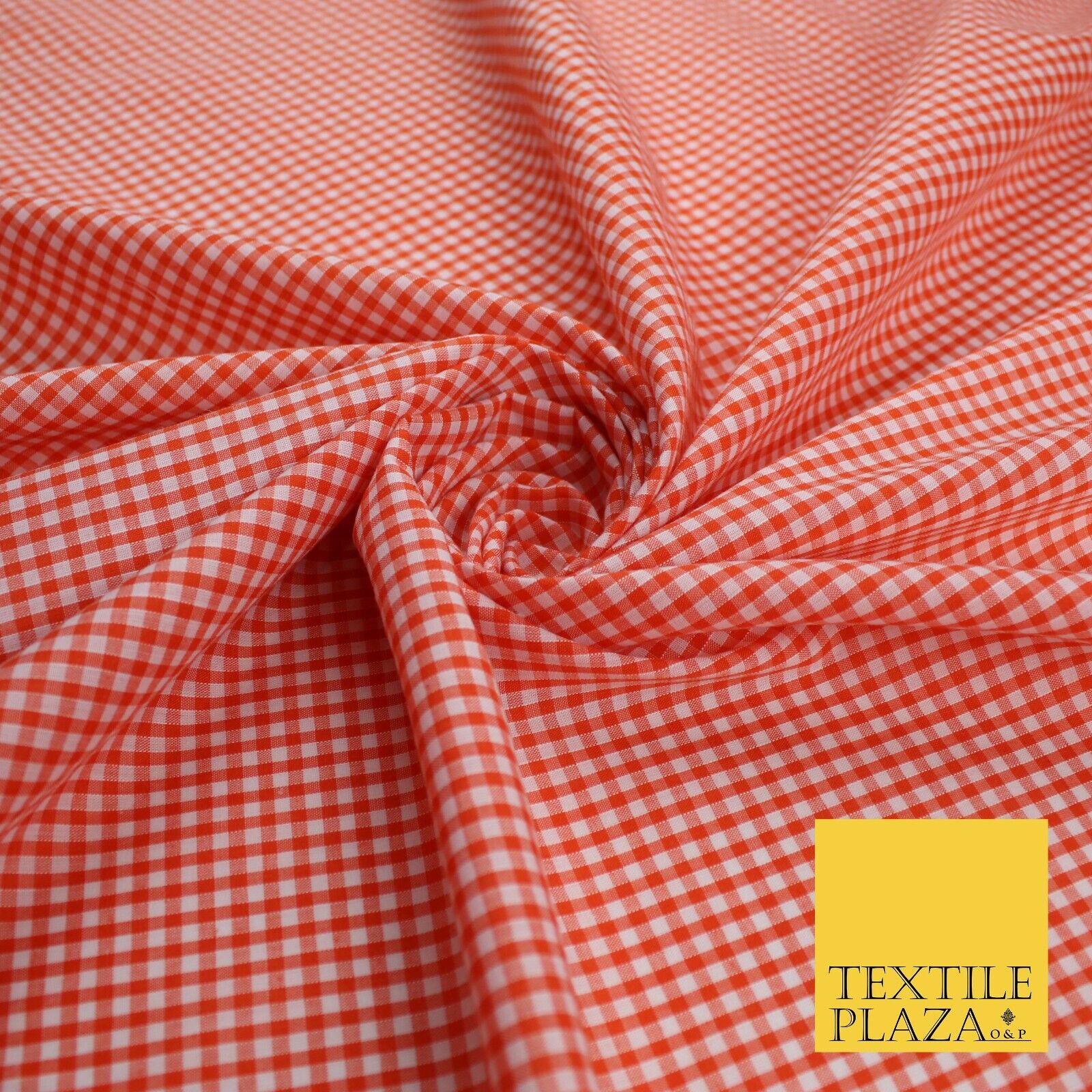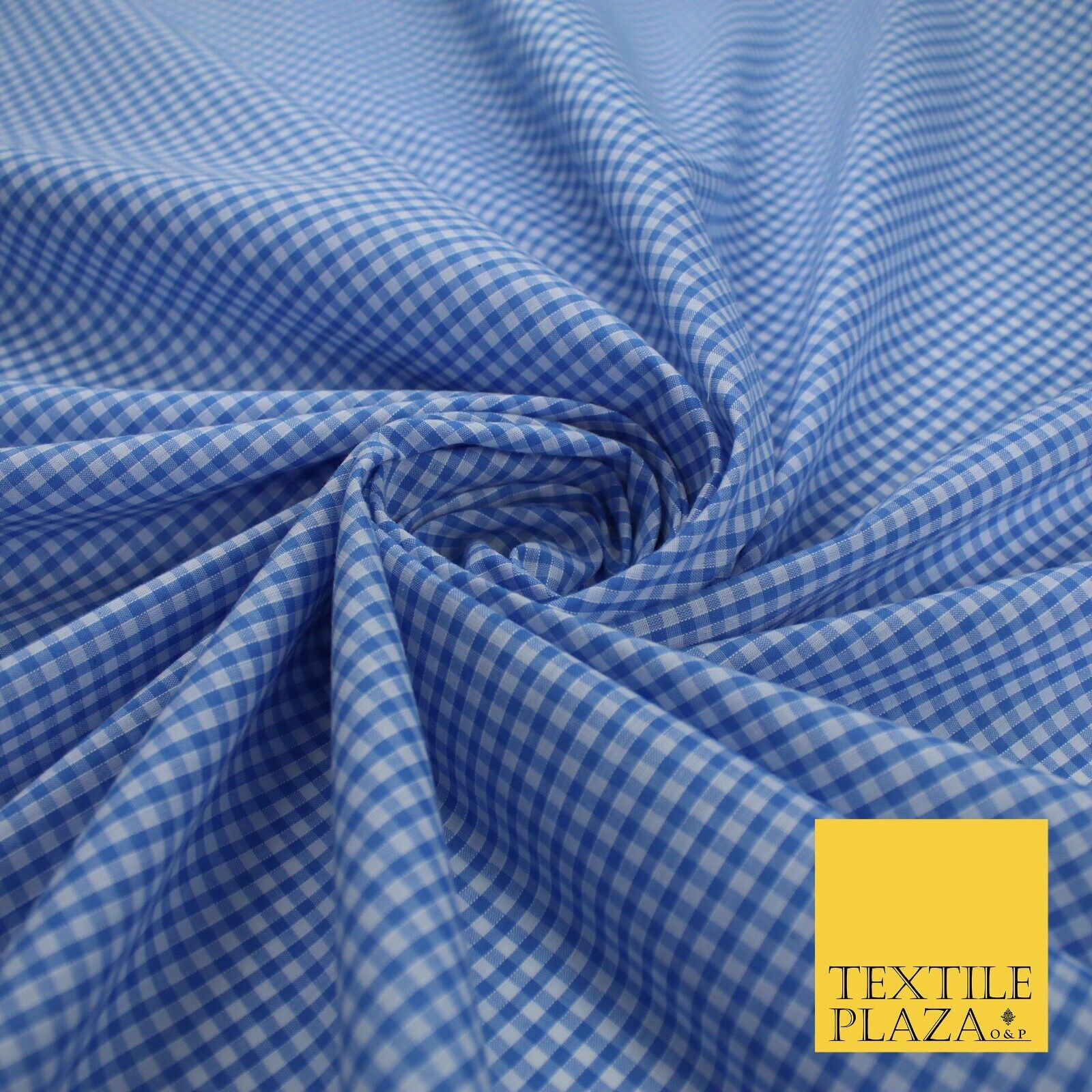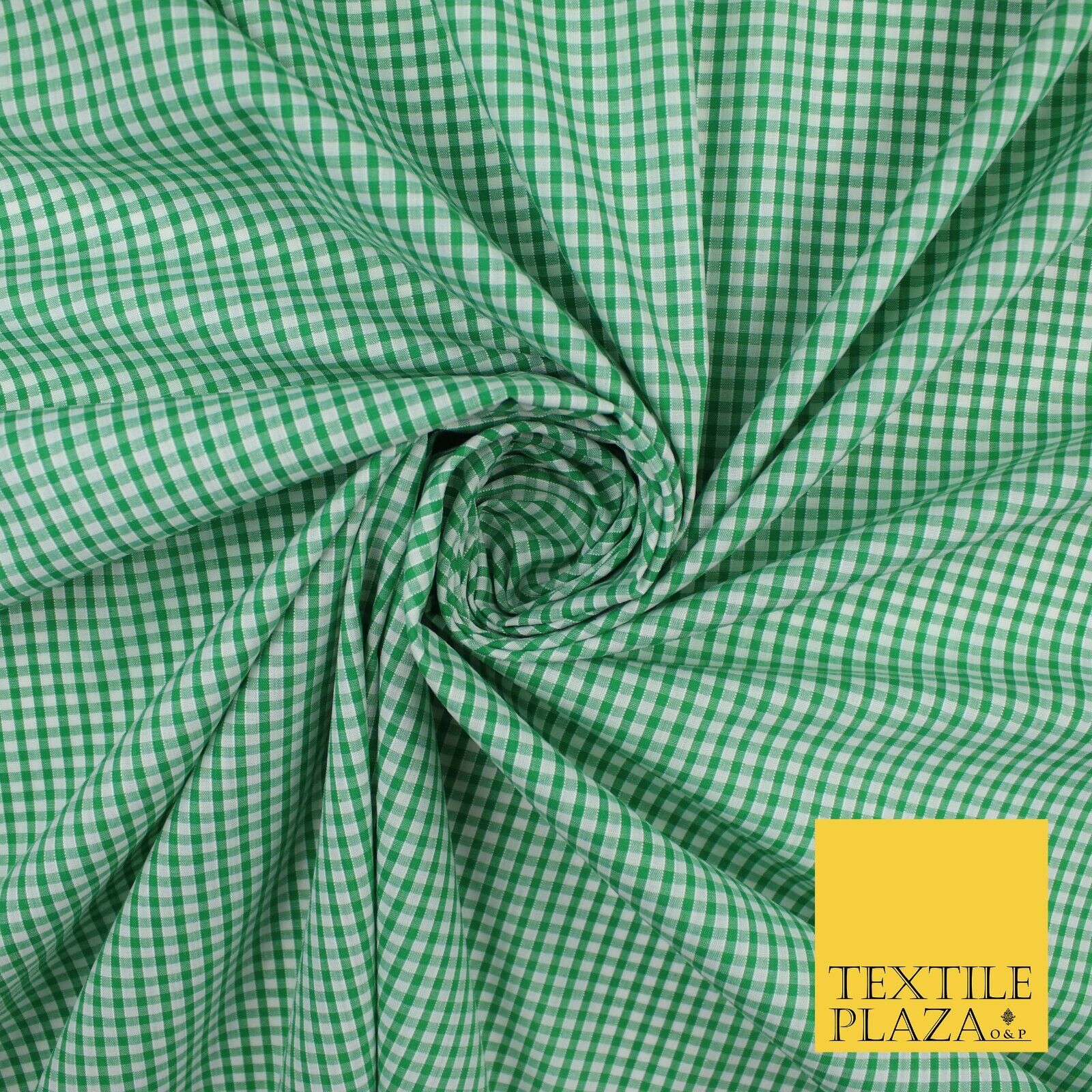 15 COLOURS - Small 1/8" Mini Gingham Square Check Polycotton Fabric Dress Craft