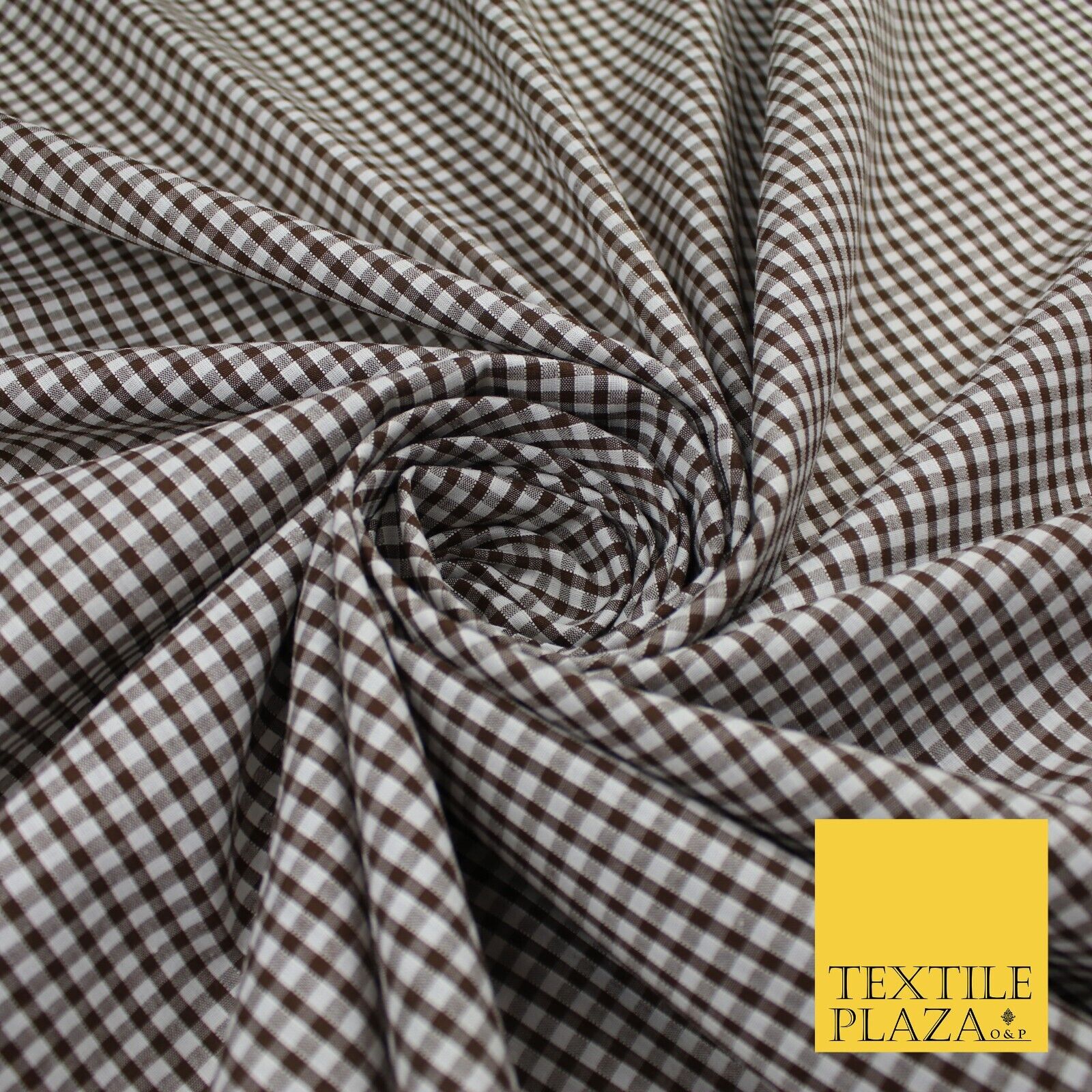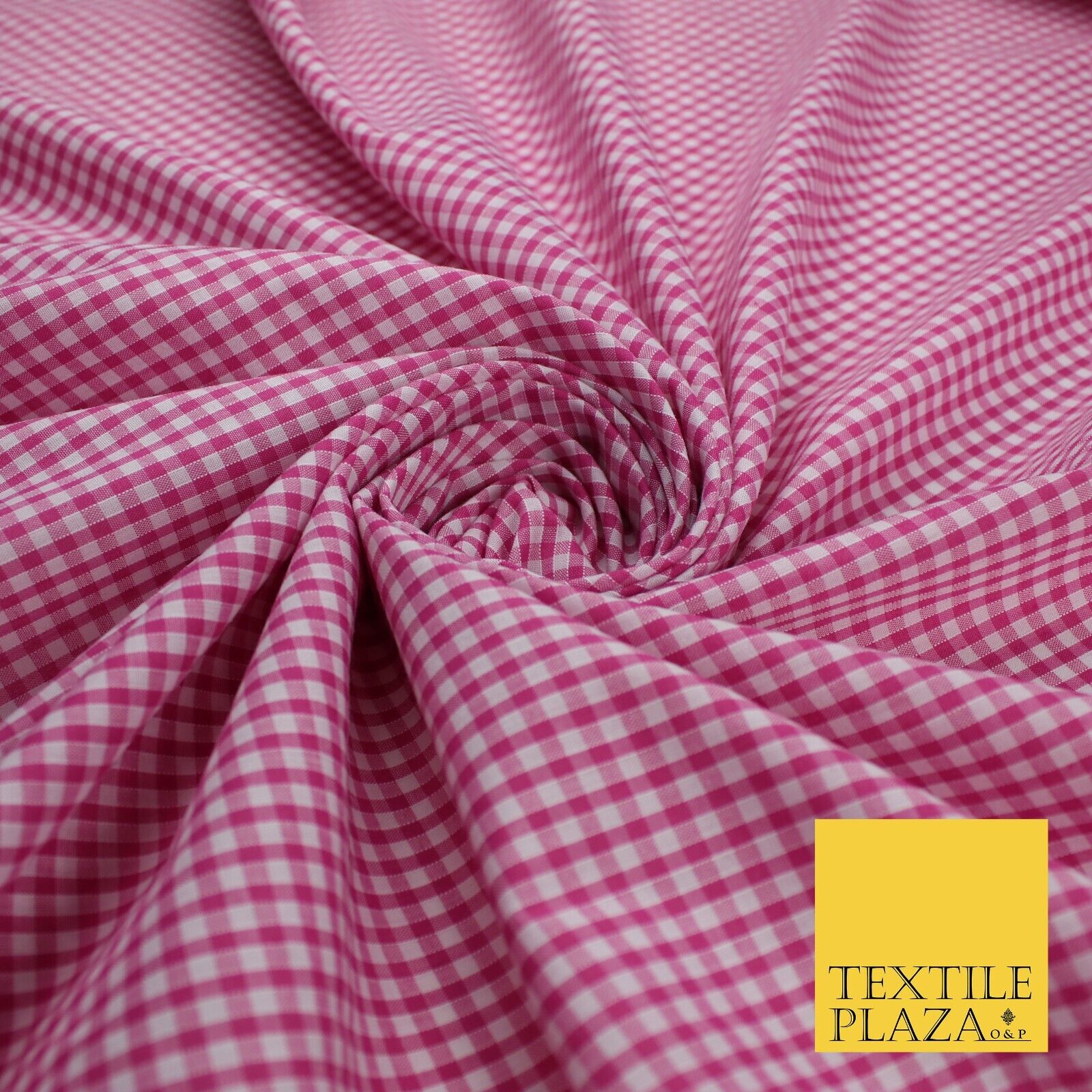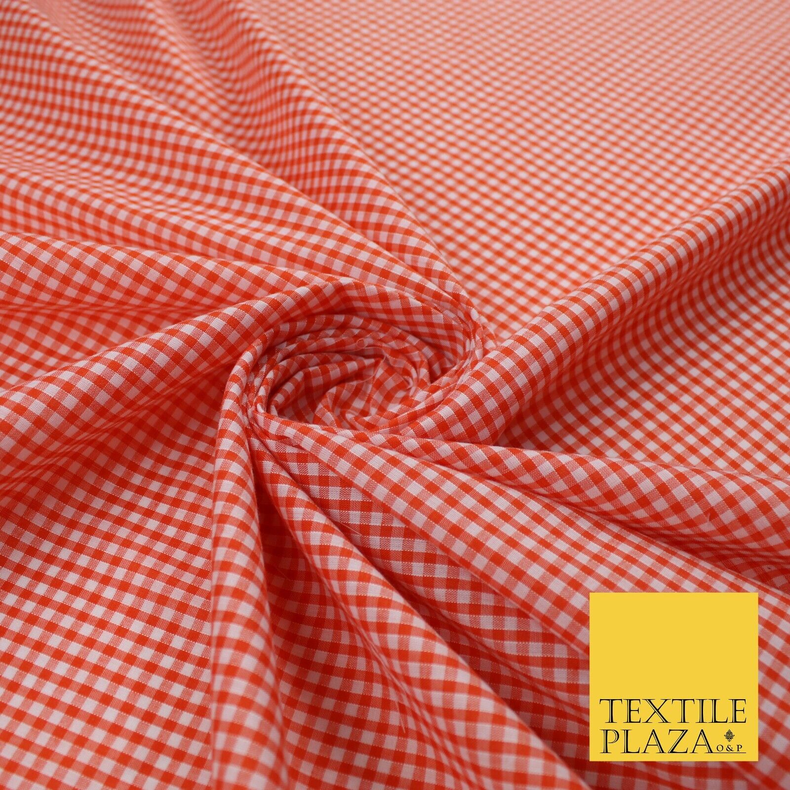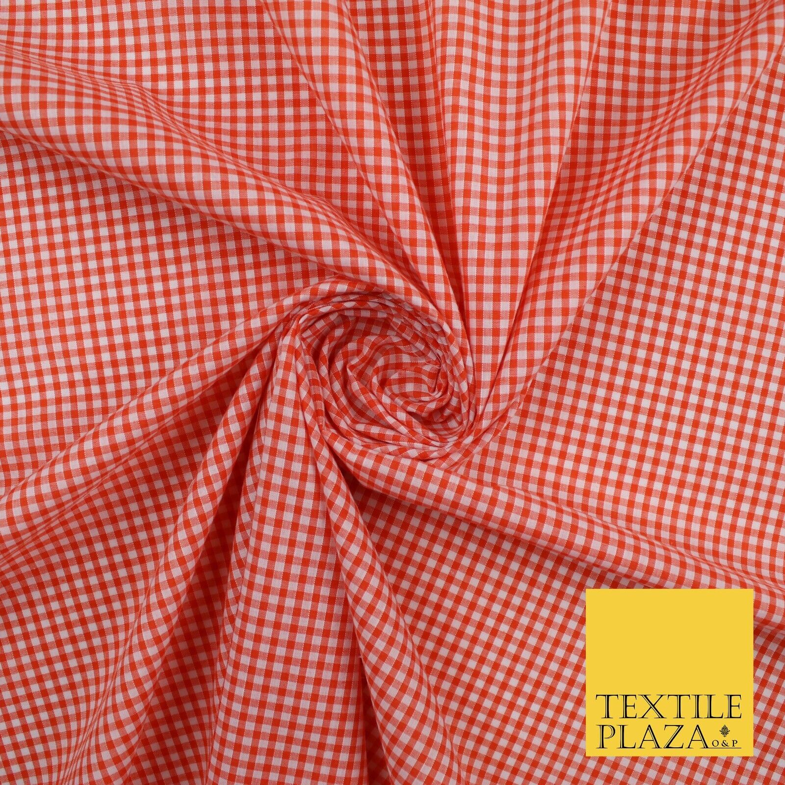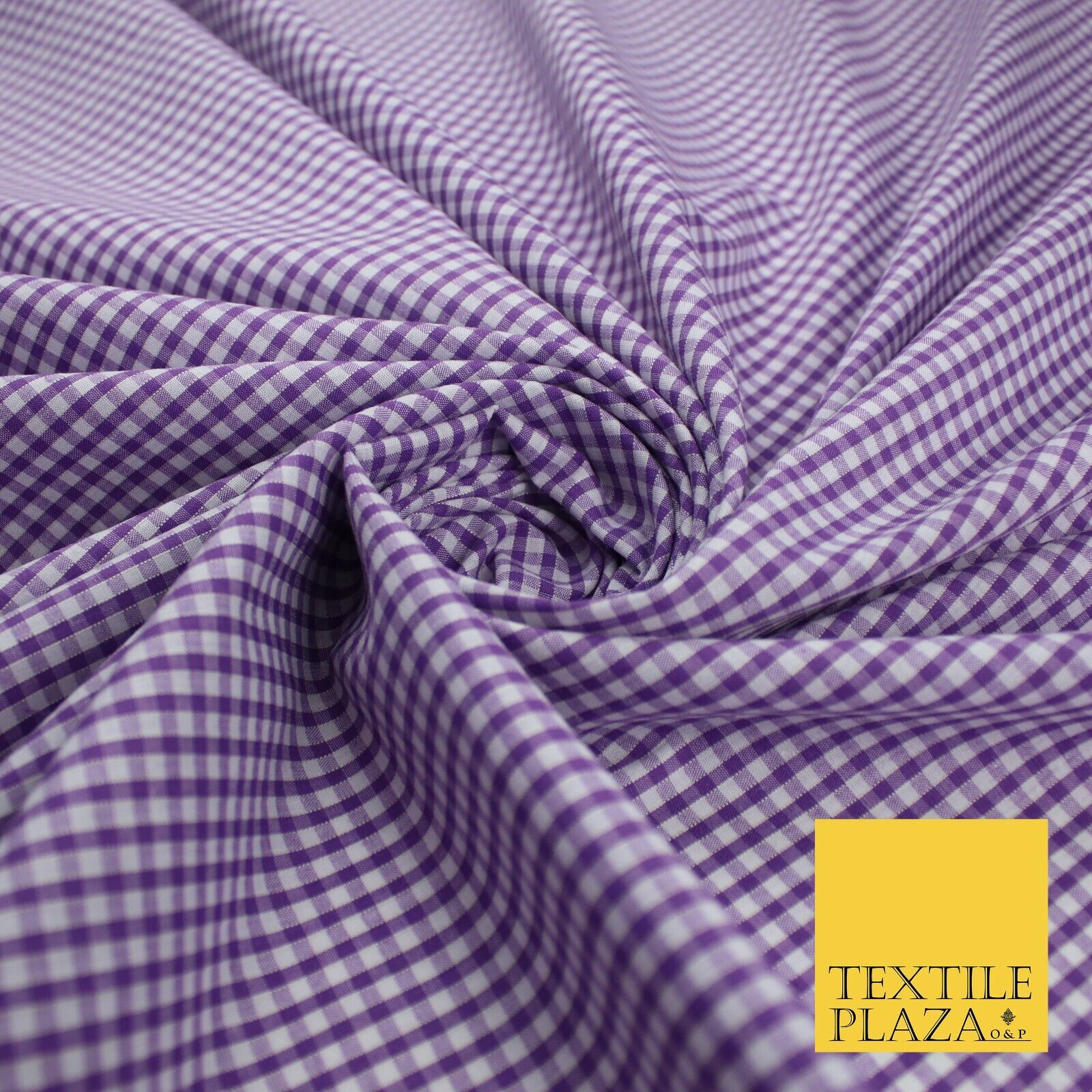 15 COLOURS - Small 1/8" Mini Gingham Square Check Polycotton Fabric Dress Craft
