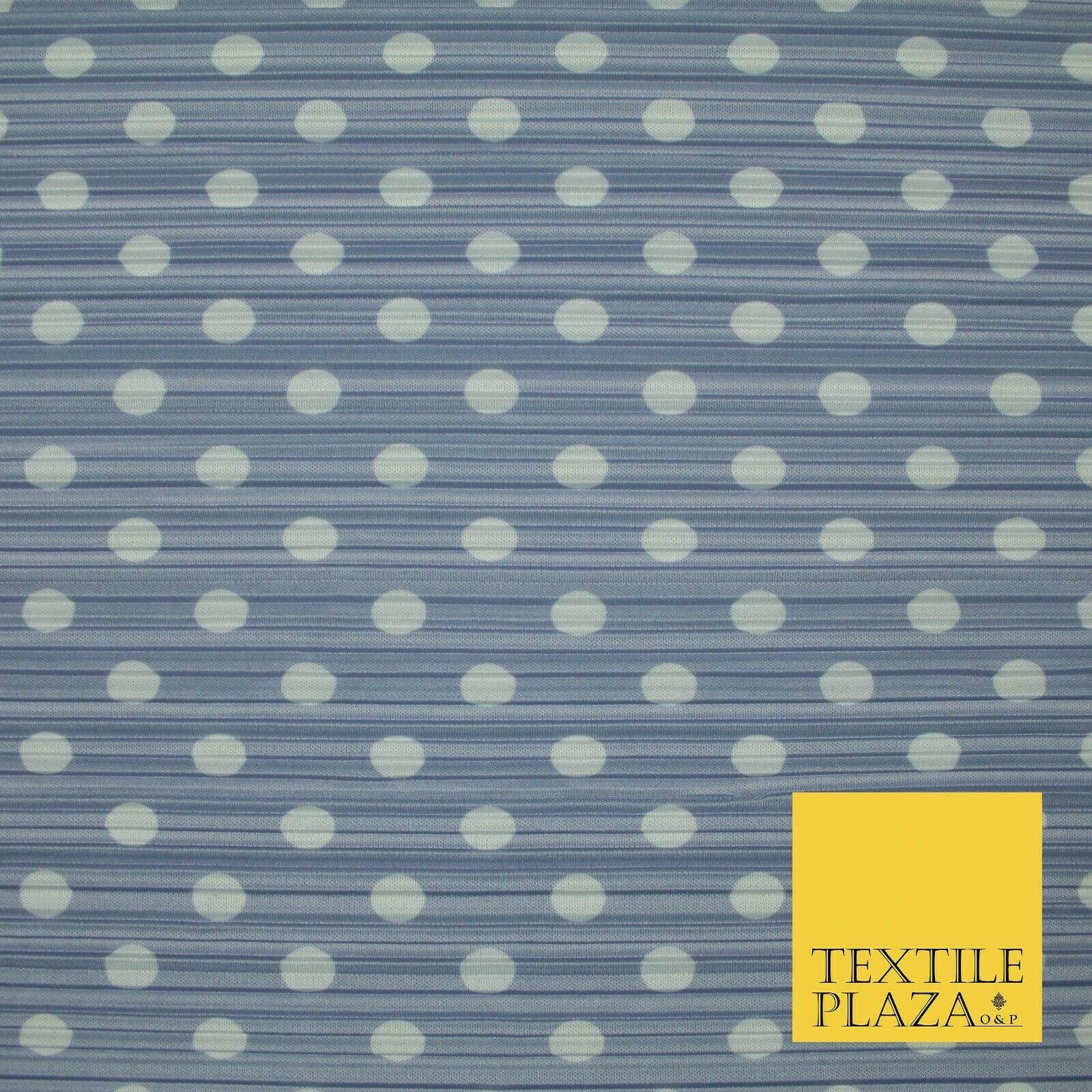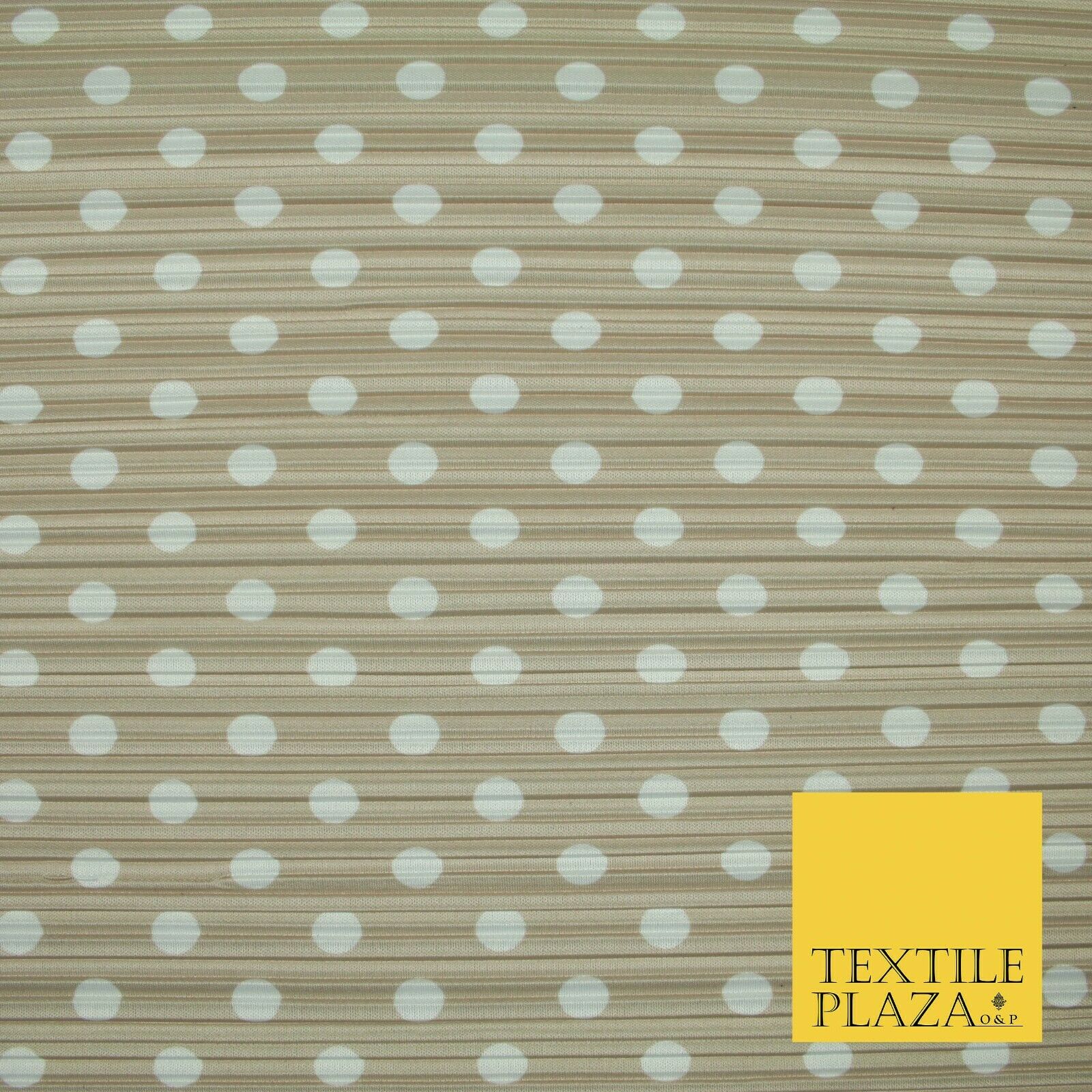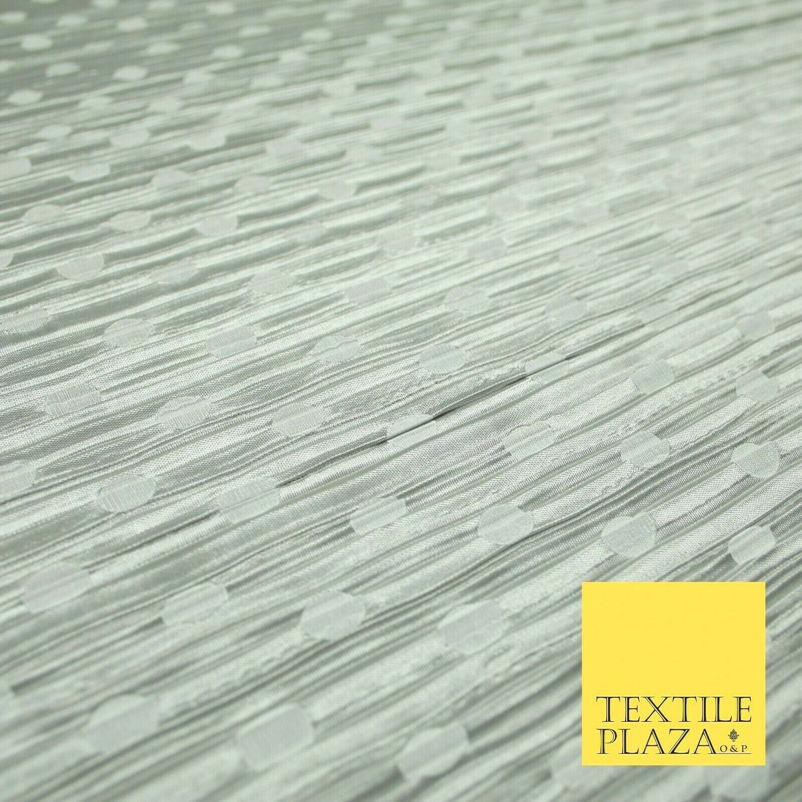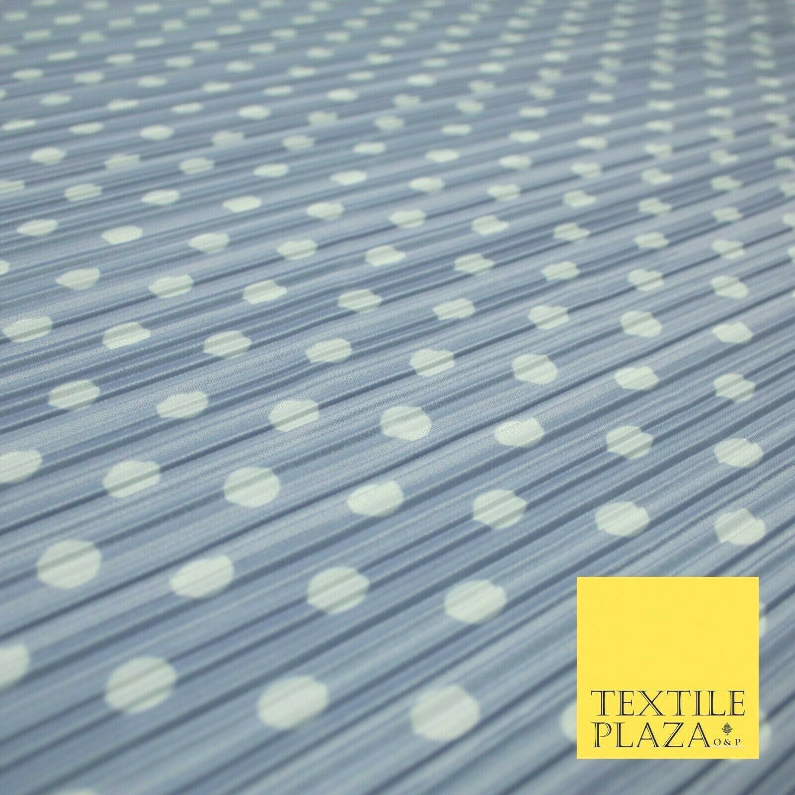 1cm White Spotted Printed Pleated Plisse Satin Stretch Fabric 58" 4 COLOURS