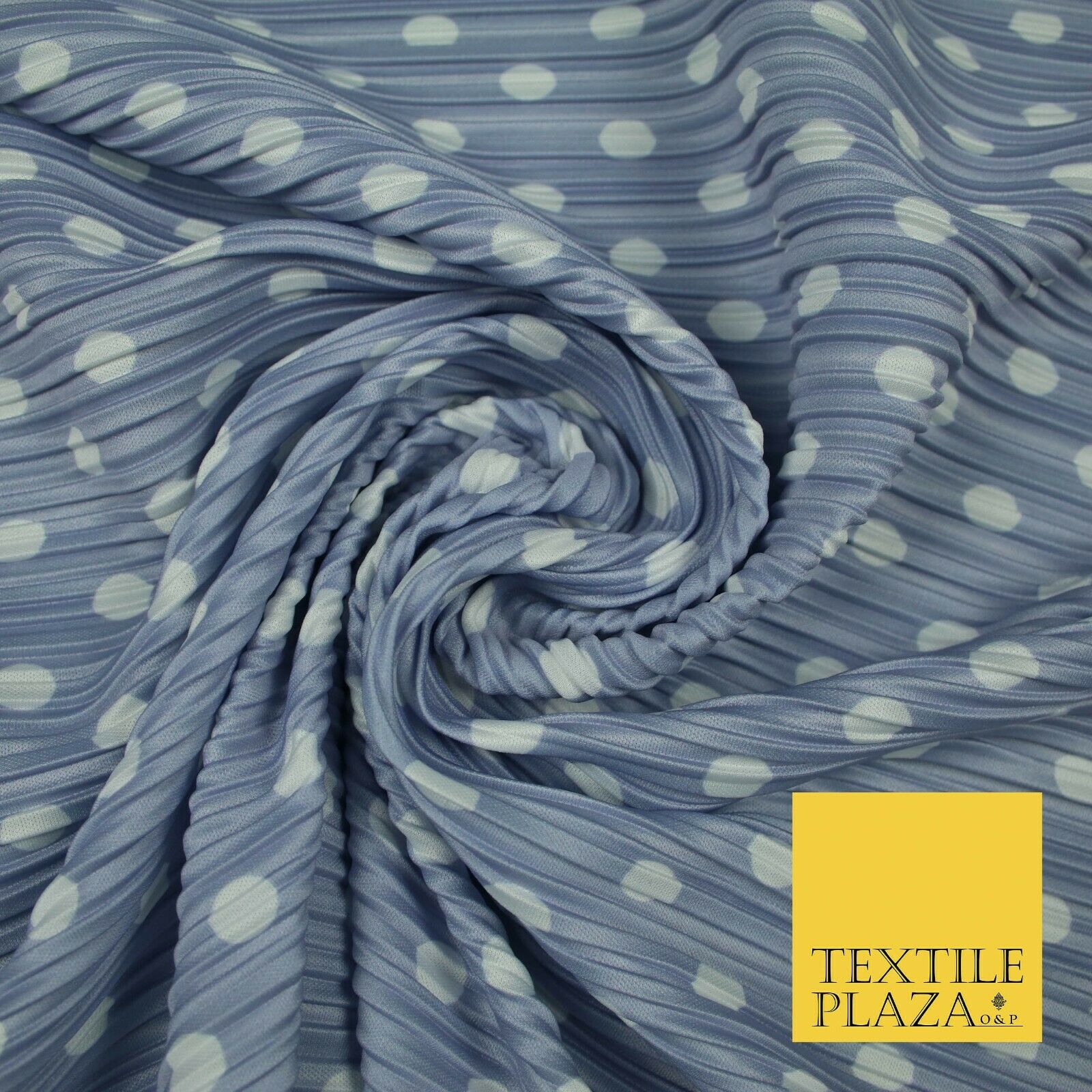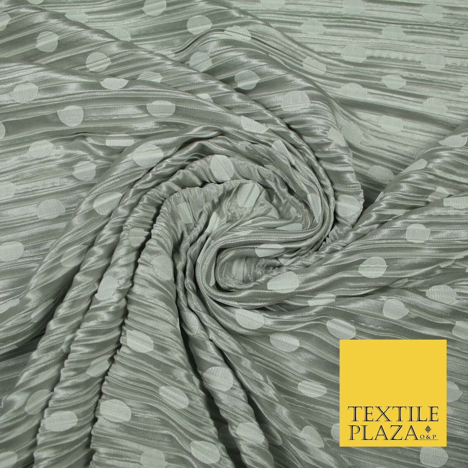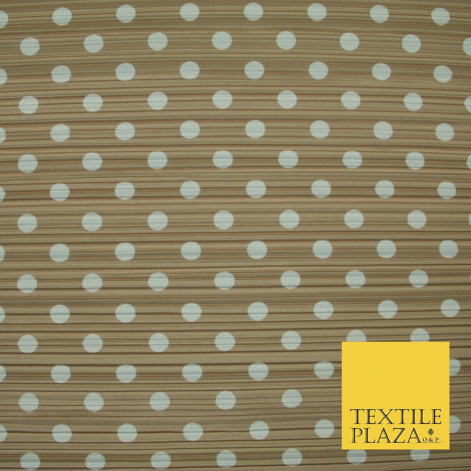 1cm White Spotted Printed Pleated Plisse Satin Stretch Fabric 58" 4 COLOURS