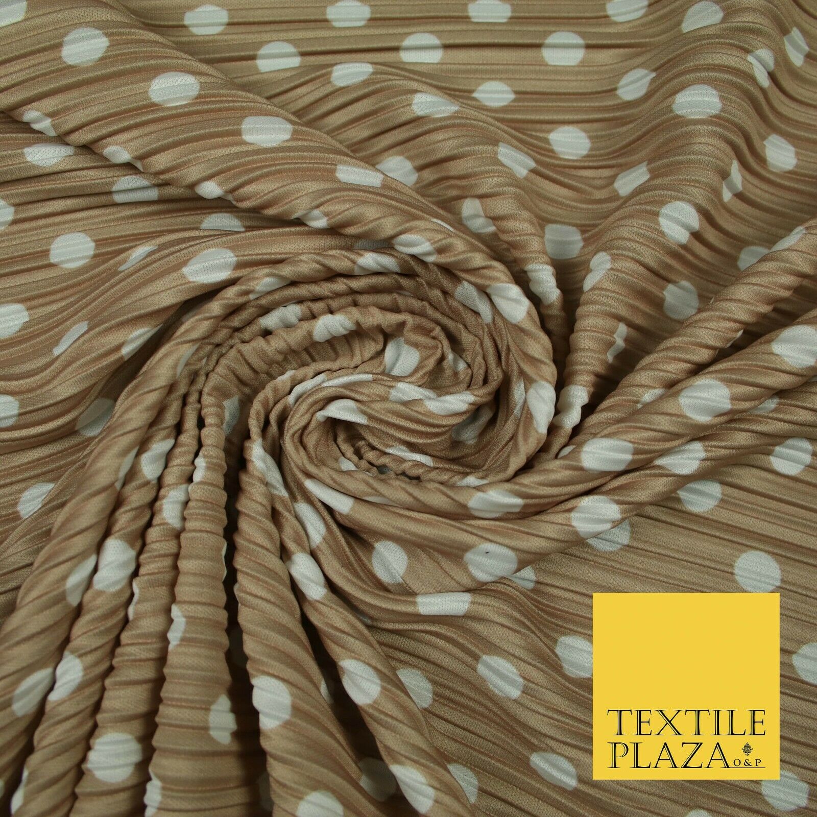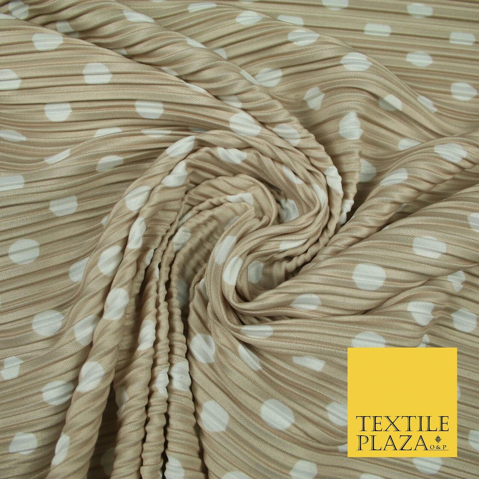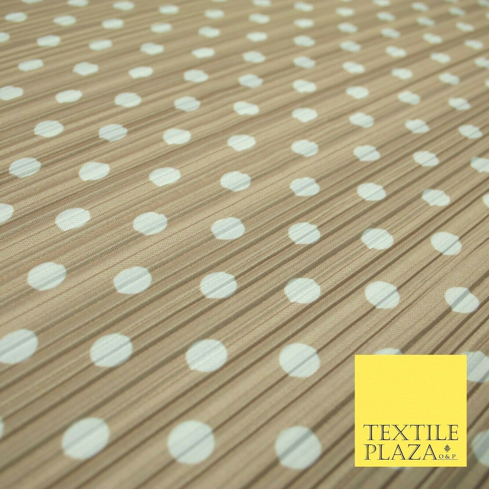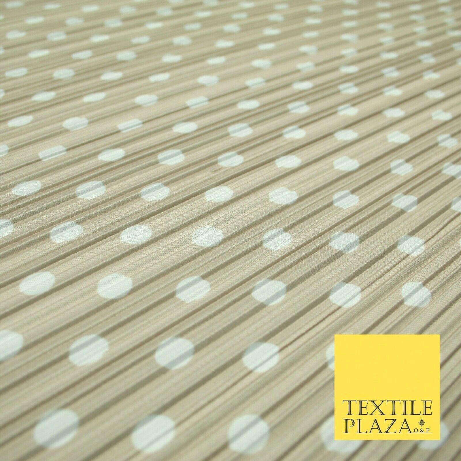 1cm White Spotted Printed Pleated Plisse Satin Stretch Fabric 58" 4 COLOURS