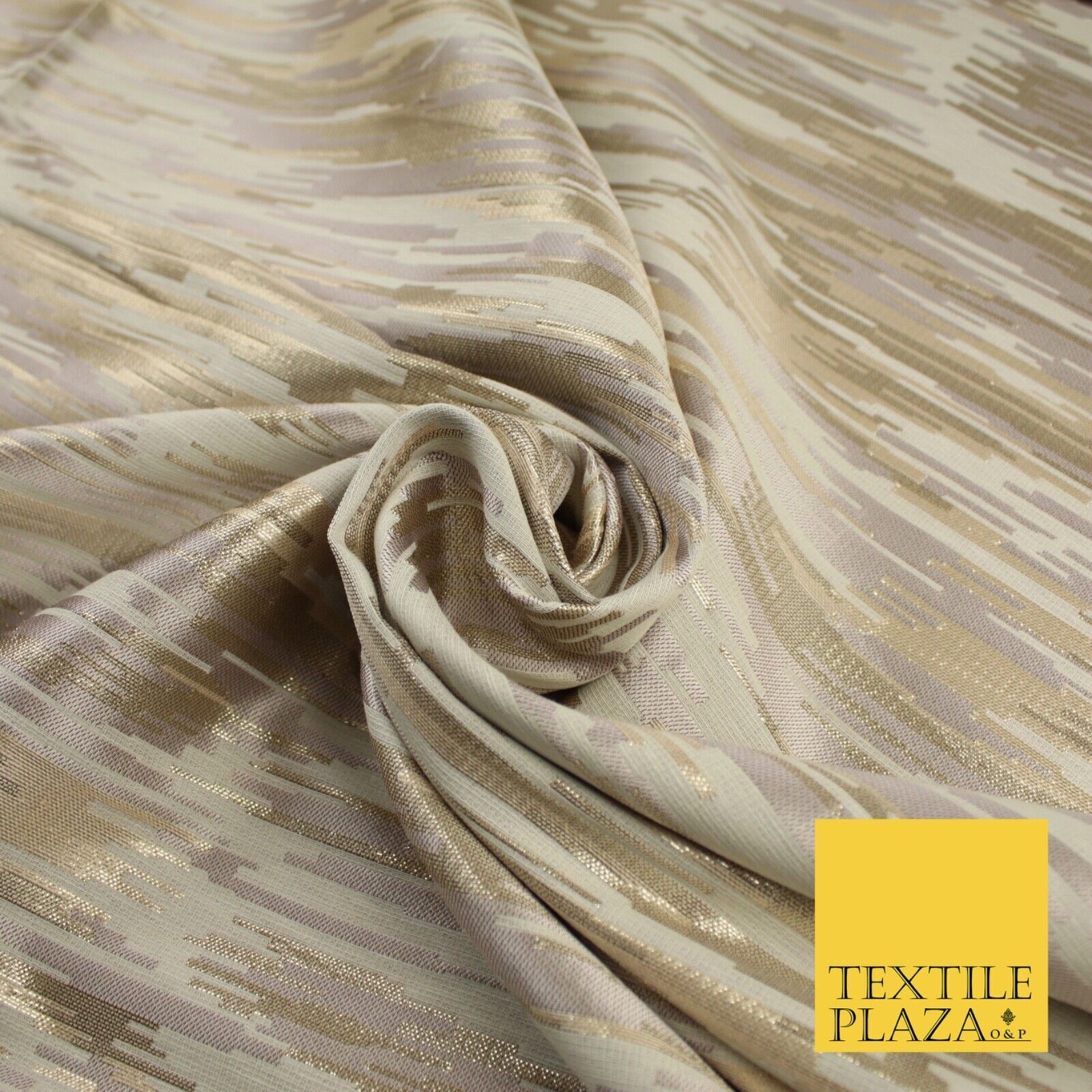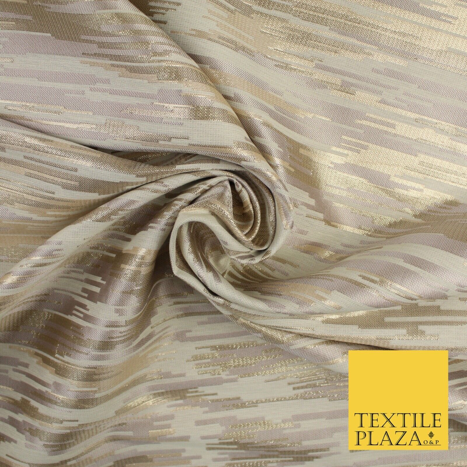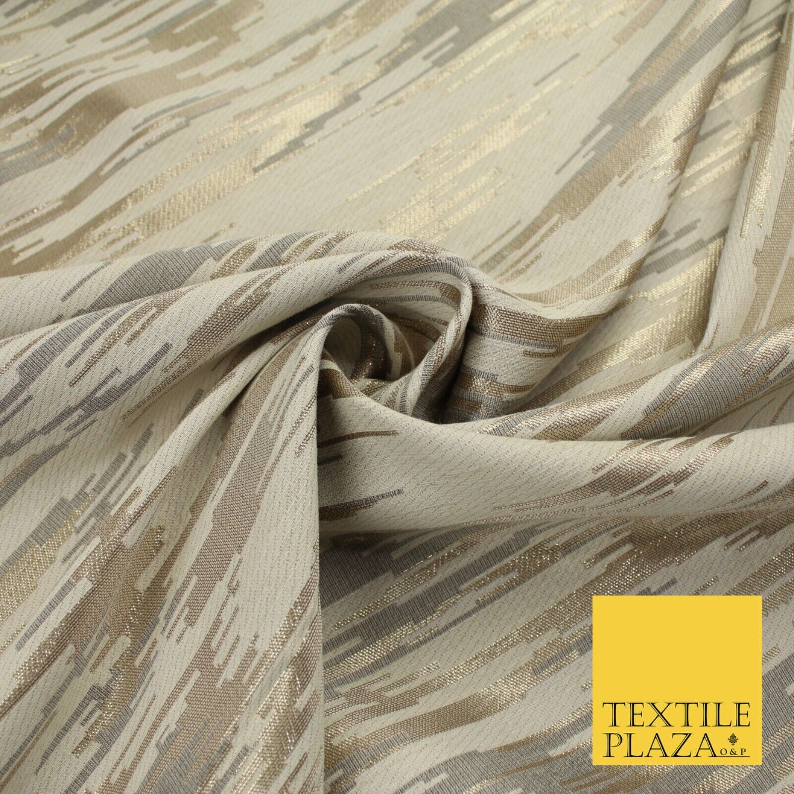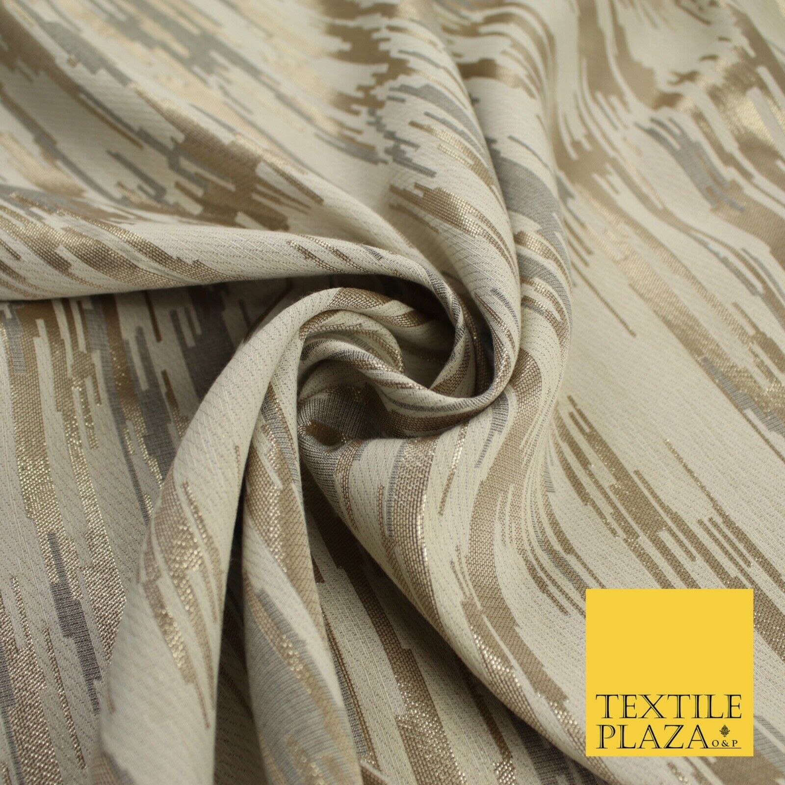 2 COLOURS - Metallic Gold Barcode Stripes Retro Textured Brocade Dress Fabric