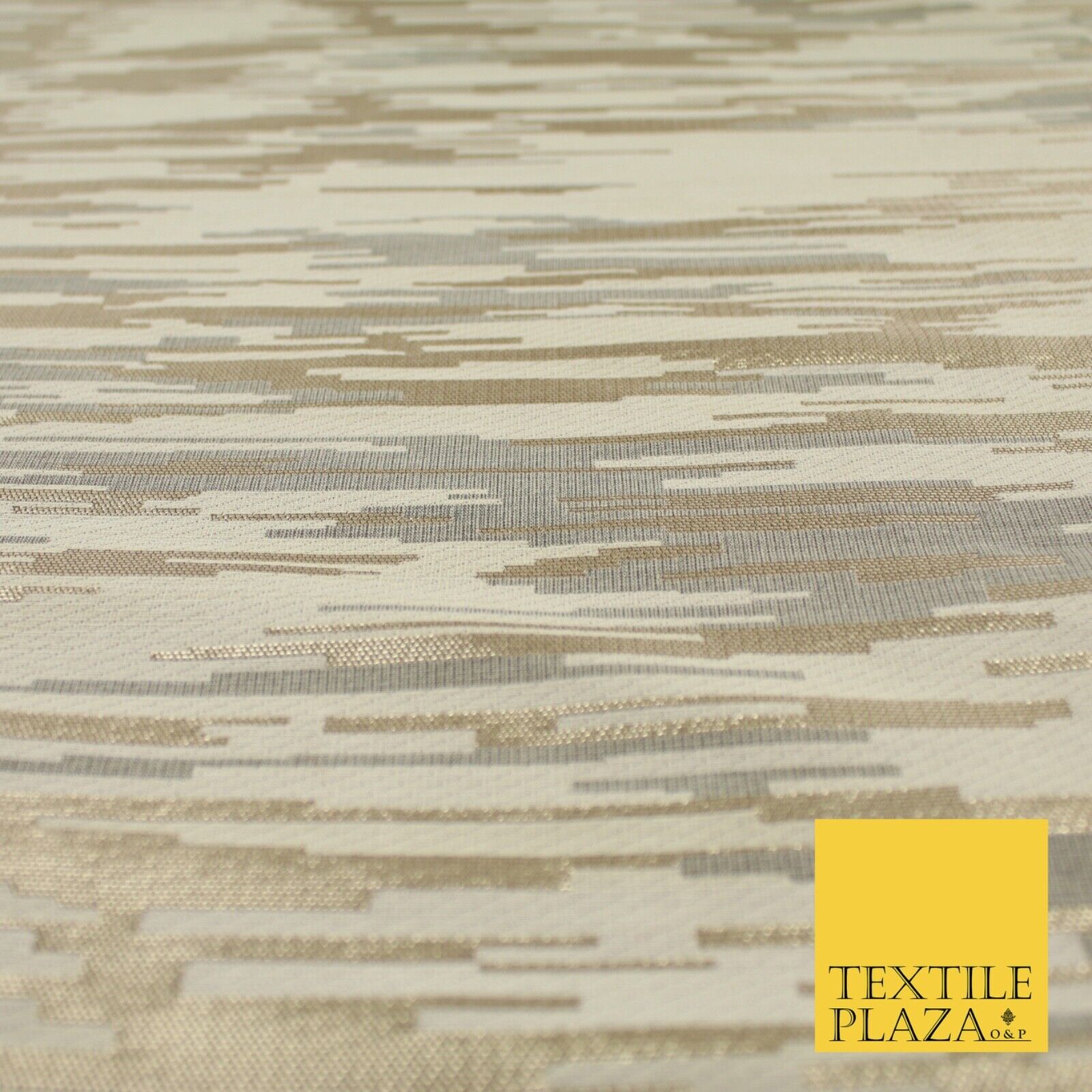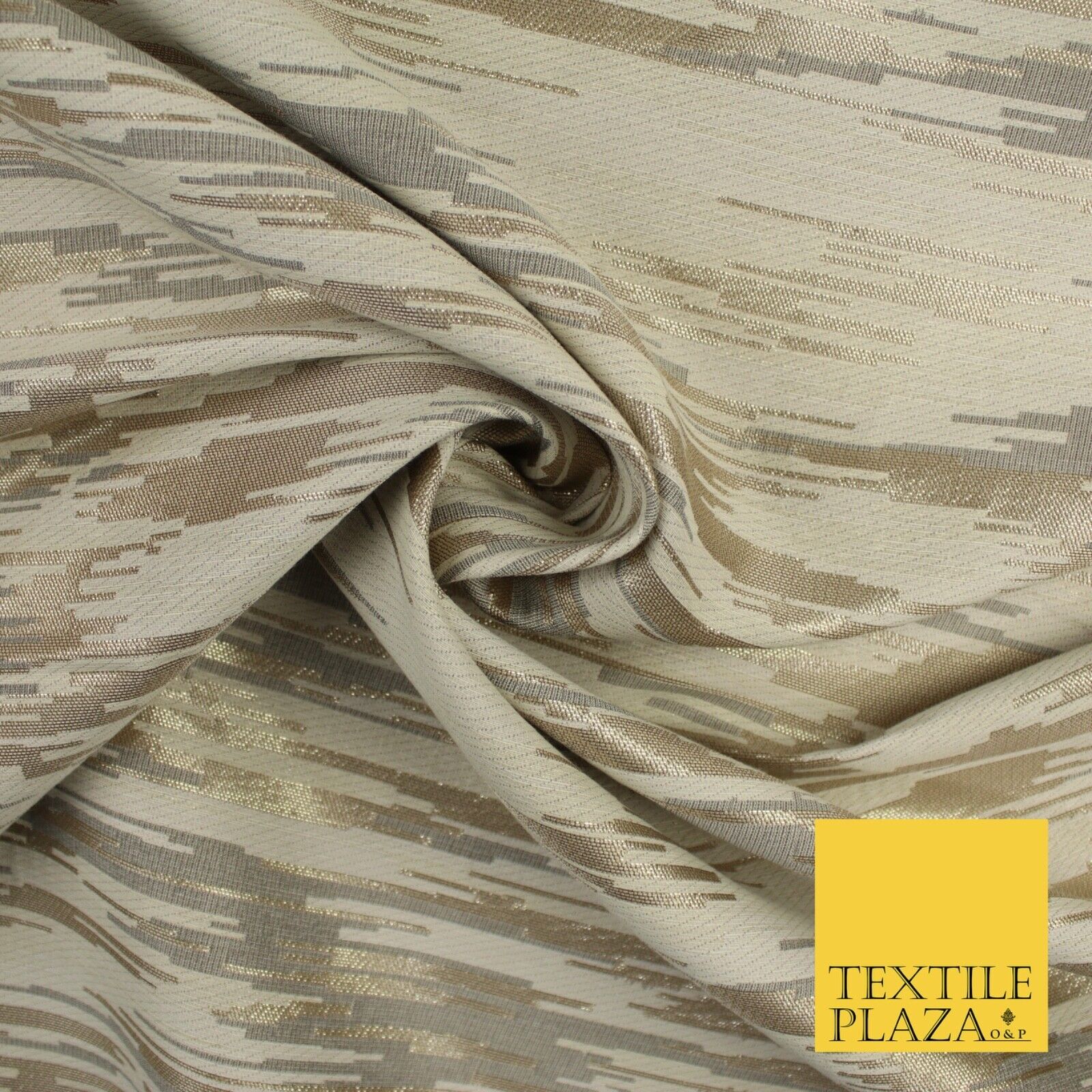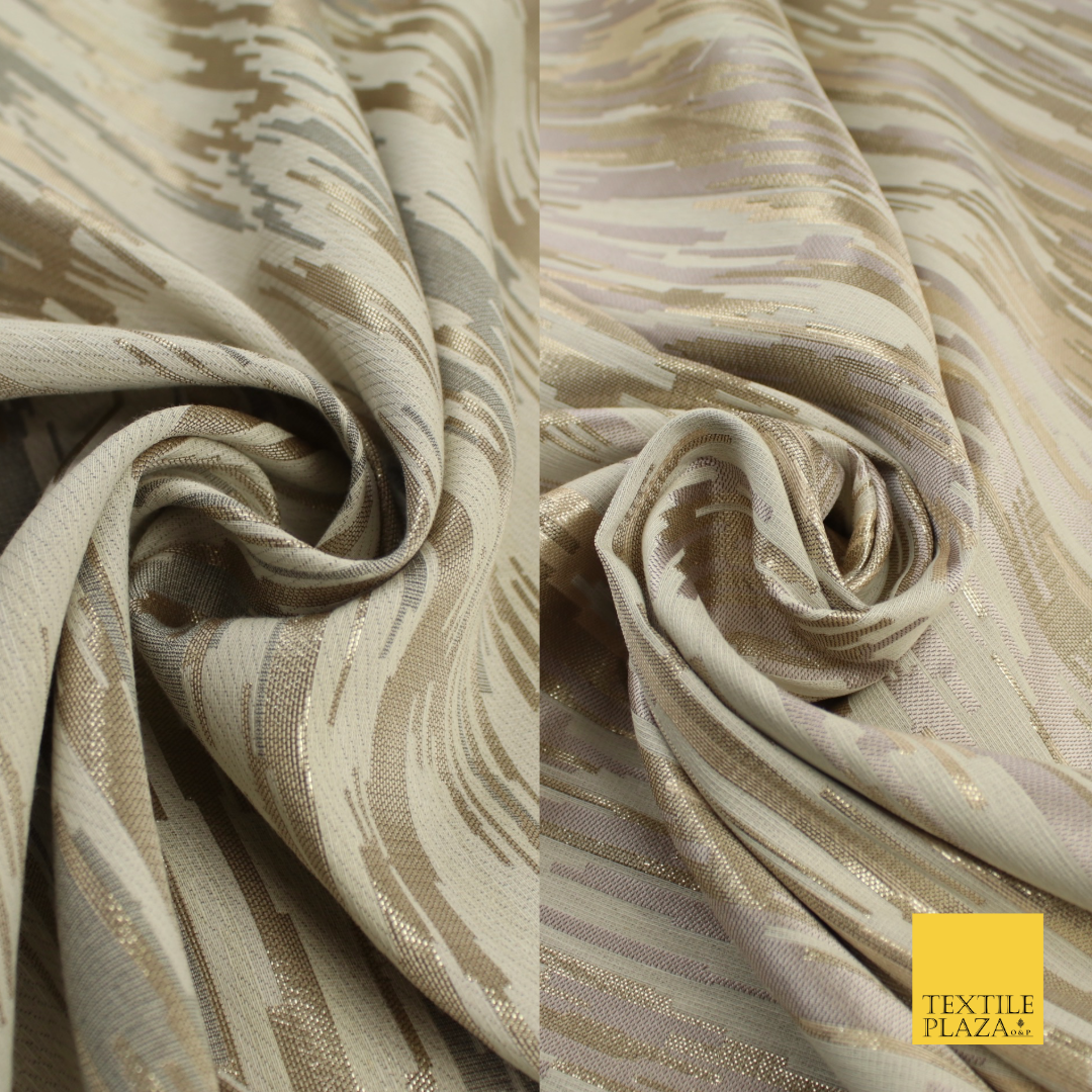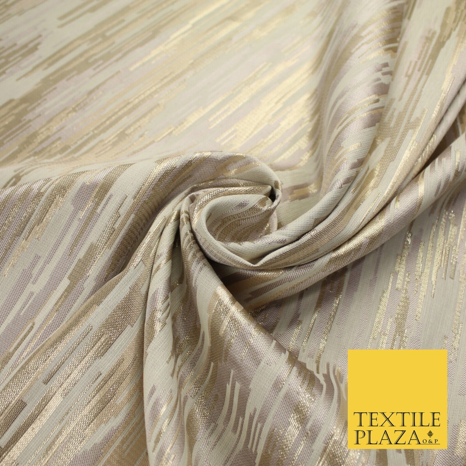 2 COLOURS - Metallic Gold Barcode Stripes Retro Textured Brocade Dress Fabric