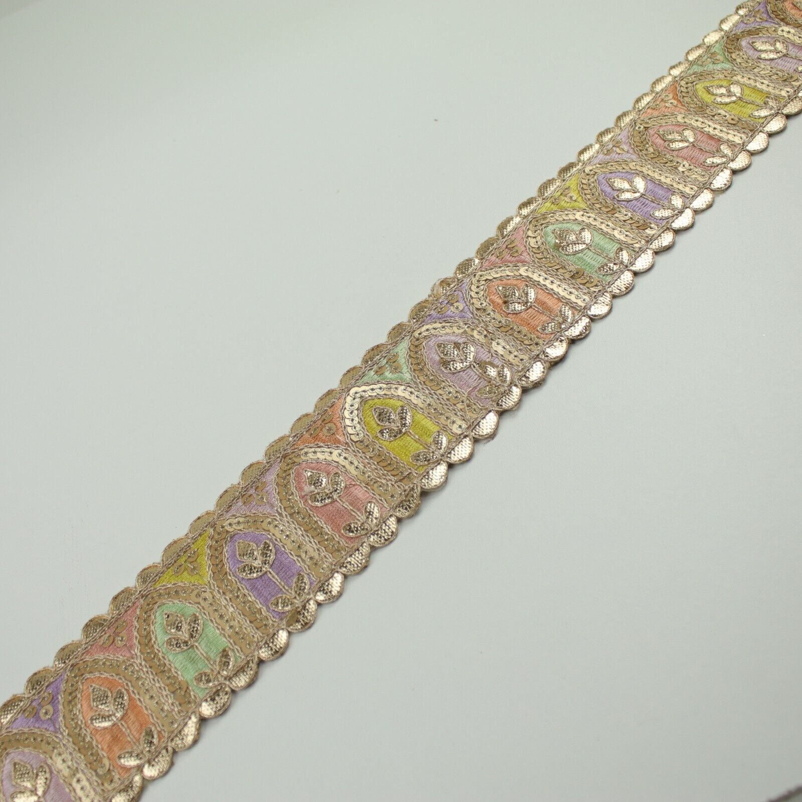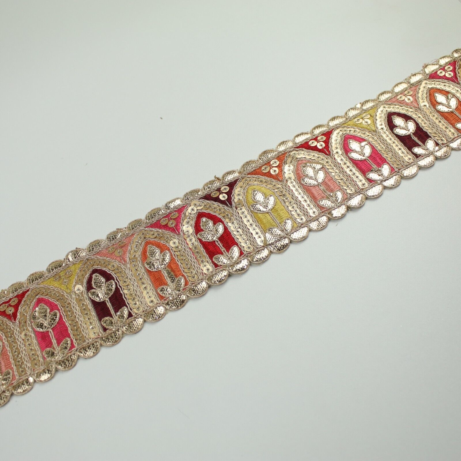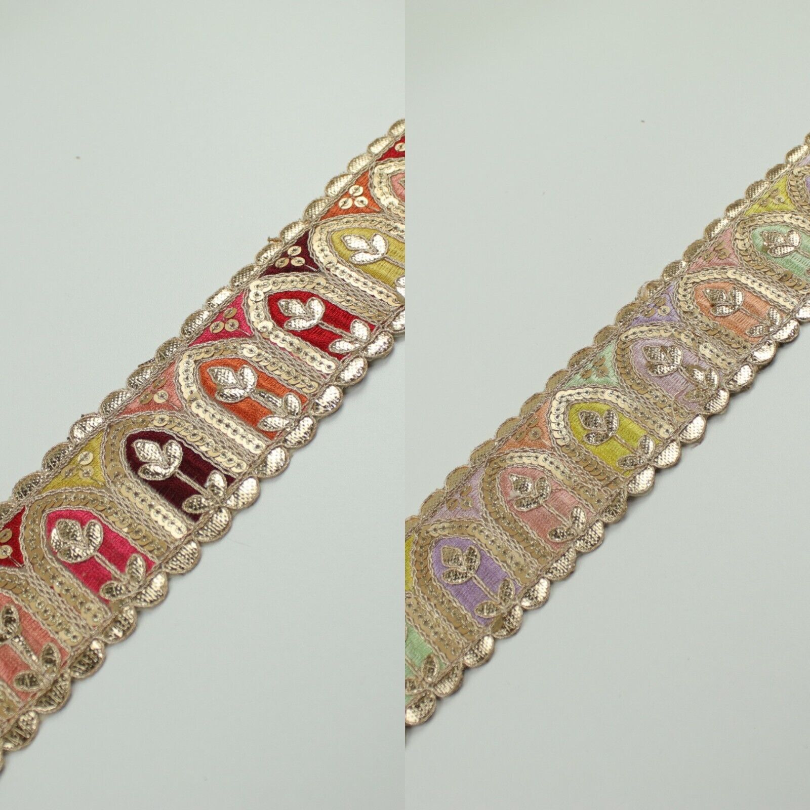 2 COLOURS Multi Colour Arch Floral Sequin Embroidered Trim Border Lace 6cm Wide