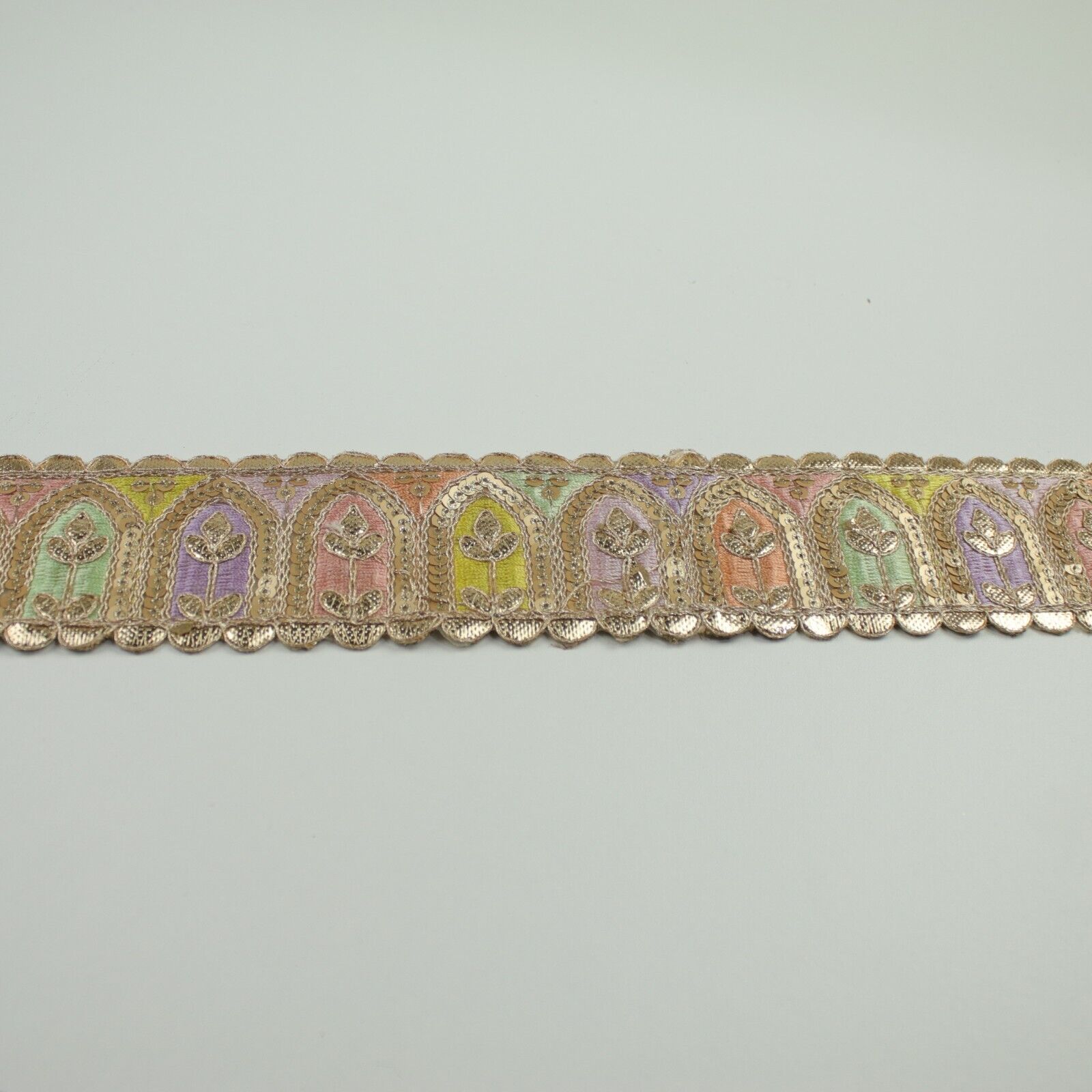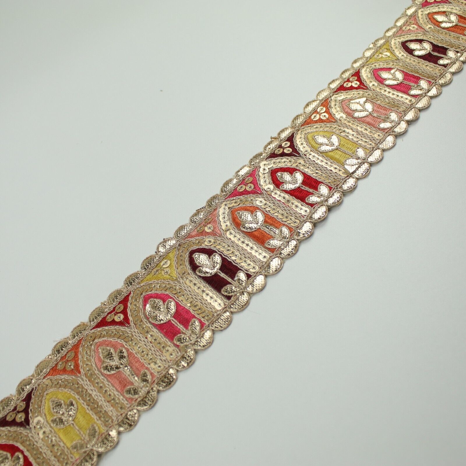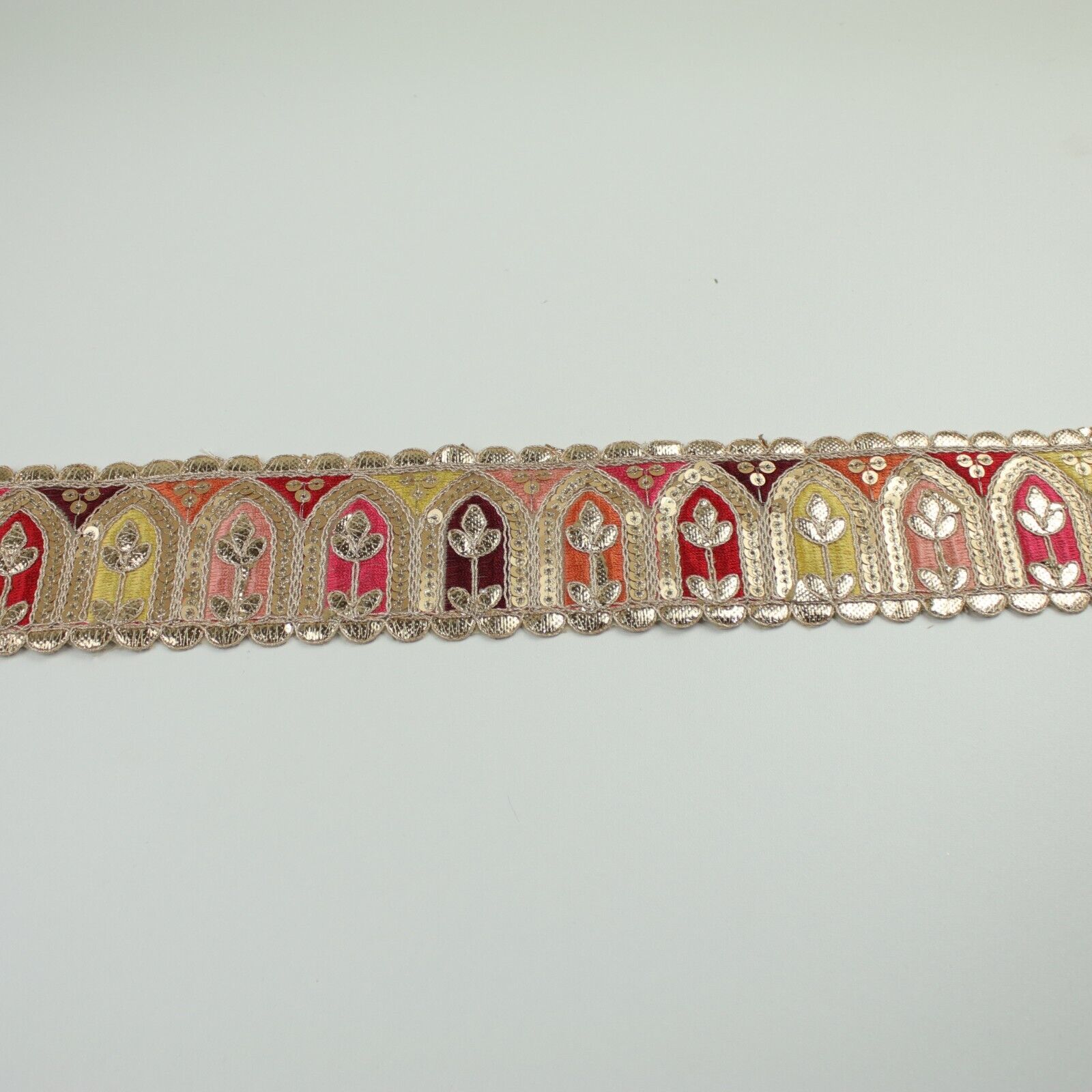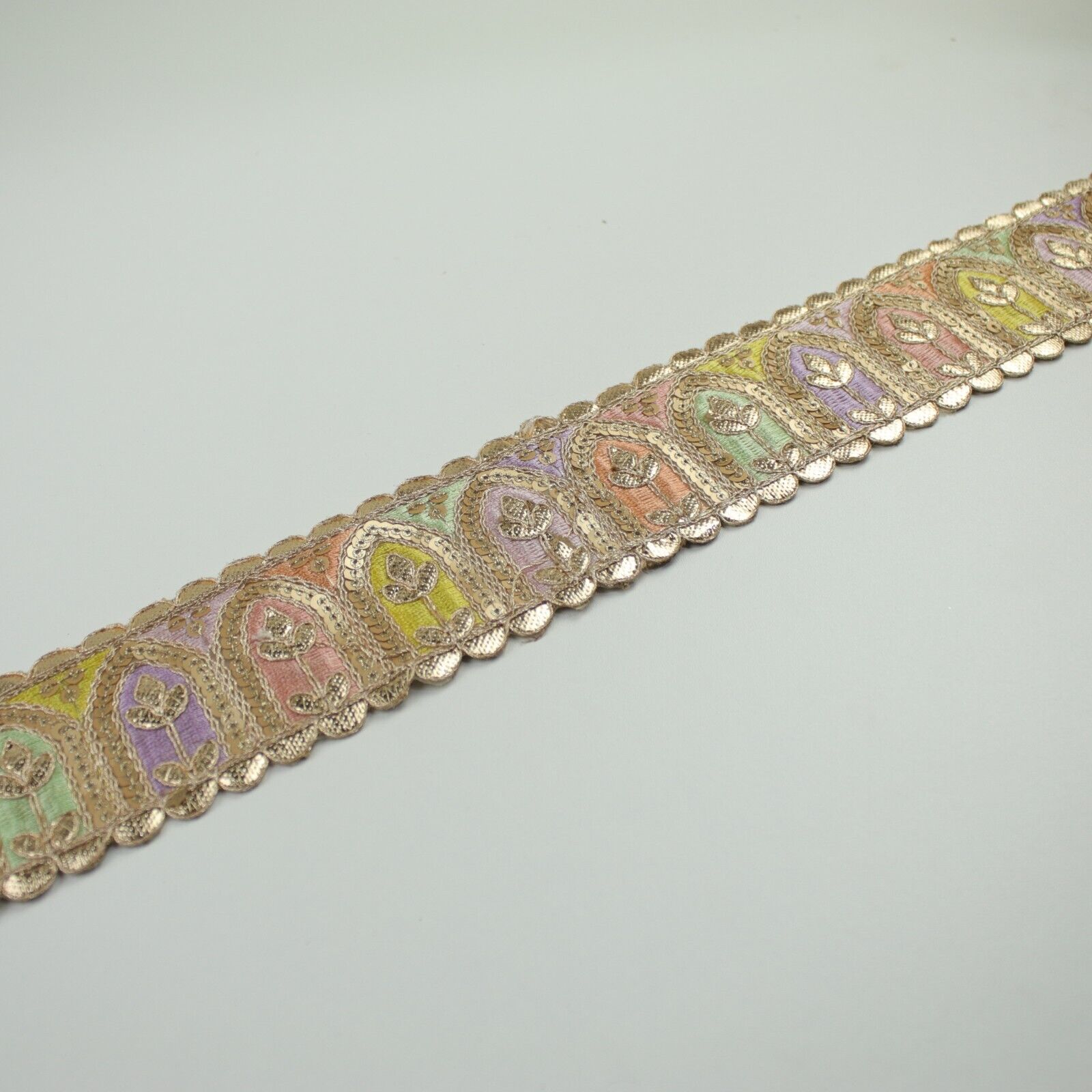 2 COLOURS Multi Colour Arch Floral Sequin Embroidered Trim Border Lace 6cm Wide