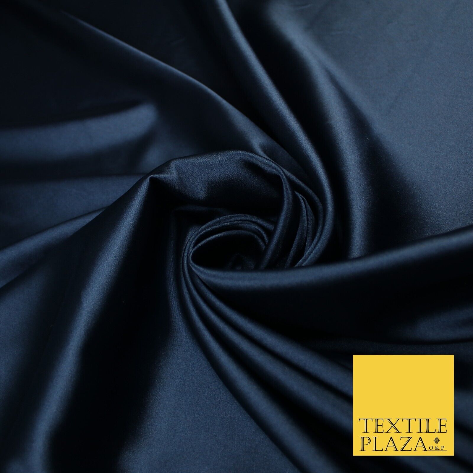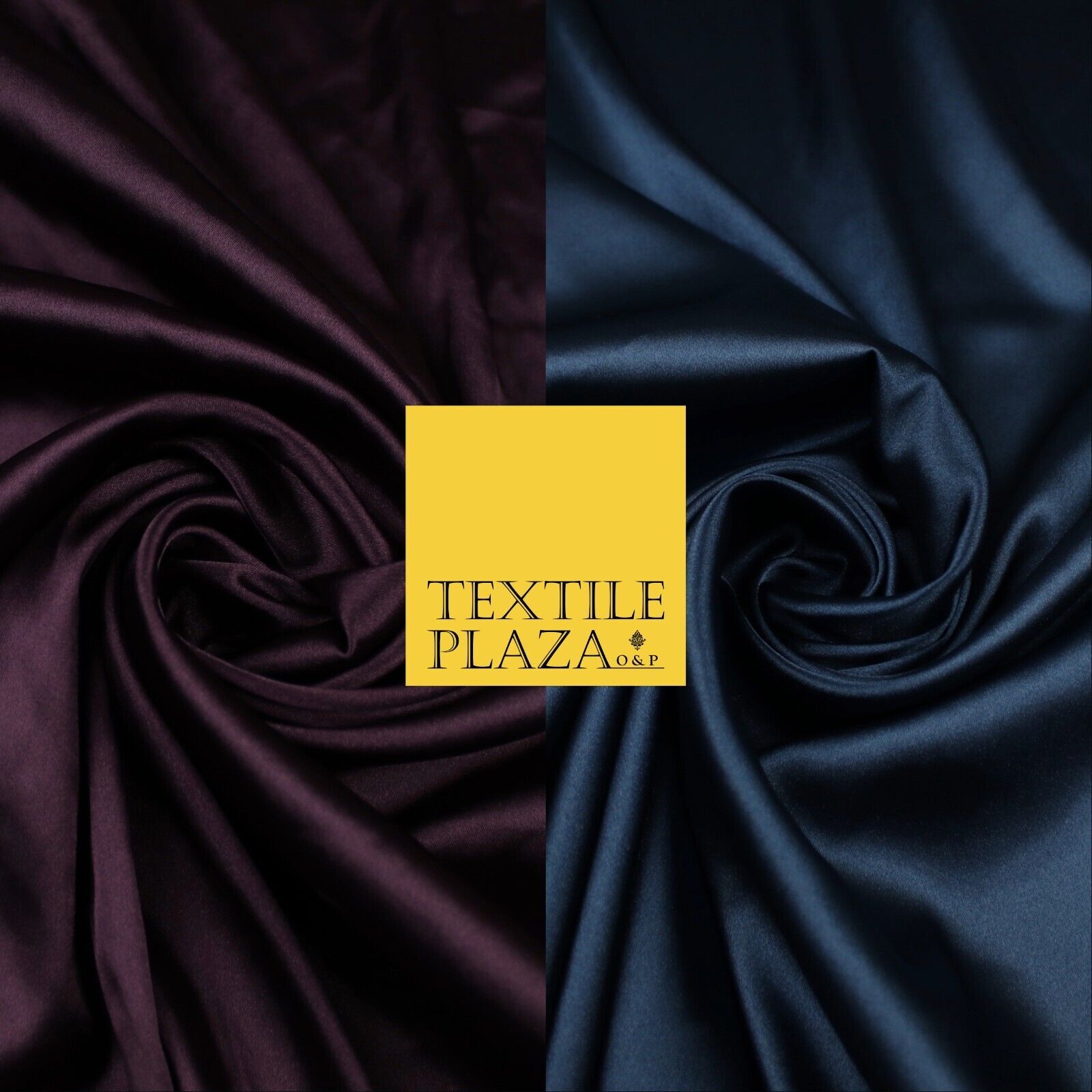 2 COLOURS - NAVY & PLUM Luxury Plain Fine Stretch Satin Fabric Wedding Dress 58"