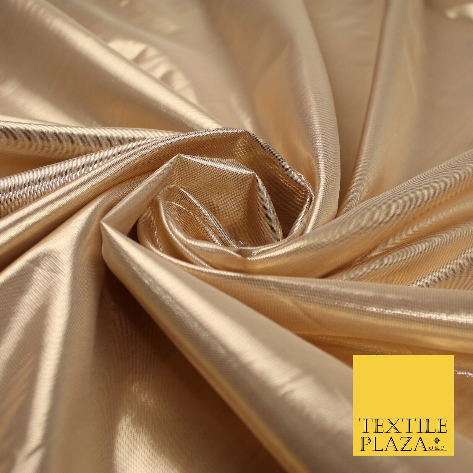 Premium Metallic Foil Lame Fabric with No StretchFabric : PolyesterAvailable in 24 Stunning ColoursAvailable to purchase by the Metre.Sizes are... Read more Read more