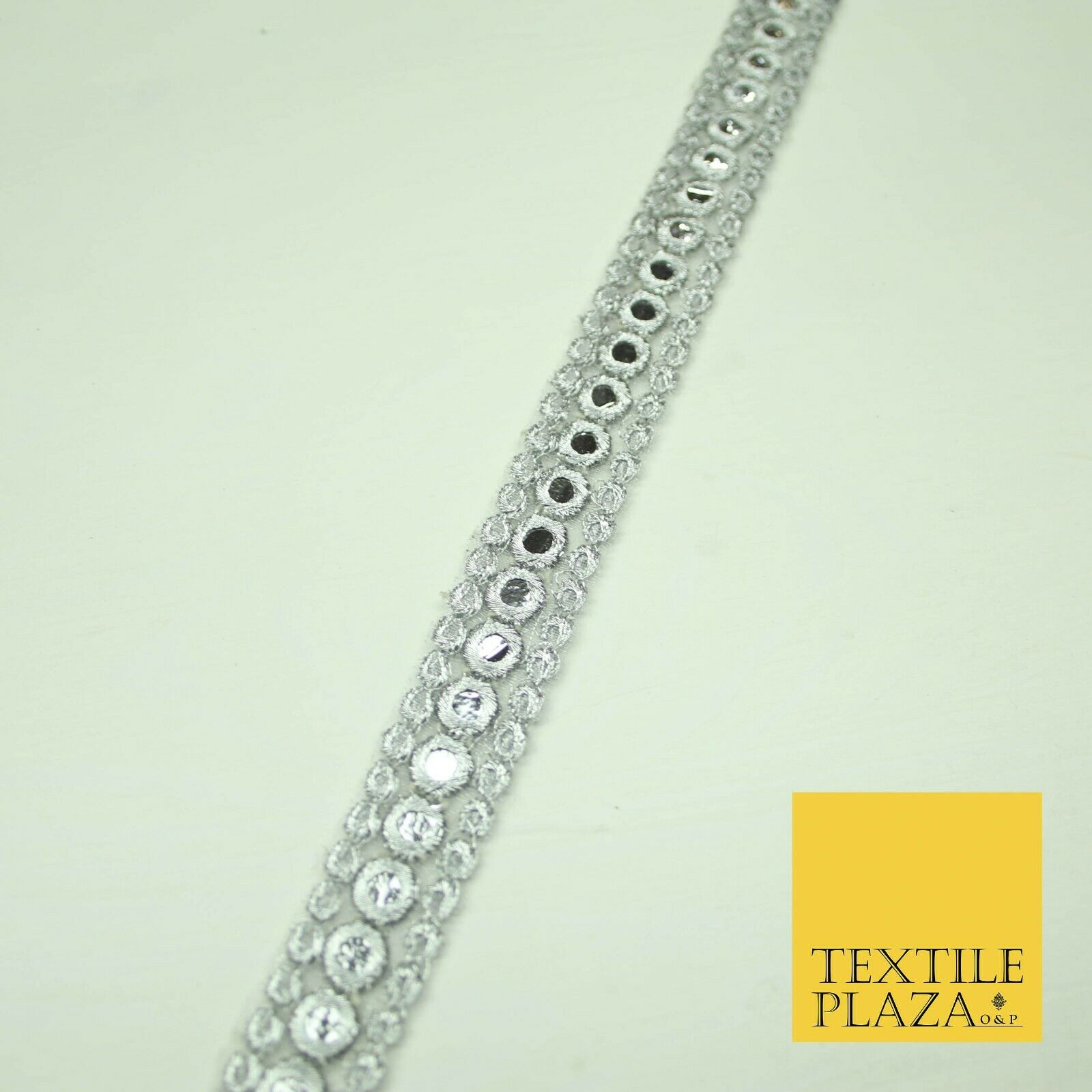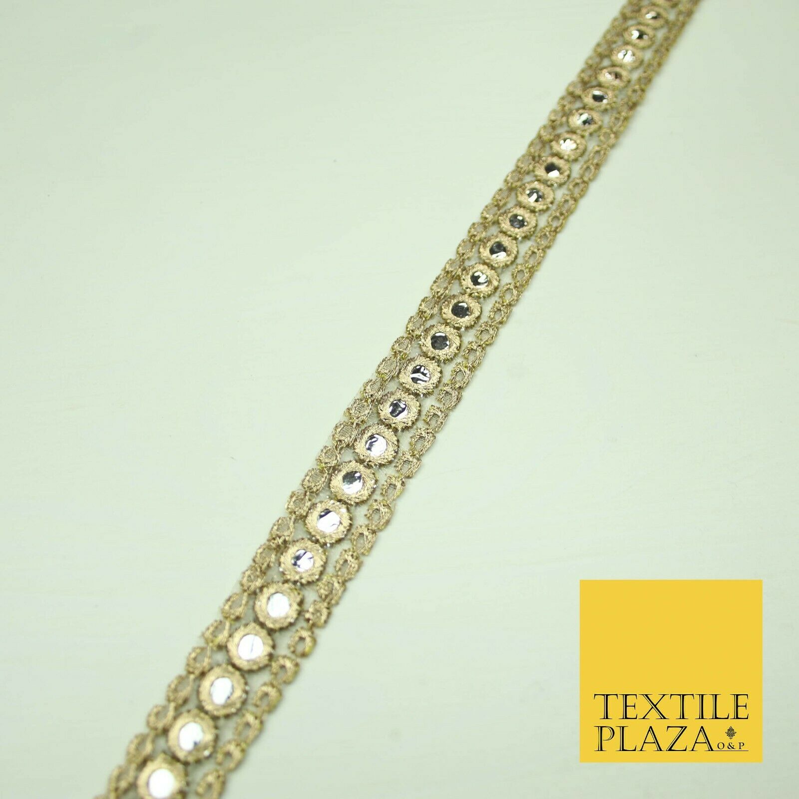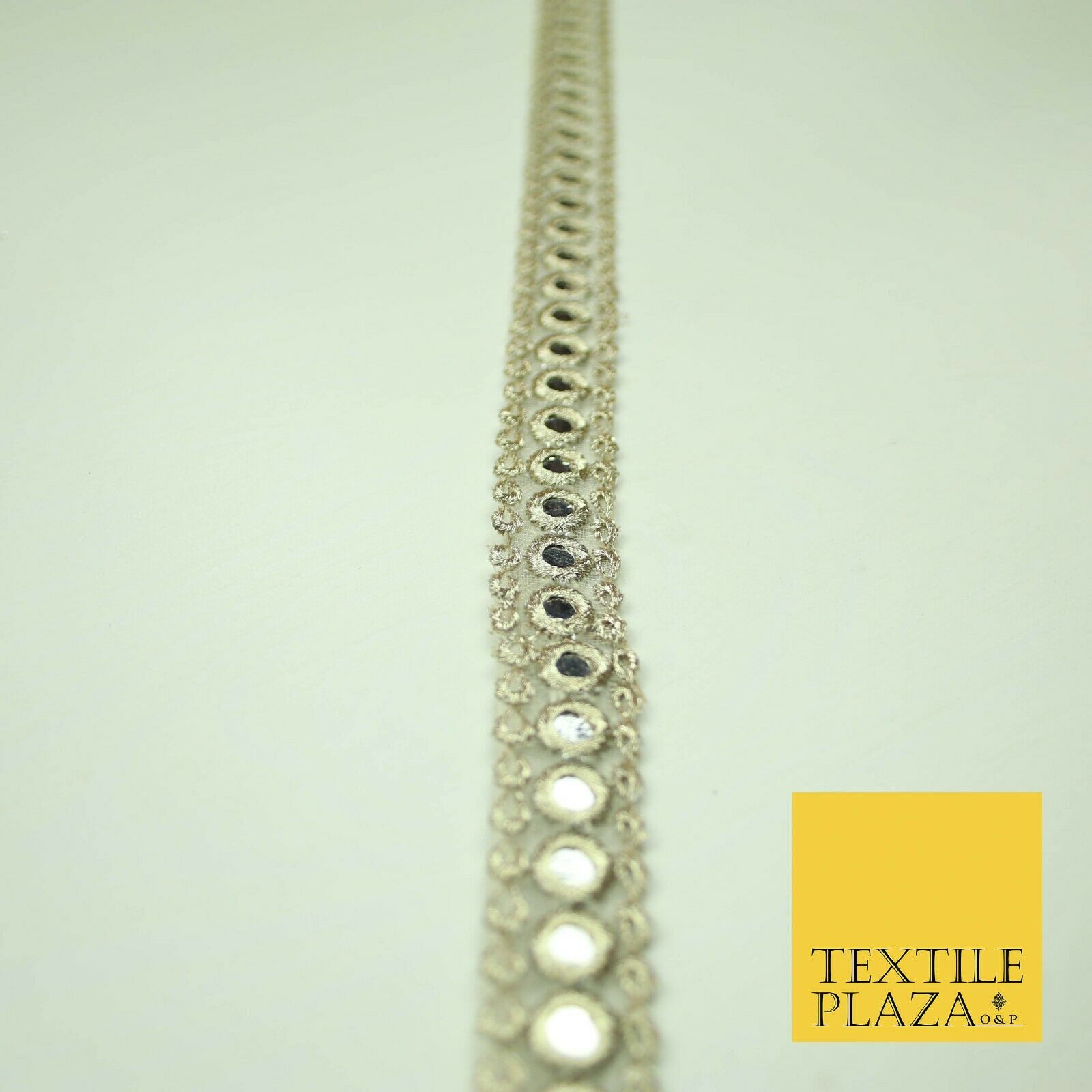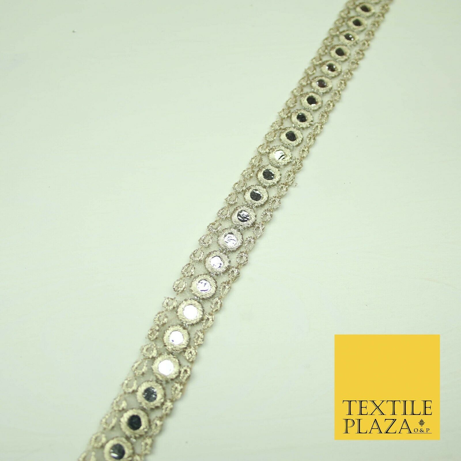 2cm wide Gold Silver Mirror Effect Trimming Ribbon Border Lace Ethnic Gota