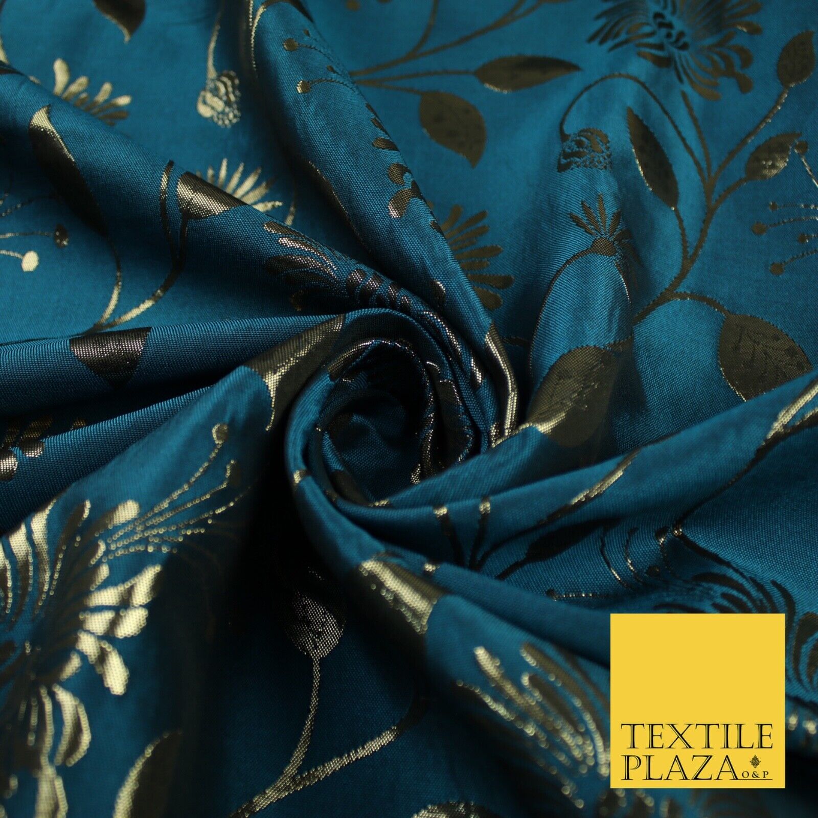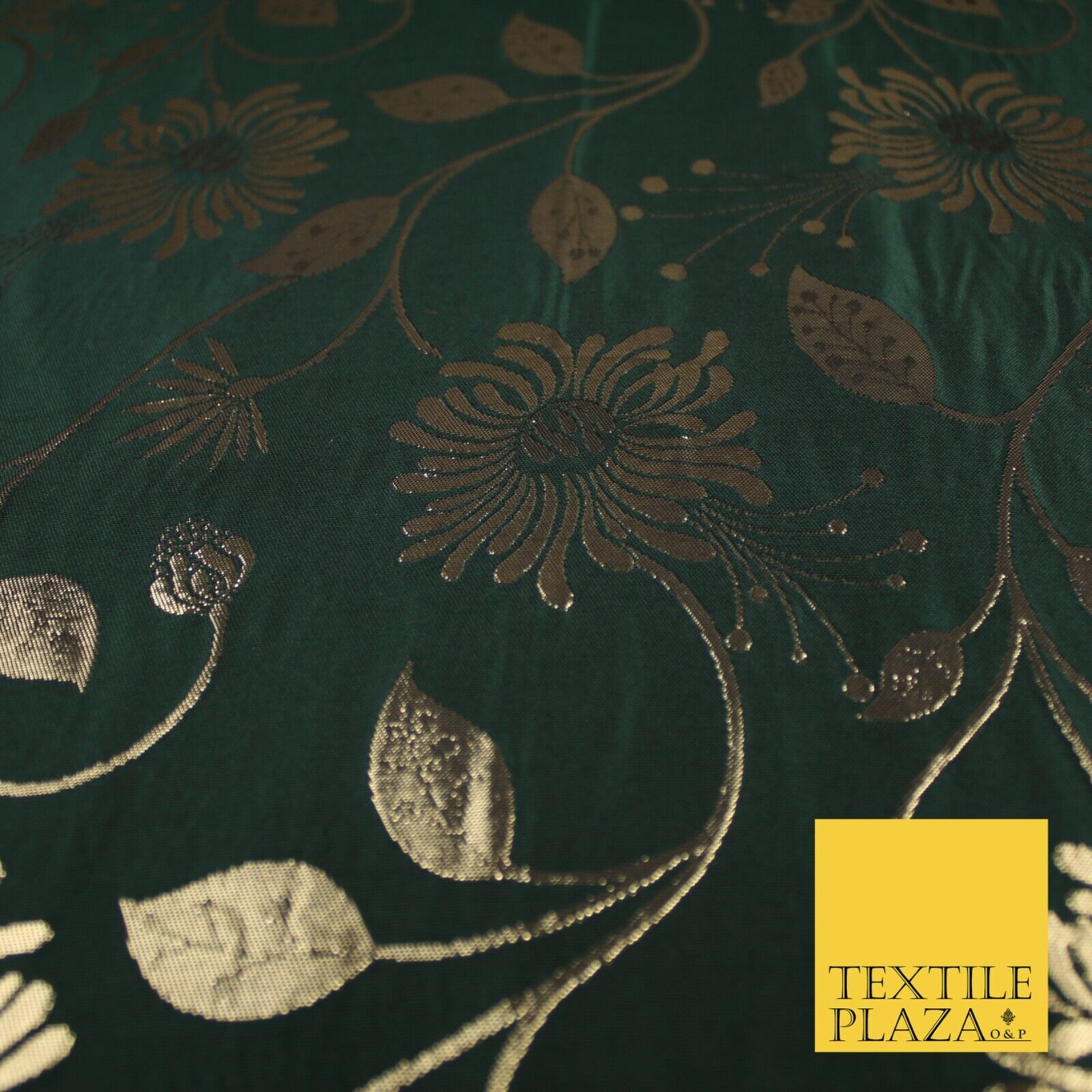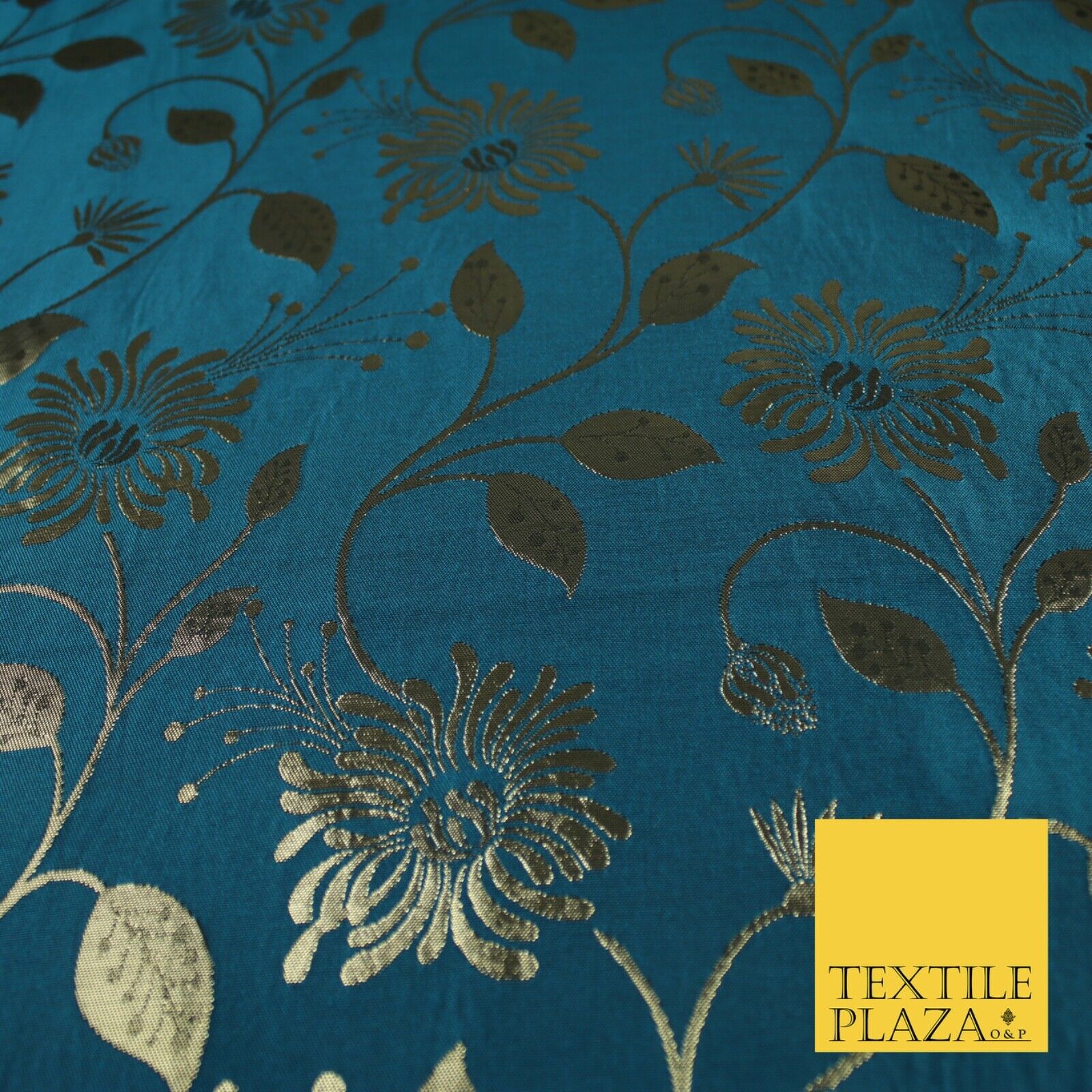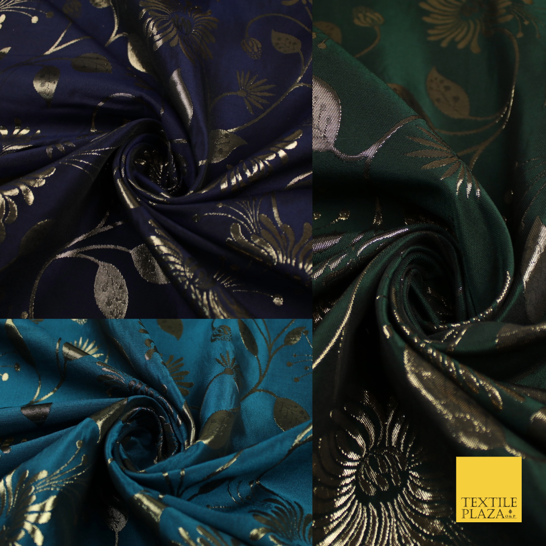 3 COLOURS - Antique Gold Floral Vine Metallic Fancy Brocade Jacquard Fabric