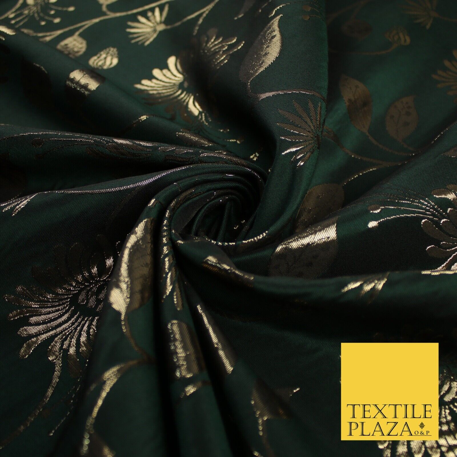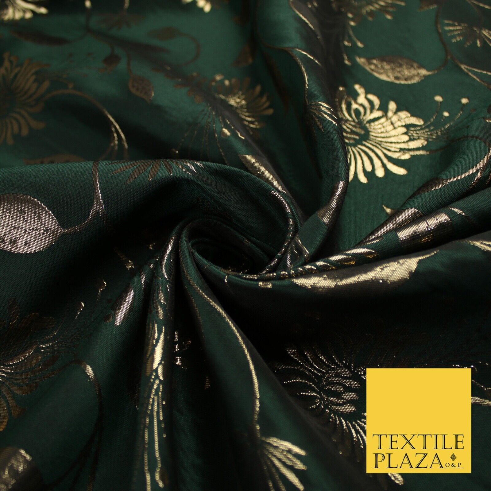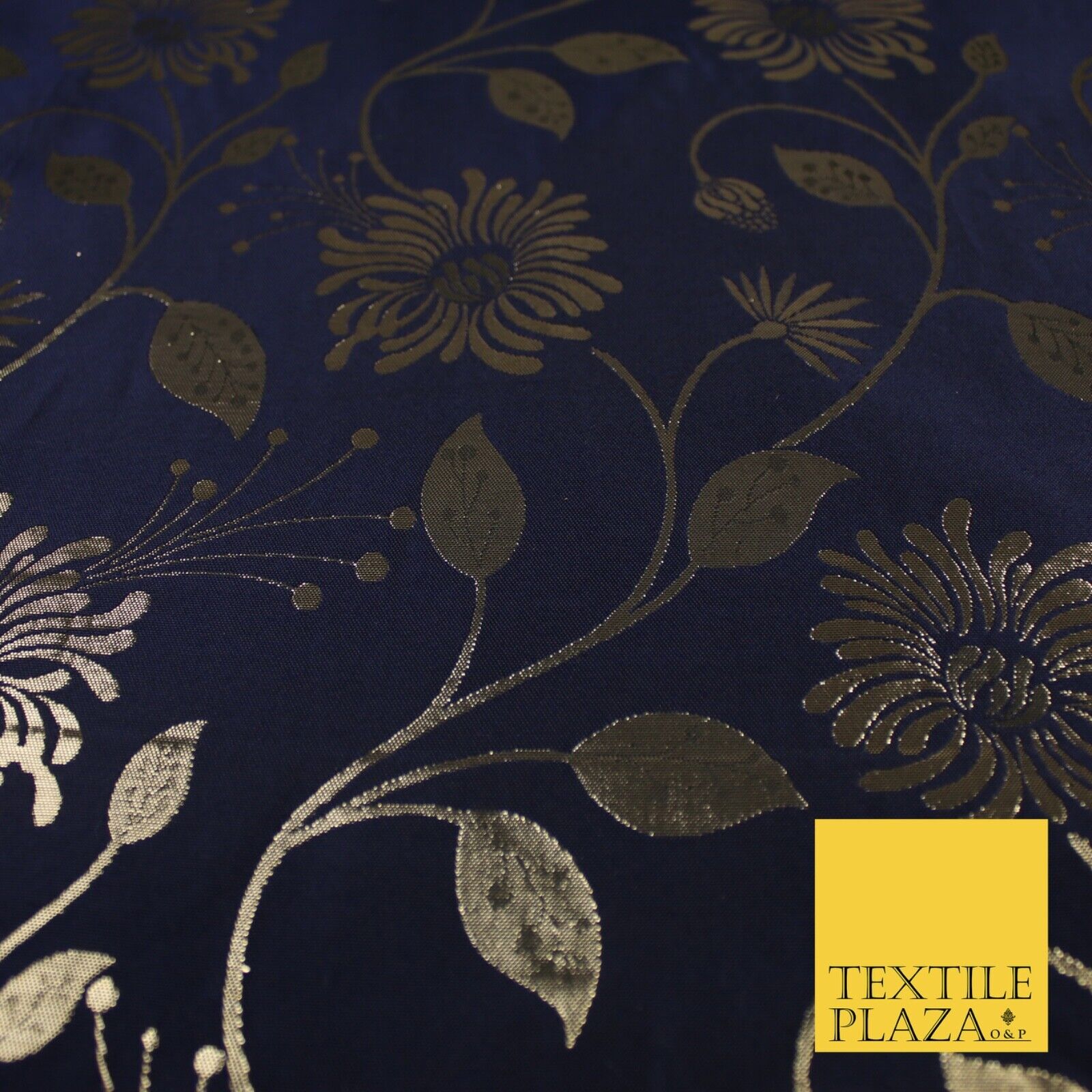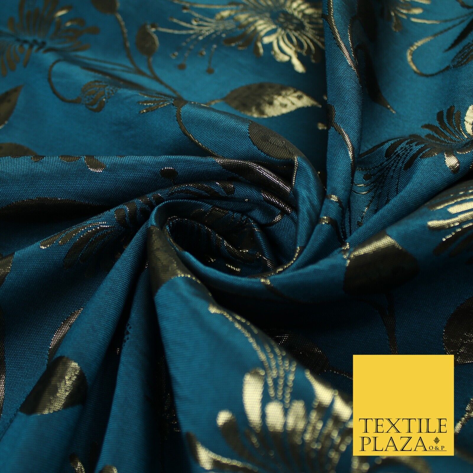 3 COLOURS - Antique Gold Floral Vine Metallic Fancy Brocade Jacquard Fabric