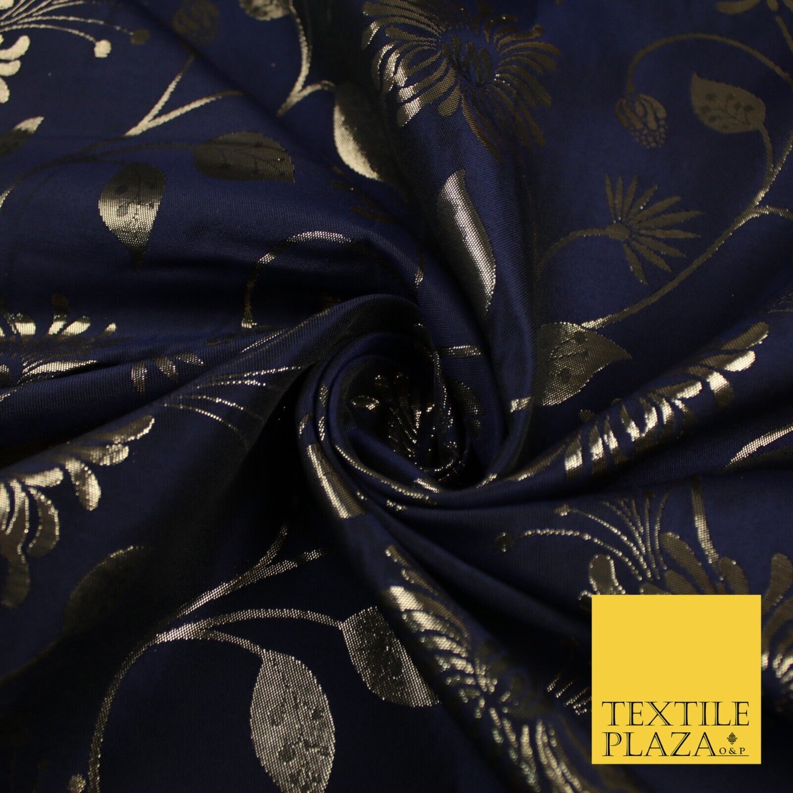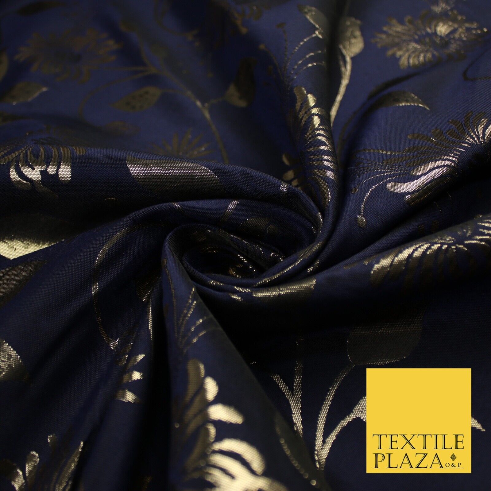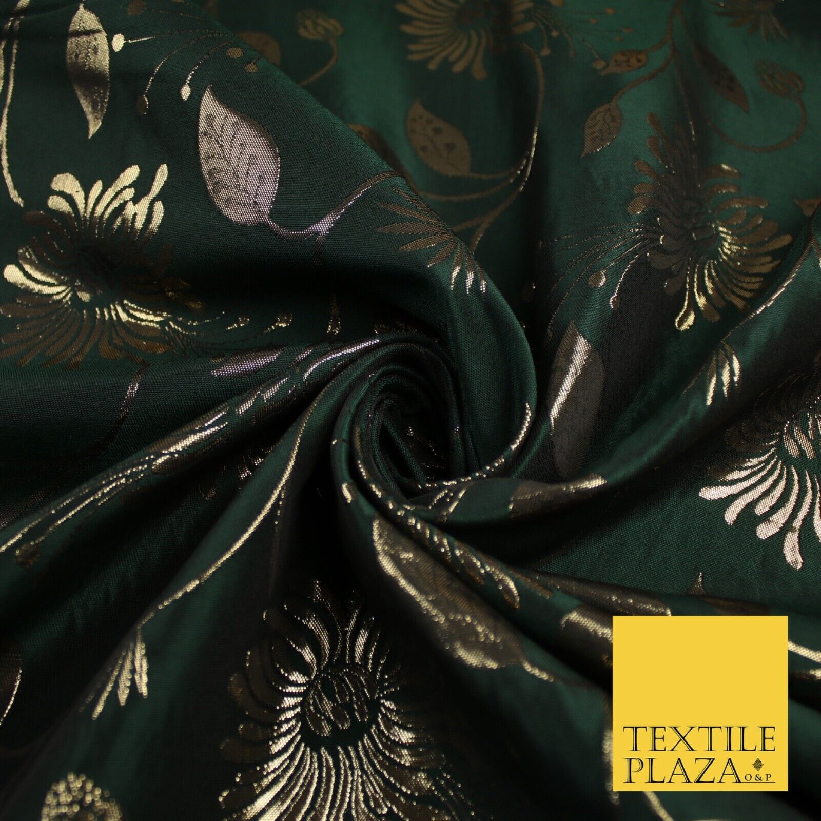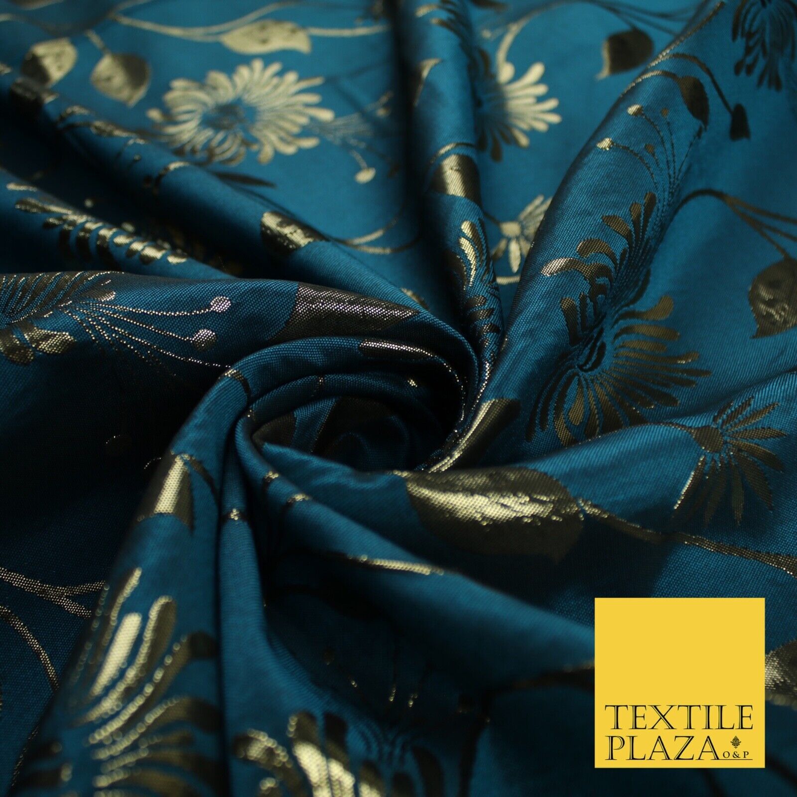 3 COLOURS - Antique Gold Floral Vine Metallic Fancy Brocade Jacquard Fabric