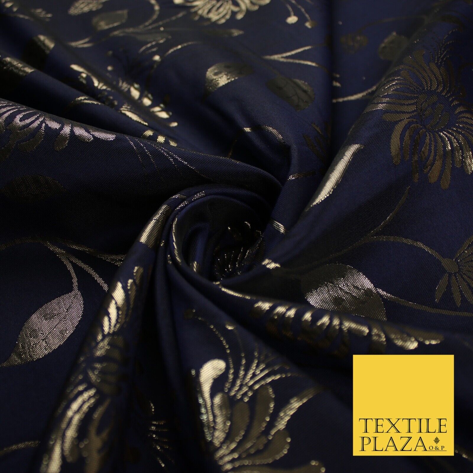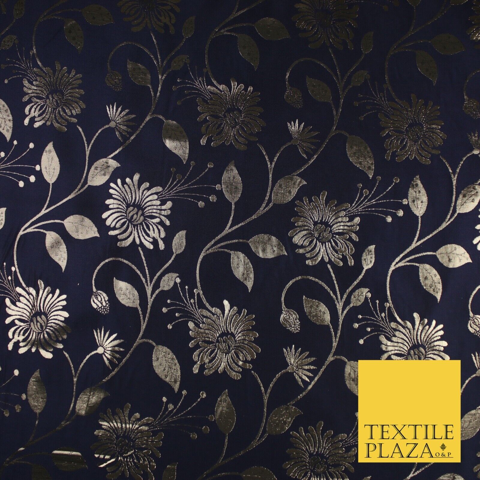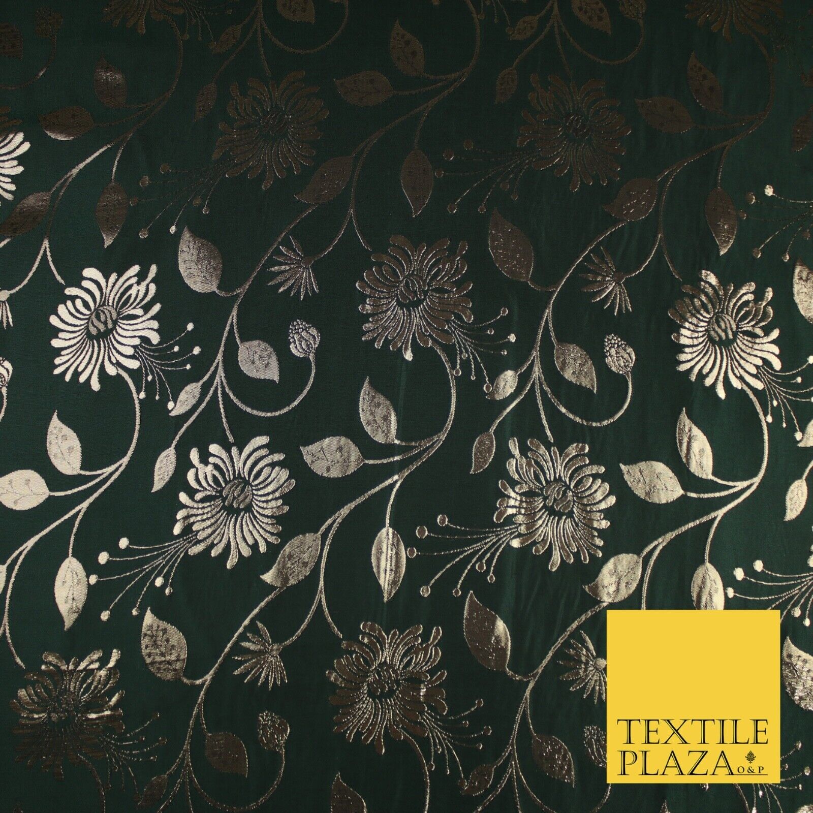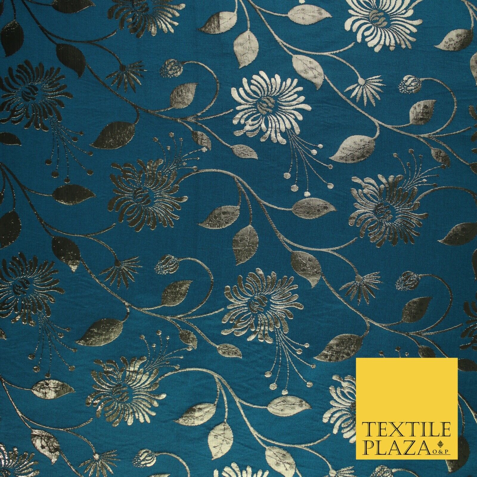 3 COLOURS - Antique Gold Floral Vine Metallic Fancy Brocade Jacquard Fabric
