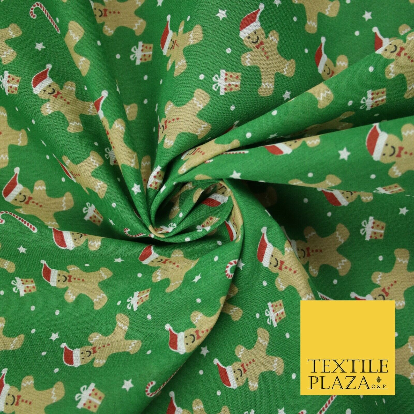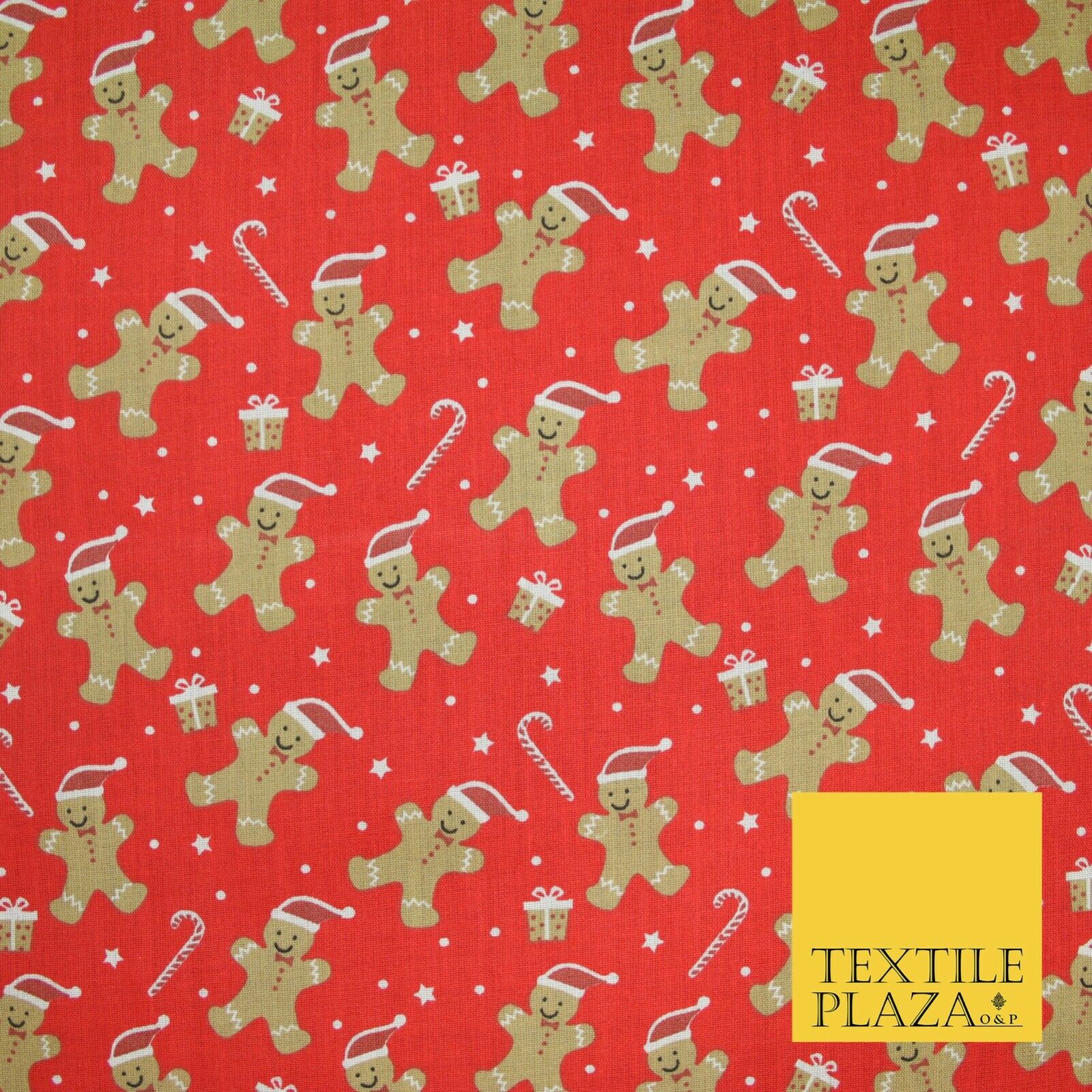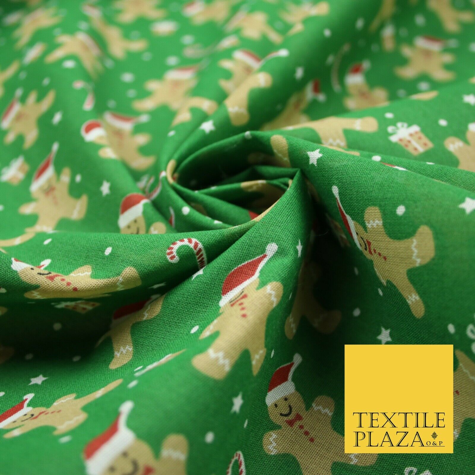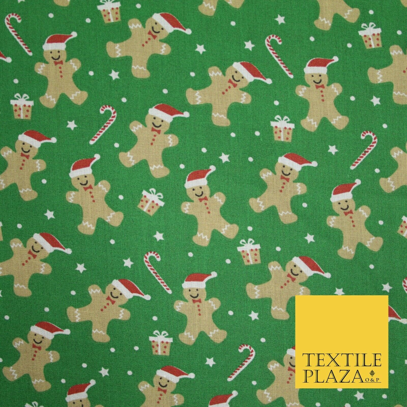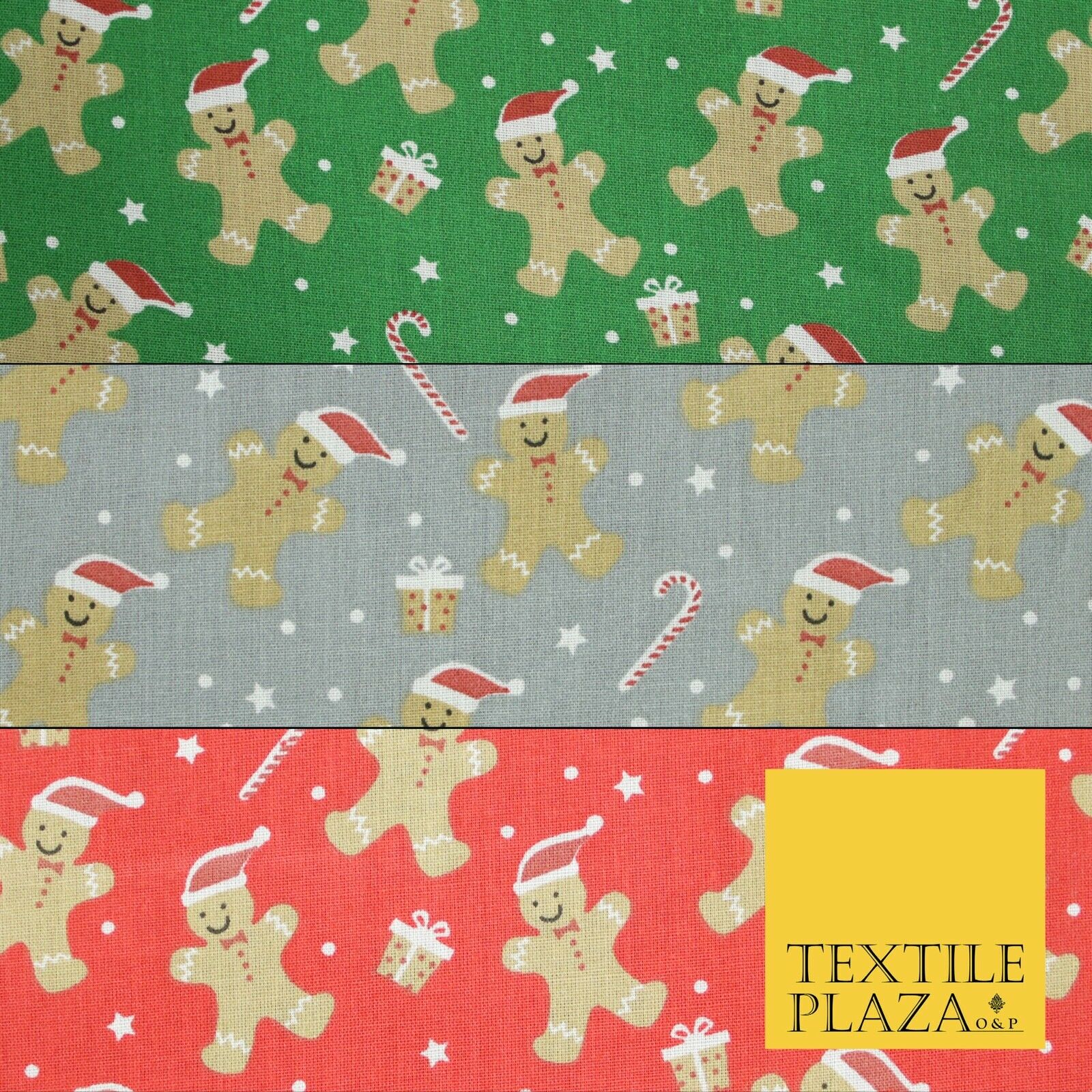 3 COLOURS Festive Gingerbread Men Santa Hat Christmas Printed Polycotton Fabric