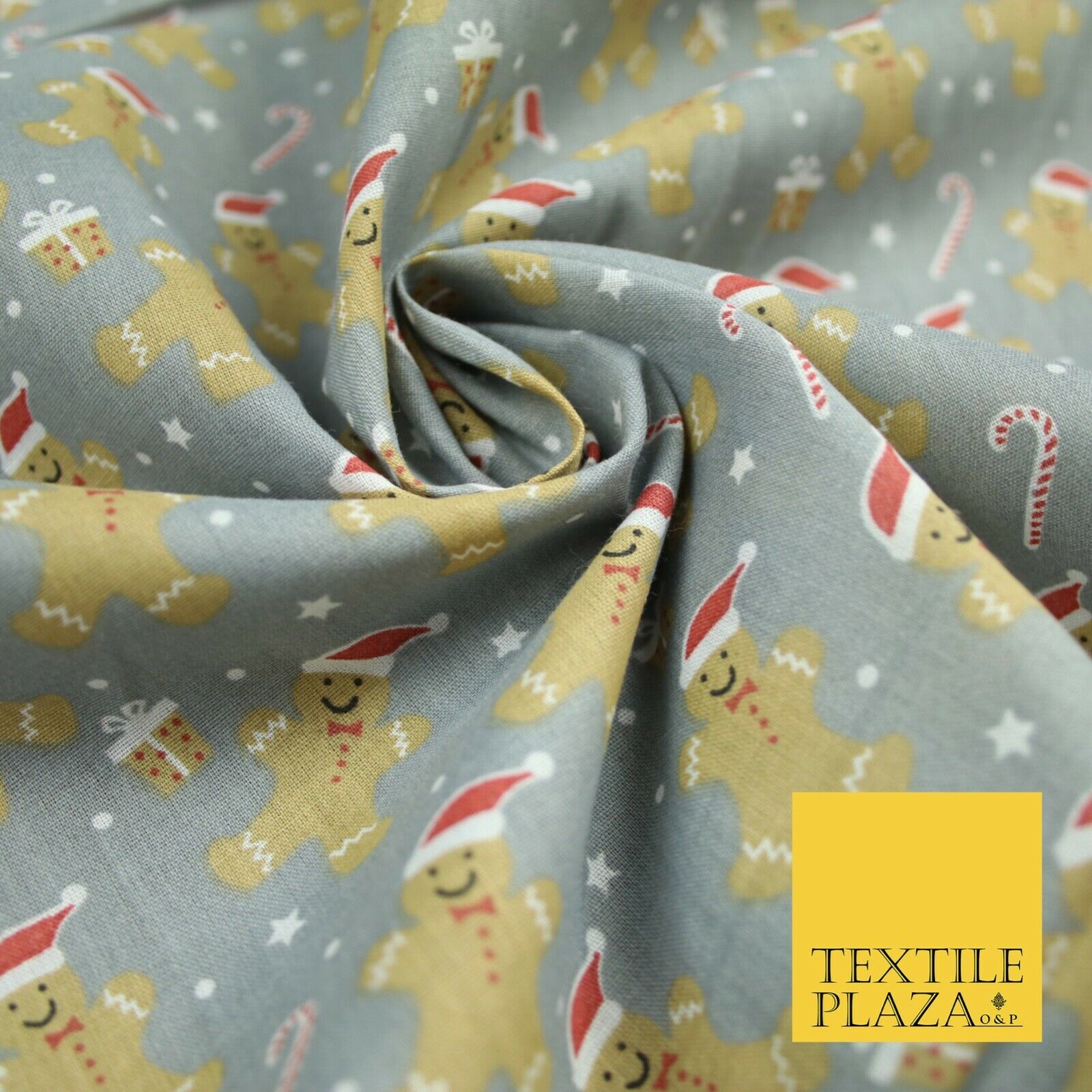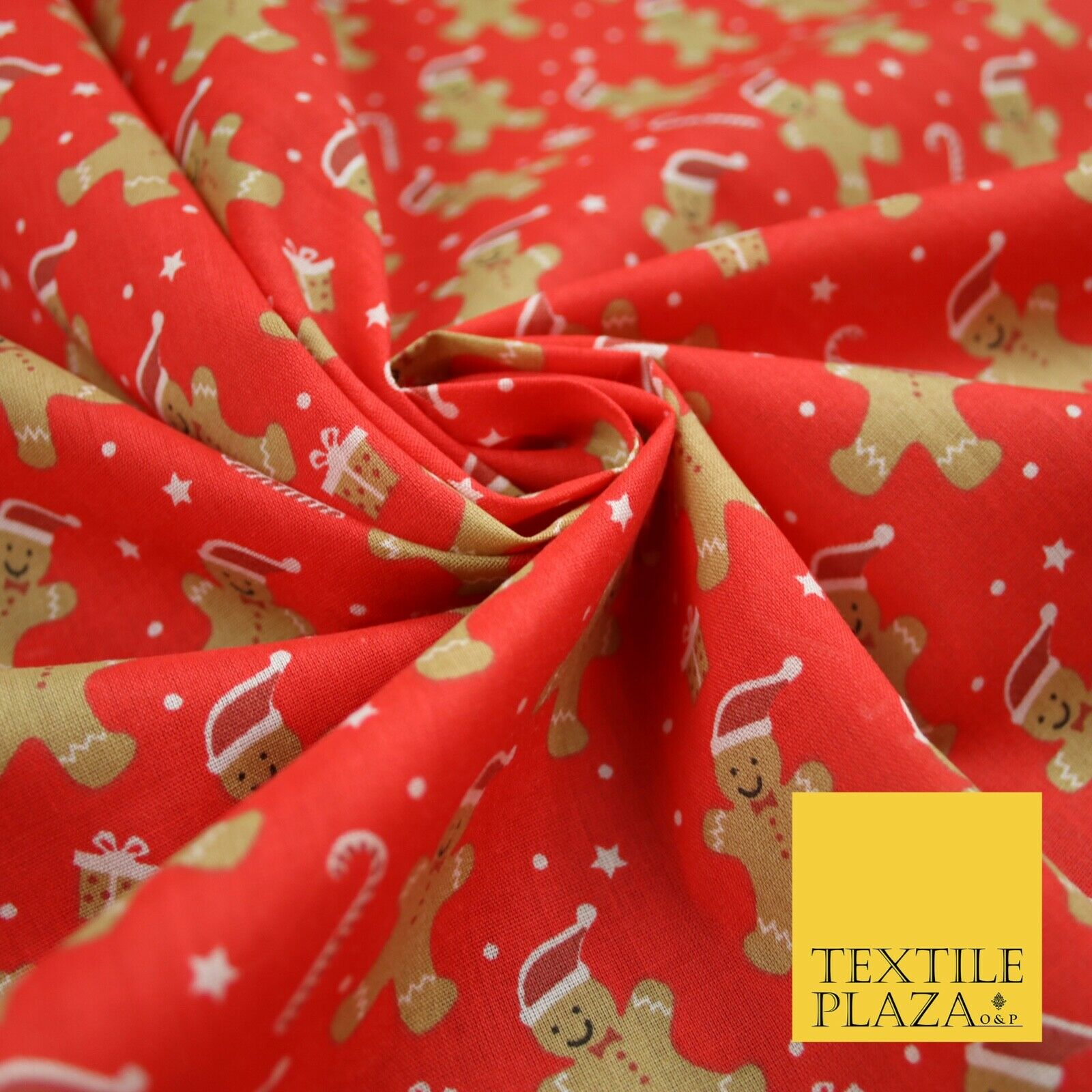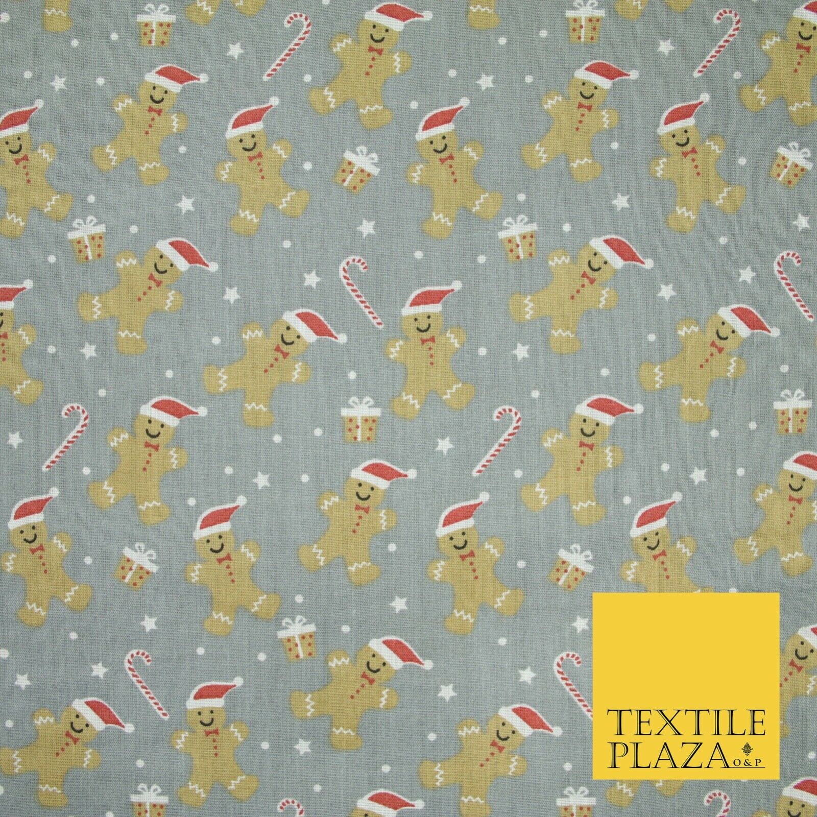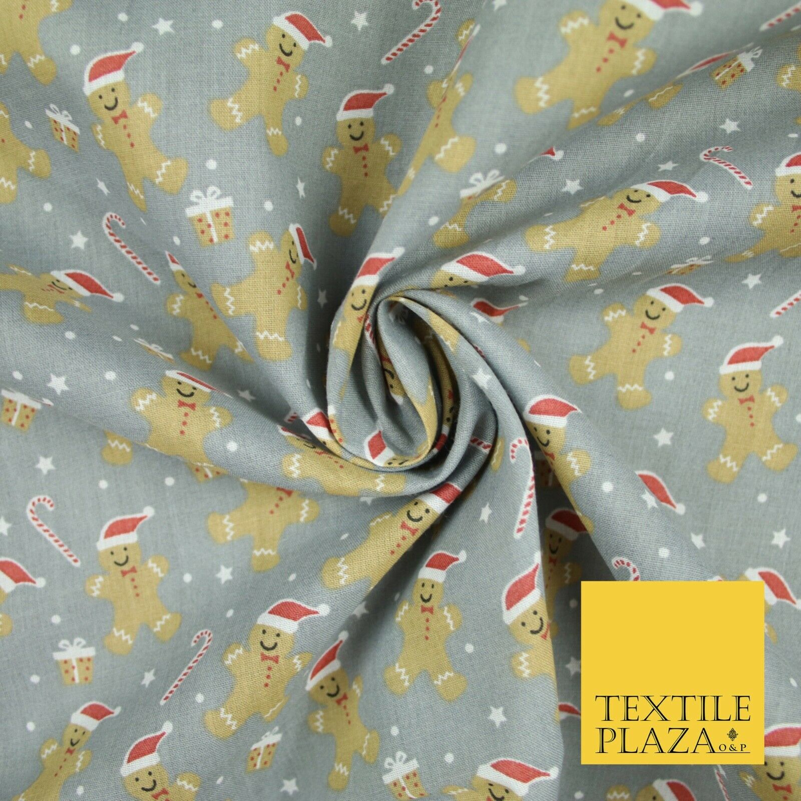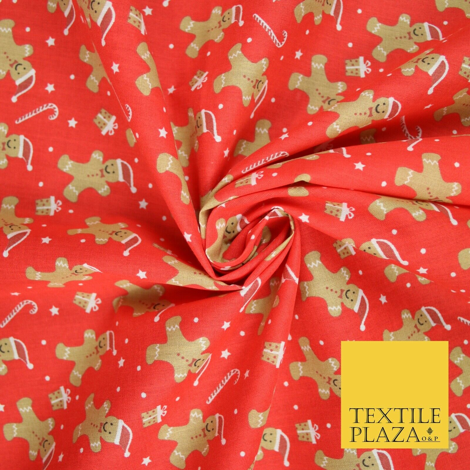 3 COLOURS Festive Gingerbread Men Santa Hat Christmas Printed Polycotton Fabric