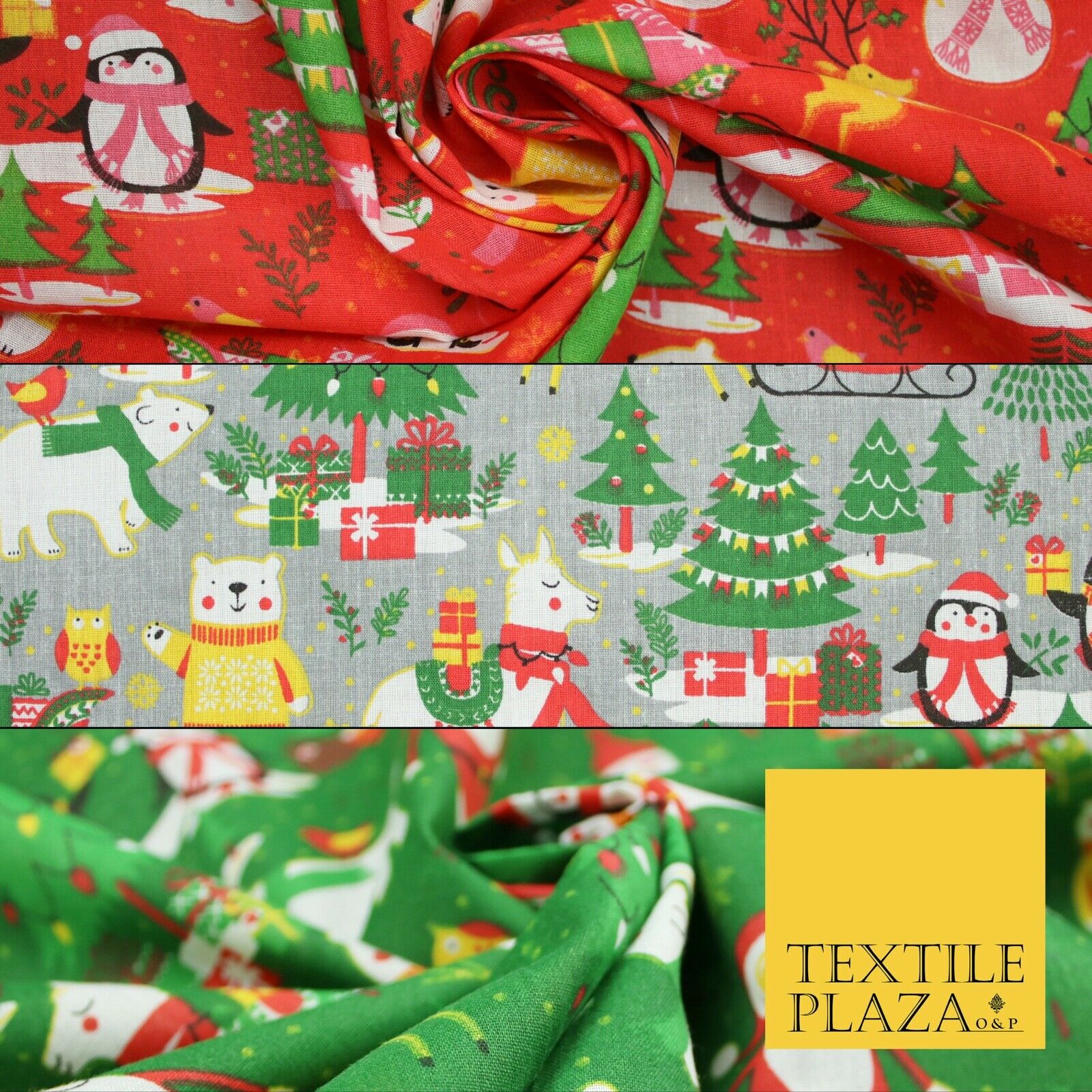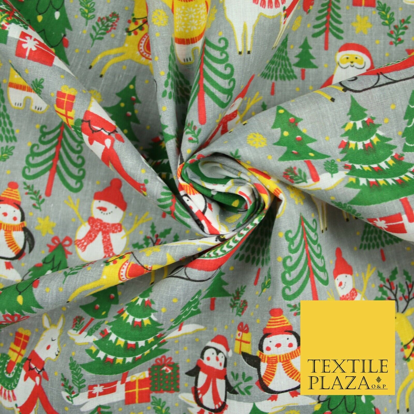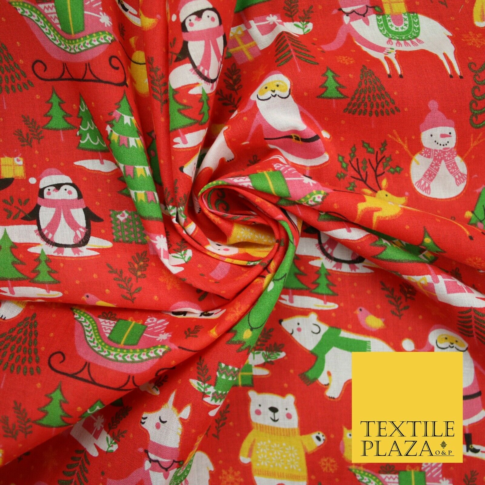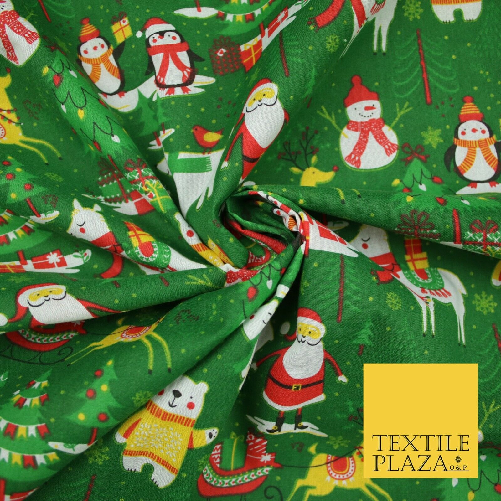 3 COLOURS Festive Santa Penguin Llama Snowman Christmas Print Polycotton Fabric
