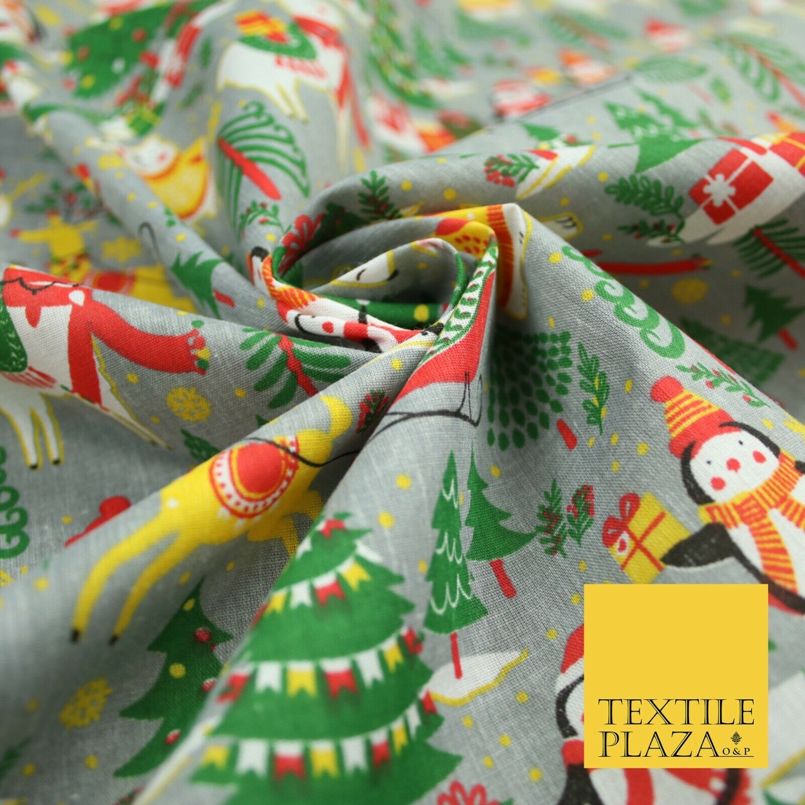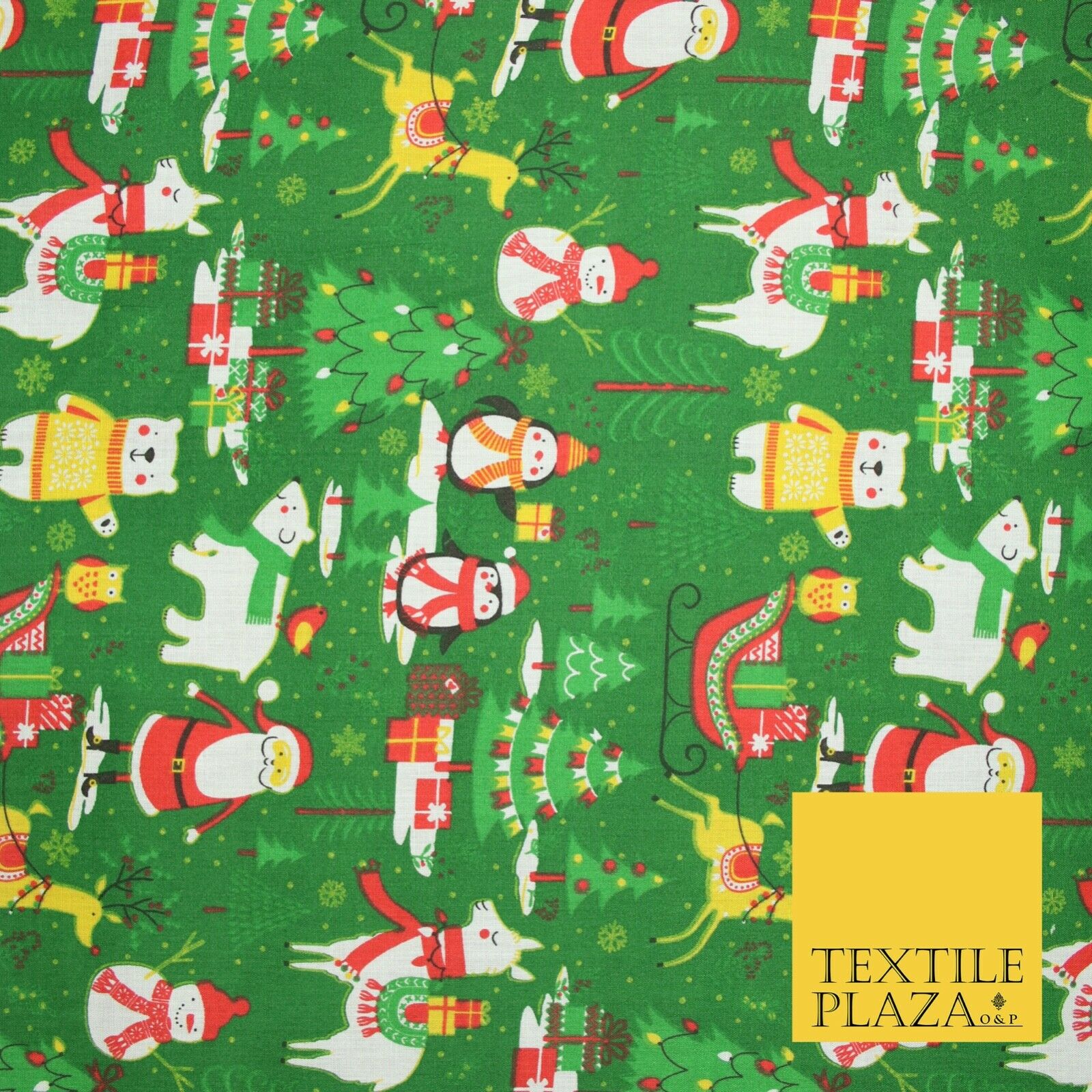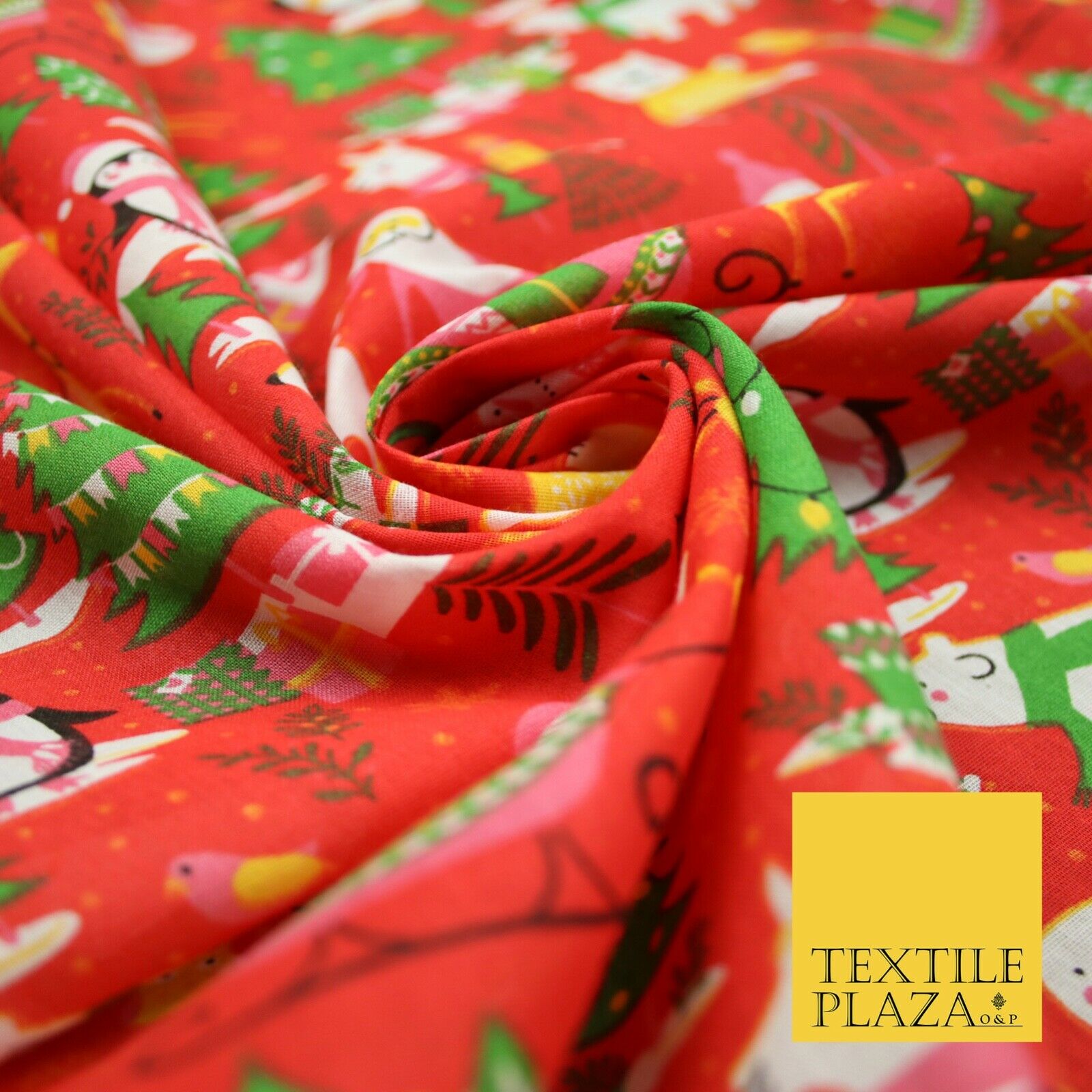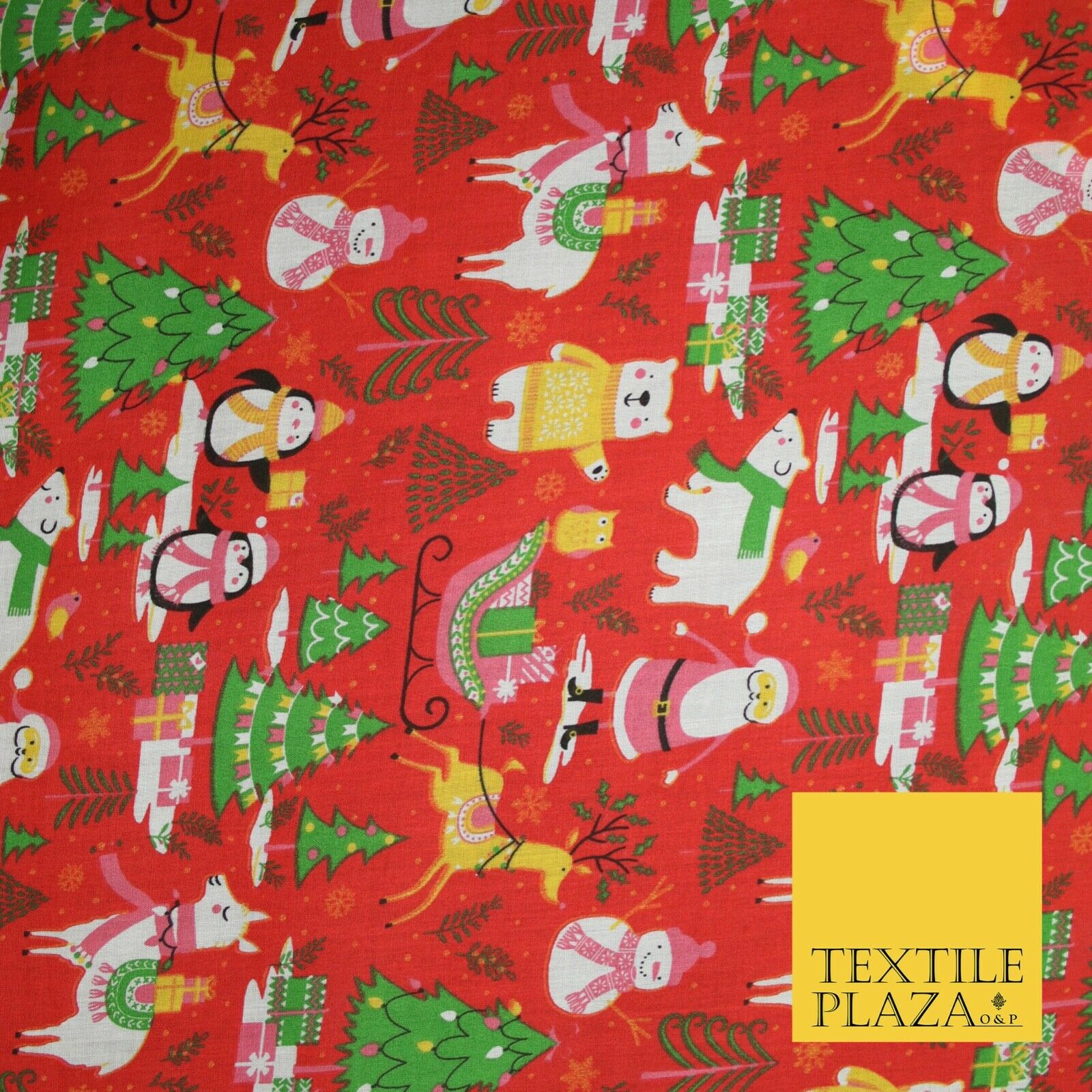 3 COLOURS Festive Santa Penguin Llama Snowman Christmas Print Polycotton Fabric