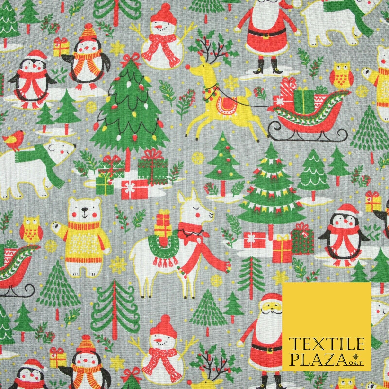 Premium Festive Santa Penguin Llama Snowman Christmas Print Polycotton Fabric