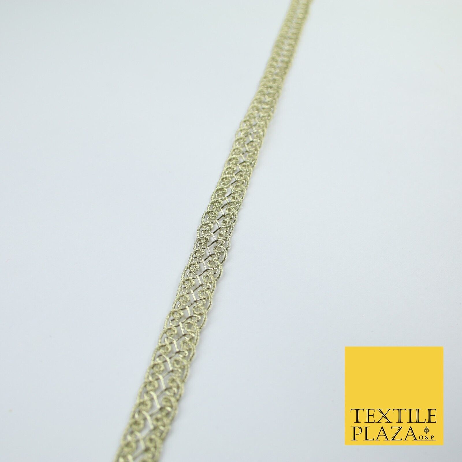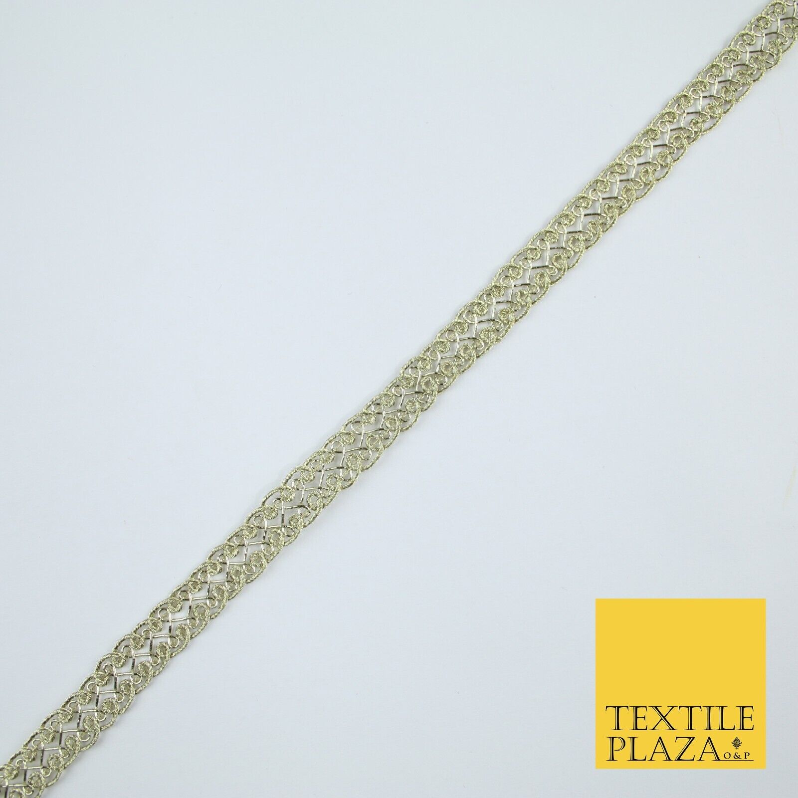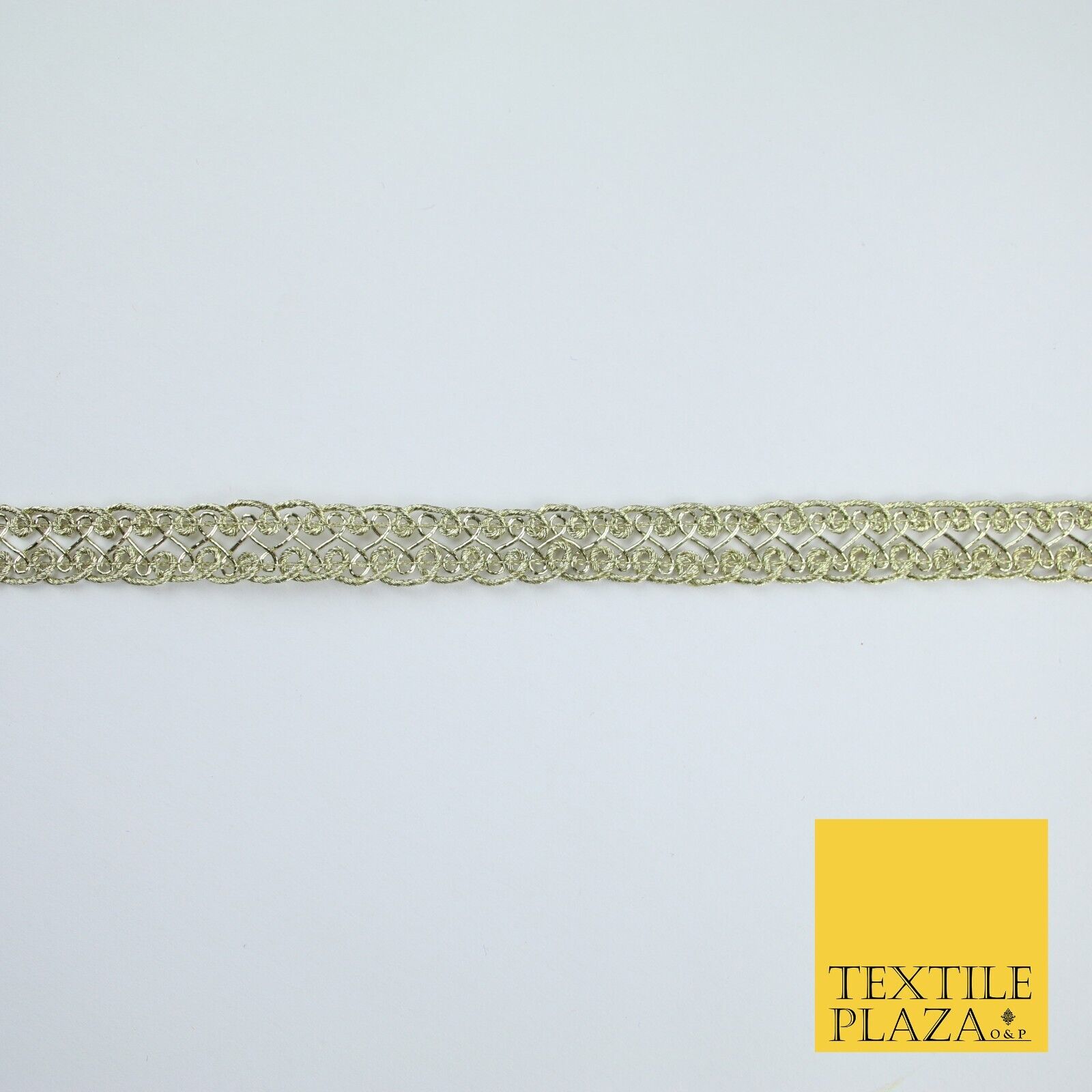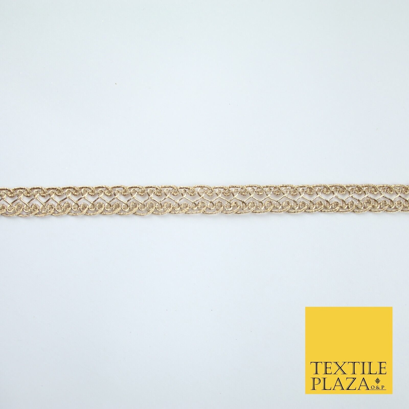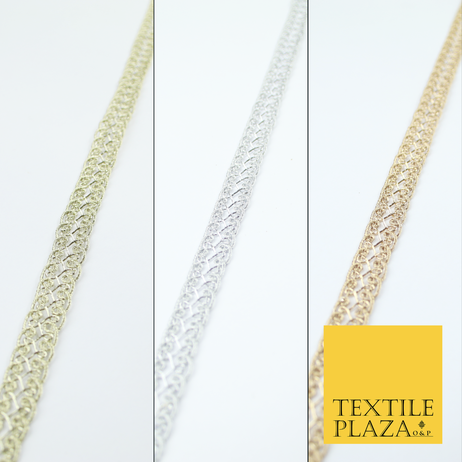 3 COLOURS - Fine Slim Ornate Plait Woven Metallic Trim Border Lace - 1cm Wide