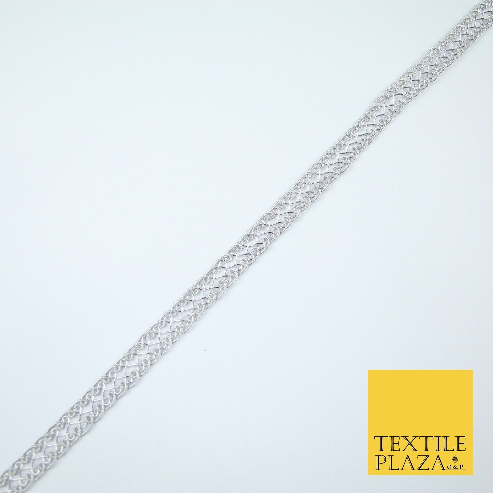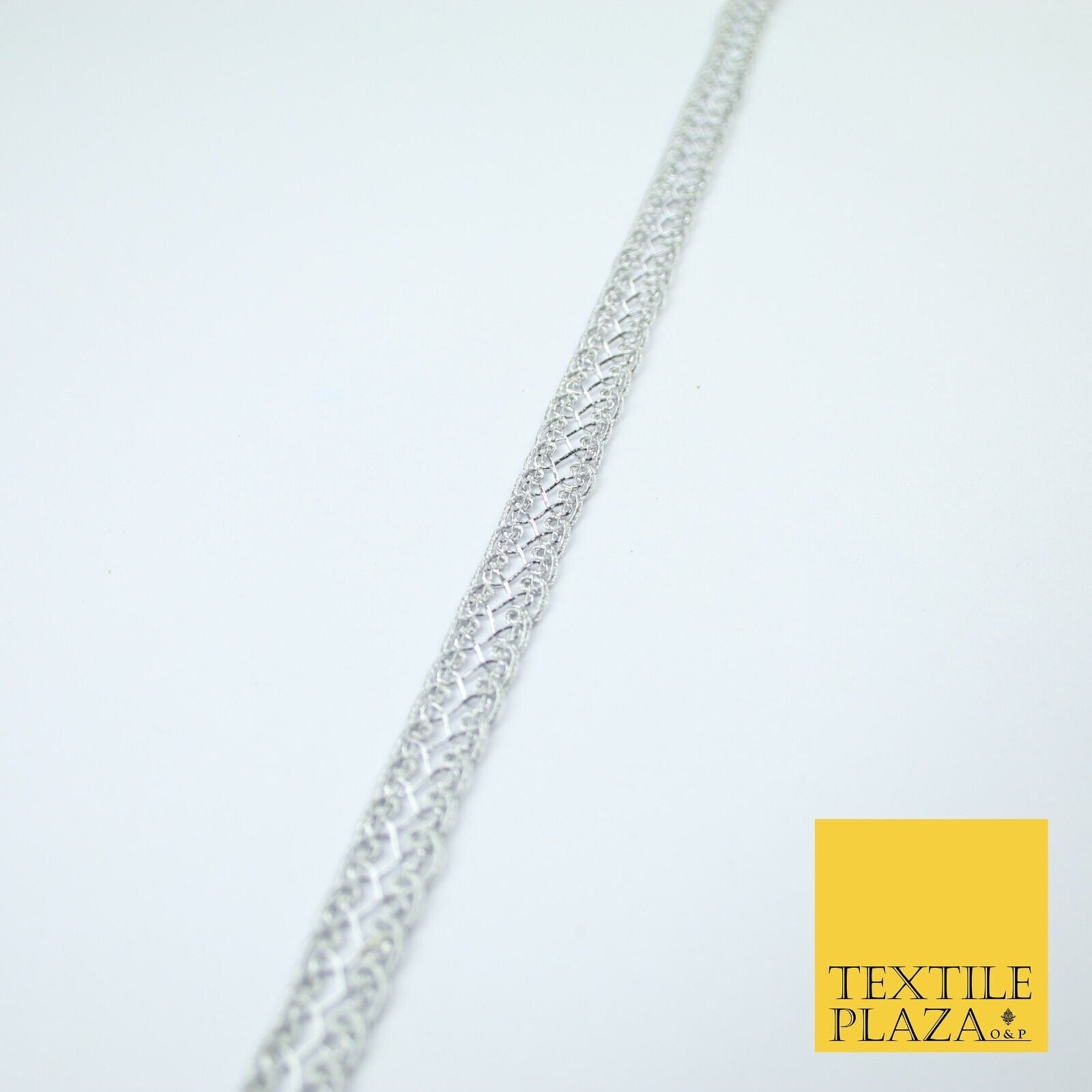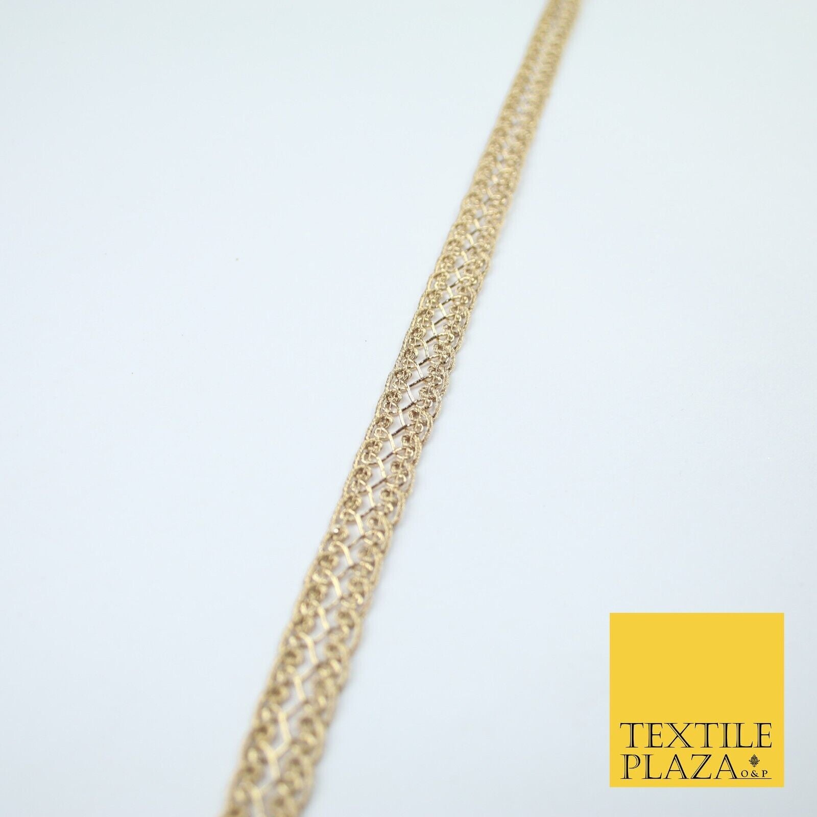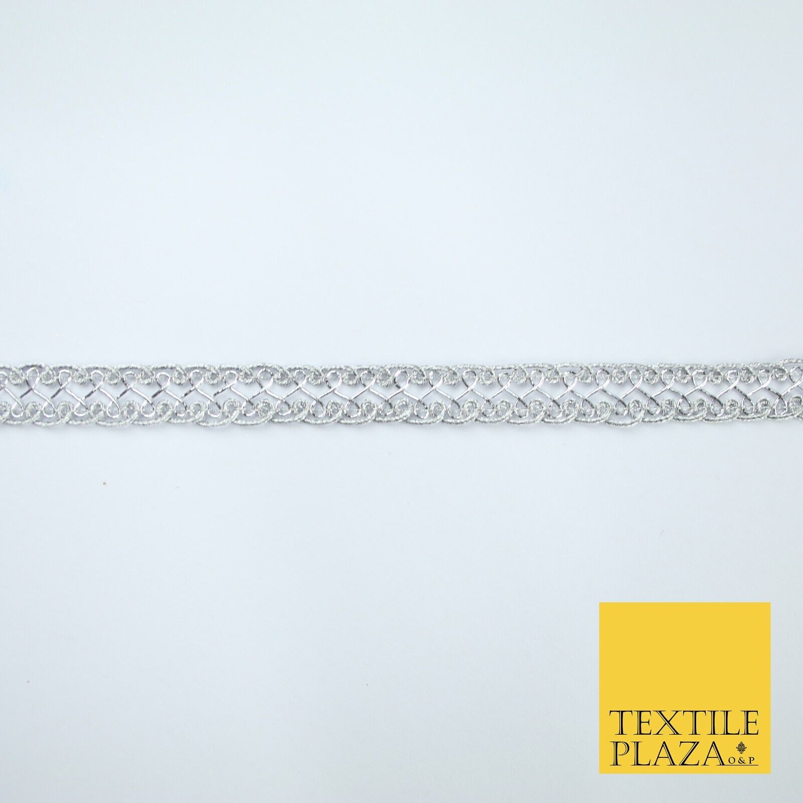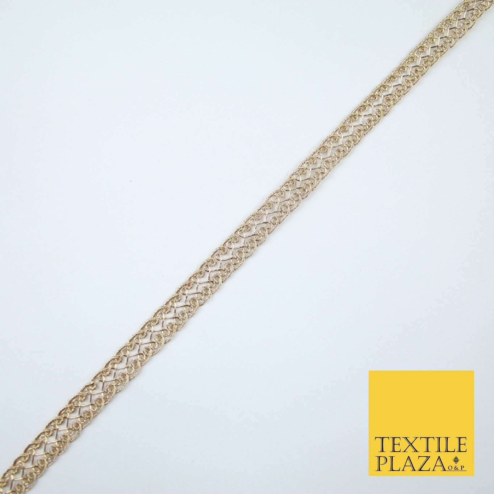 3 COLOURS - Fine Slim Ornate Plait Woven Metallic Trim Border Lace - 1cm Wide