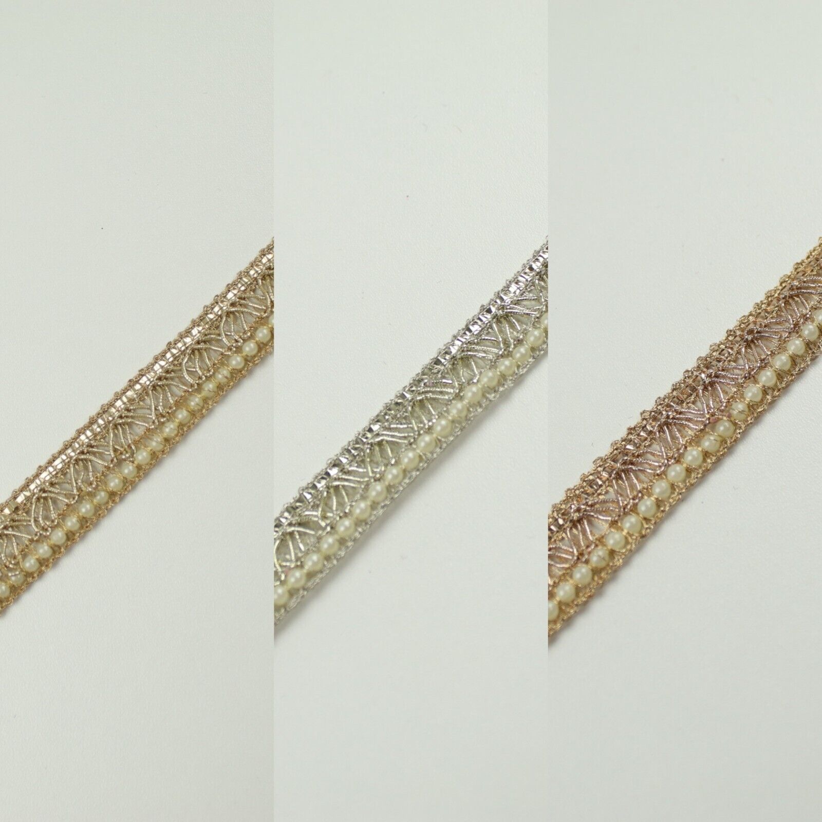 3 COLOURS - Mini Pearl Edged Zig Zag Metallic Ribbon Trim Border Lace 19mm Wide
