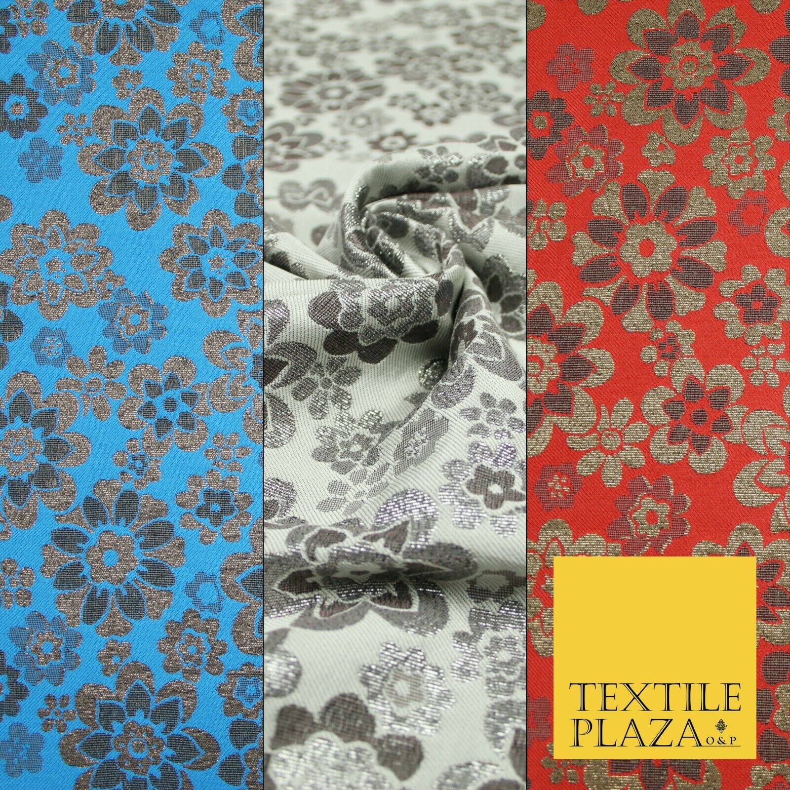 3 COLOURS - Ornate Floral Metallic Textured Brocade Jacquard Dress Fabric 58"