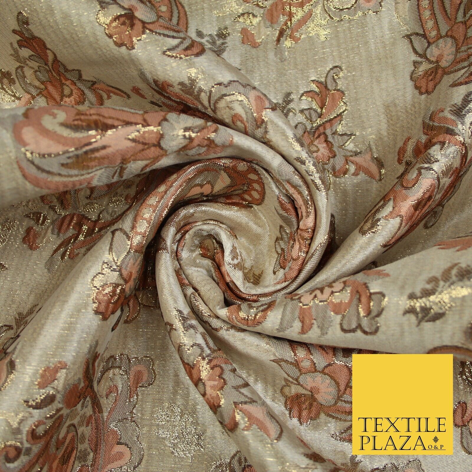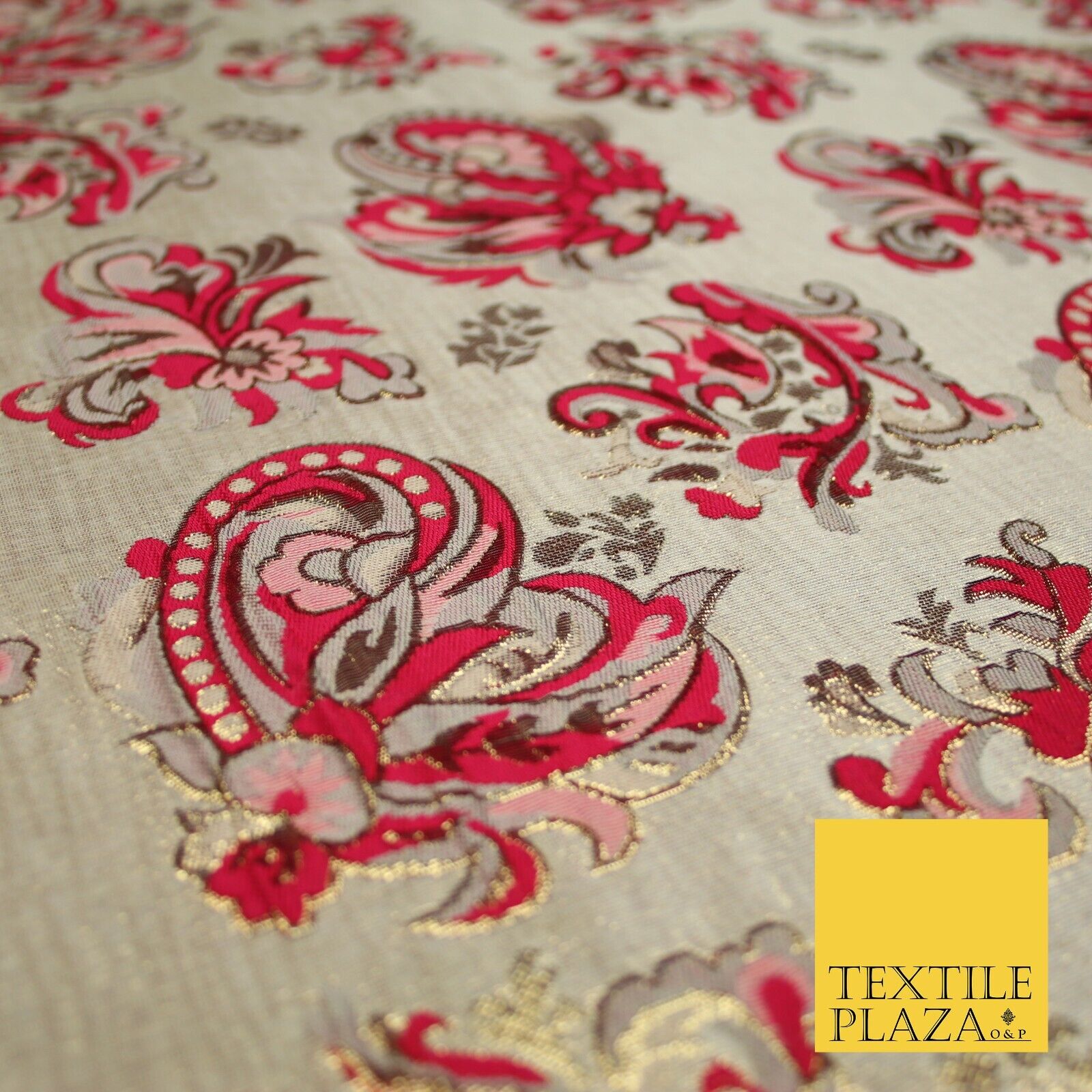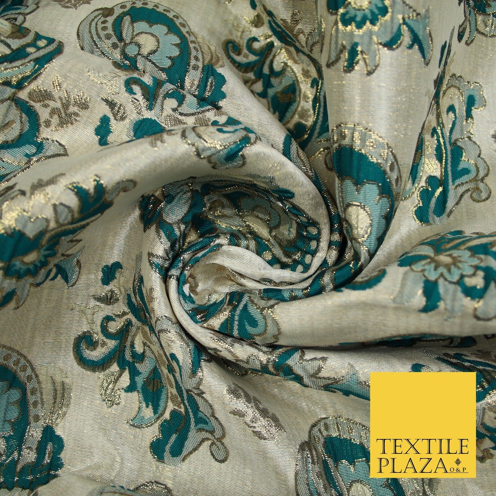 4 COLOURS - Floral Paisley Cluster Textured Brocade Jacquard Dress Fabric 59"