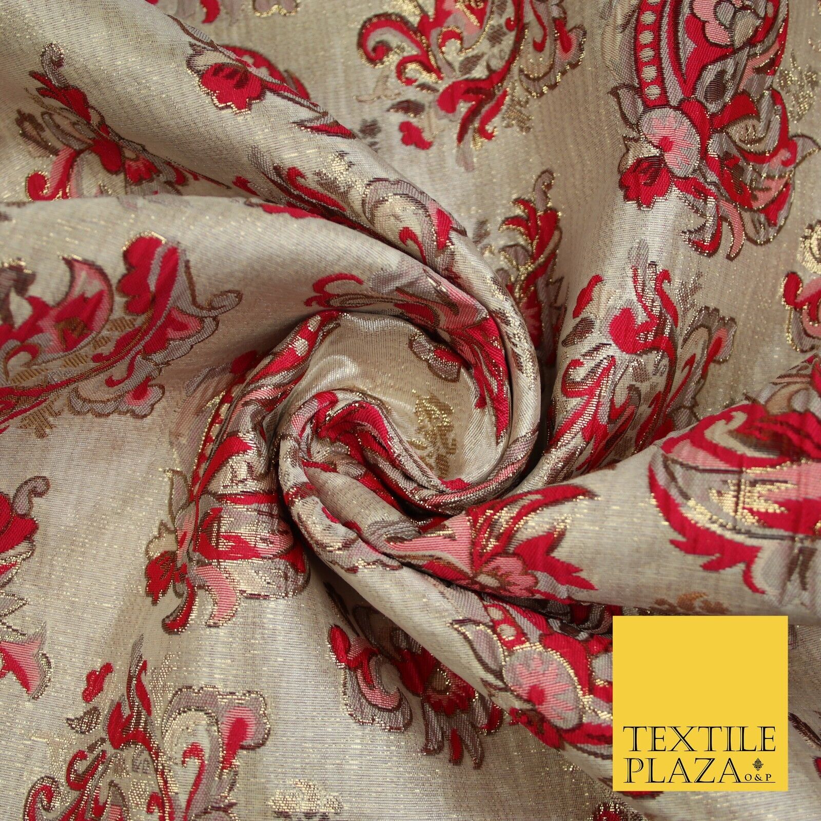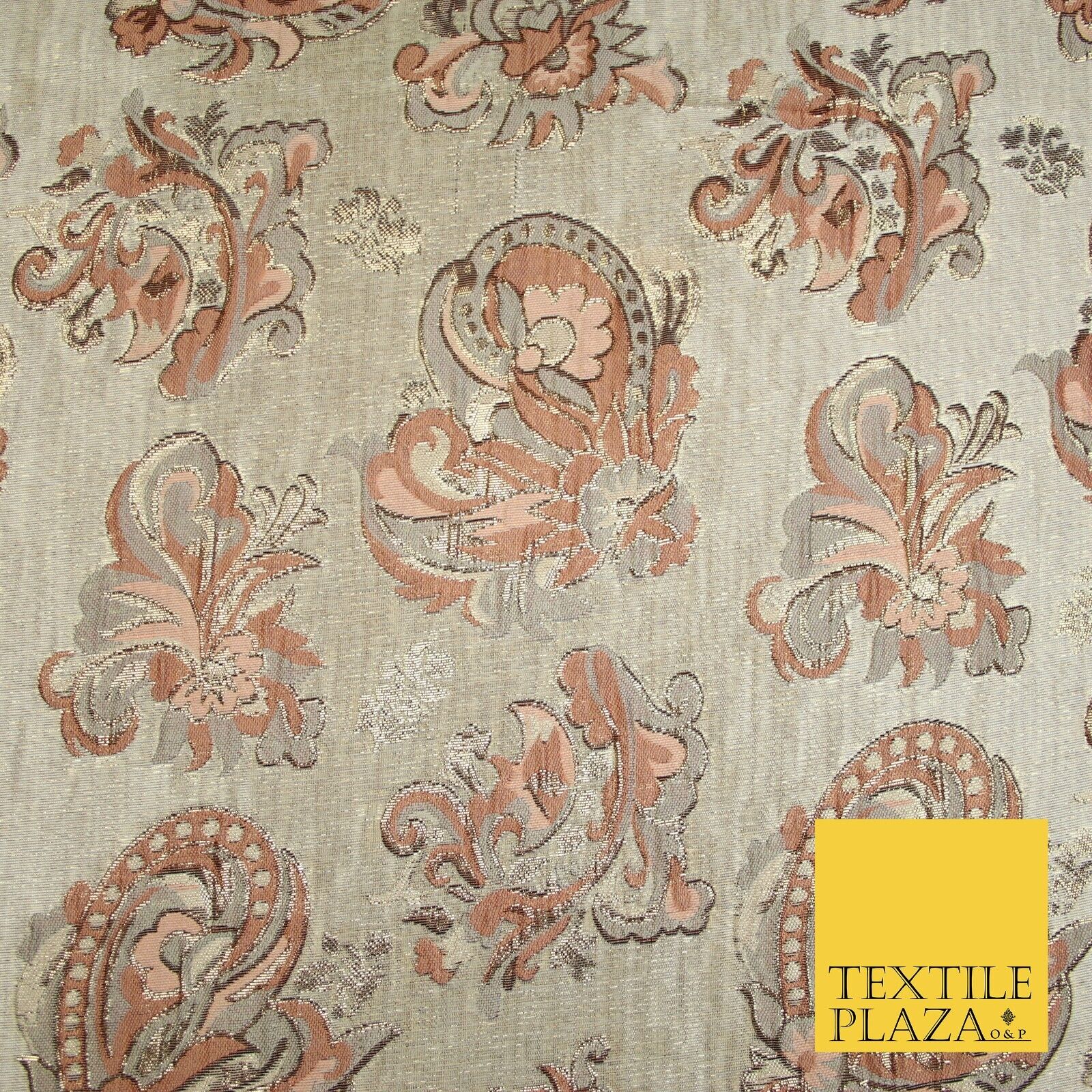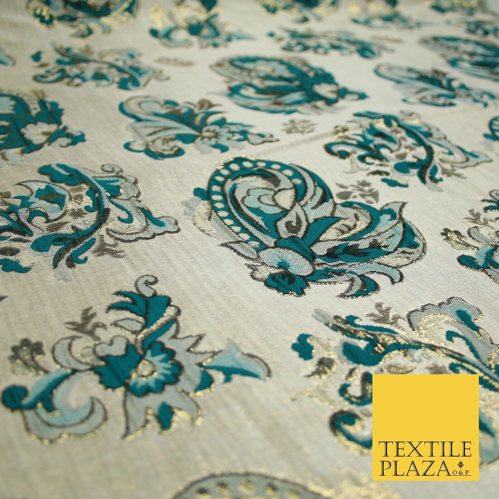 4 COLOURS - Floral Paisley Cluster Textured Brocade Jacquard Dress Fabric 59"