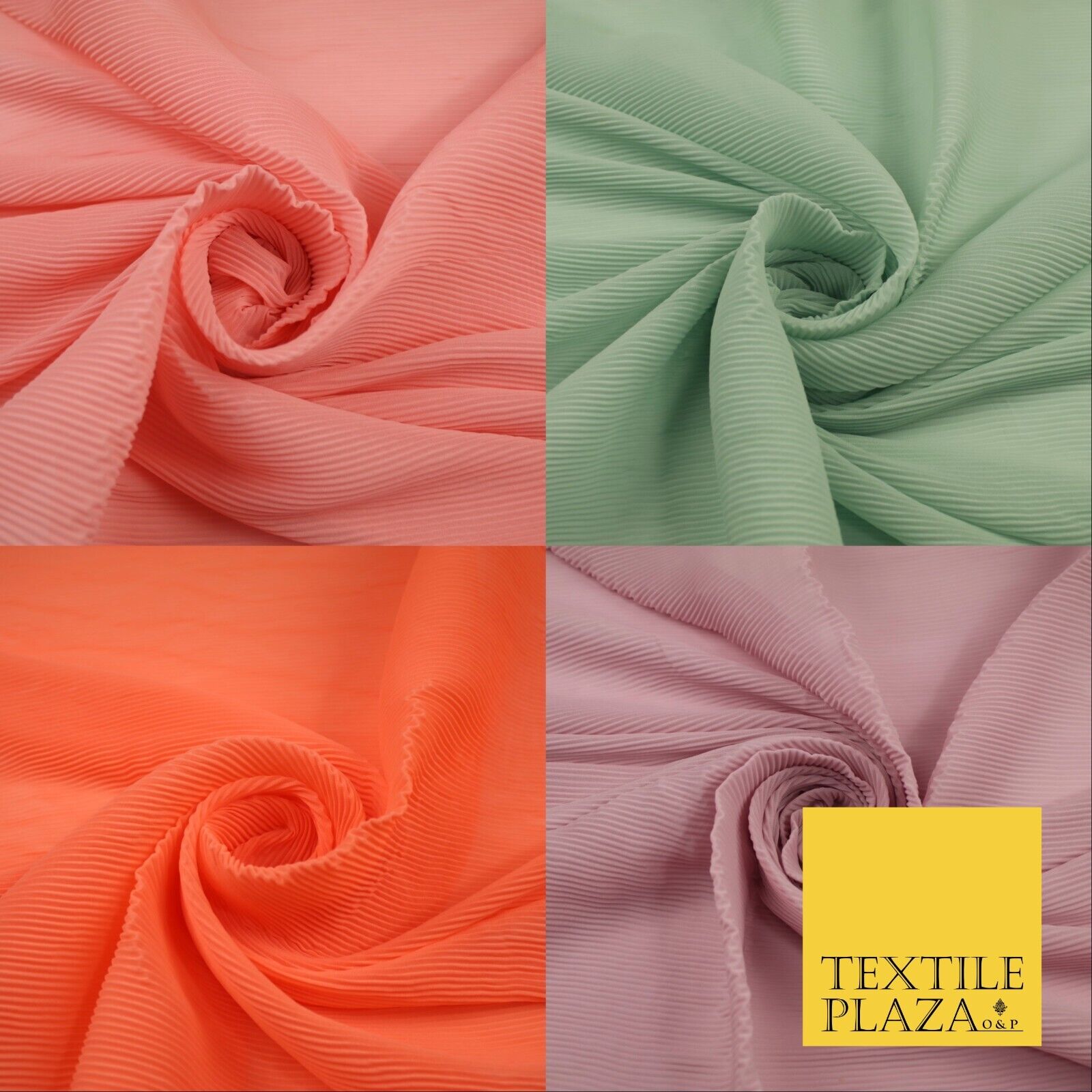 4 COLOURS - Micro Pleated Crinkle Plain Plisse Chiffon Georgette Fabric 58" Wide