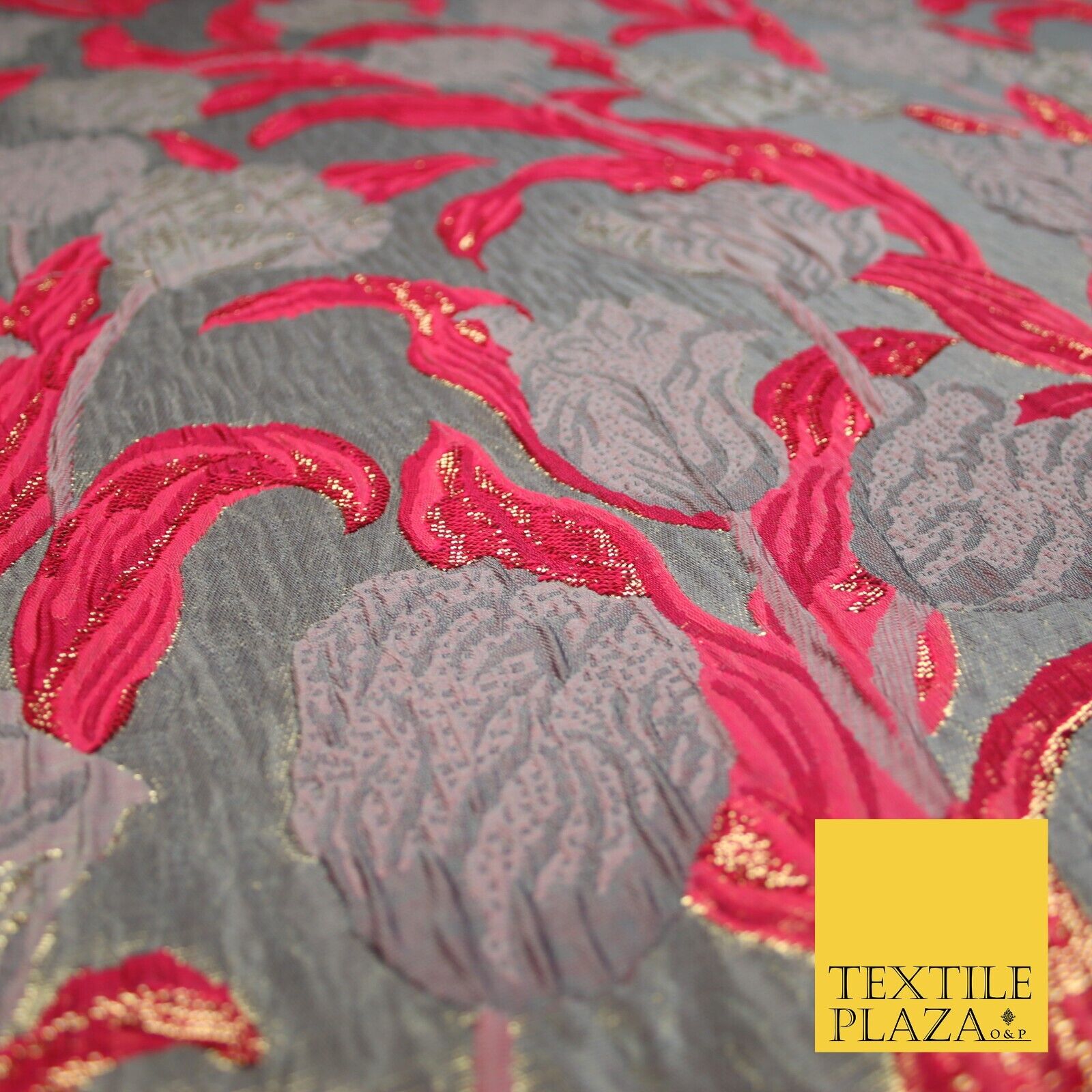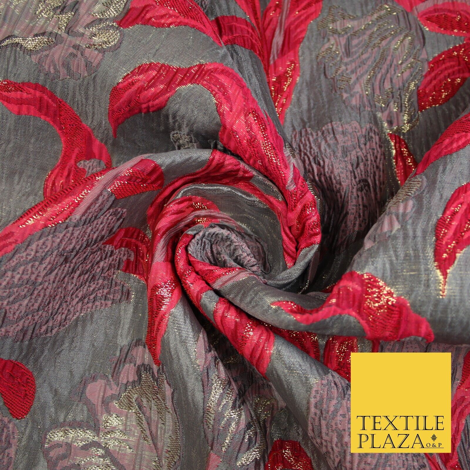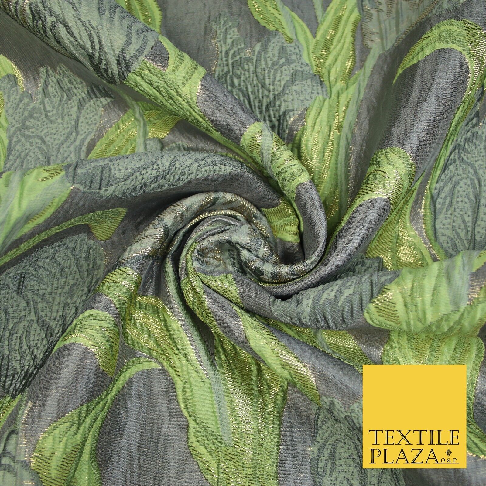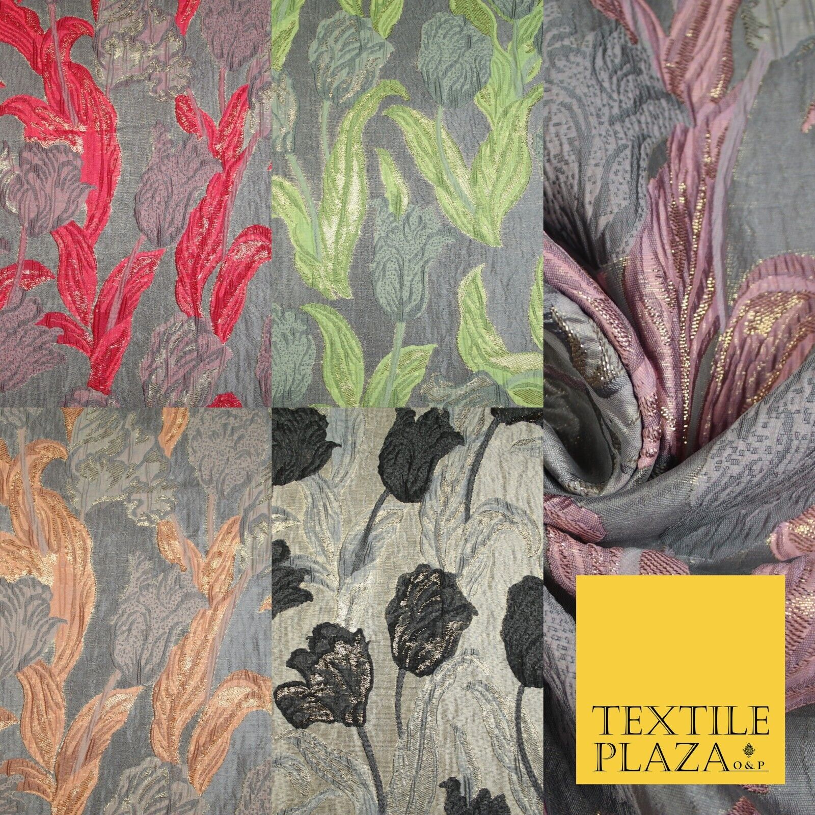 5 COLOURS - Large Leafy Tulip Creased Textured Brocade Jacquard Dress Fabric 59"