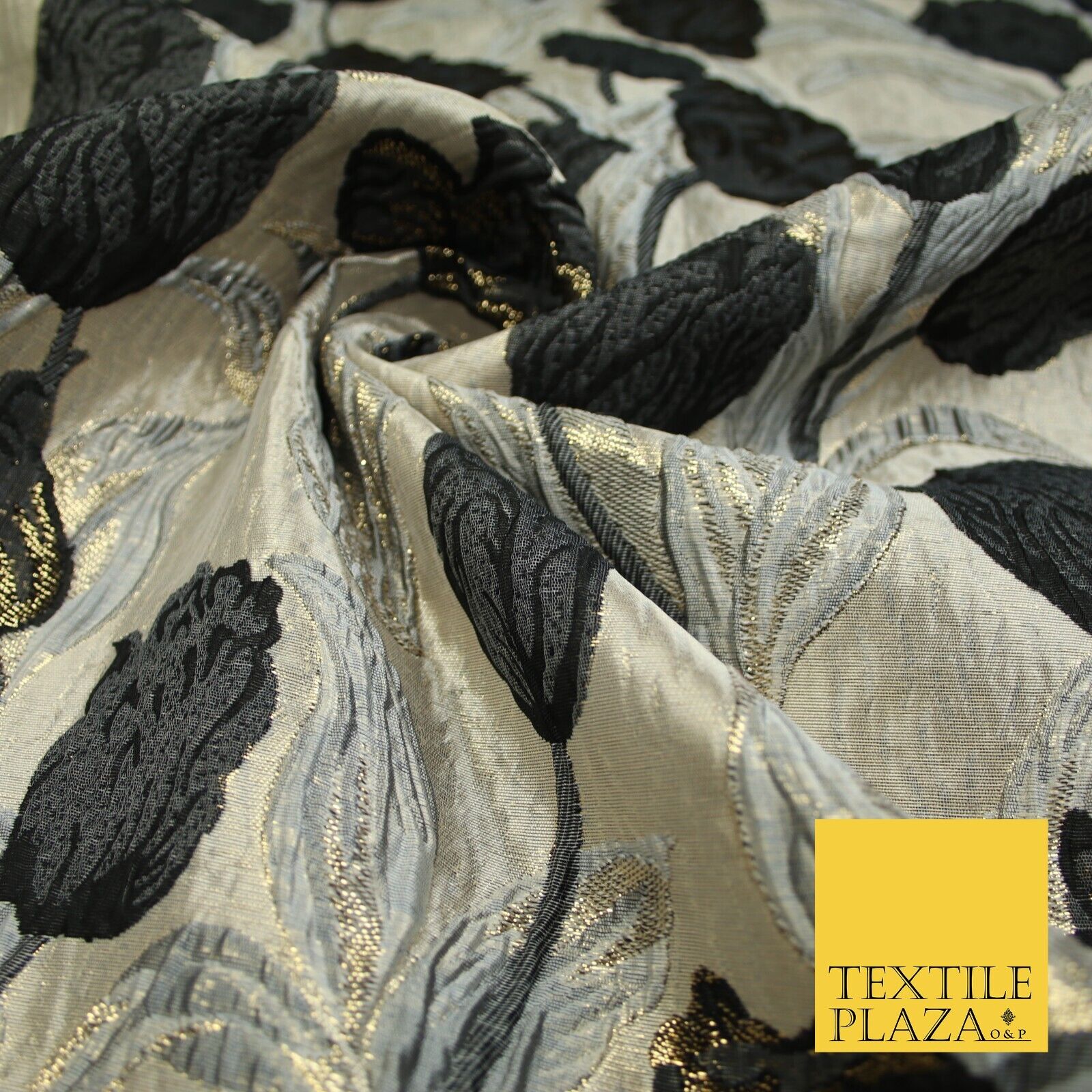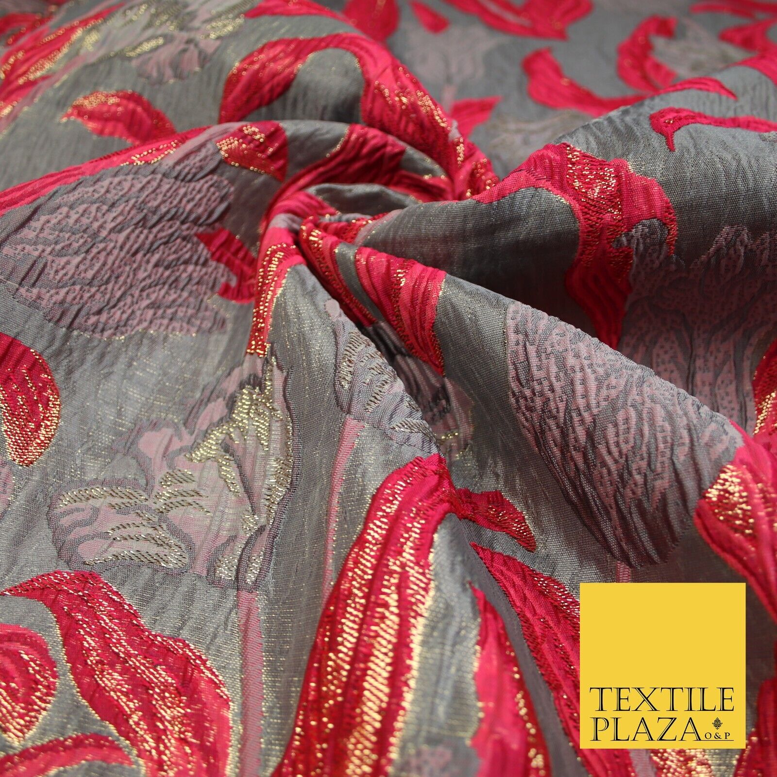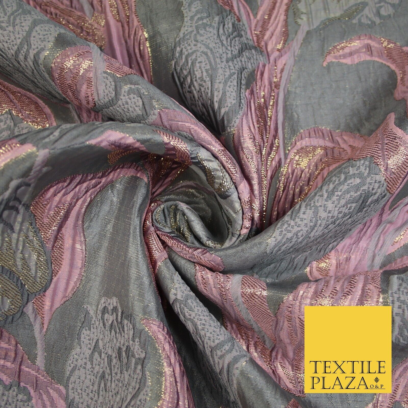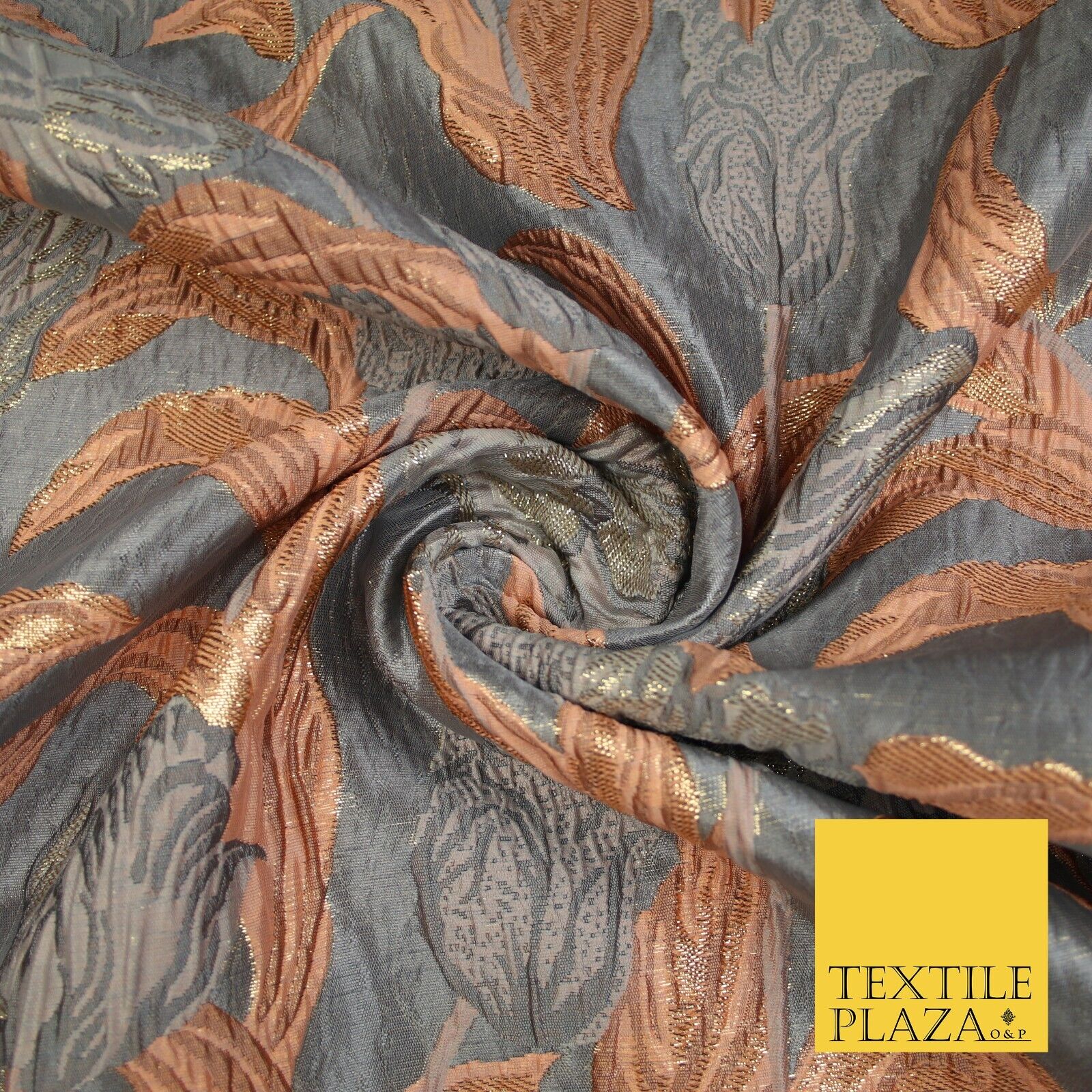 5 COLOURS - Large Leafy Tulip Creased Textured Brocade Jacquard Dress Fabric 59"