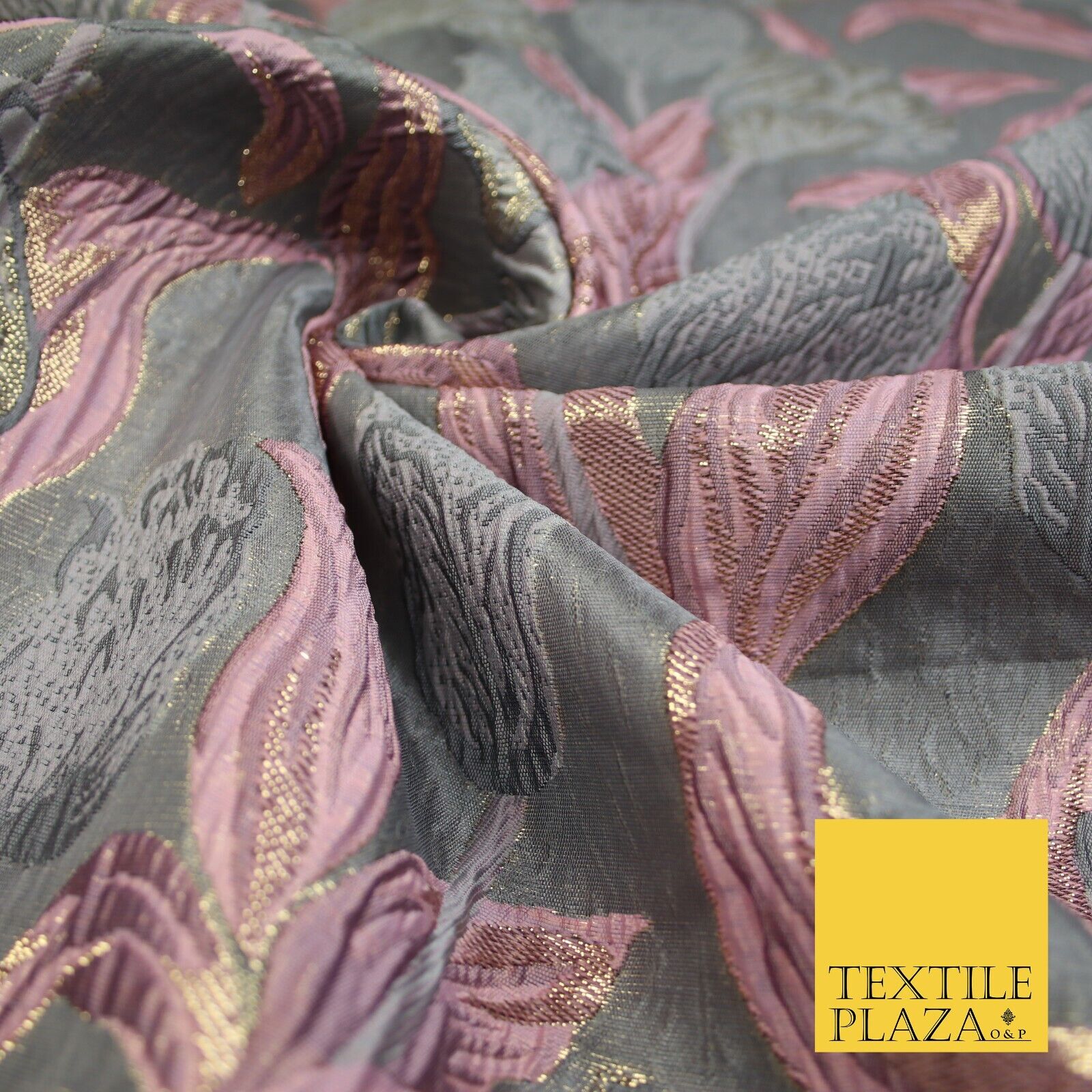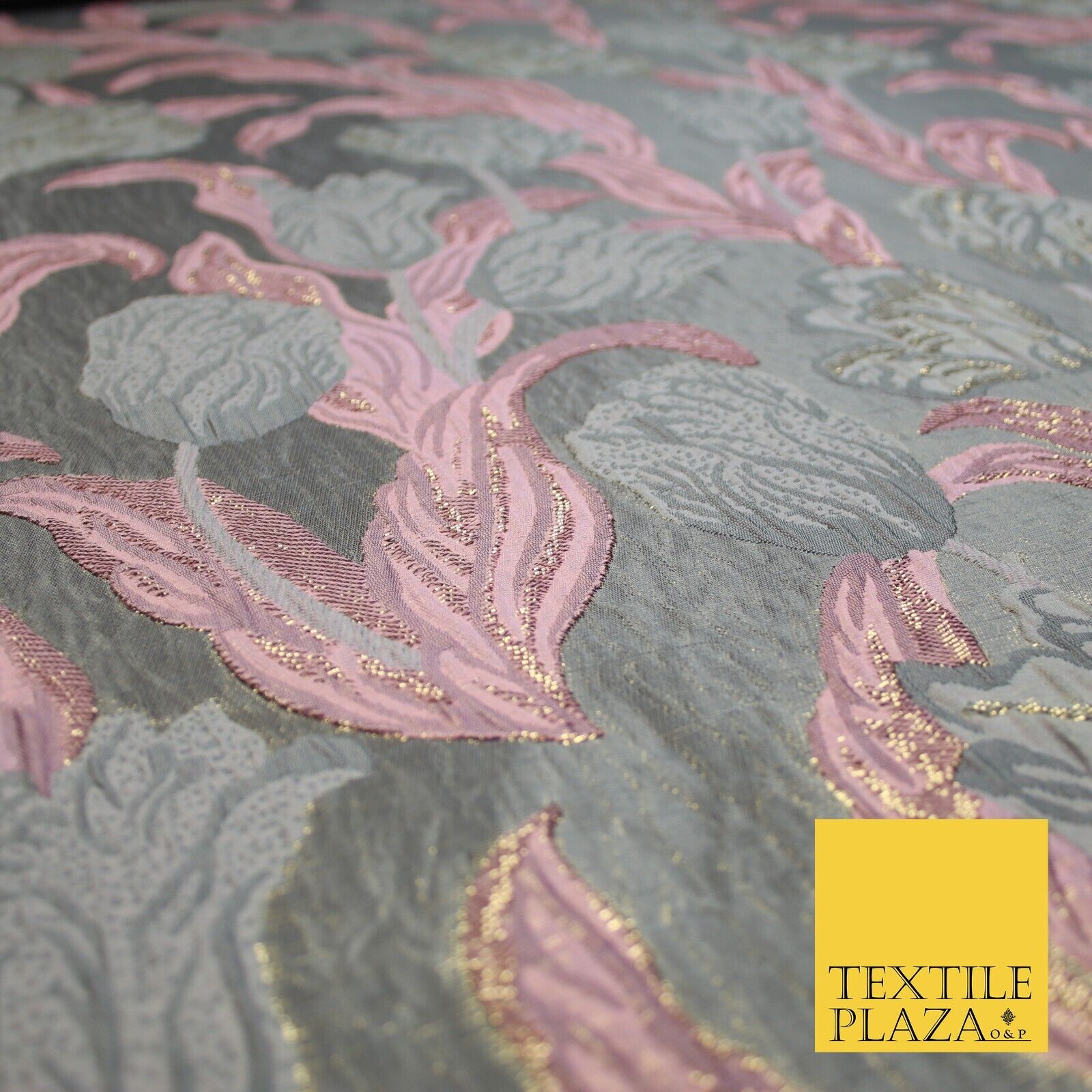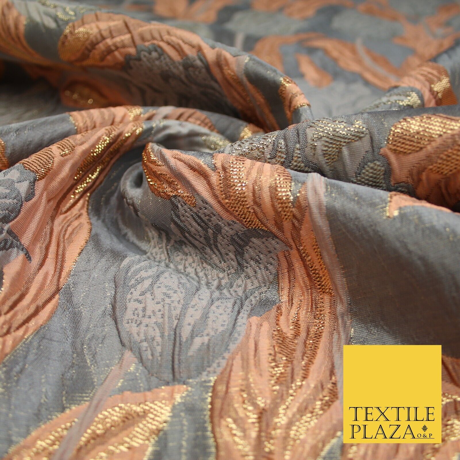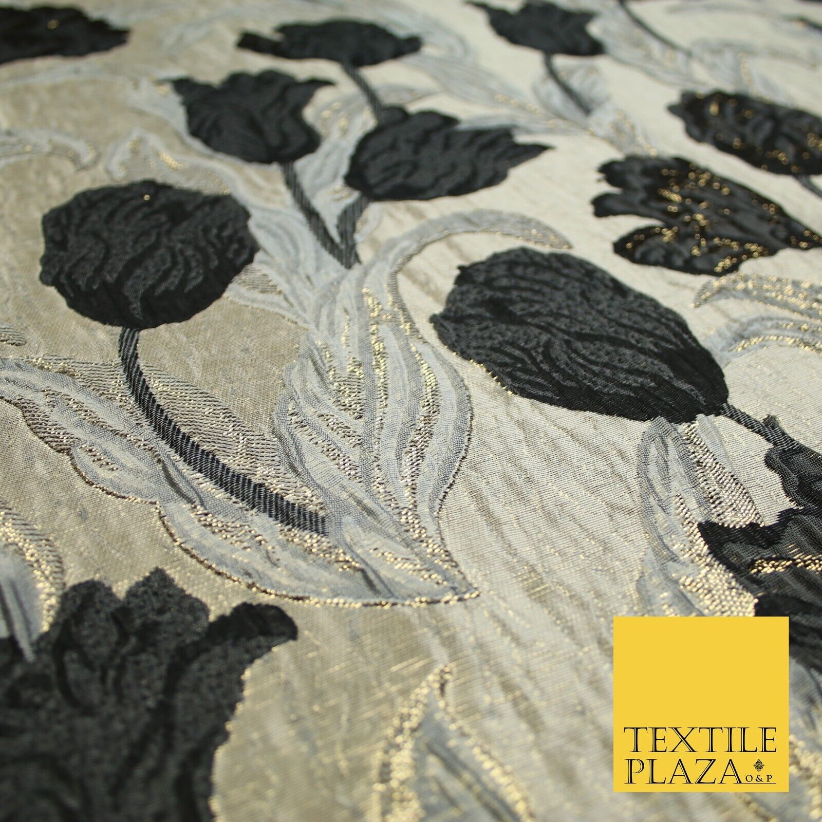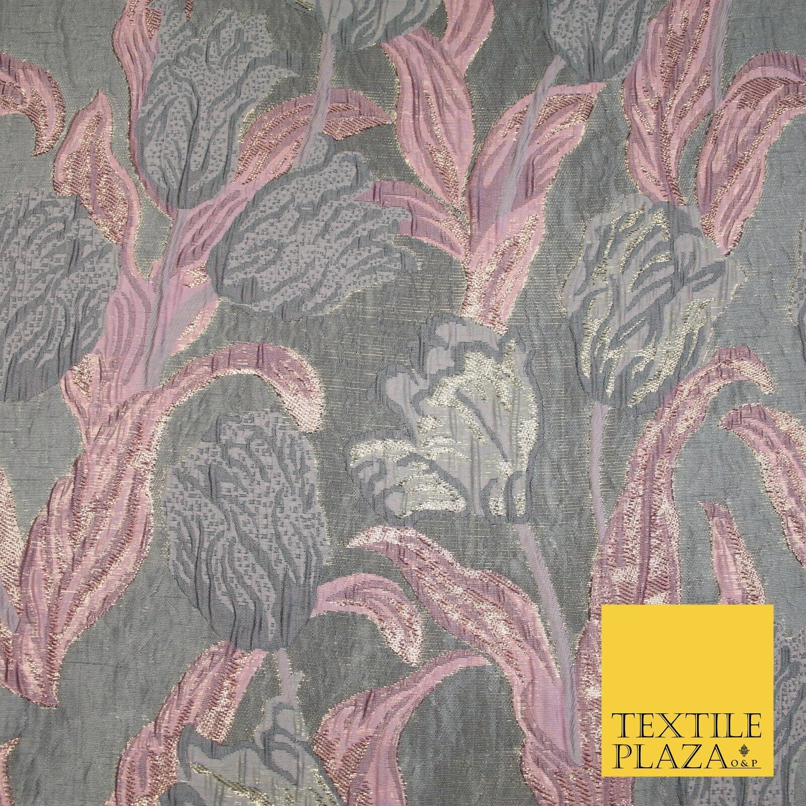 5 COLOURS - Large Leafy Tulip Creased Textured Brocade Jacquard Dress Fabric 59"