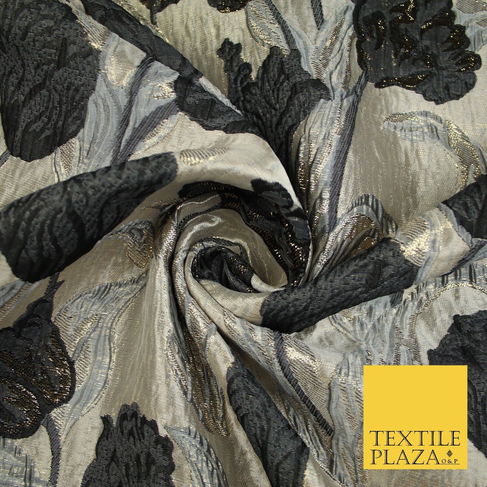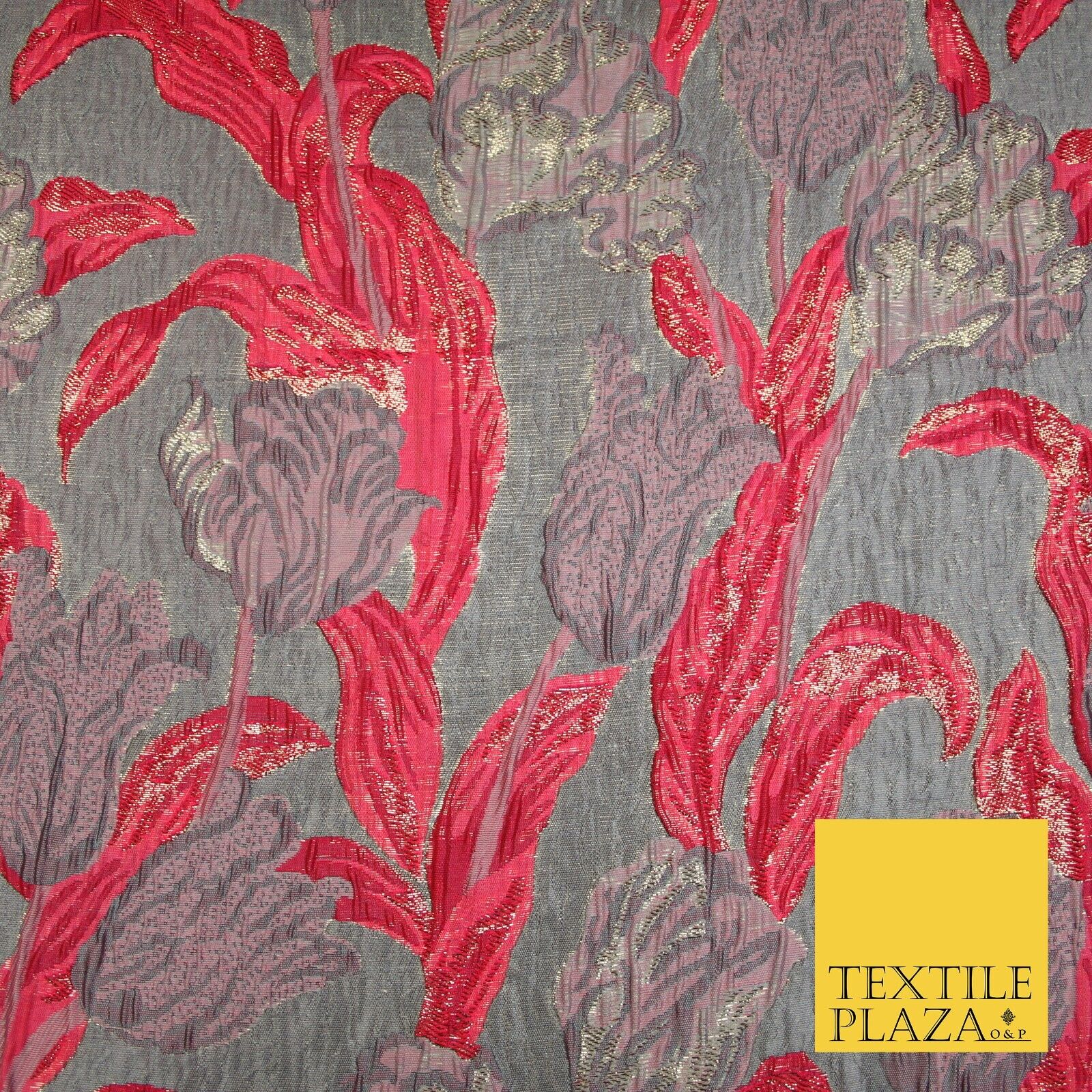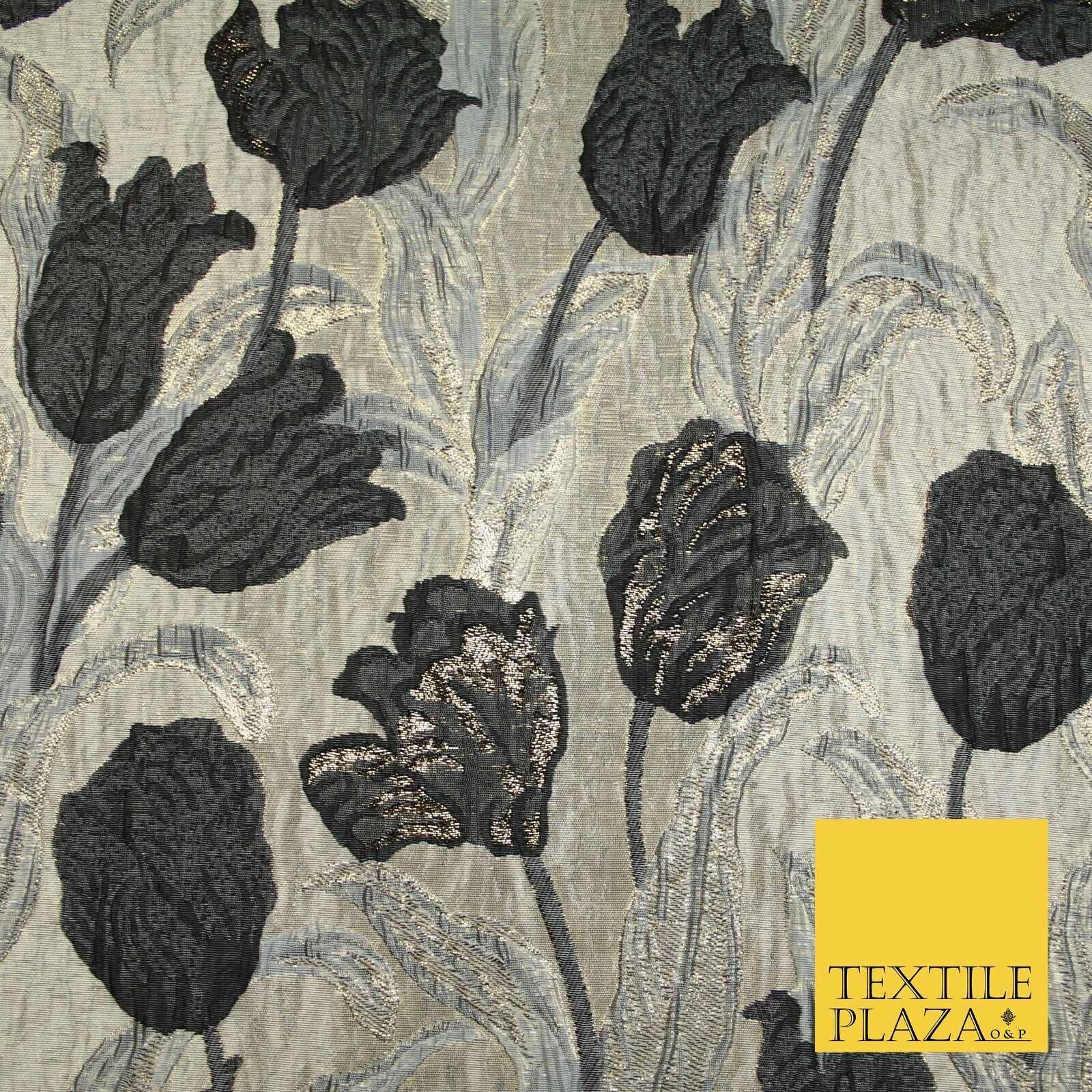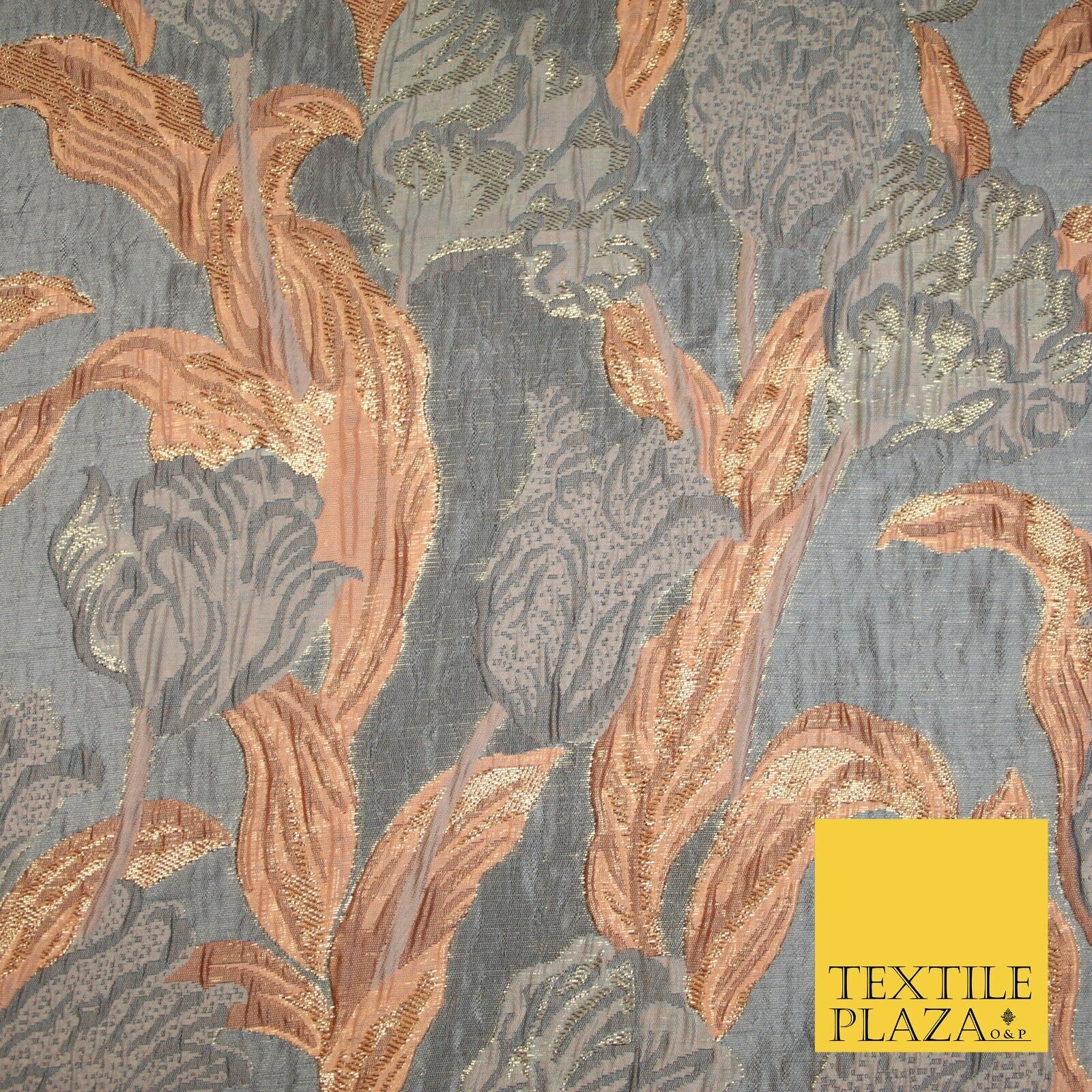 5 COLOURS - Large Leafy Tulip Creased Textured Brocade Jacquard Dress Fabric 59"