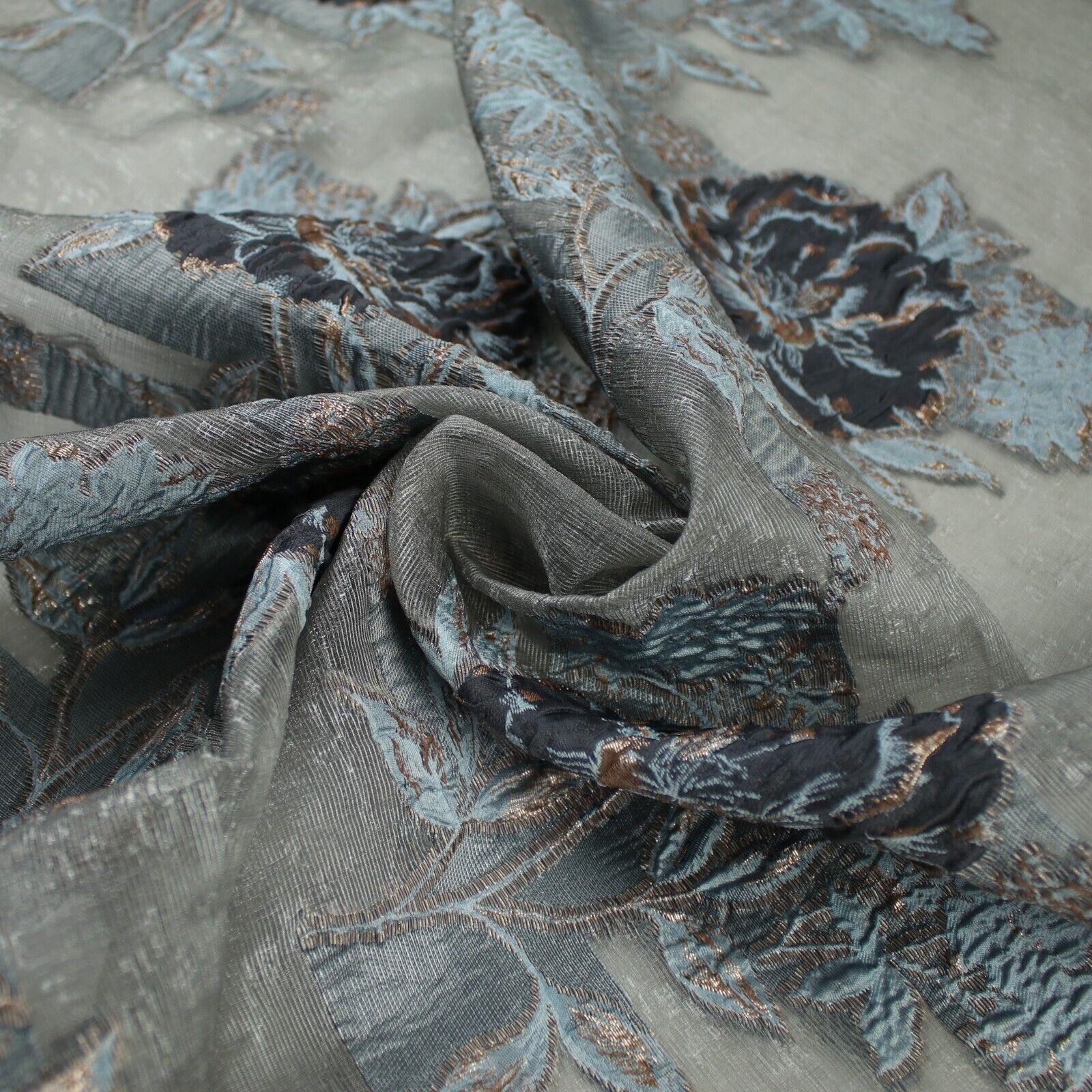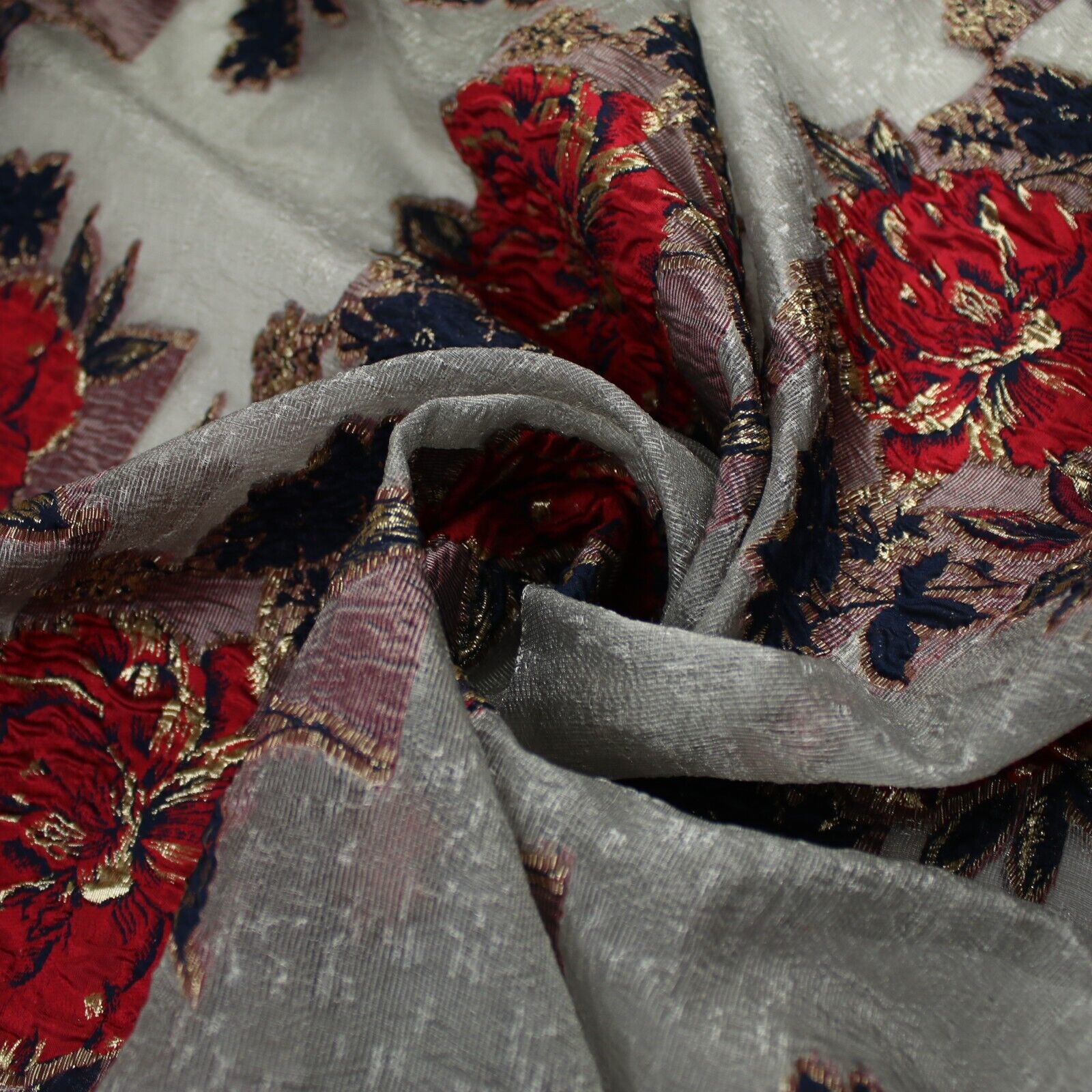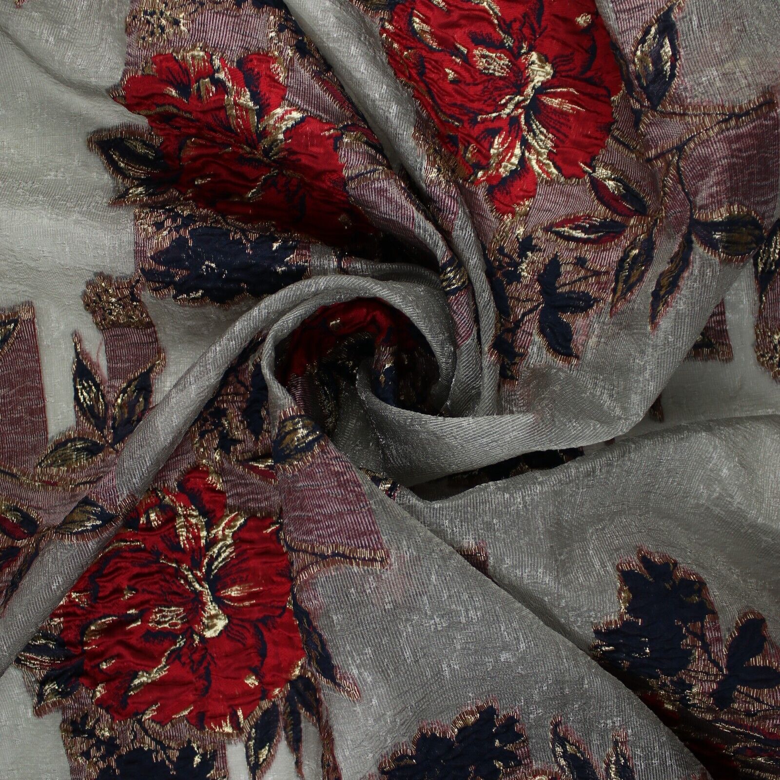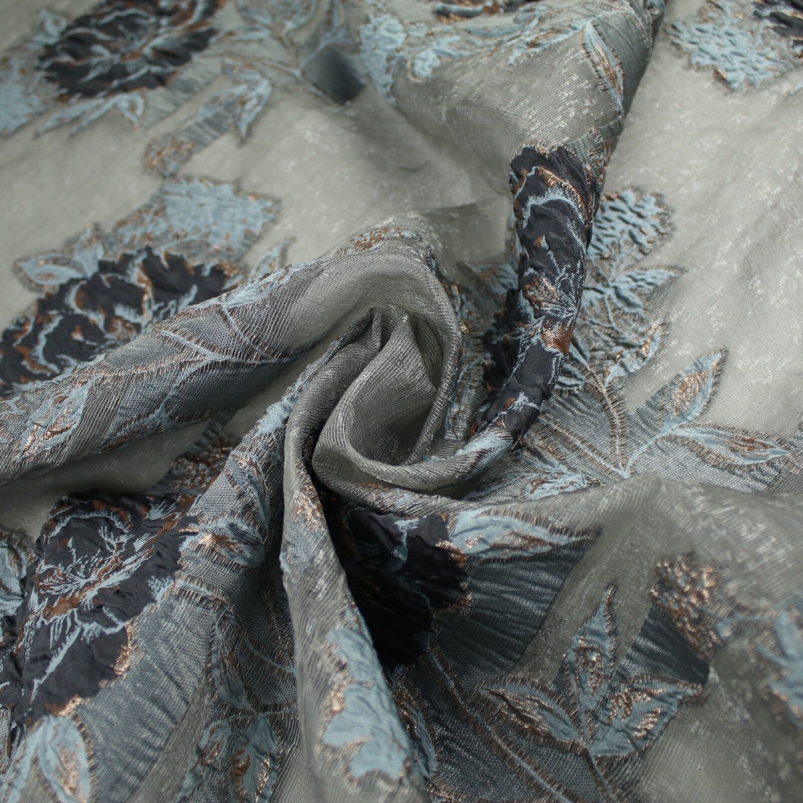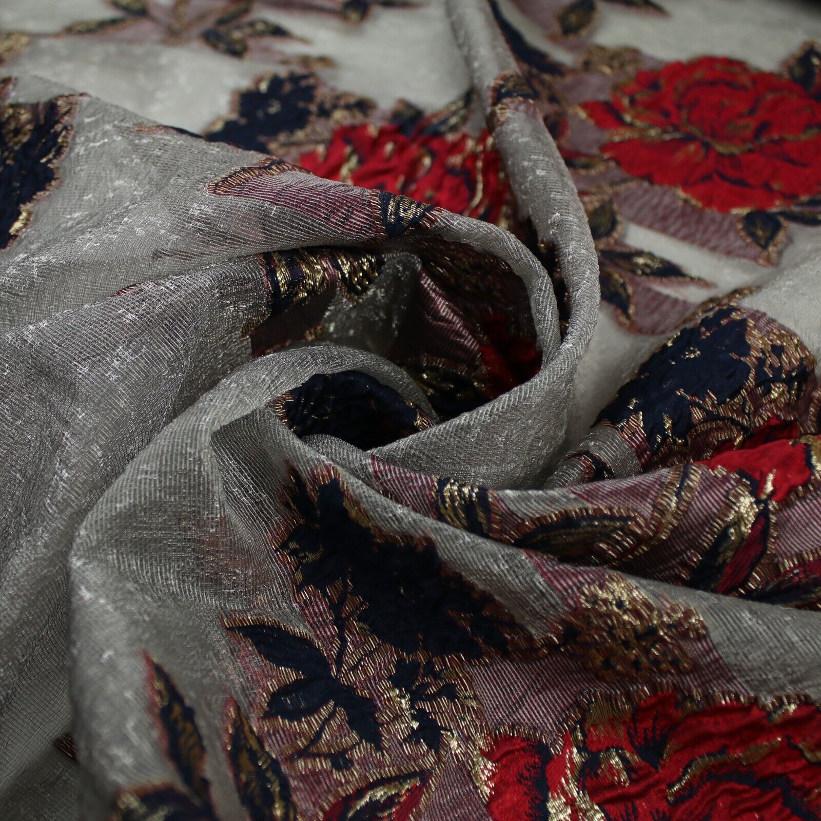 5 Designs - Grey Organza Base Large Flower Textured Brocade Jacquard Fabric 58"