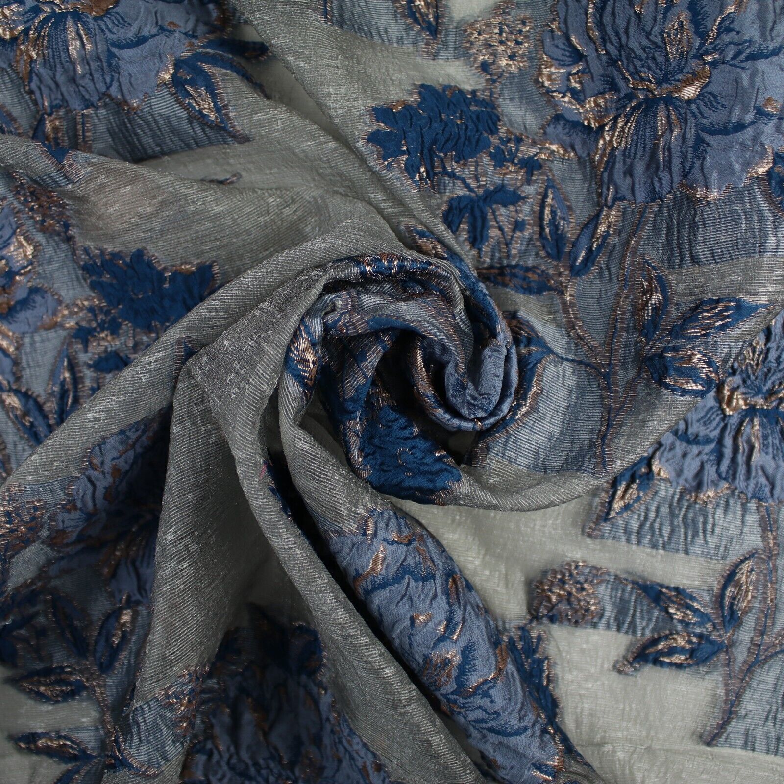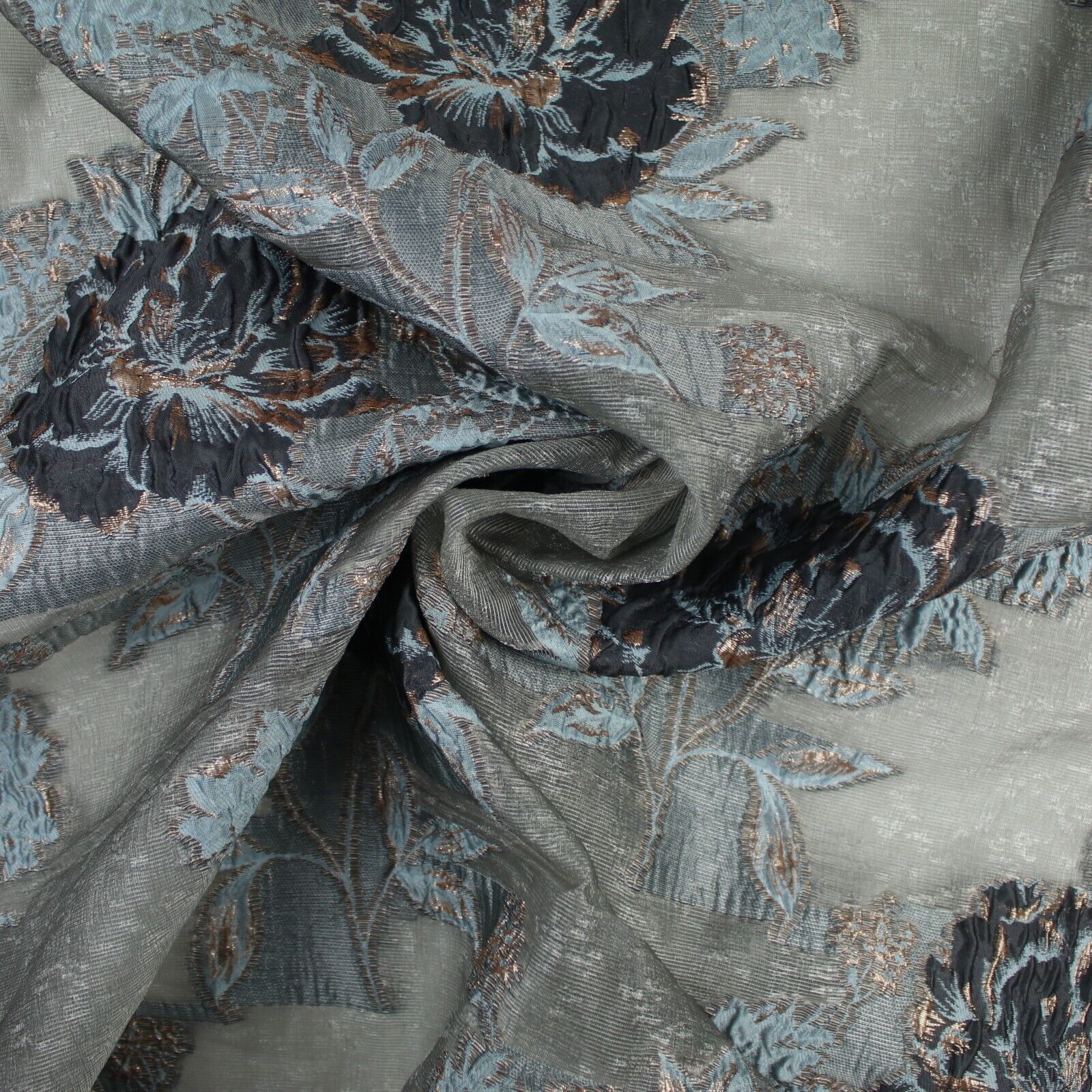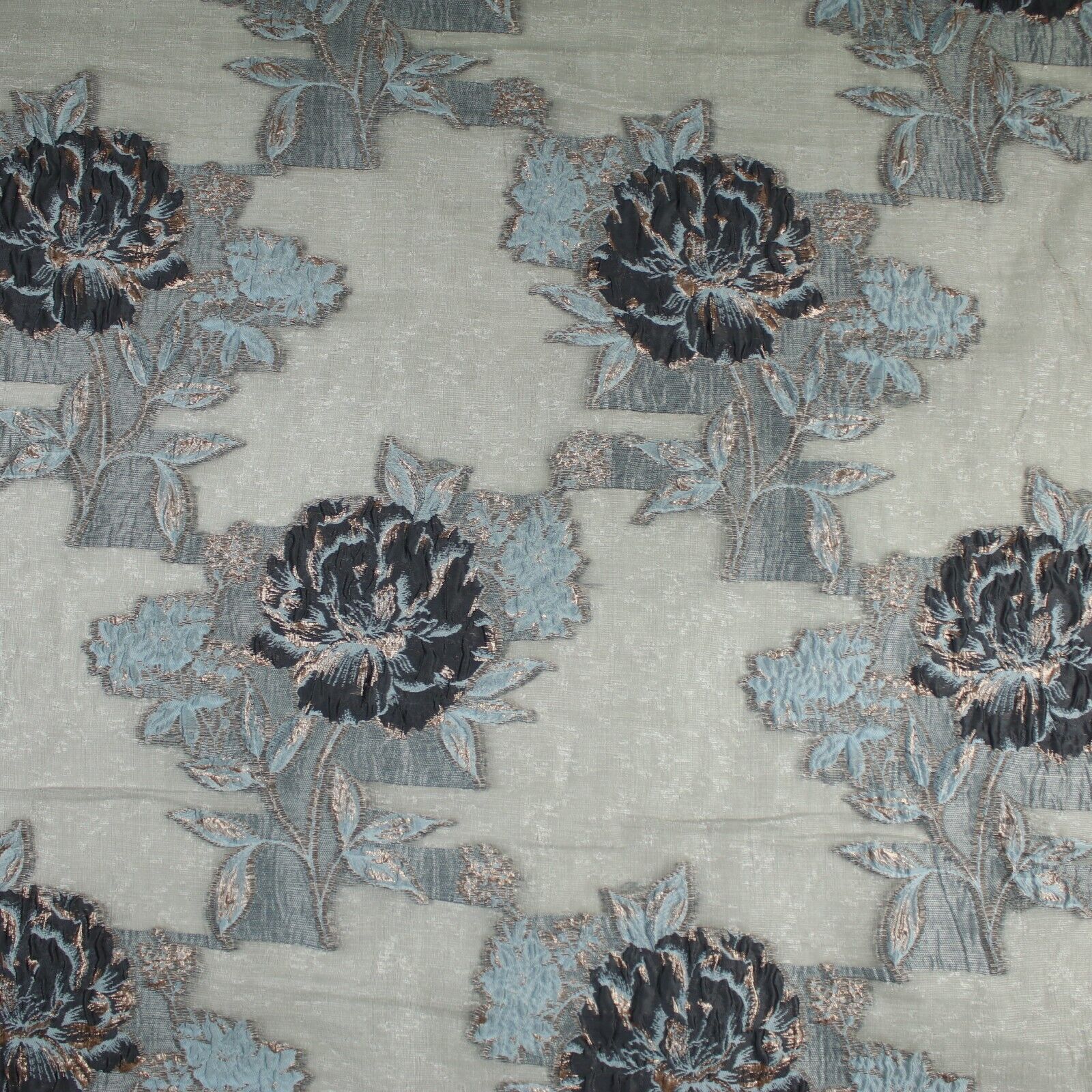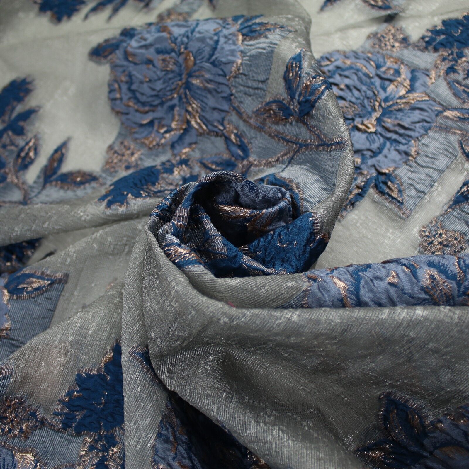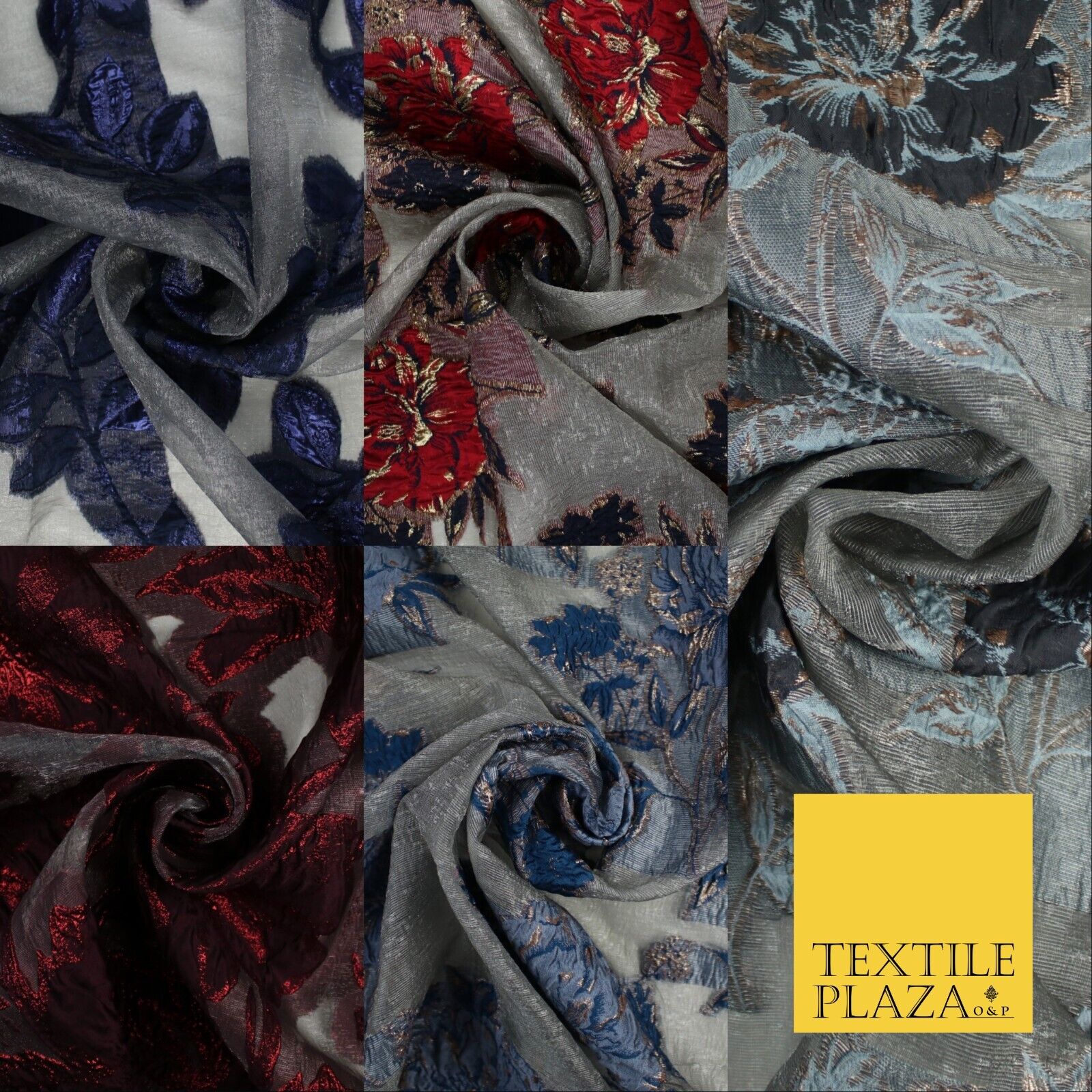 5 Designs - Grey Organza Base Large Flower Textured Brocade Jacquard Fabric 58"